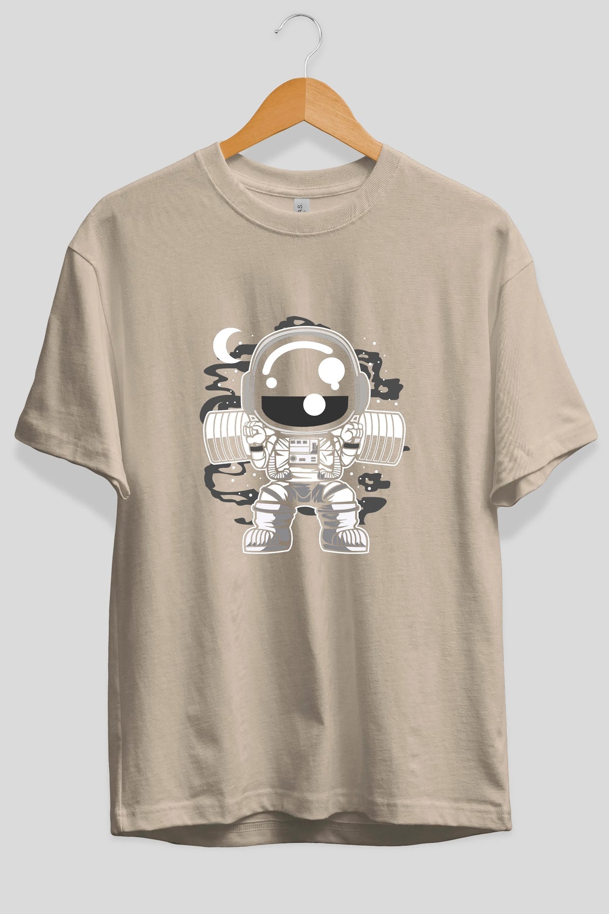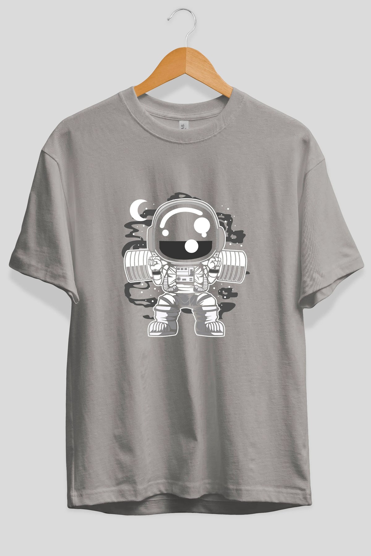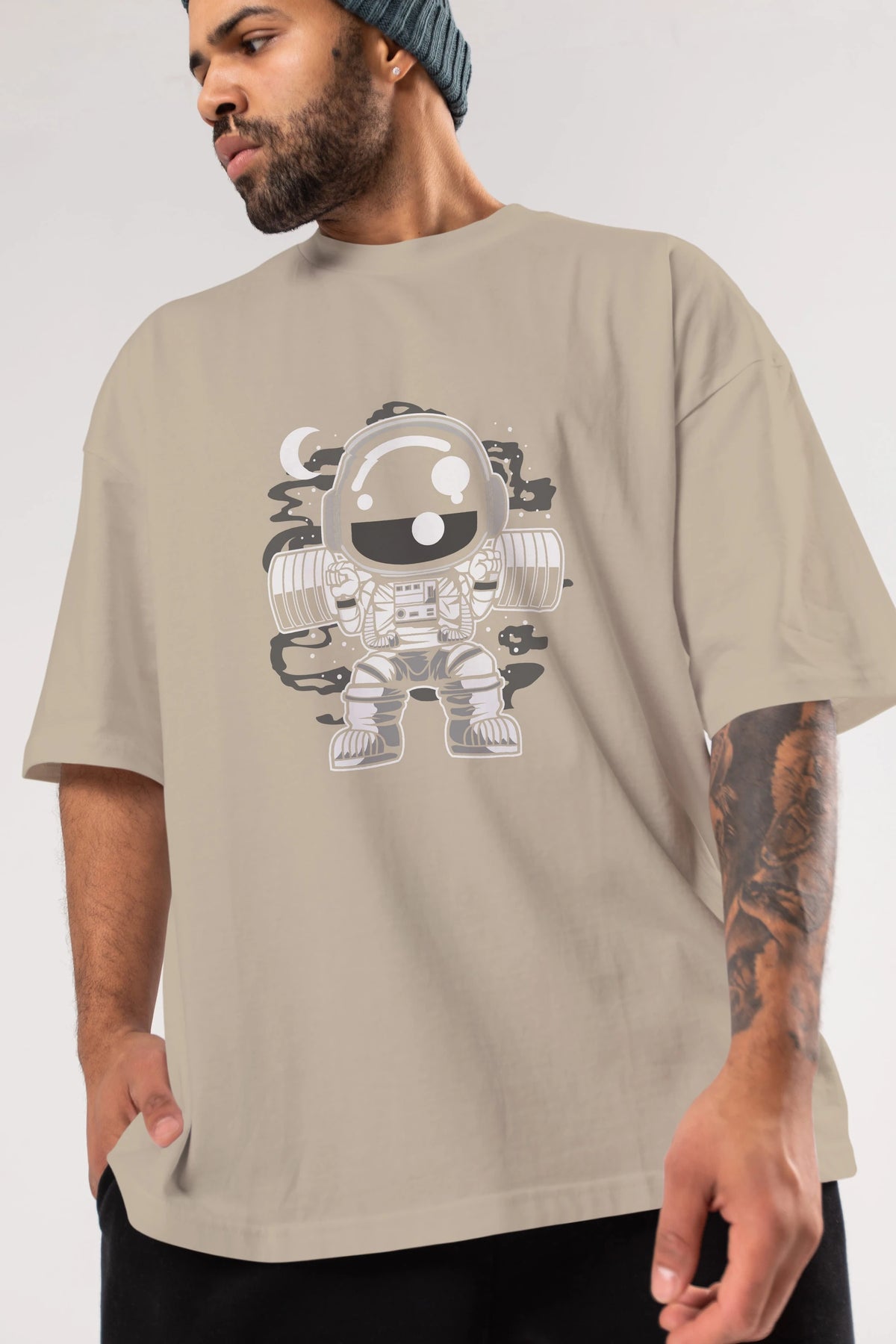 Astronaut Barbell Body Builder Ön Baskılı Oversize t-shirt Erkek Kadın Unisex