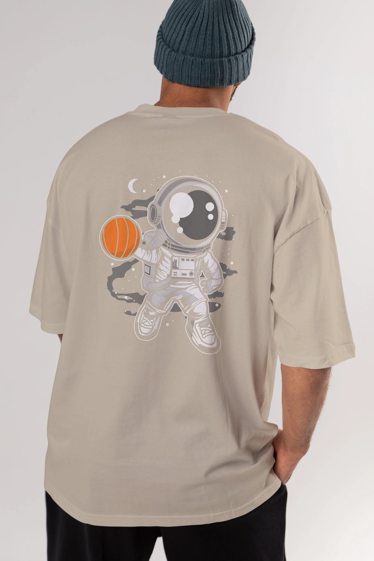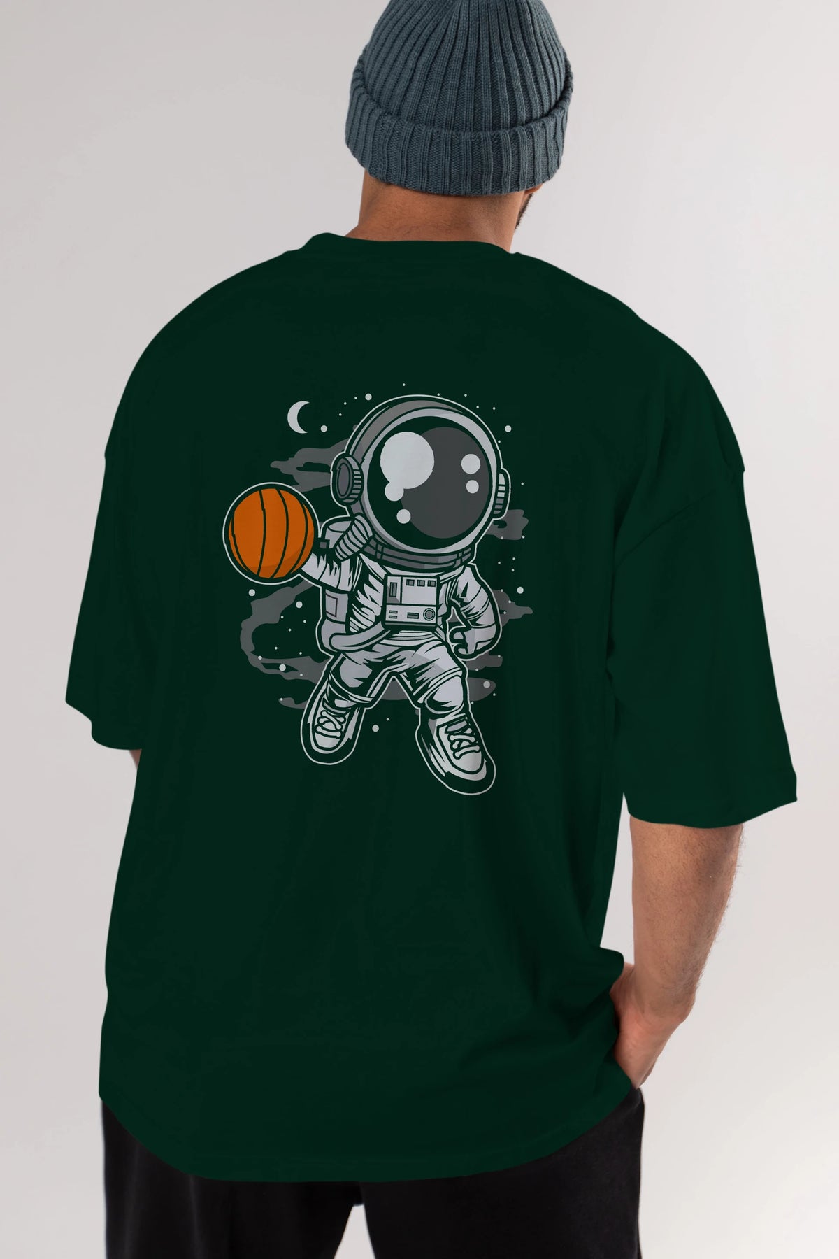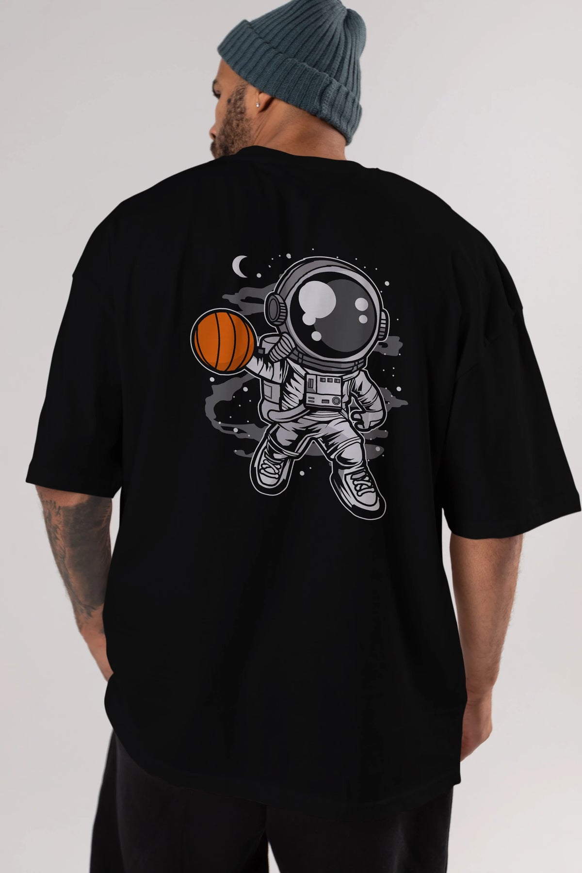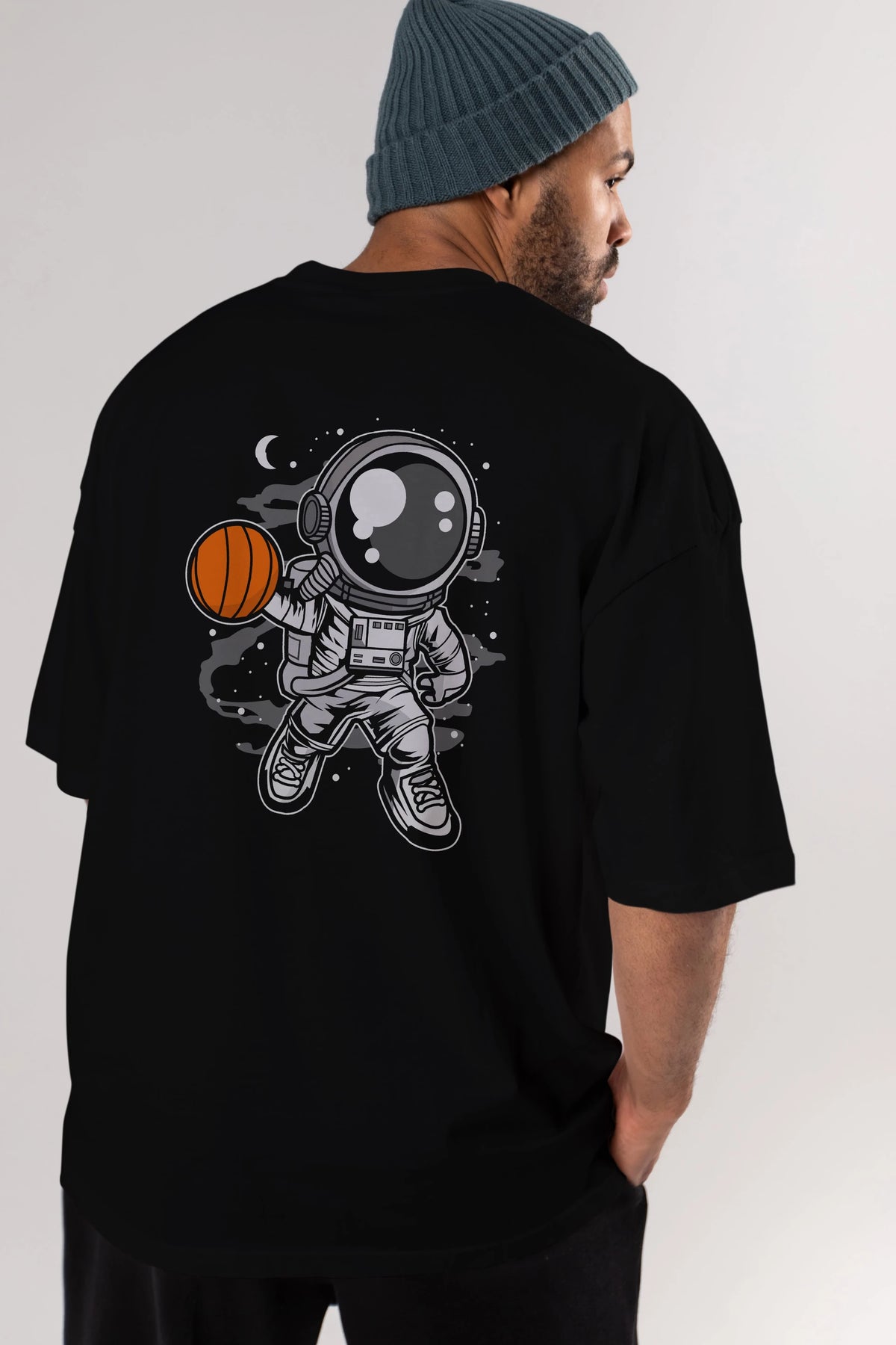 Astronaut Basketball Arka Baskılı Oversize t-shirt Erkek Kadın Unisex