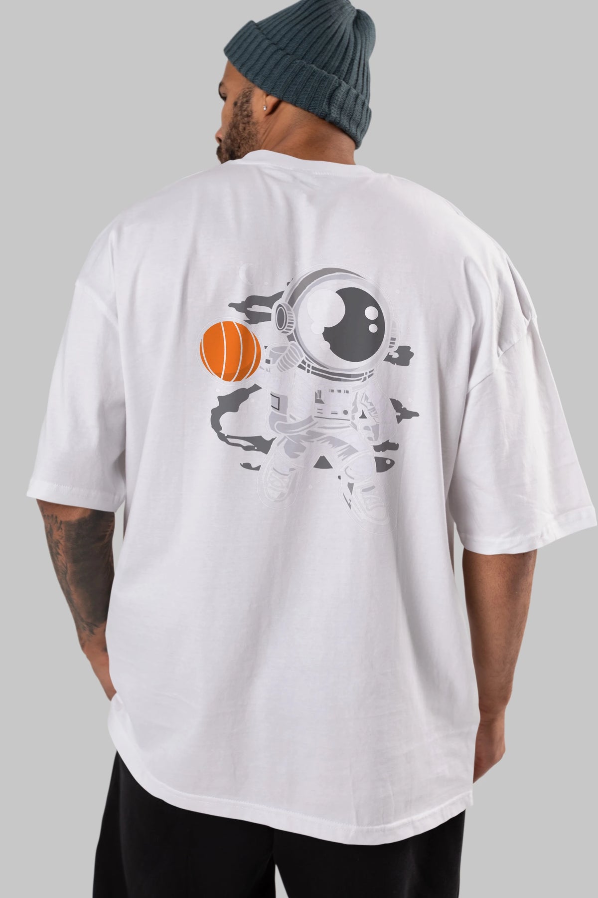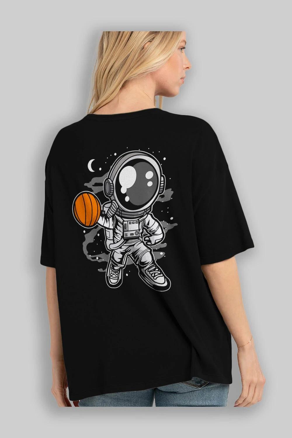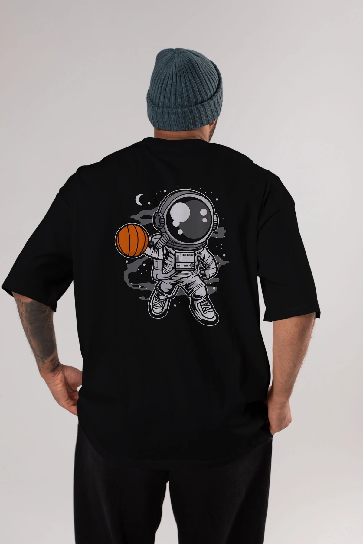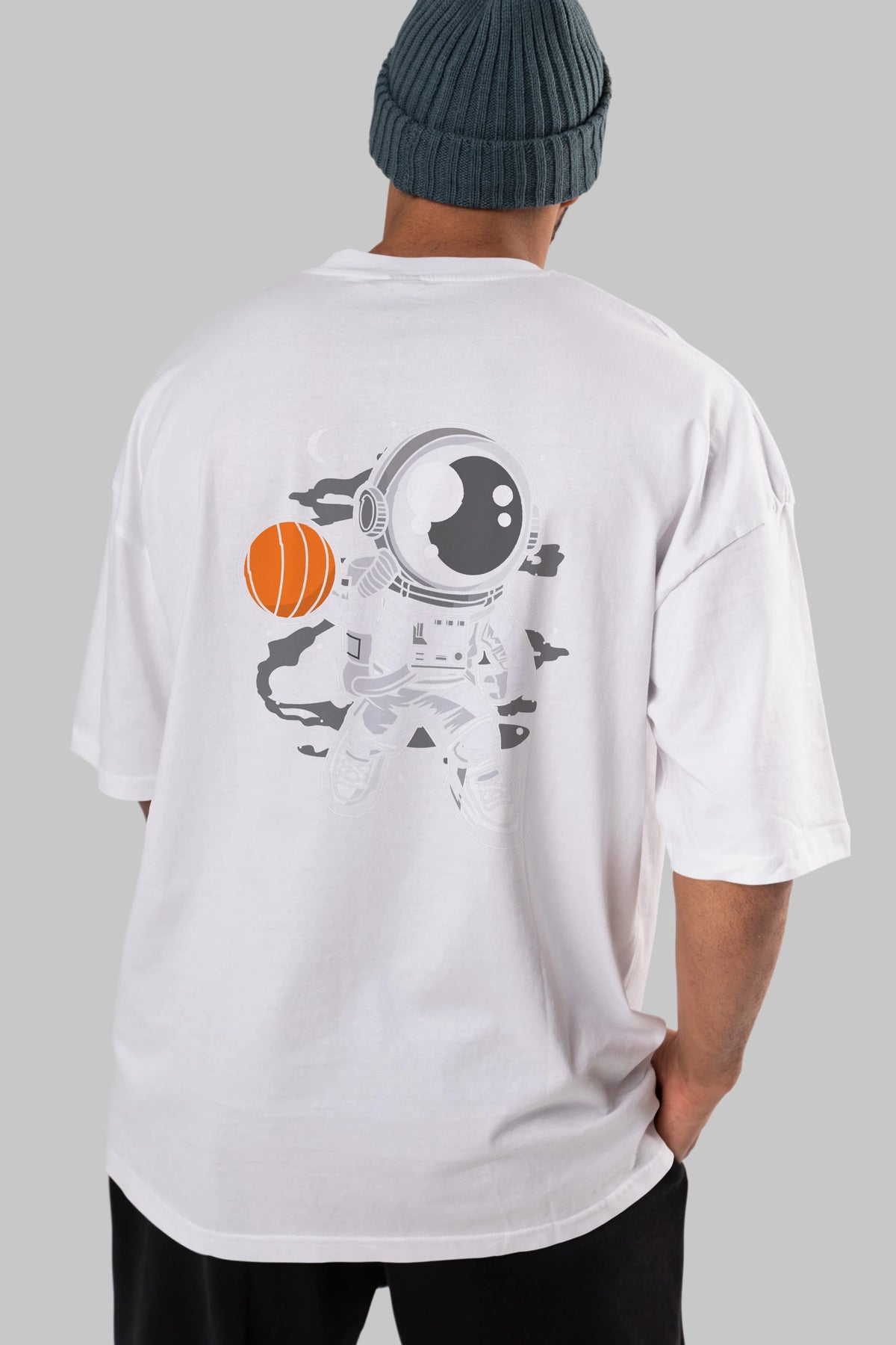 Astronaut Basketball Arka Baskılı Oversize t-shirt Erkek Kadın Unisex