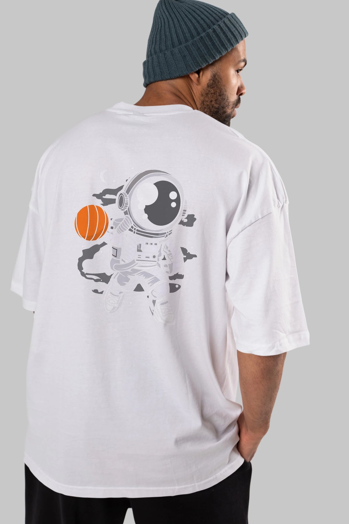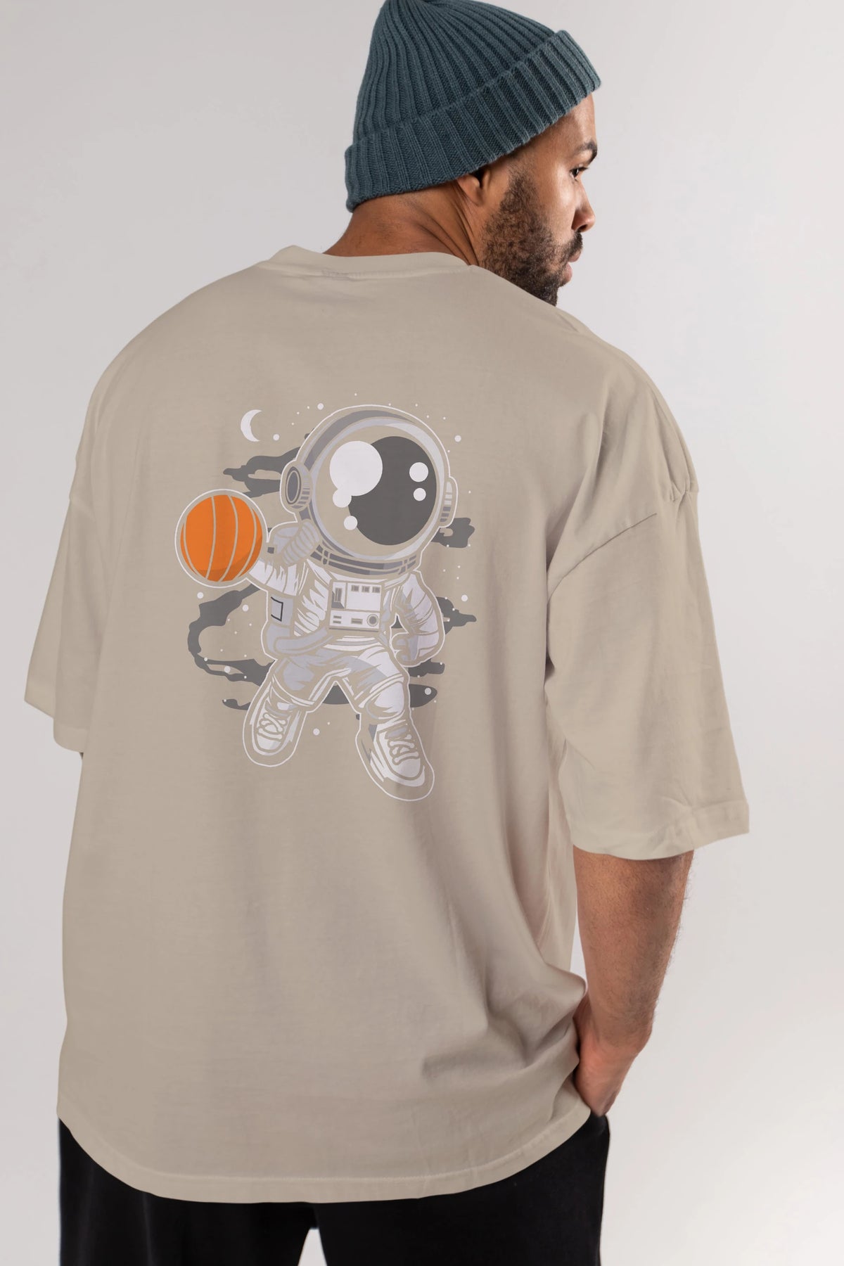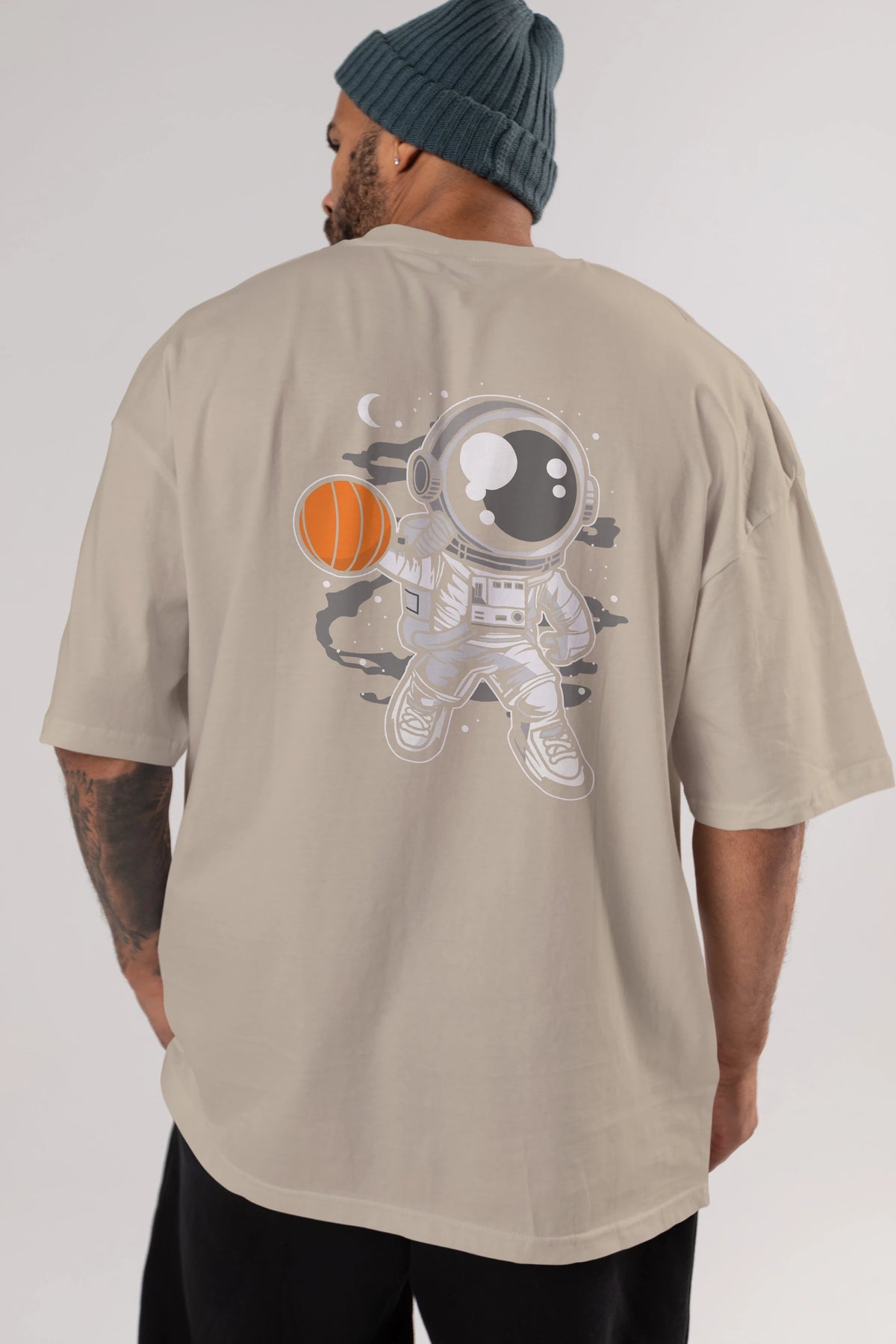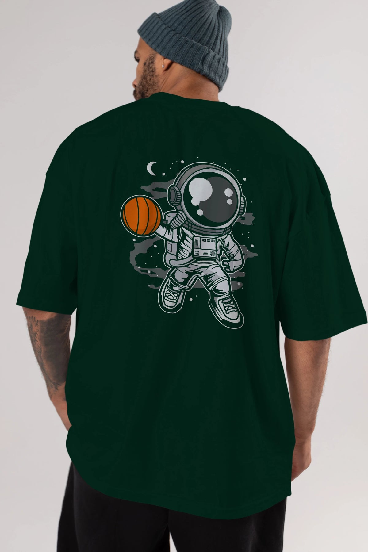 Astronaut Basketball Arka Baskılı Oversize t-shirt Erkek Kadın Unisex
