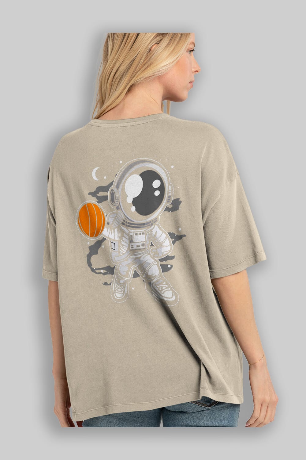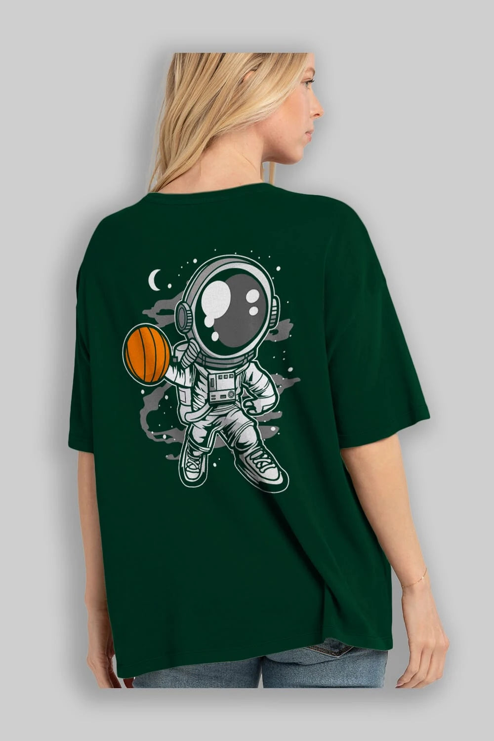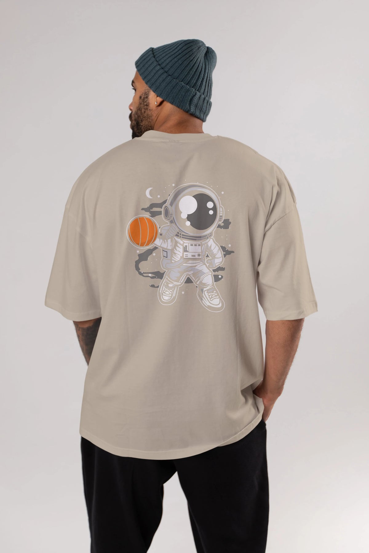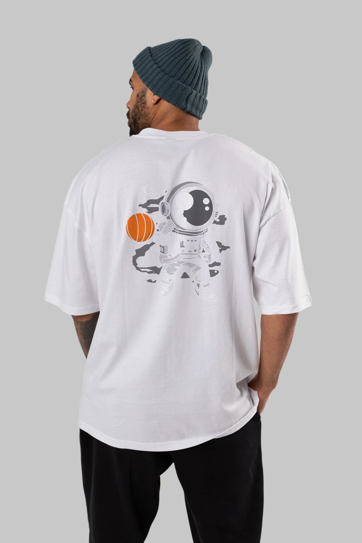 Astronaut Basketball Arka Baskılı Oversize t-shirt Erkek Kadın Unisex
