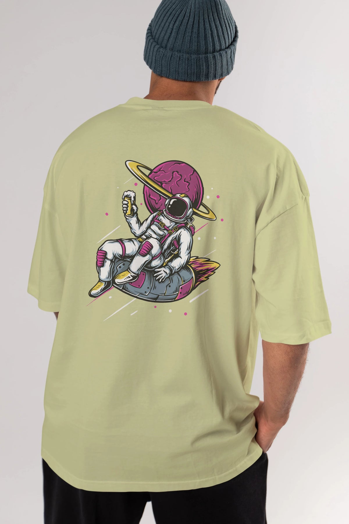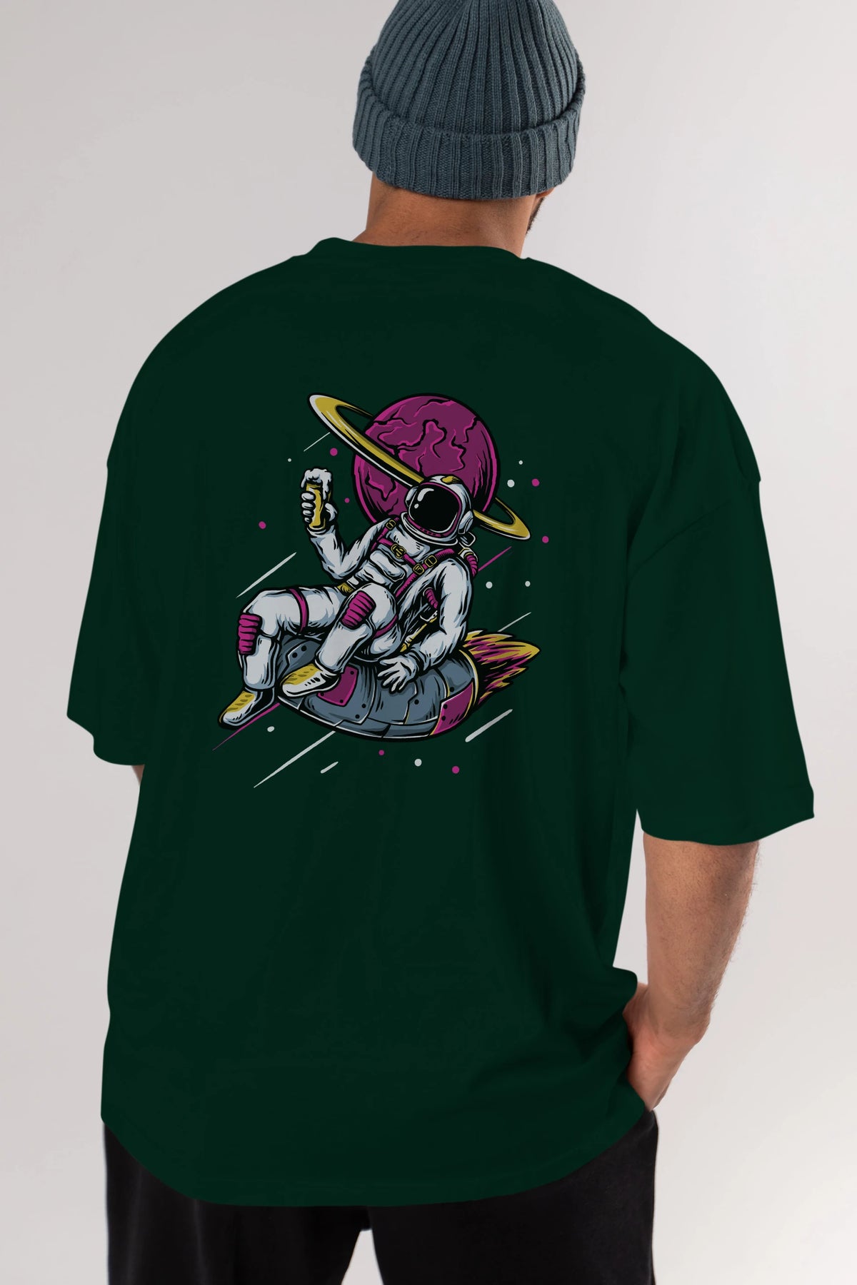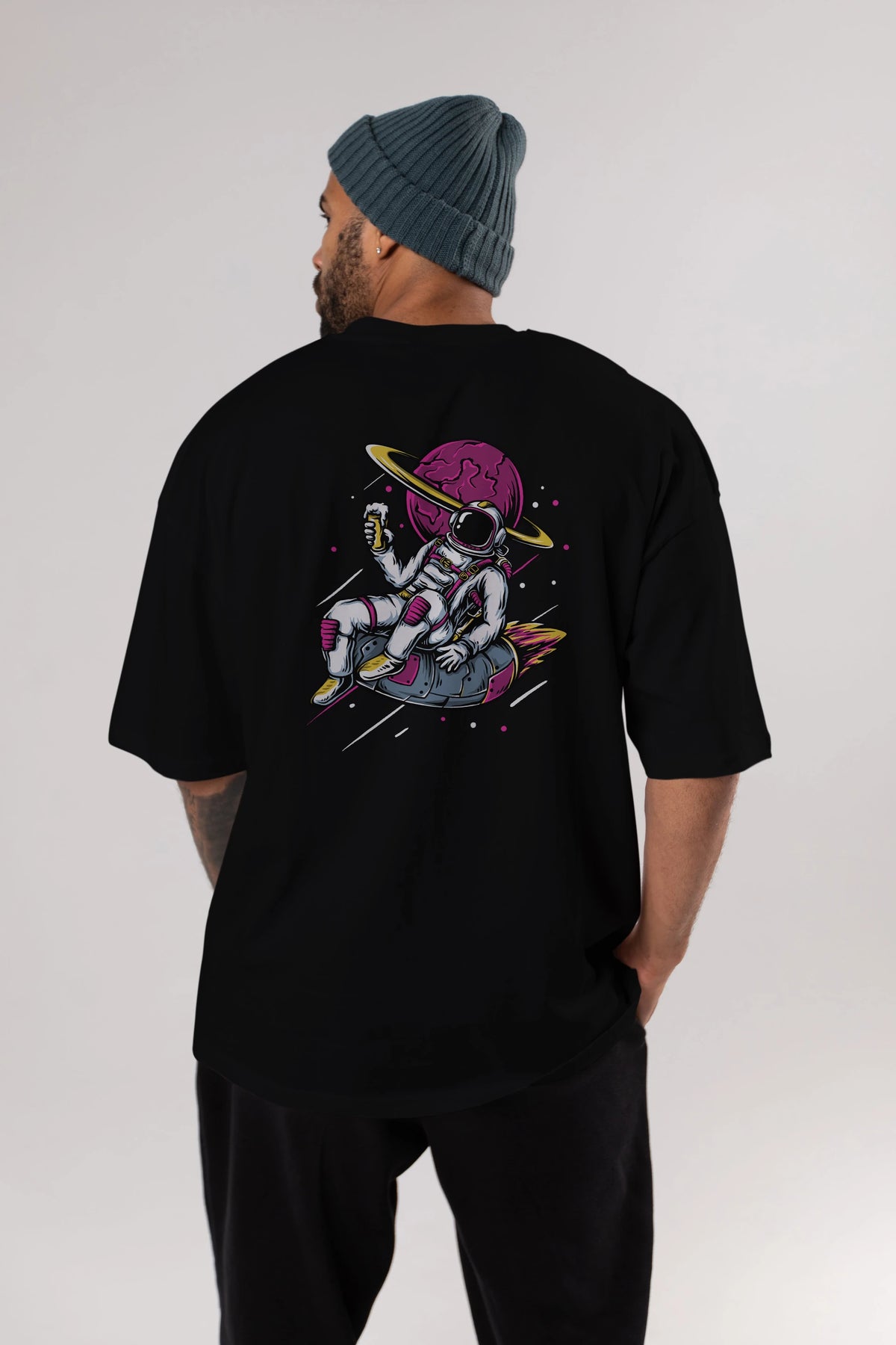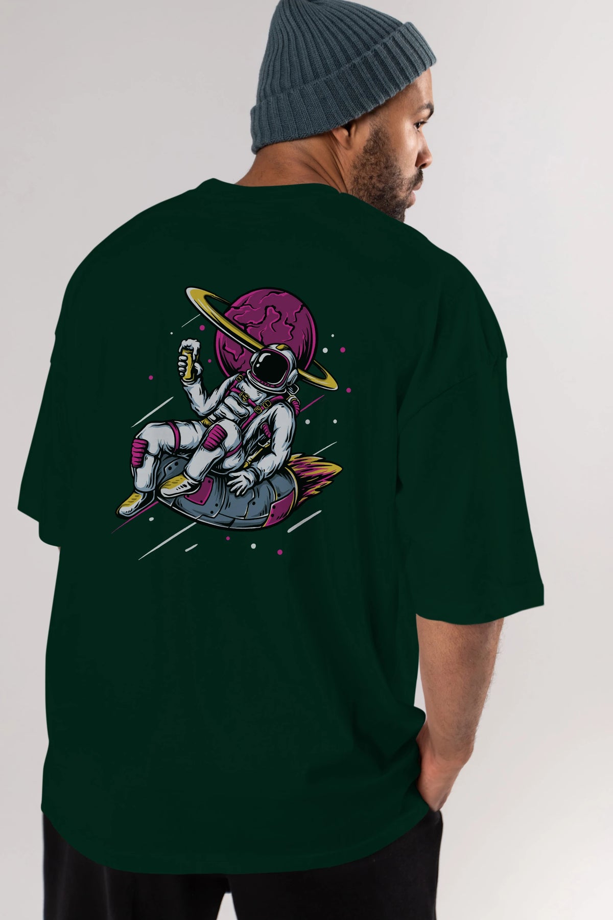 Astronaut Beer Arka Baskılı Oversize t-shirt Erkek Kadın Unisex