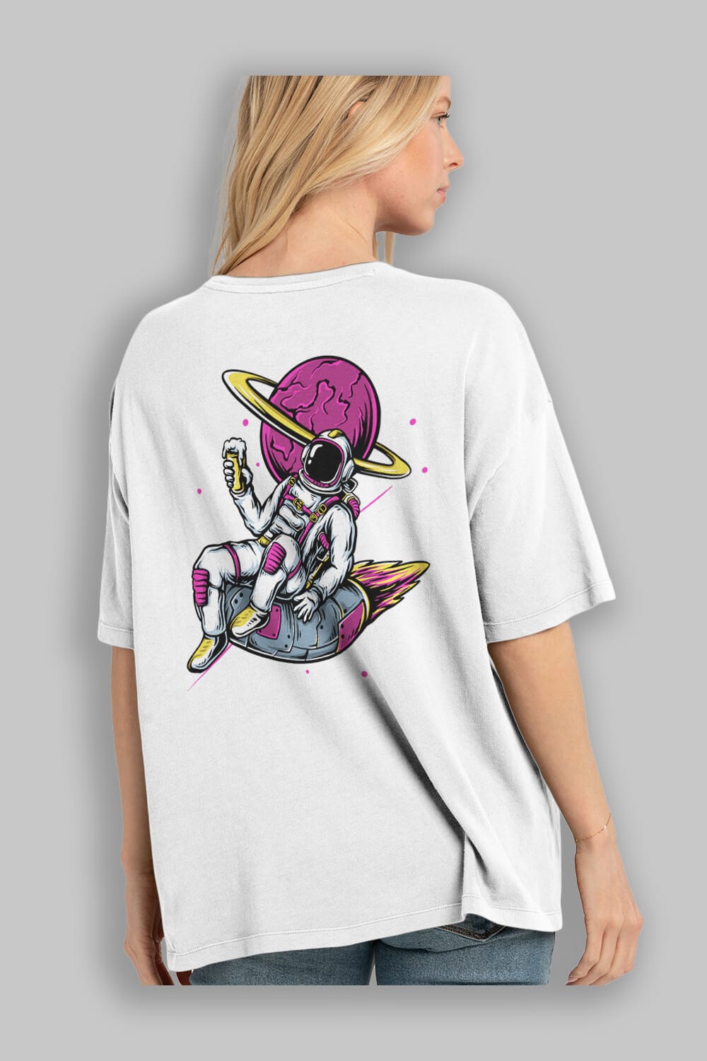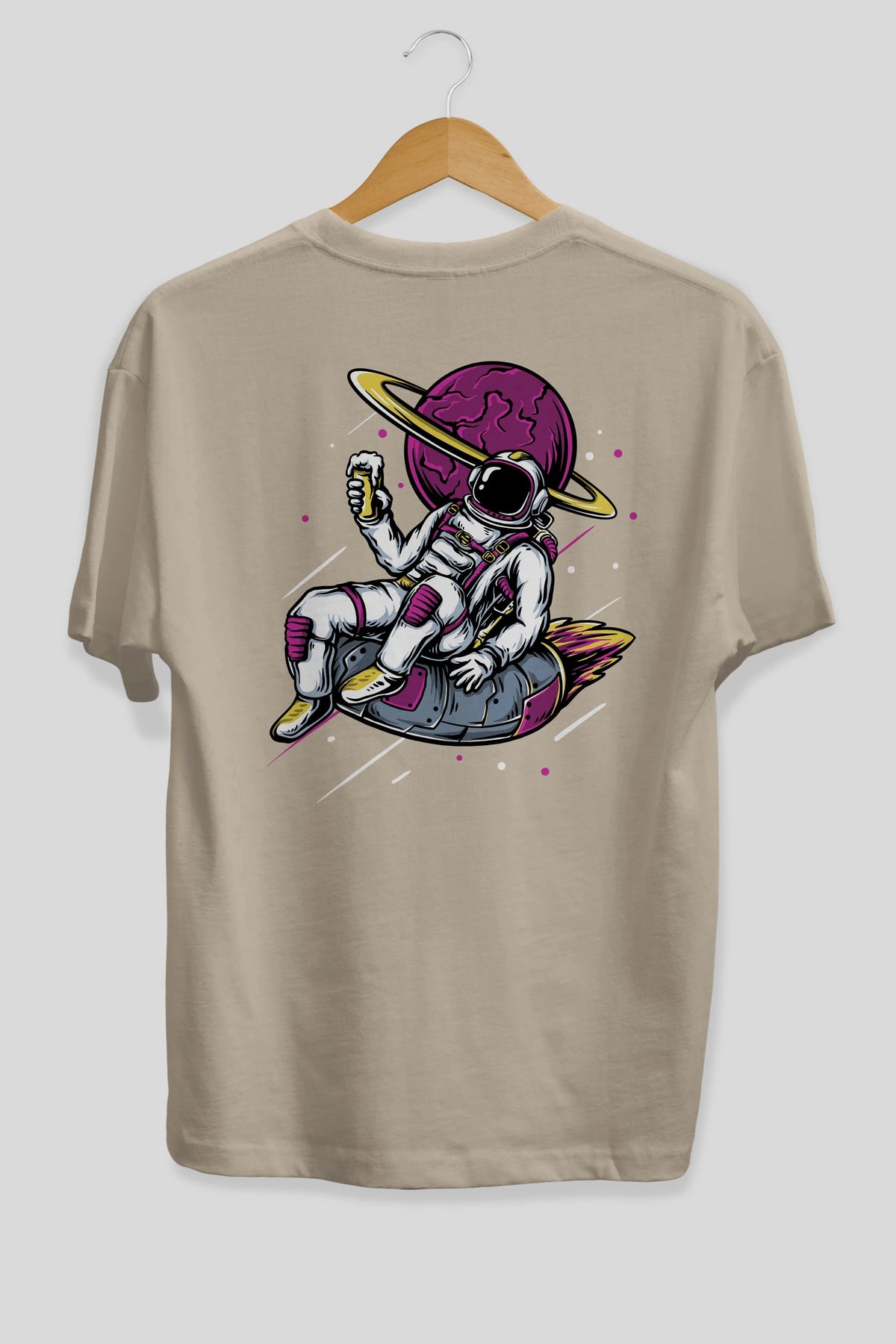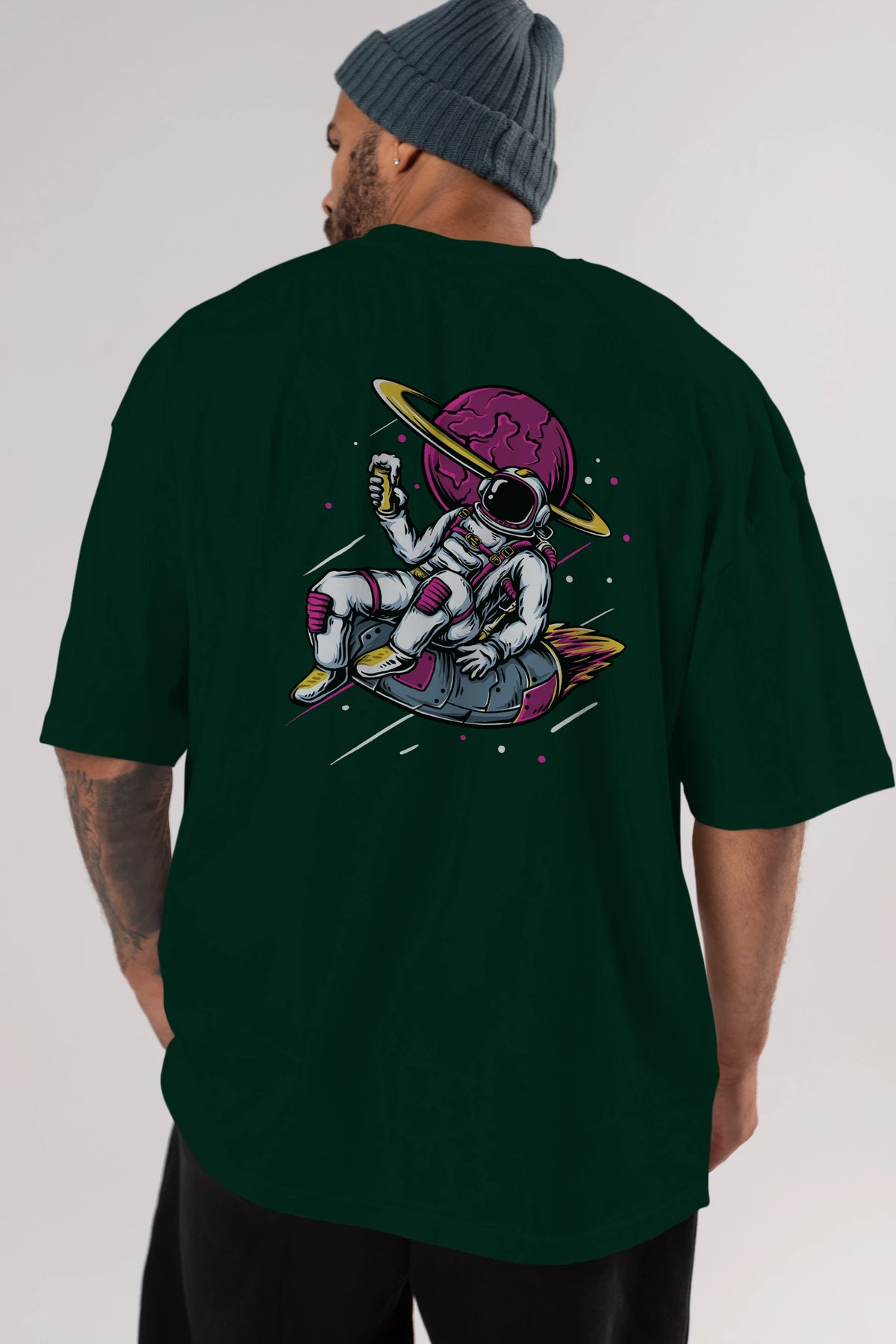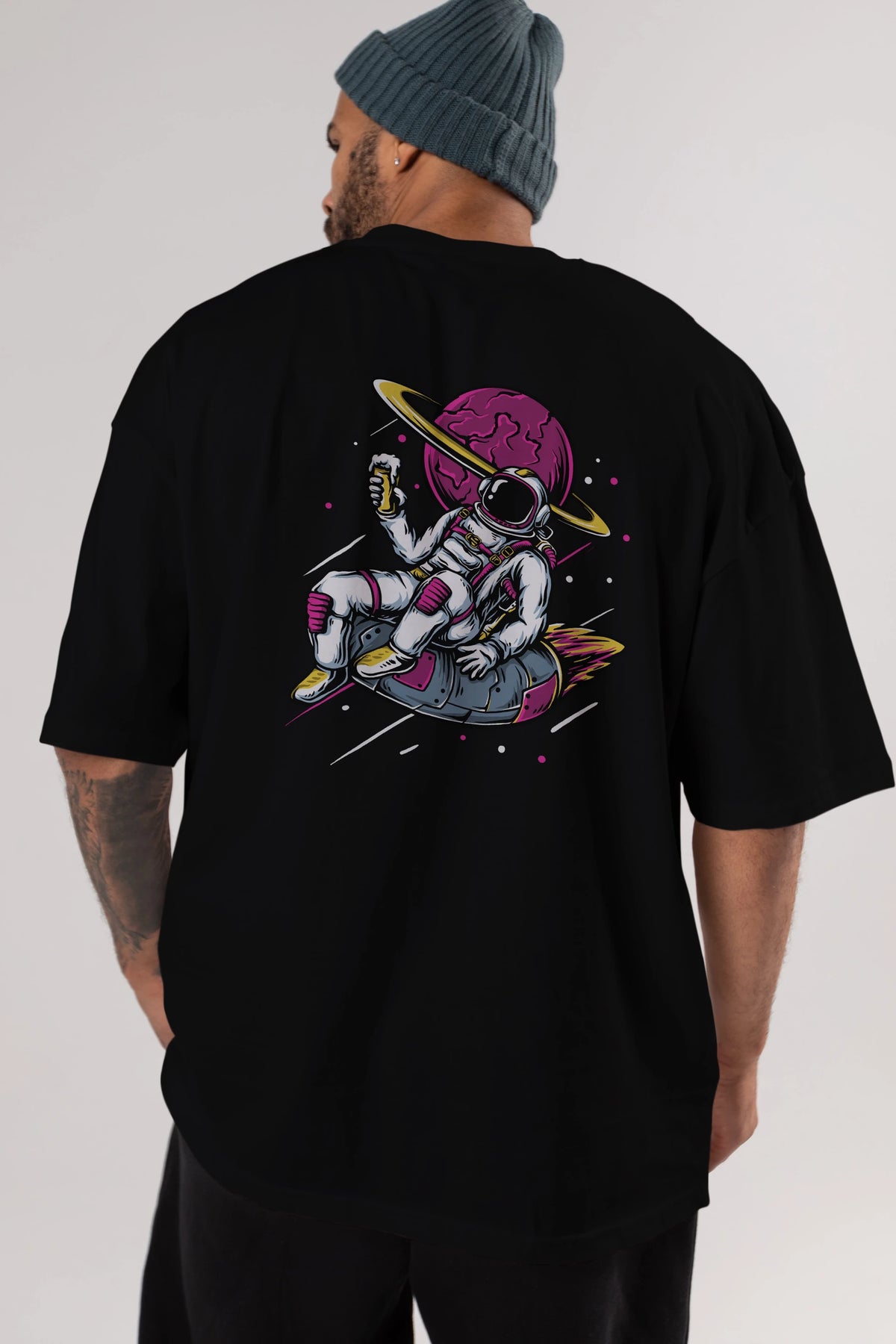 Astronaut Beer Arka Baskılı Oversize t-shirt Erkek Kadın Unisex
