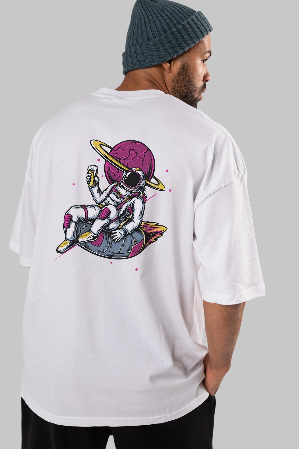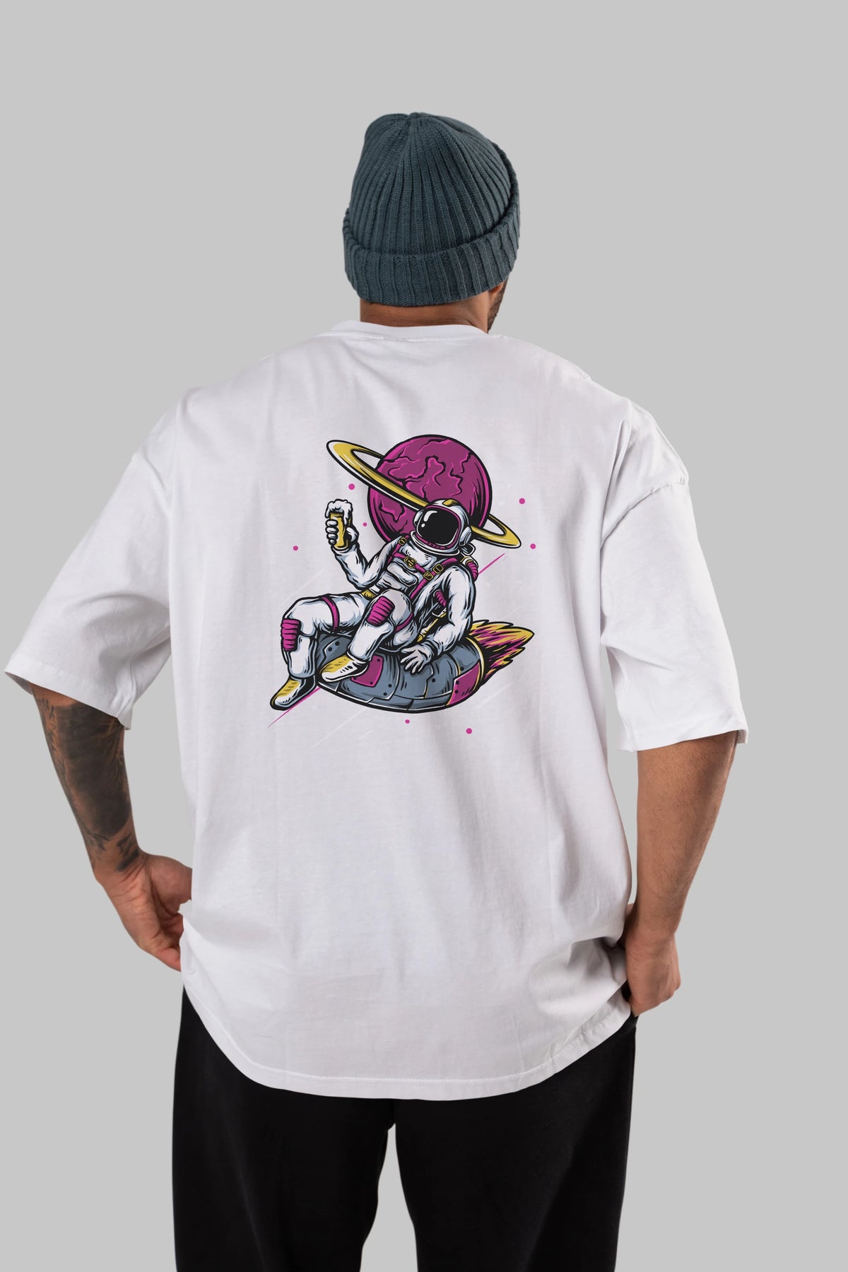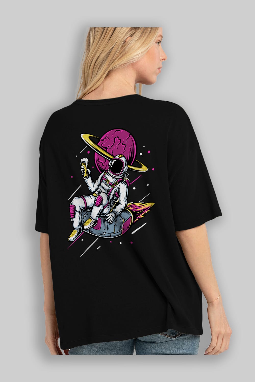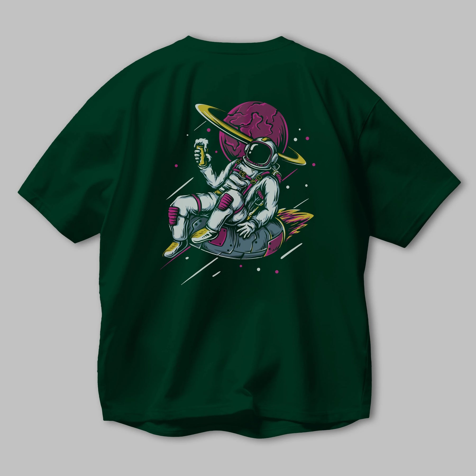 Astronaut Beer Arka Baskılı Oversize t-shirt Erkek Kadın Unisex
