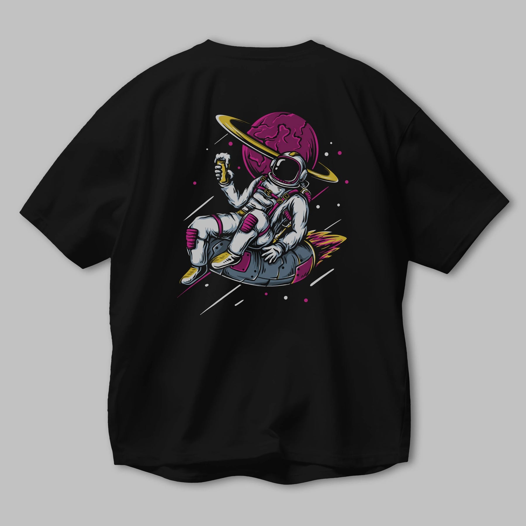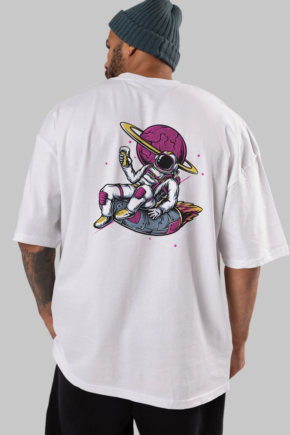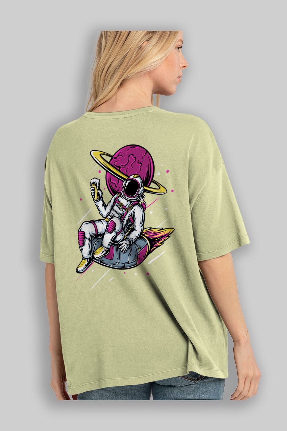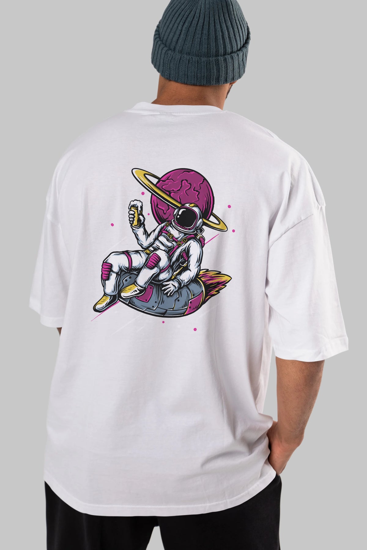 Astronaut Beer Arka Baskılı Oversize t-shirt Erkek Kadın Unisex