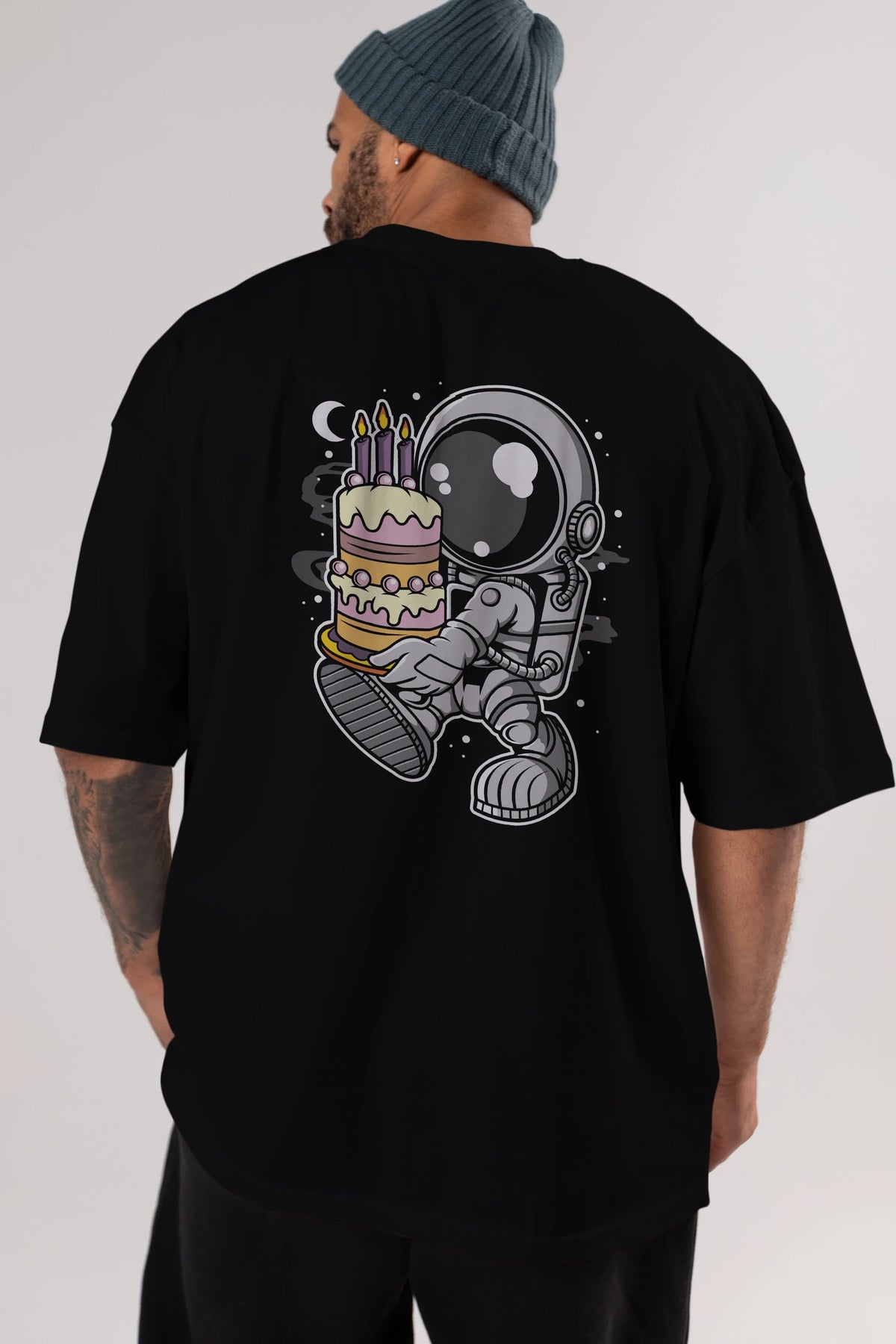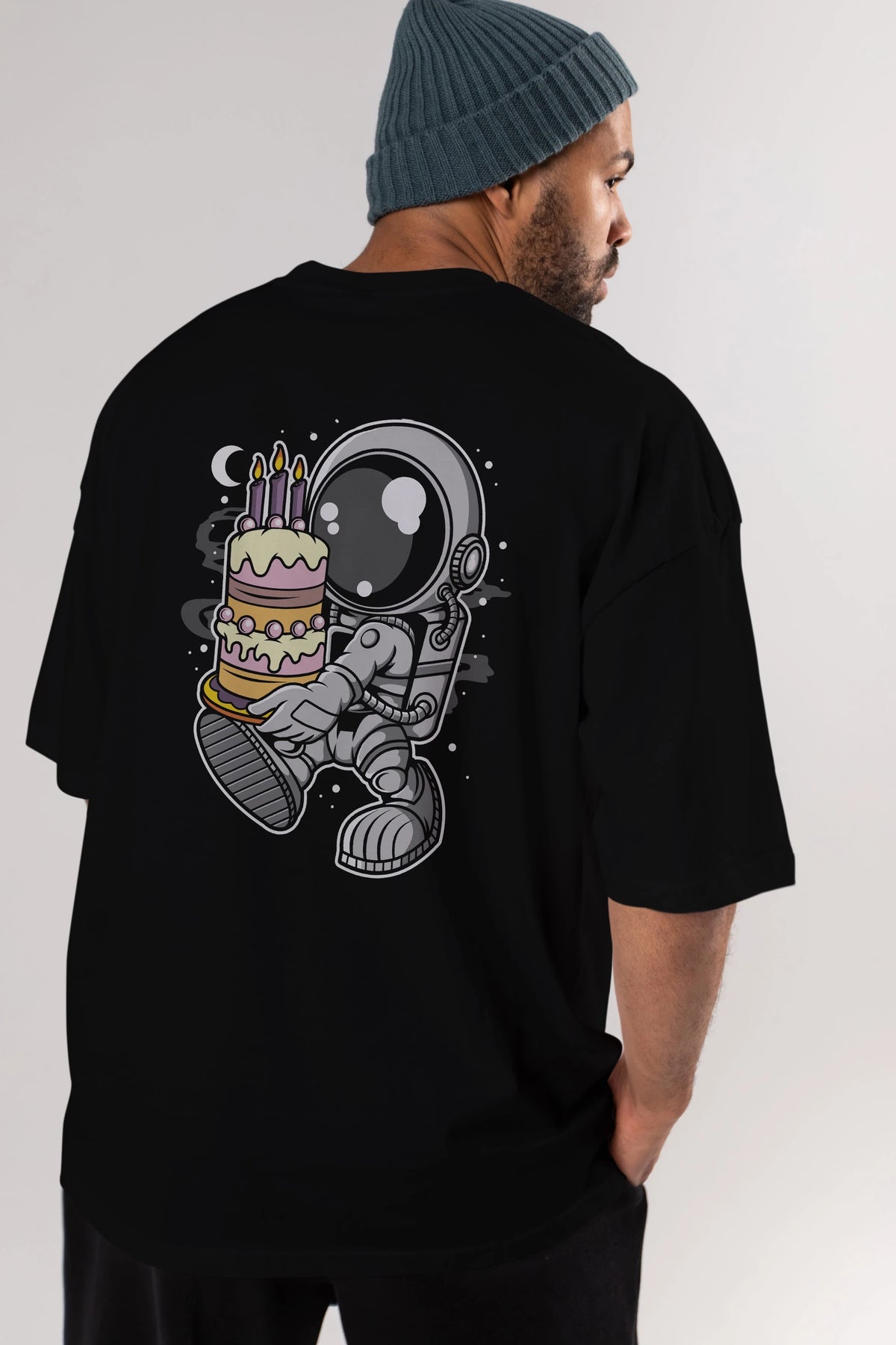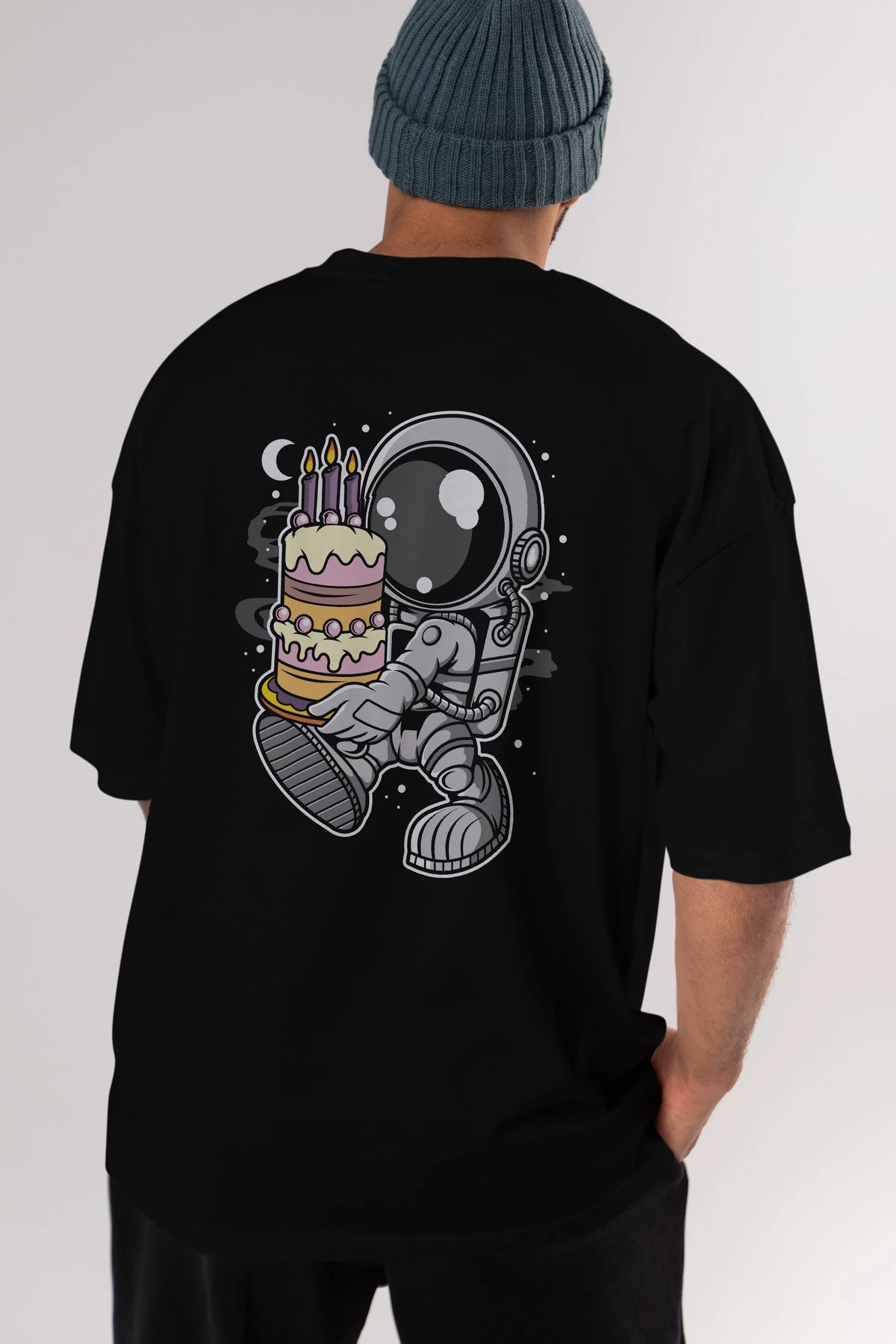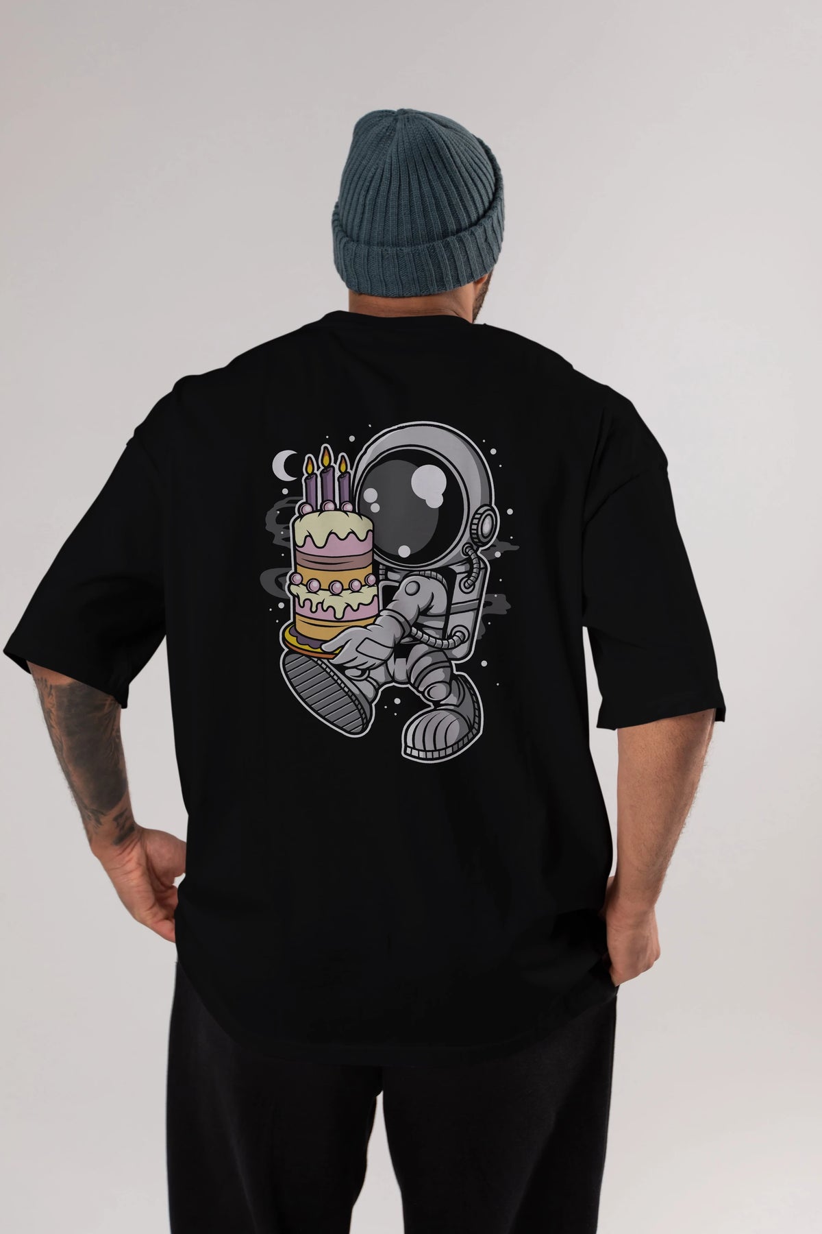 Astronaut Birthday Cake Arka Baskılı Oversize t-shirt Erkek Kadın Unisex
