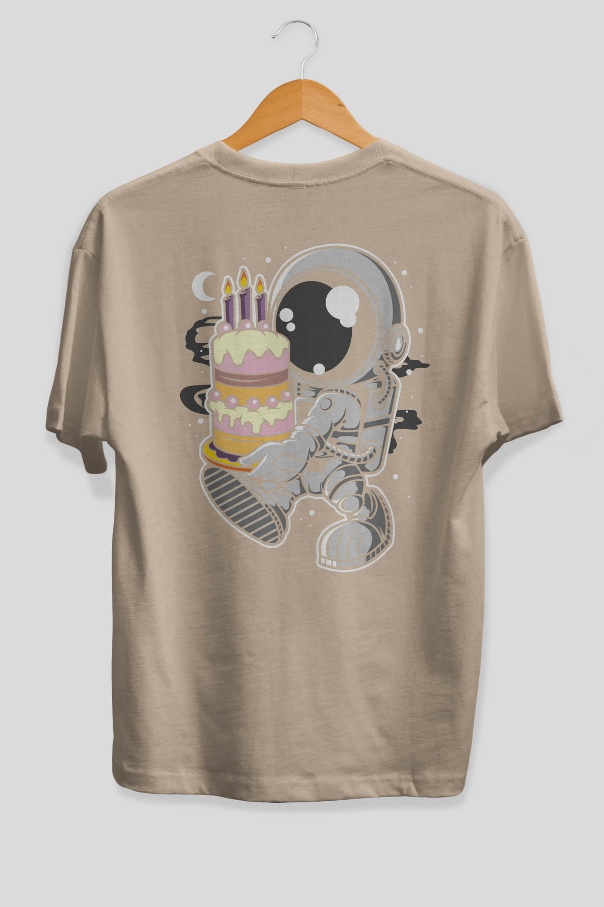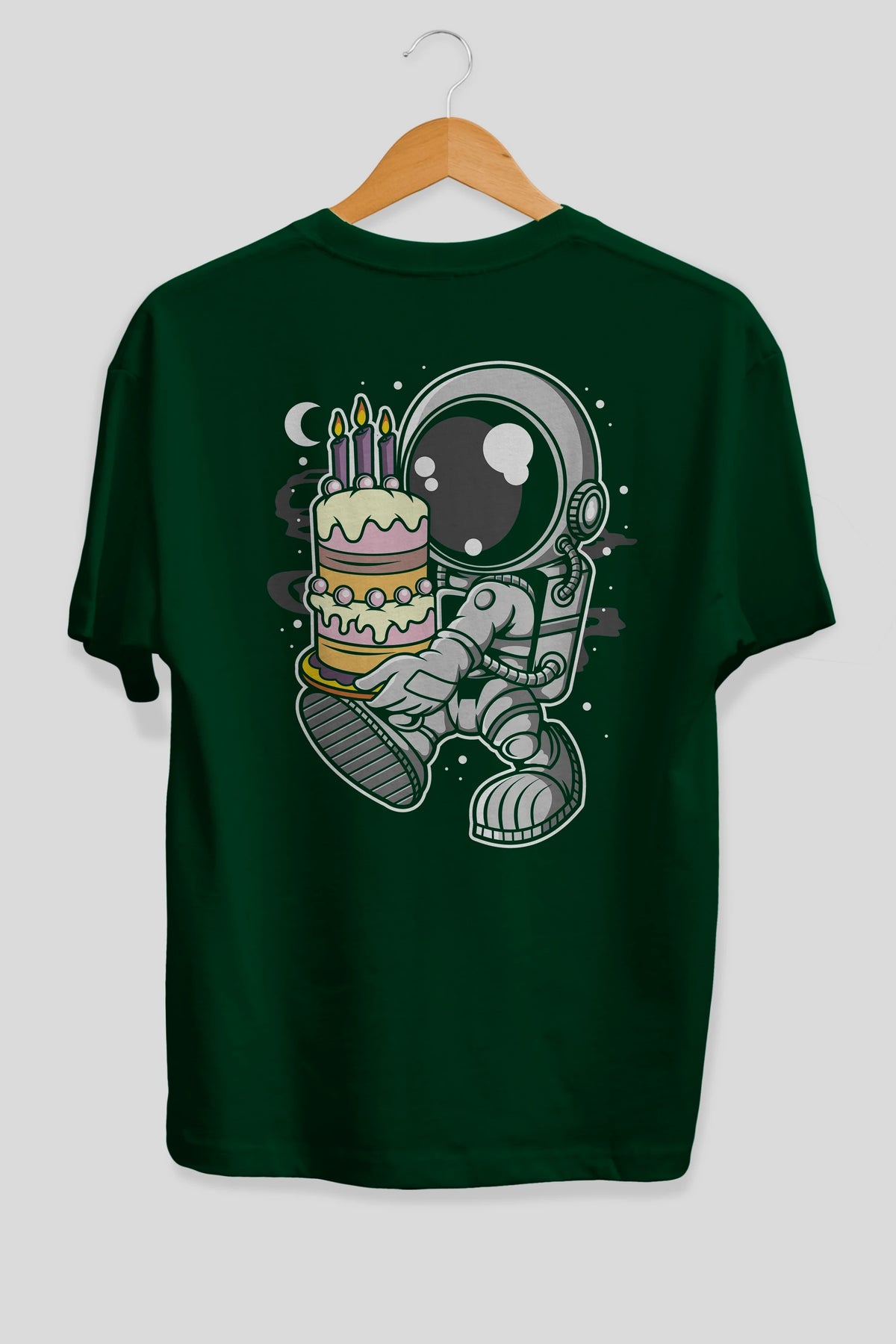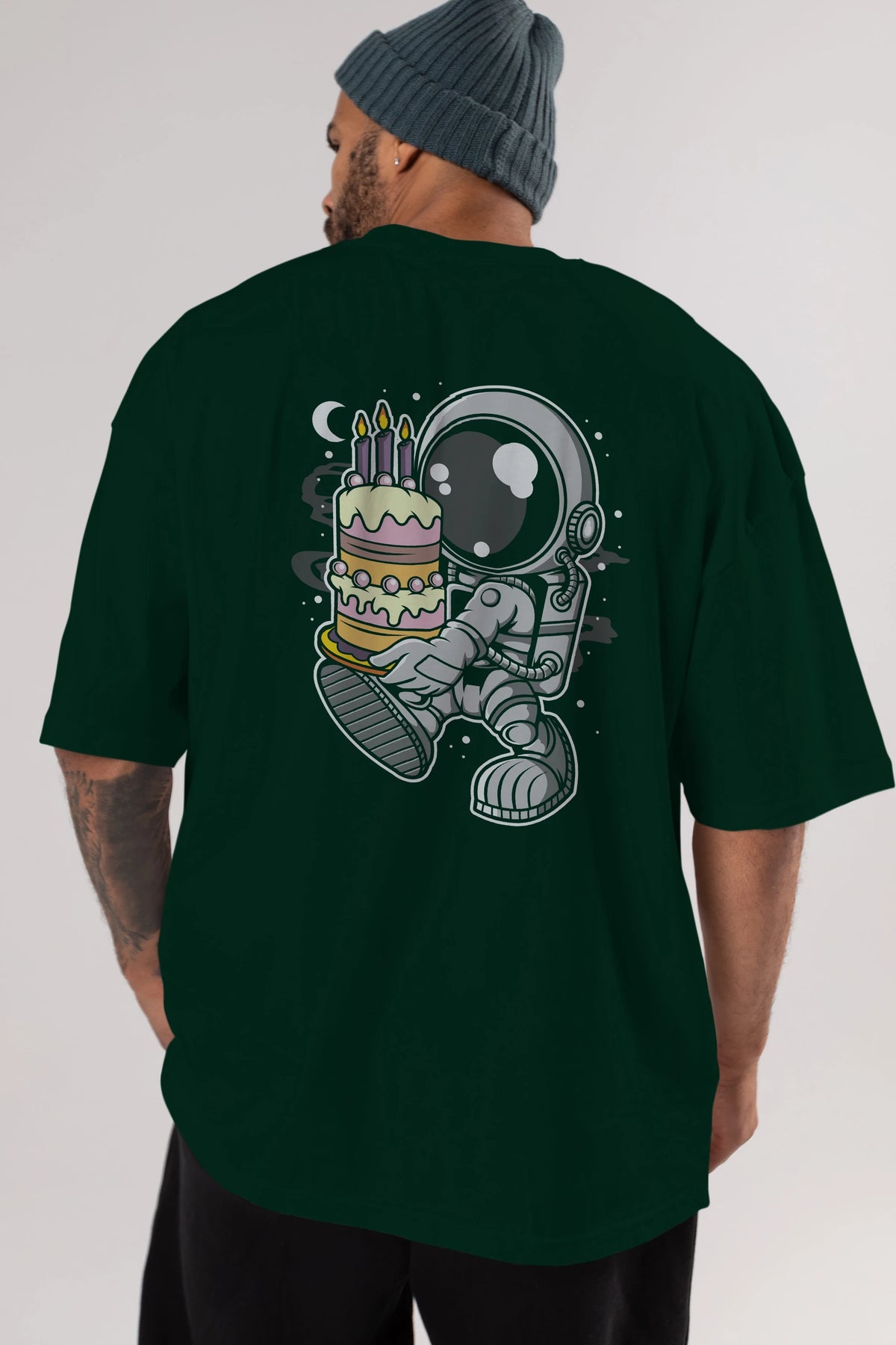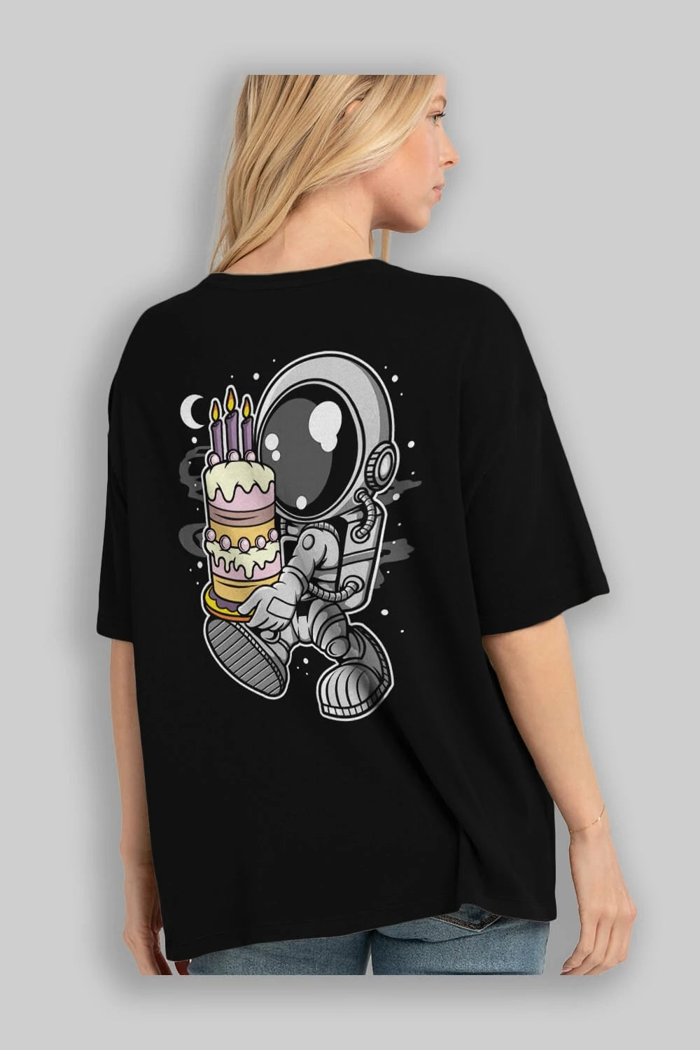 Astronaut Birthday Cake Arka Baskılı Oversize t-shirt Erkek Kadın Unisex