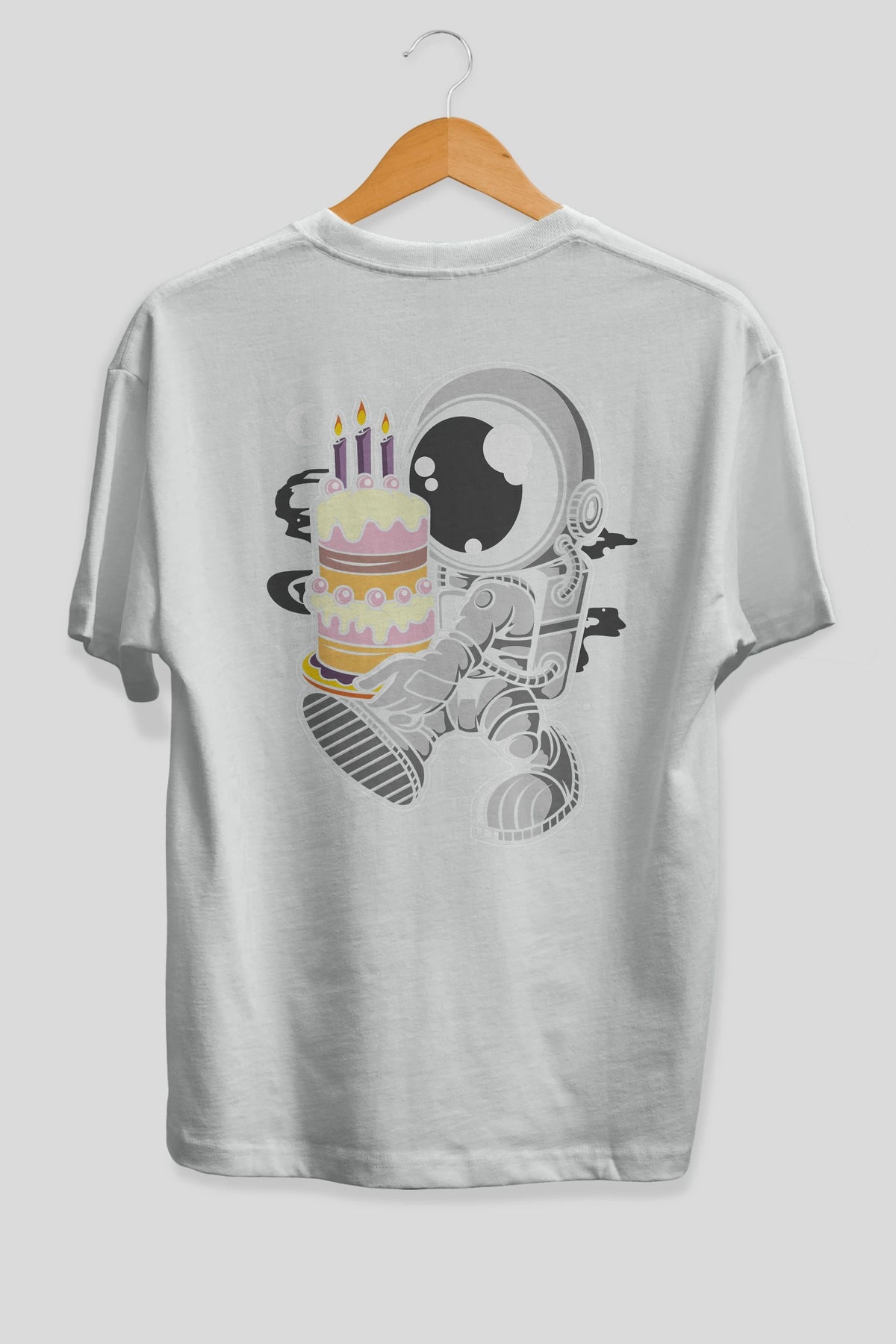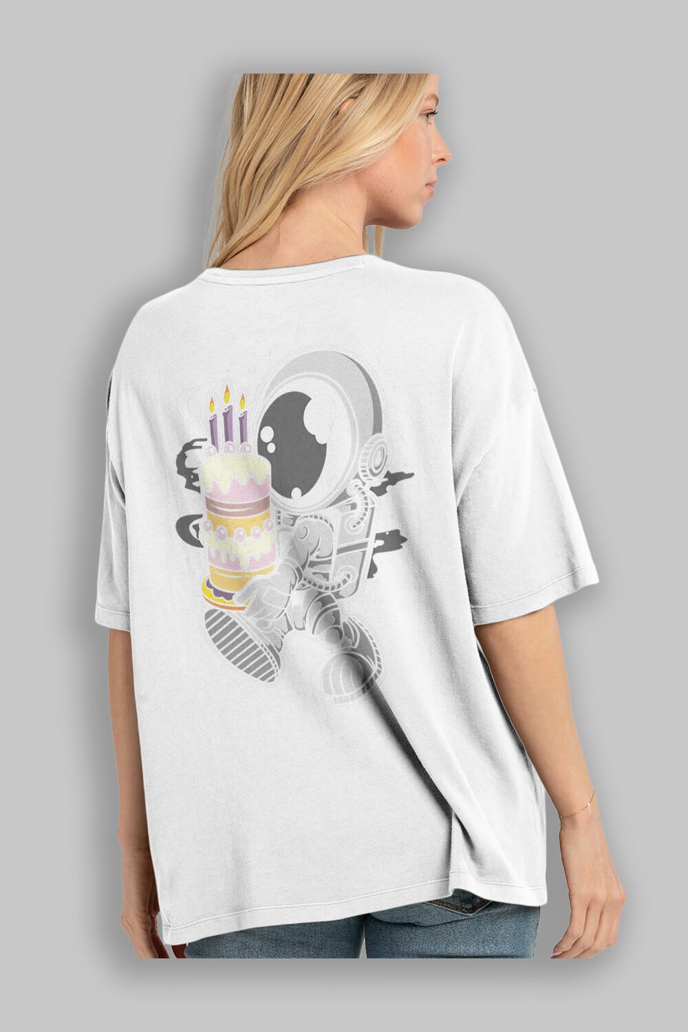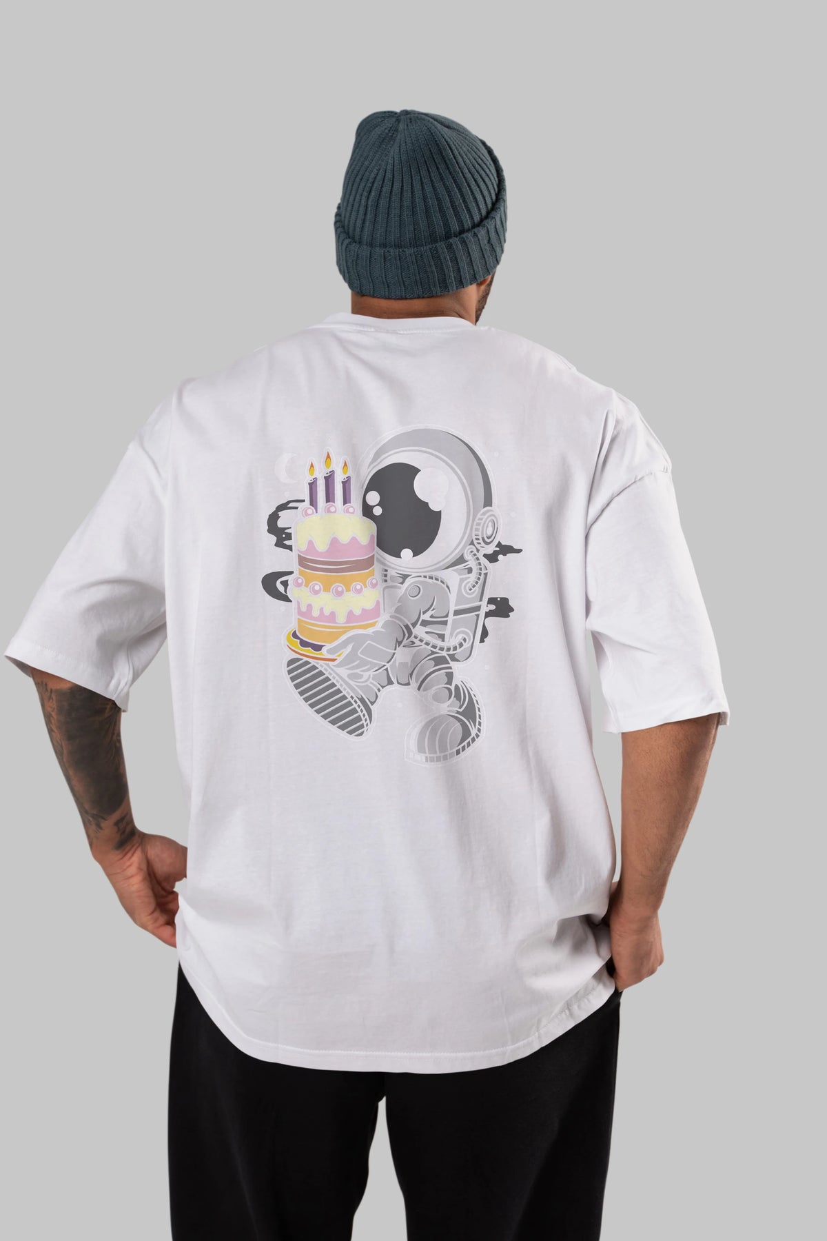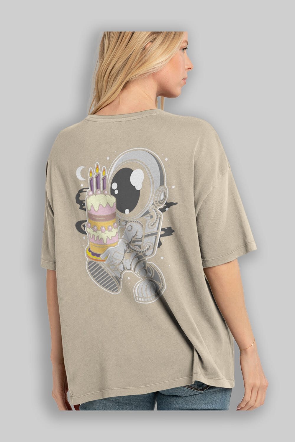 Astronaut Birthday Cake Arka Baskılı Oversize t-shirt Erkek Kadın Unisex
