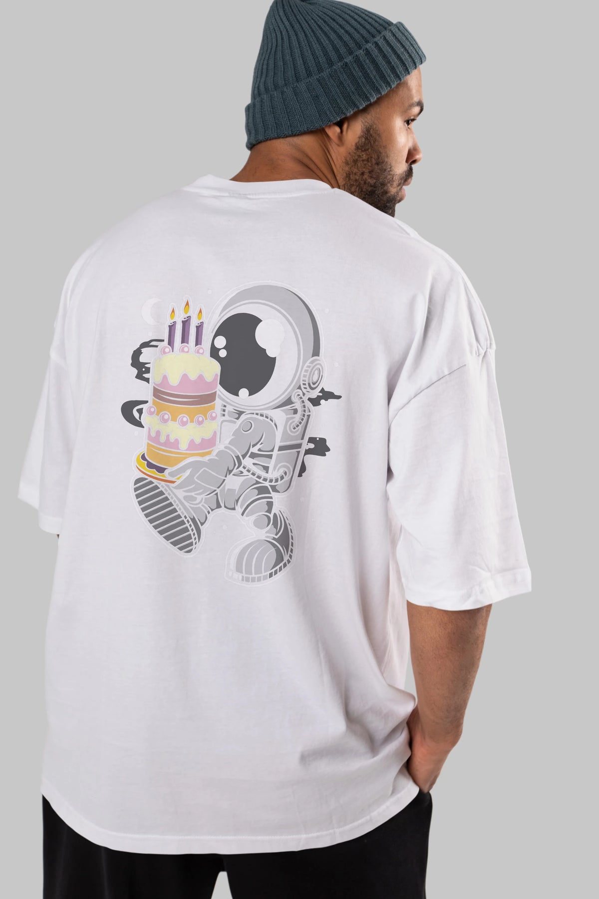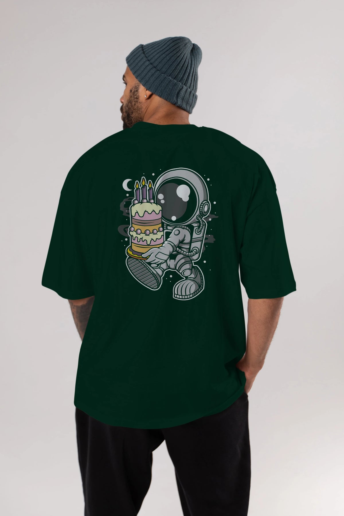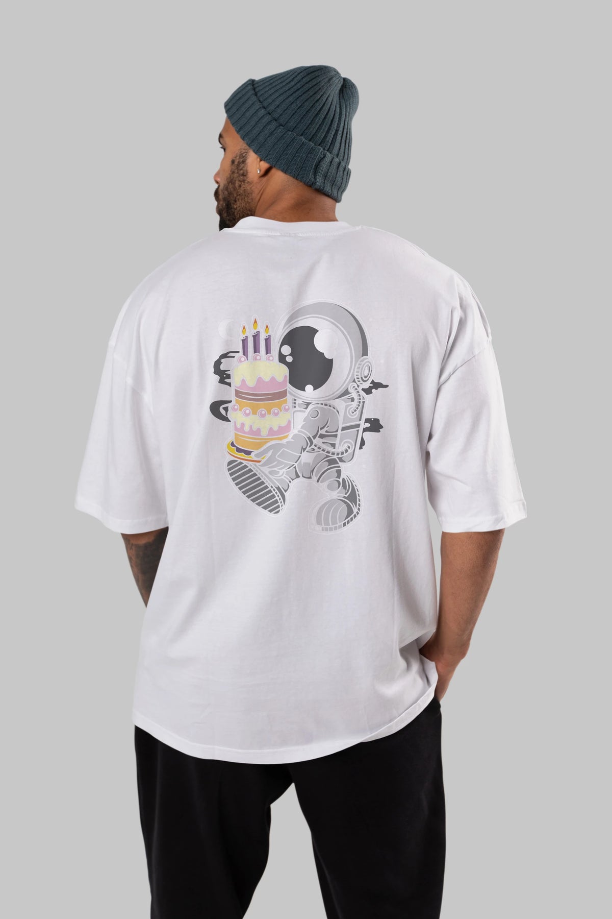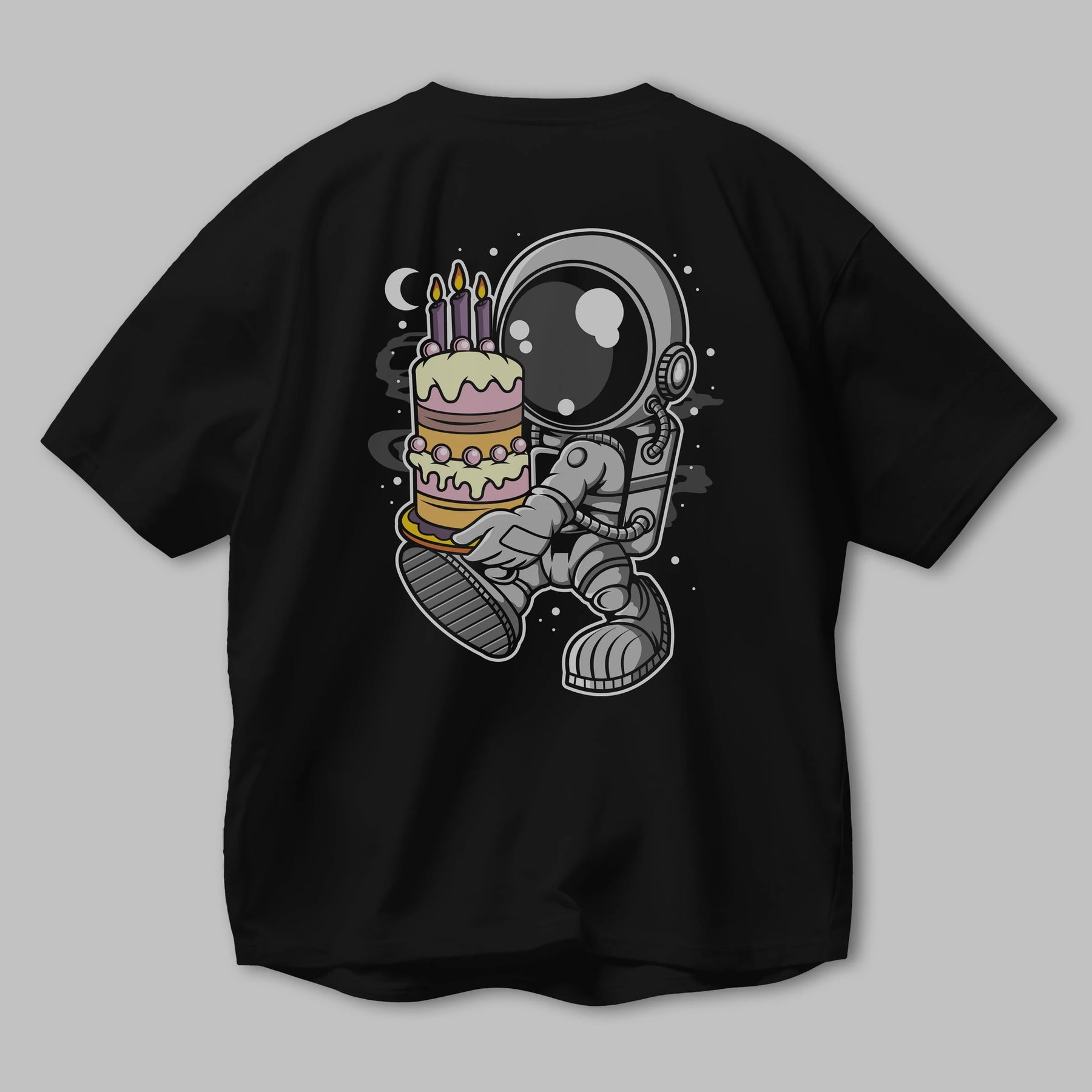 Astronaut Birthday Cake Arka Baskılı Oversize t-shirt Erkek Kadın Unisex