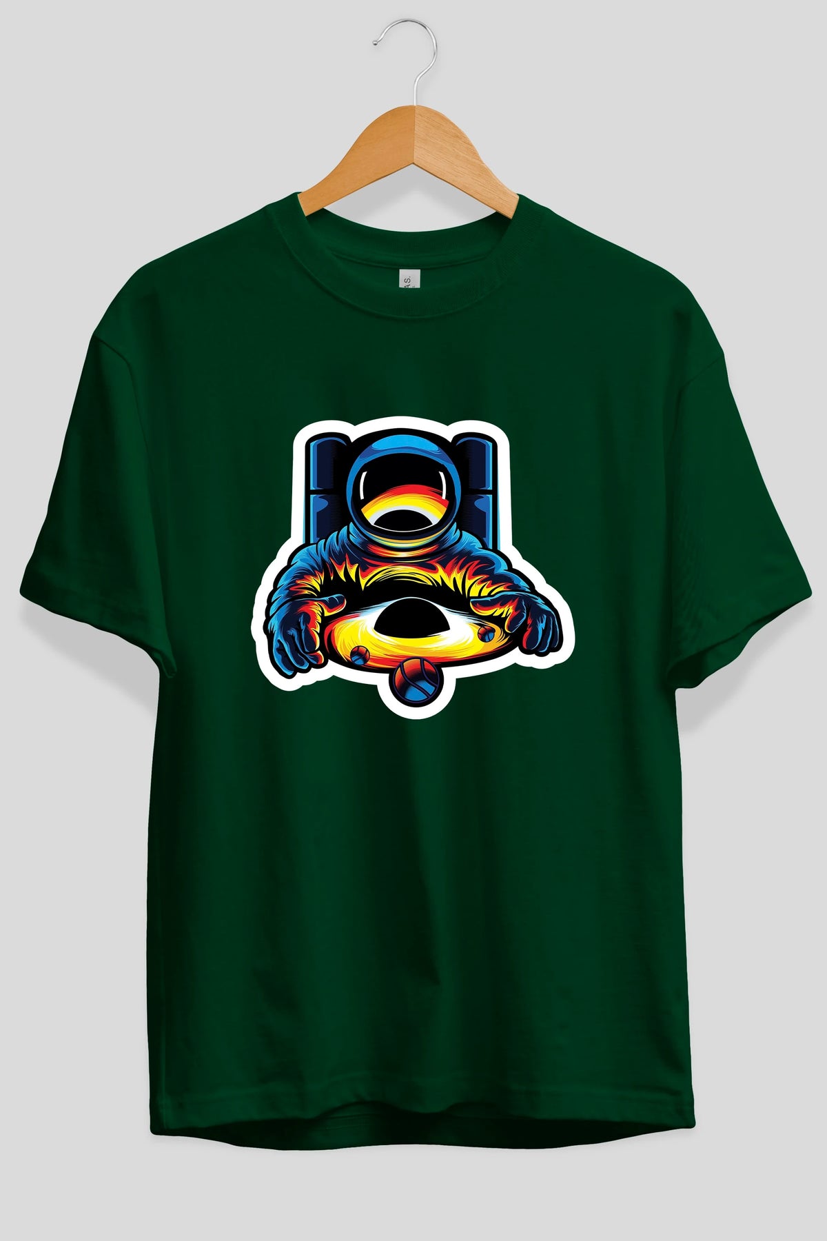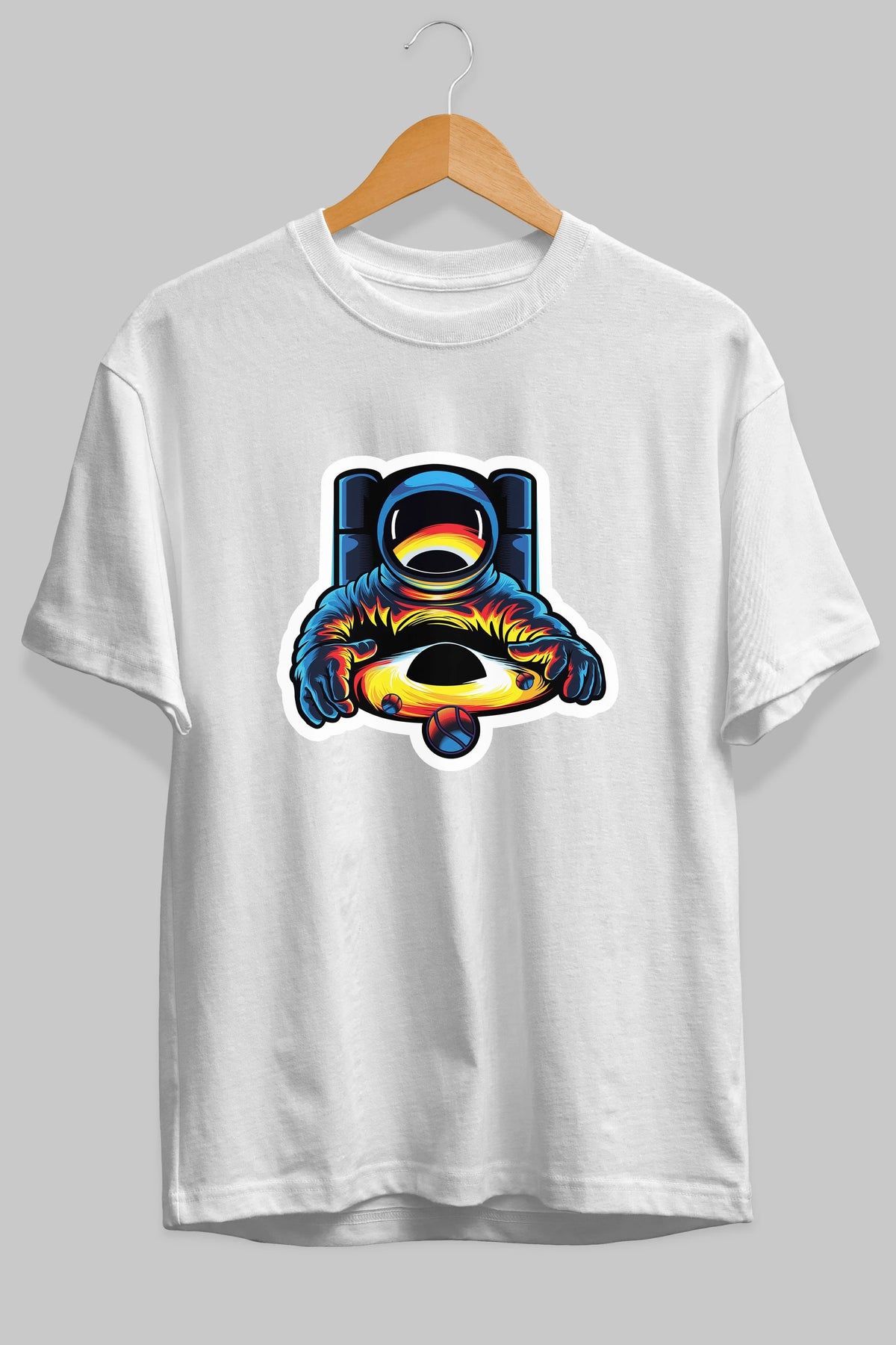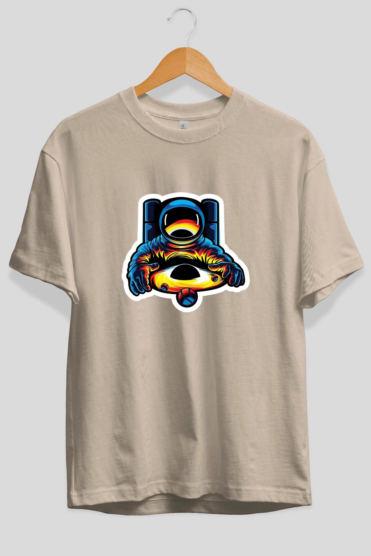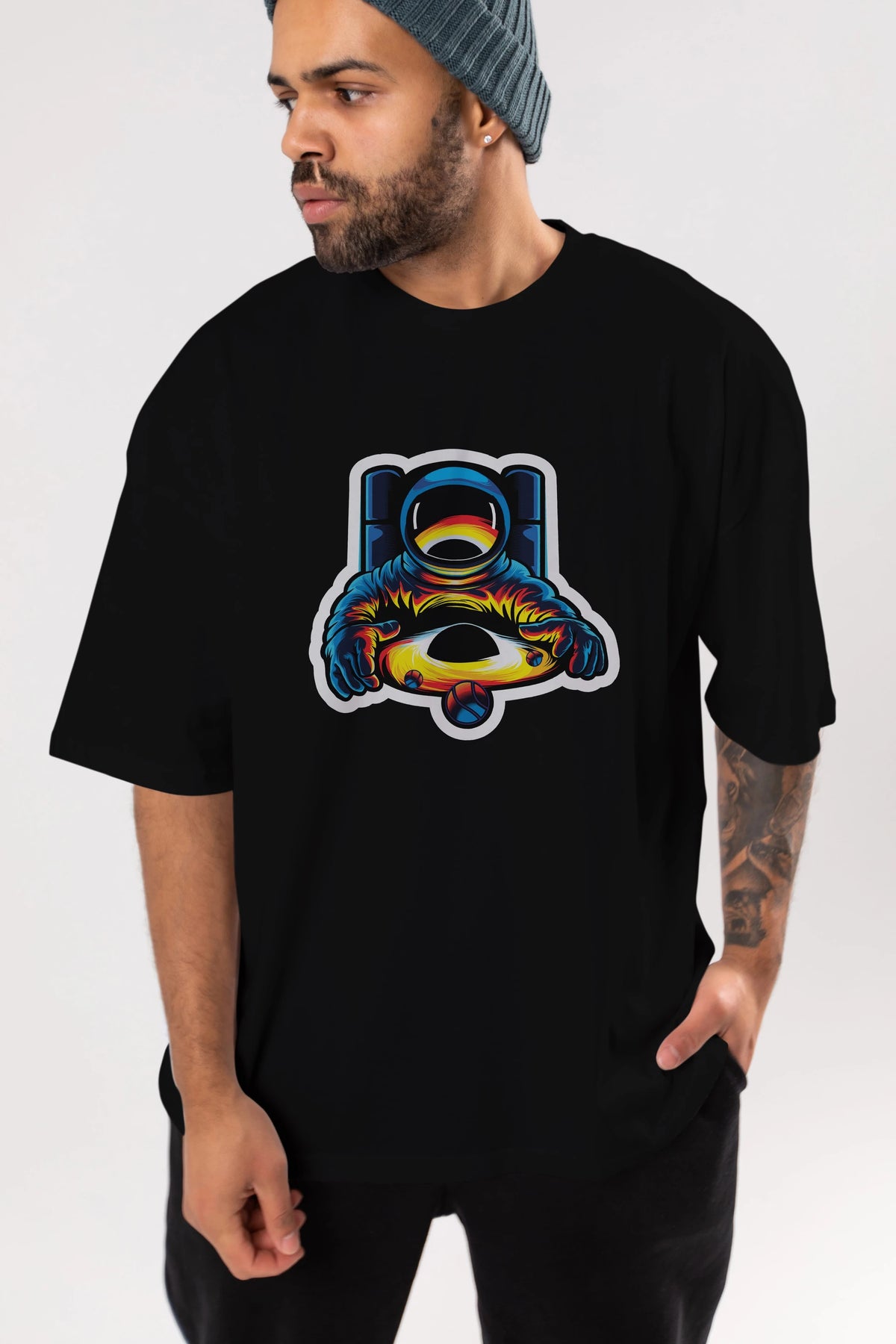 Astronaut & Black Hole Sticker Ön Baskılı Oversize t-shirt Erkek Kadın Unisex