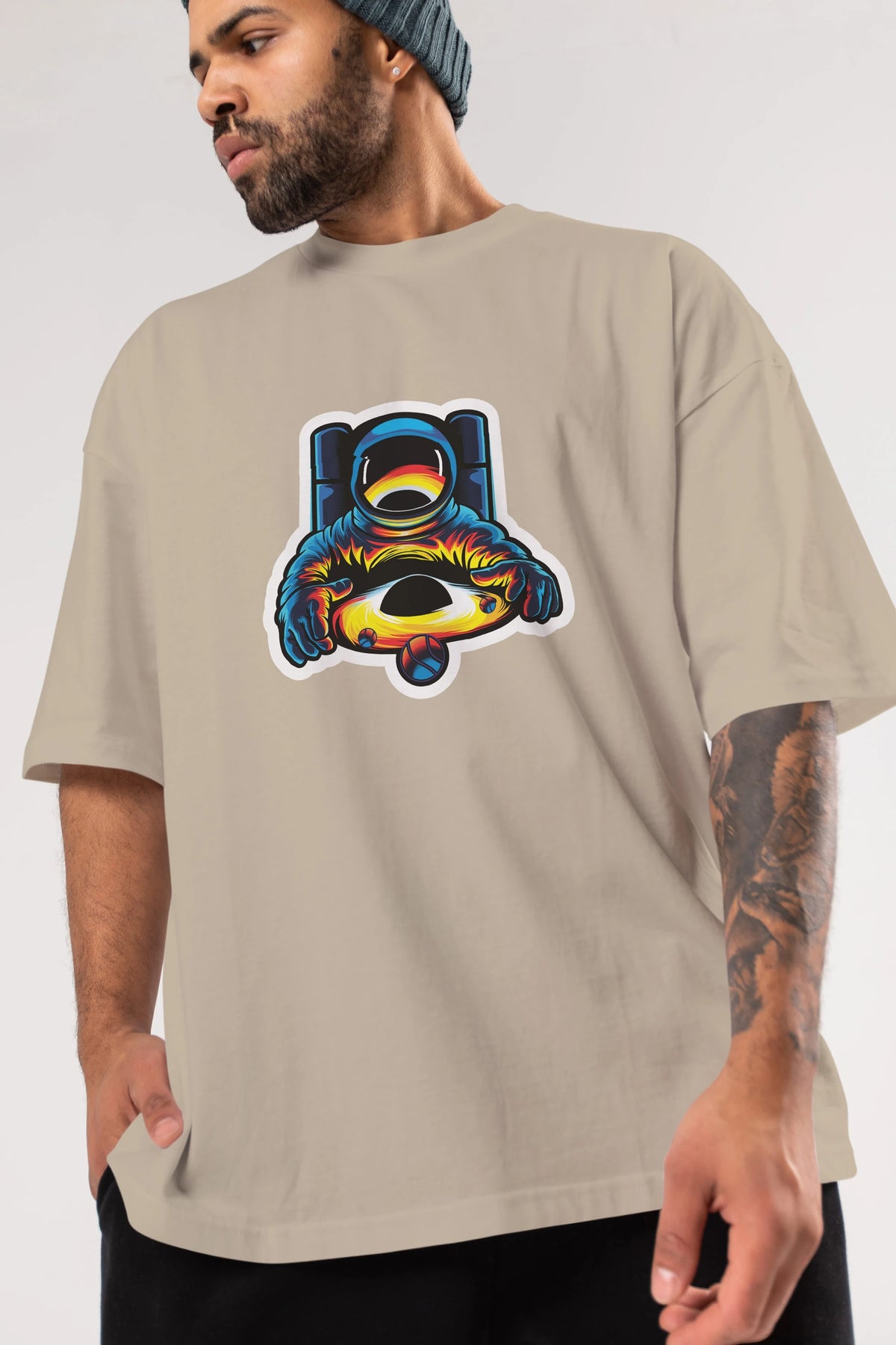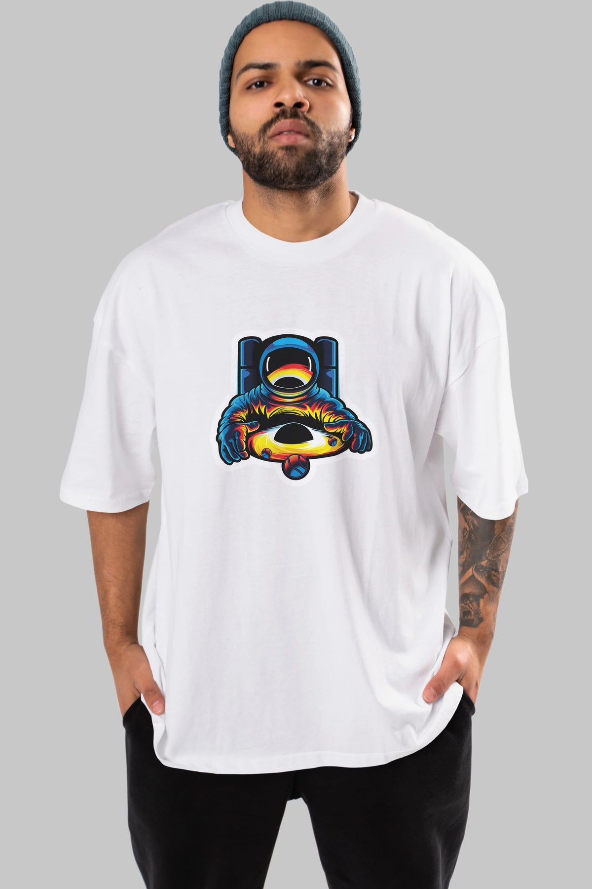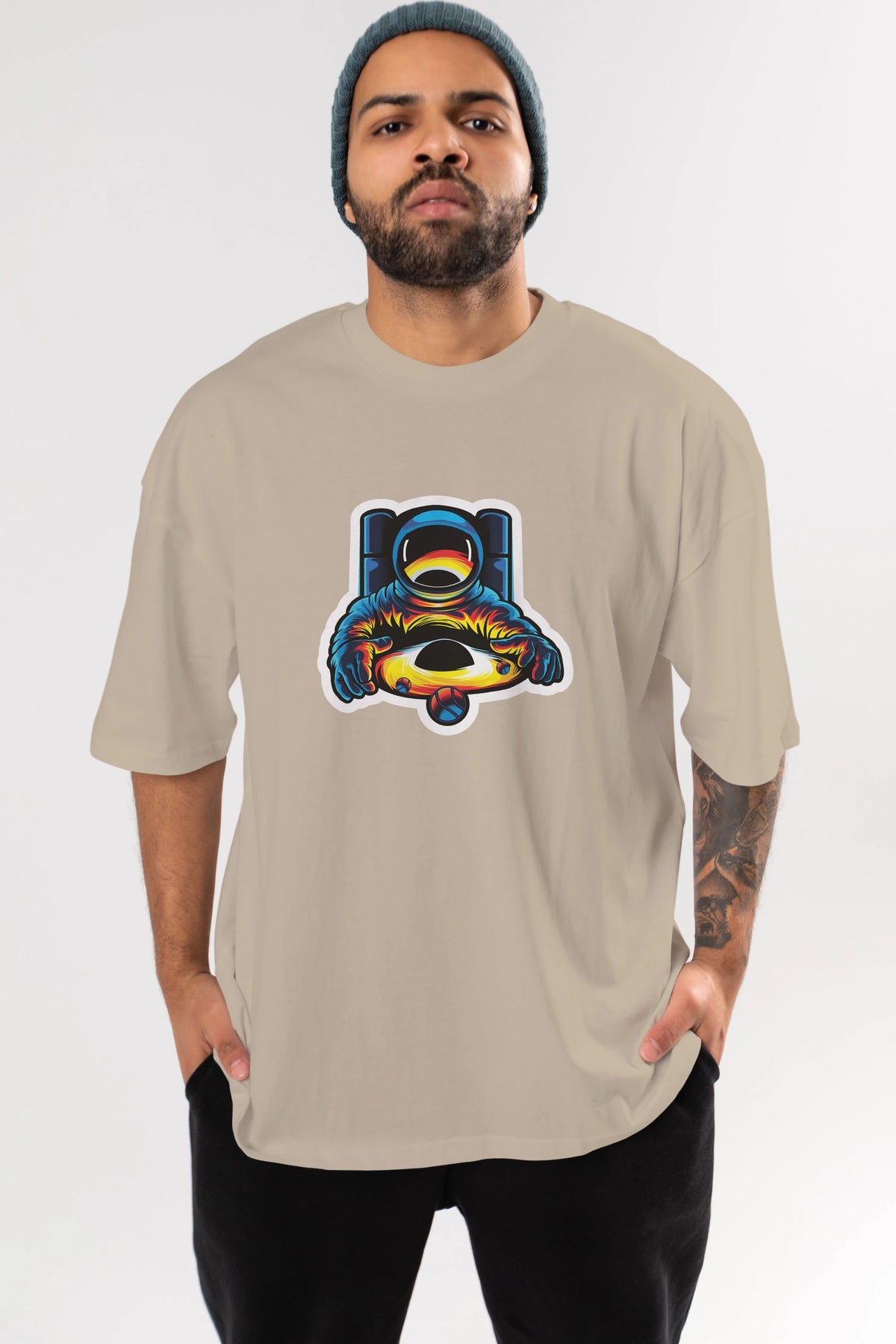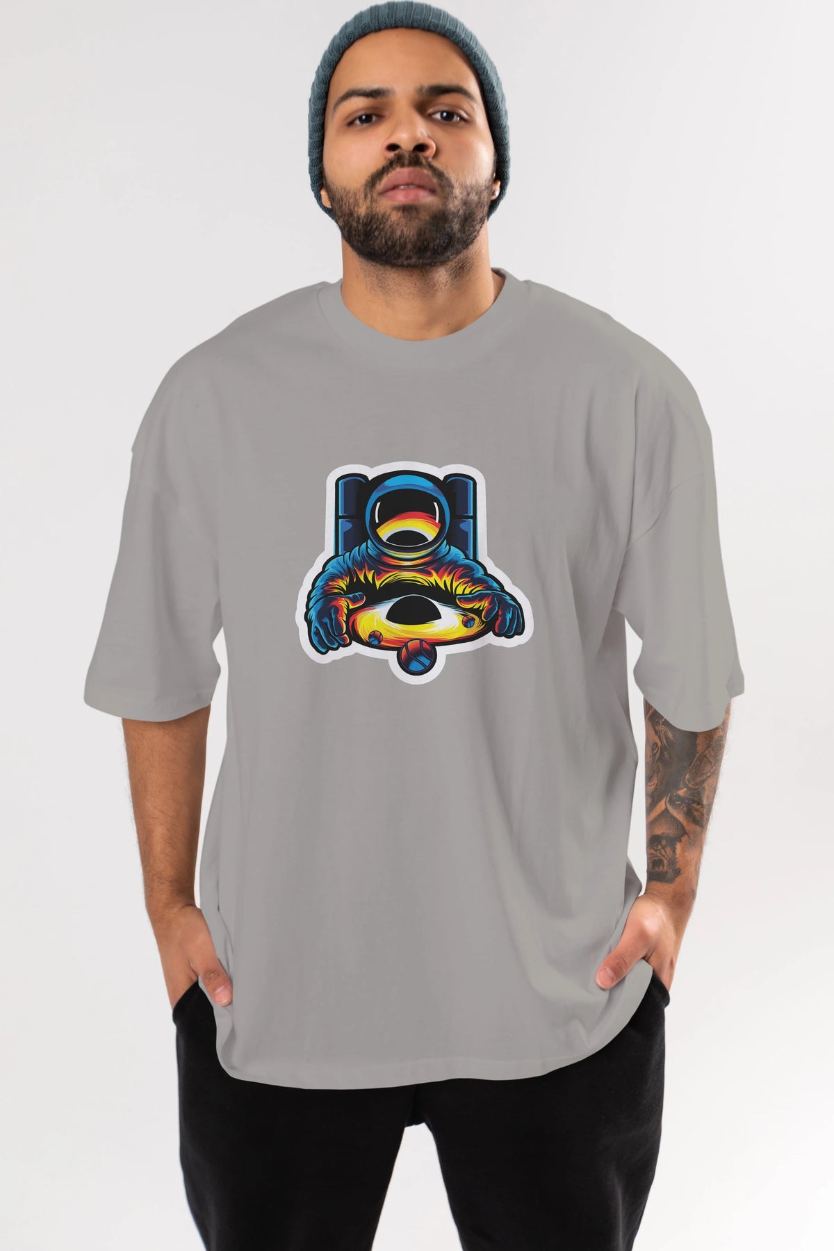 Astronaut & Black Hole Sticker Ön Baskılı Oversize t-shirt Erkek Kadın Unisex