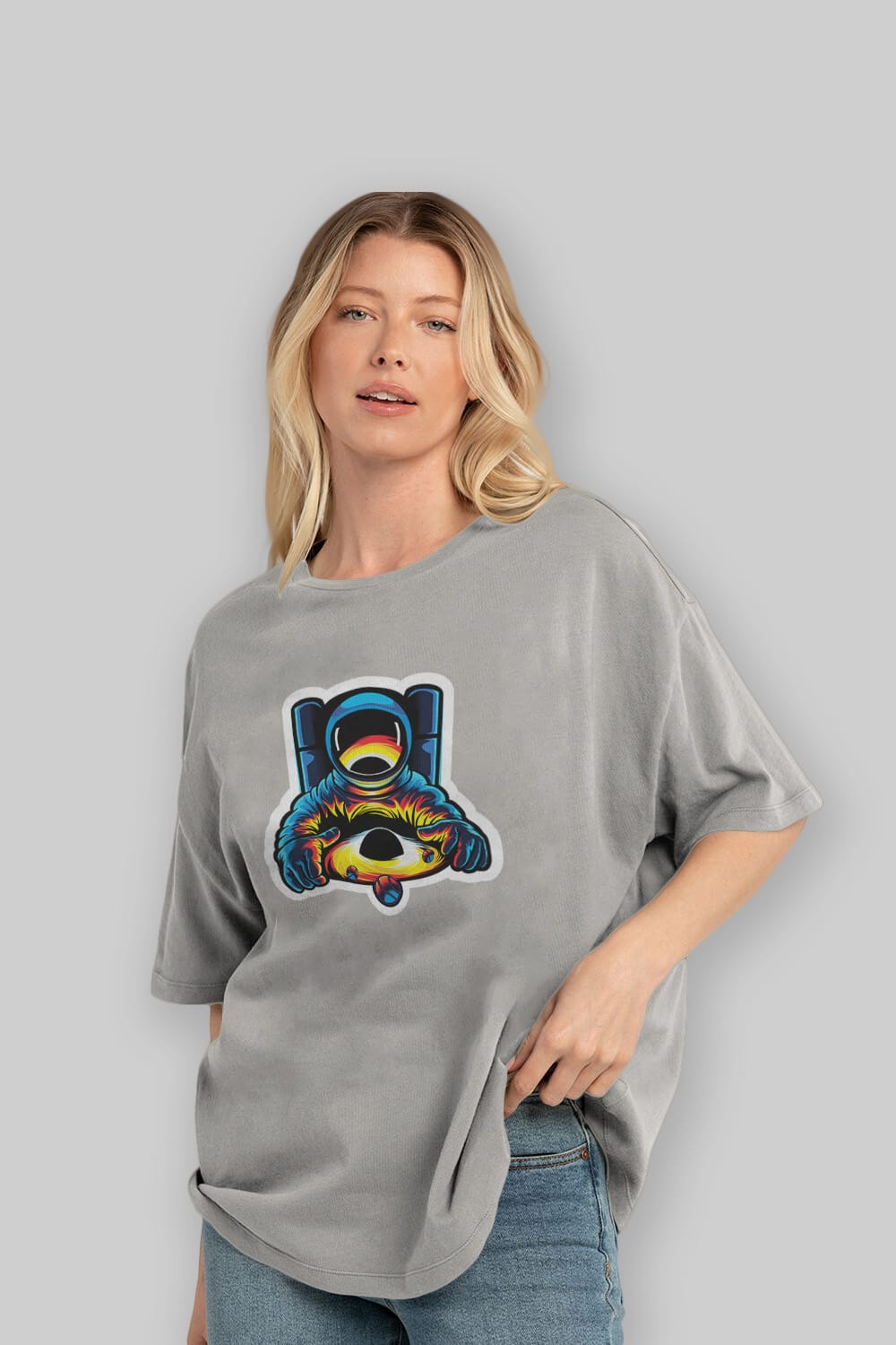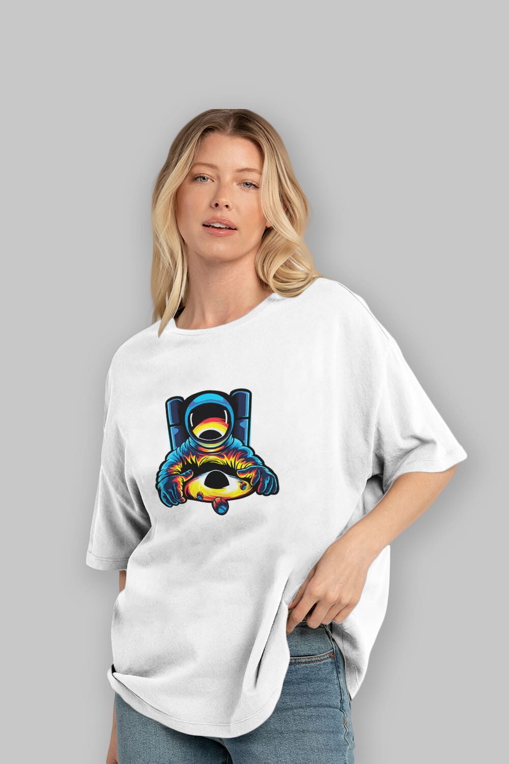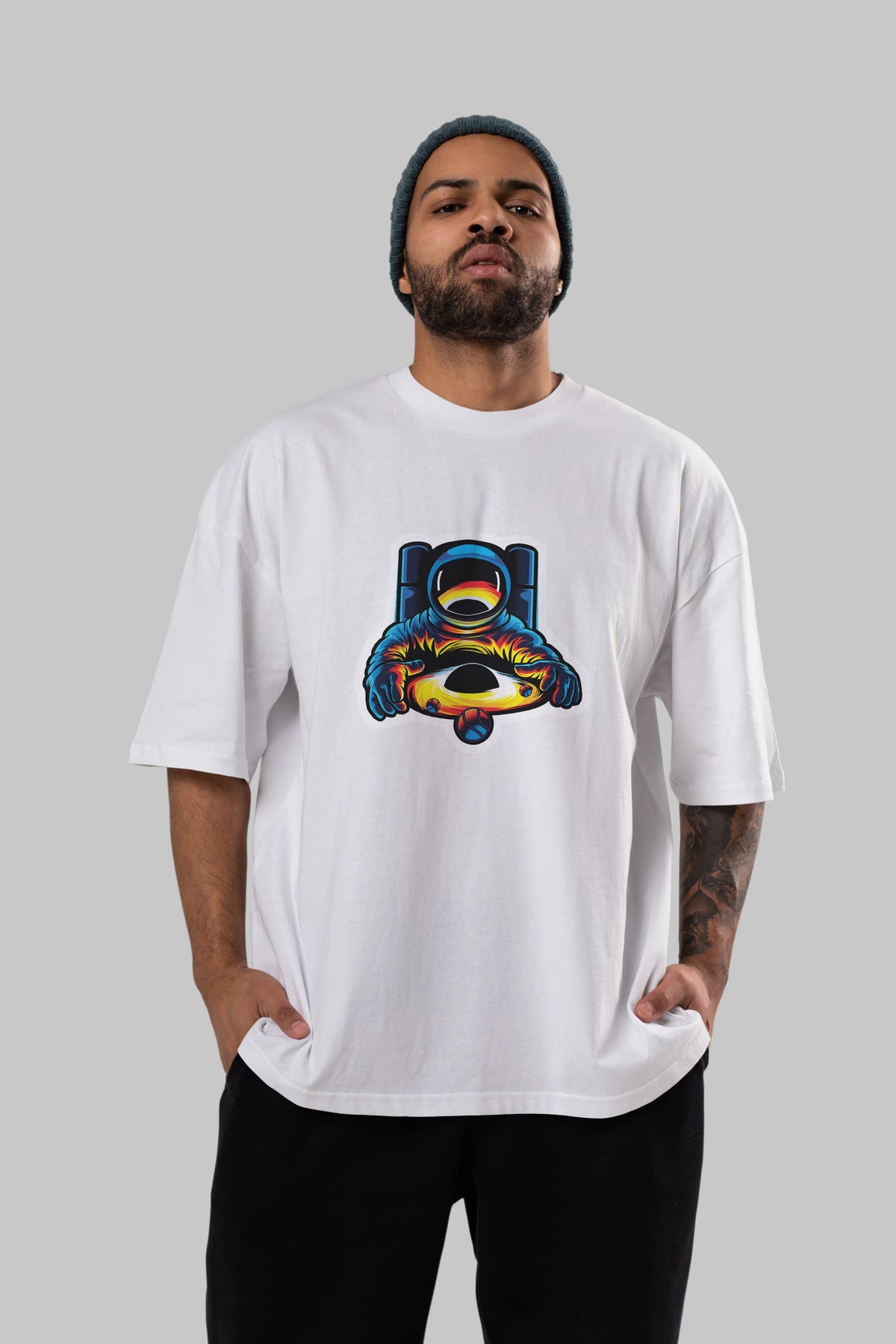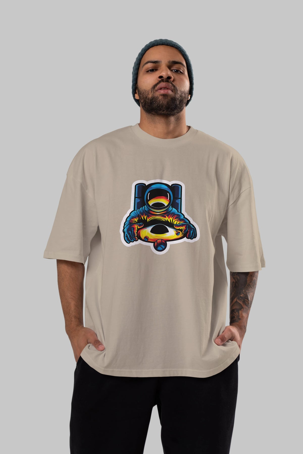 Astronaut & Black Hole Sticker Ön Baskılı Oversize t-shirt Erkek Kadın Unisex