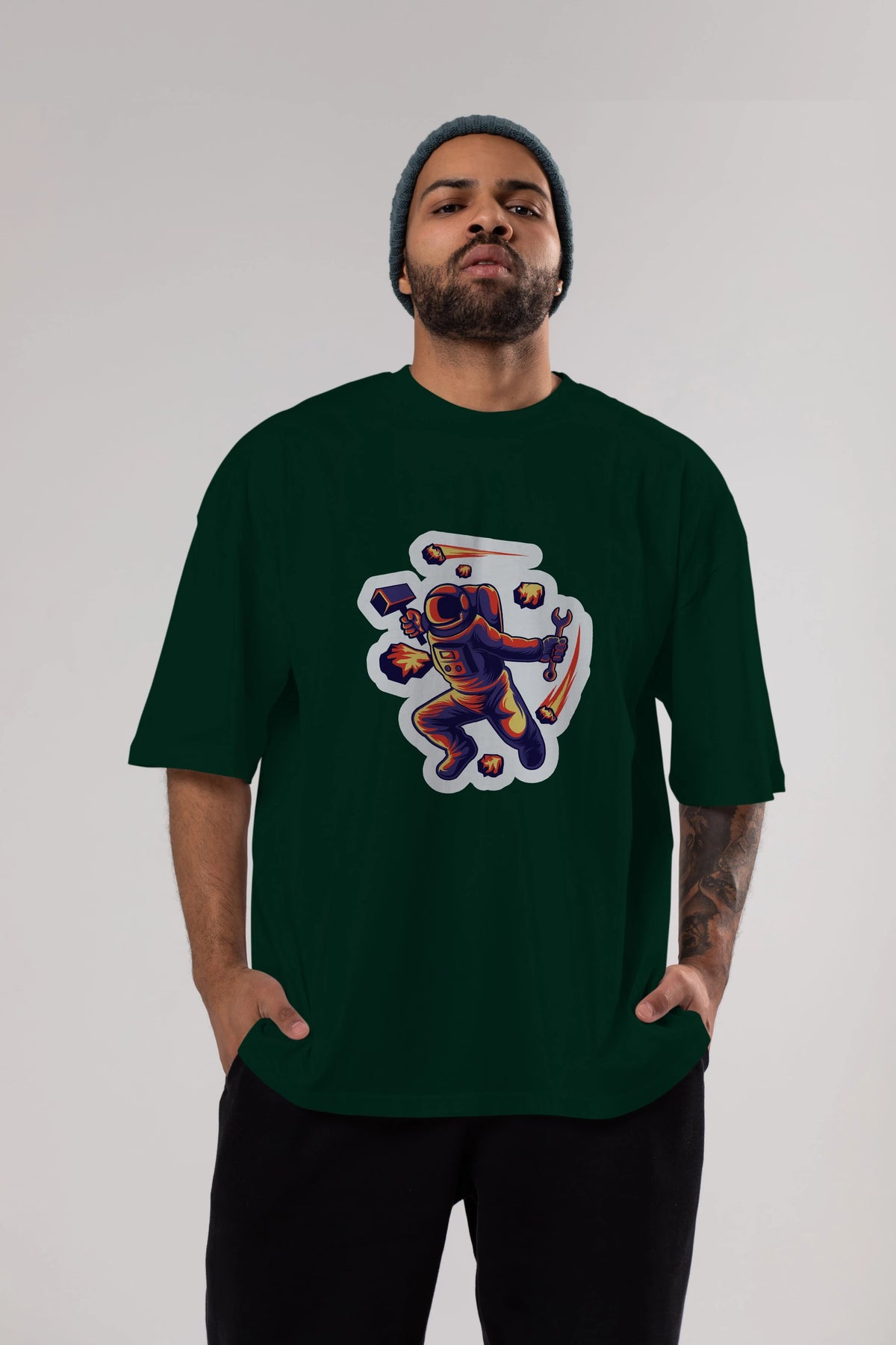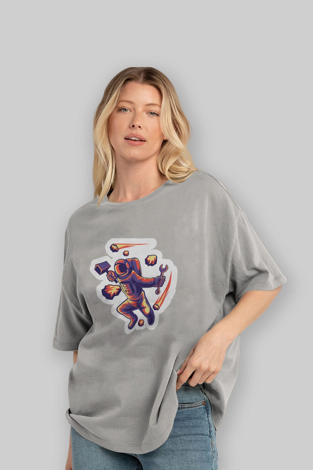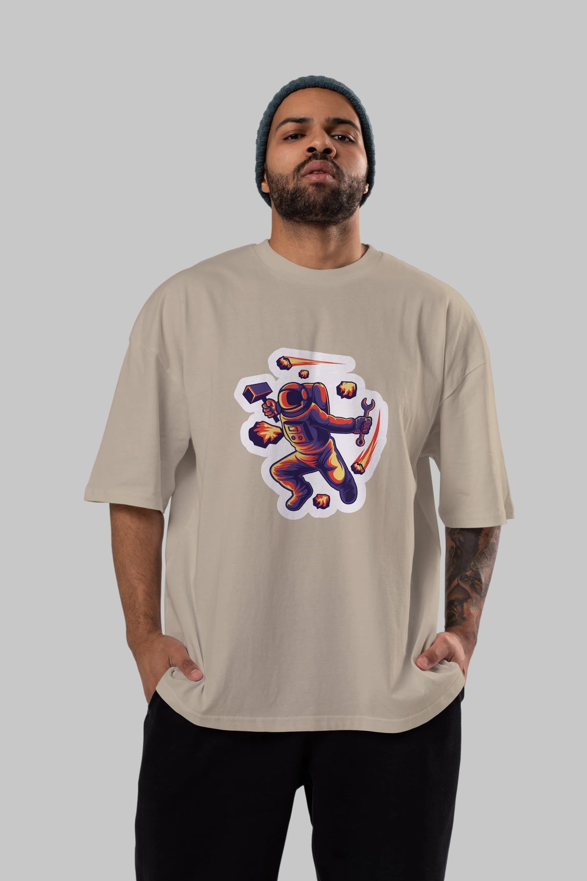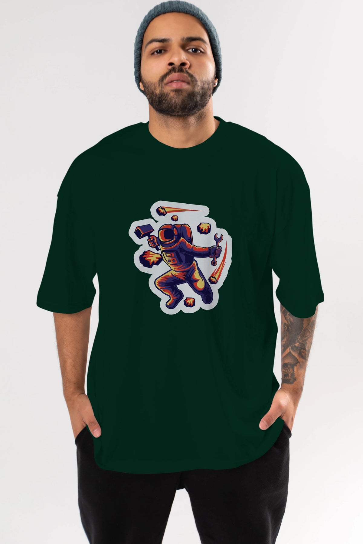 Astronaut Block Meteor Sticker Ön Baskılı Oversize t-shirt Erkek Kadın Unisex