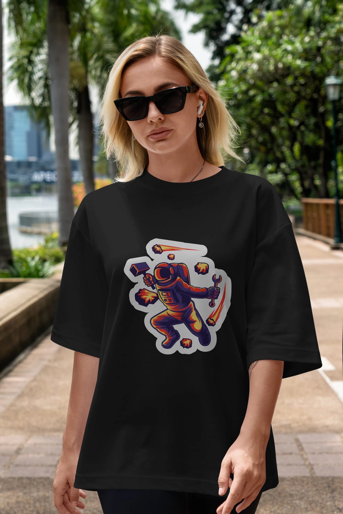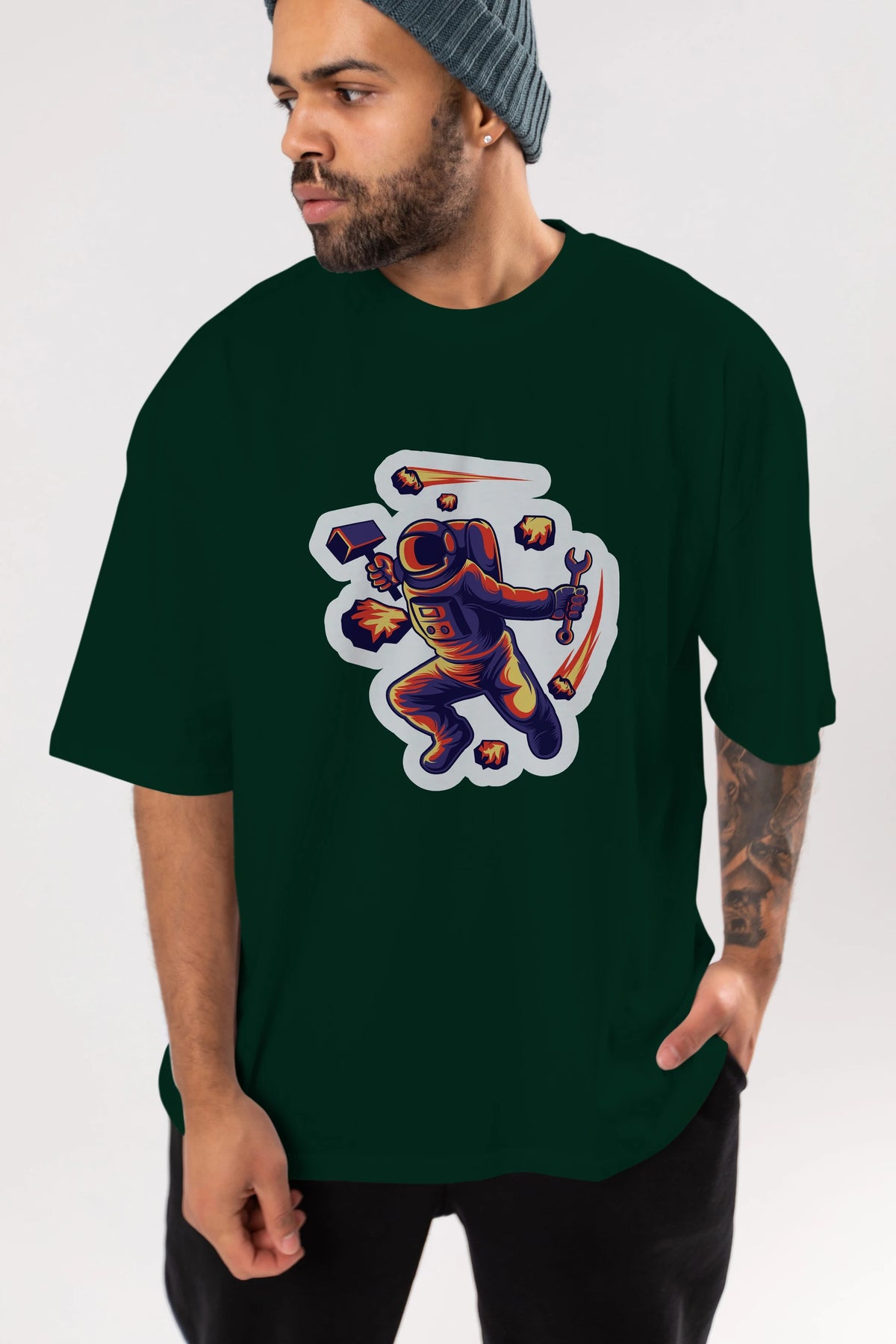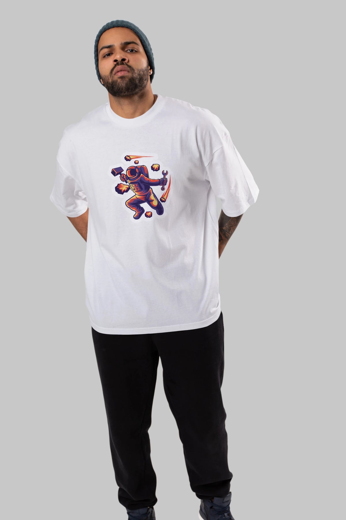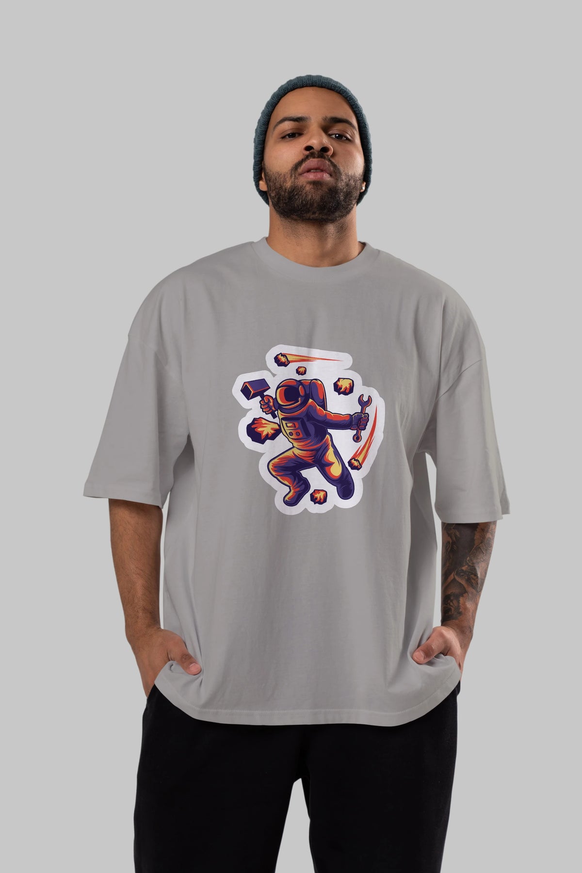 Astronaut Block Meteor Sticker Ön Baskılı Oversize t-shirt Erkek Kadın Unisex