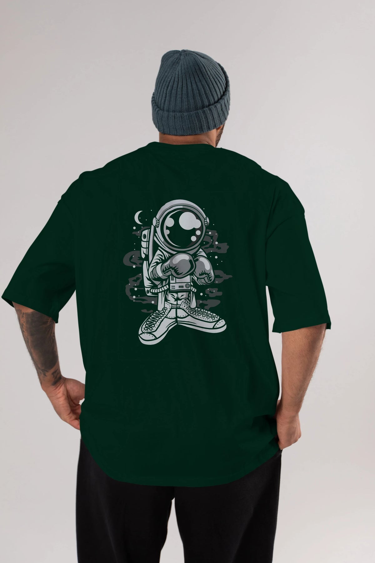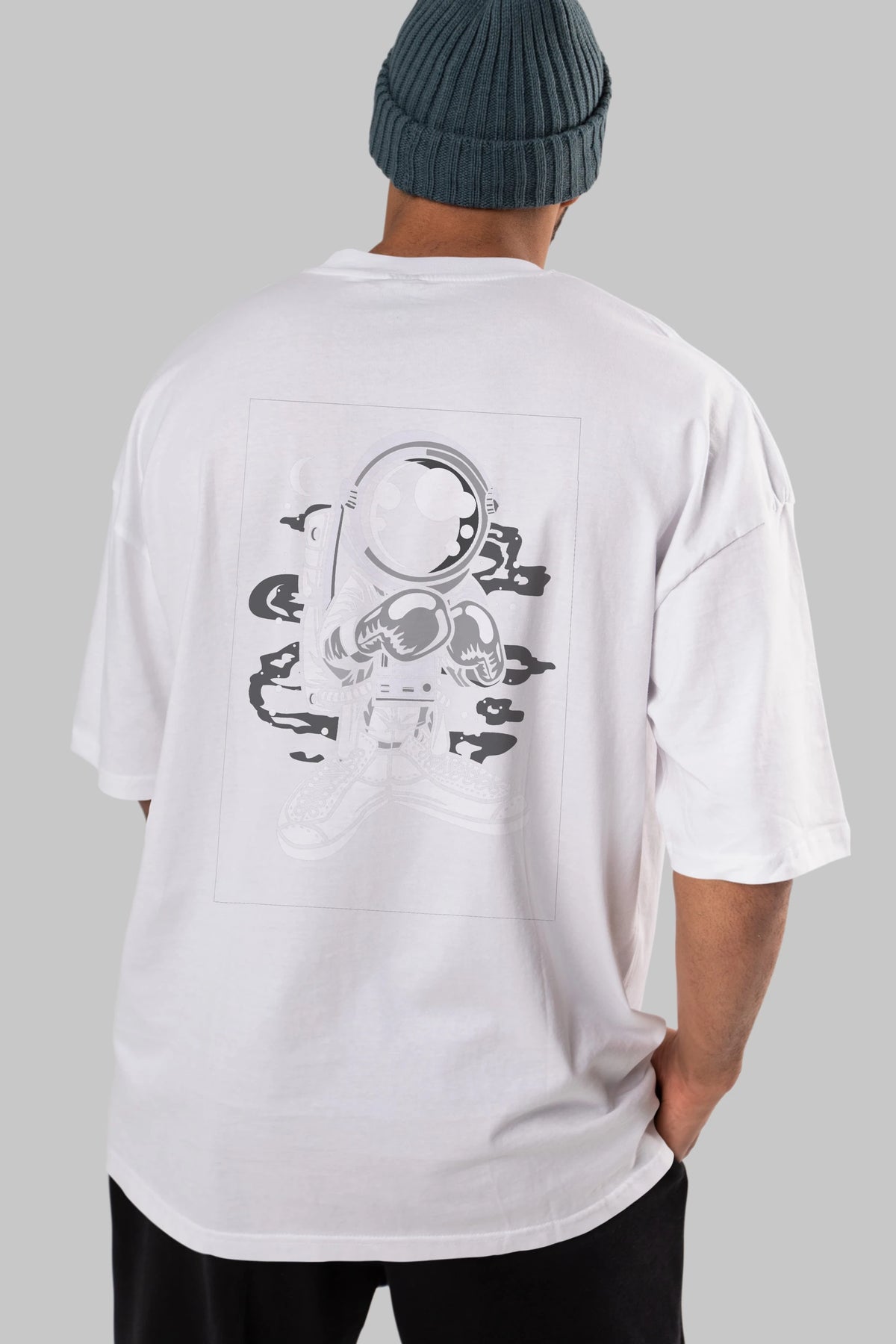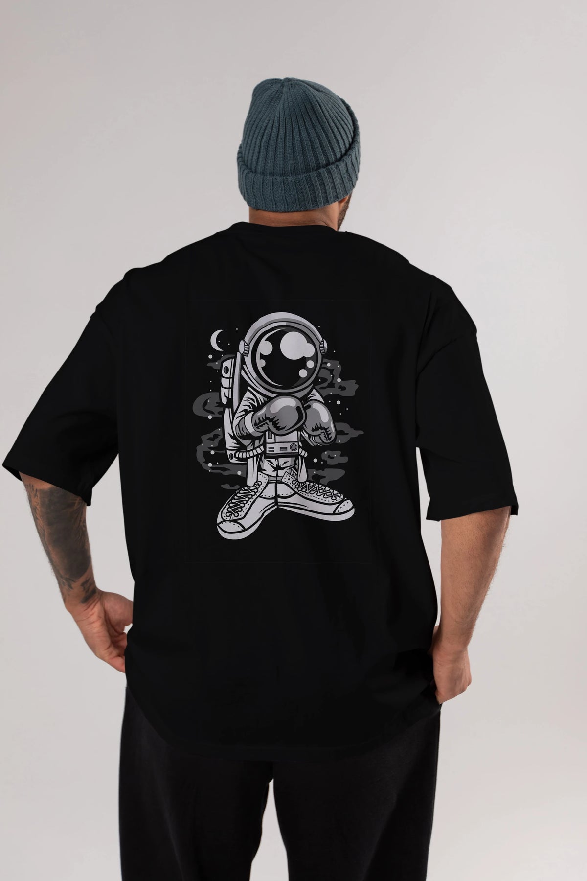 Astronaut Boxer Arka Baskılı Oversize t-shirt Erkek Kadın Unisex