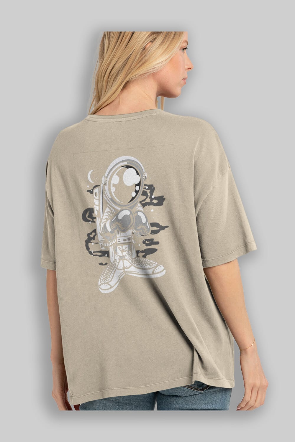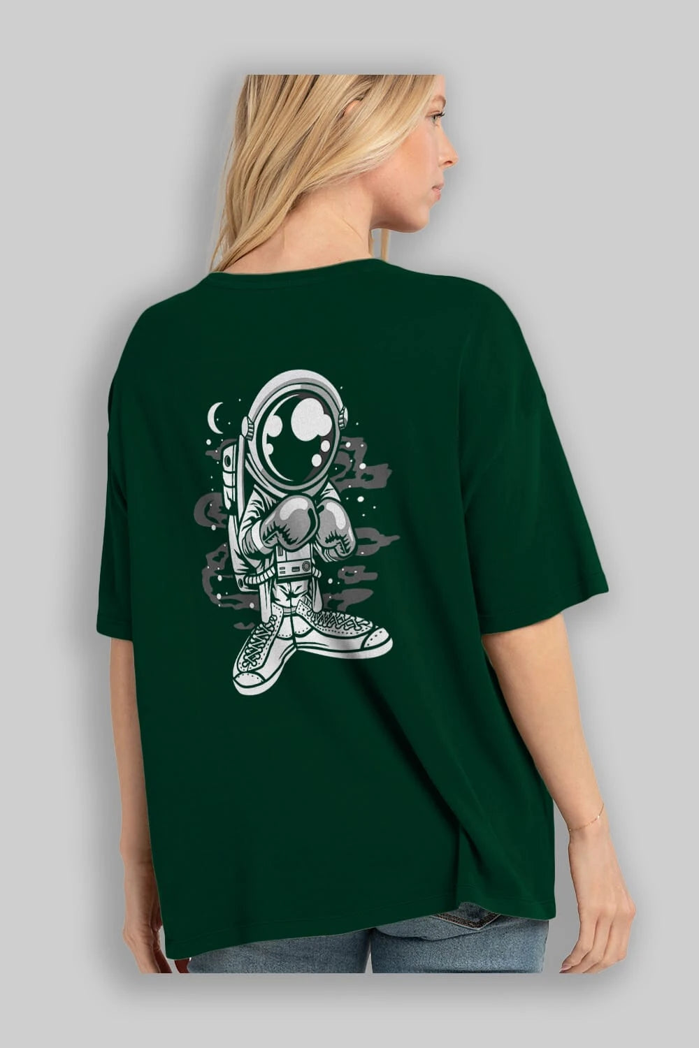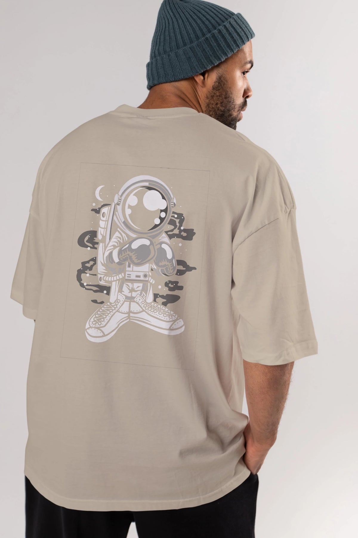 Astronaut Boxer Arka Baskılı Oversize t-shirt Erkek Kadın Unisex
