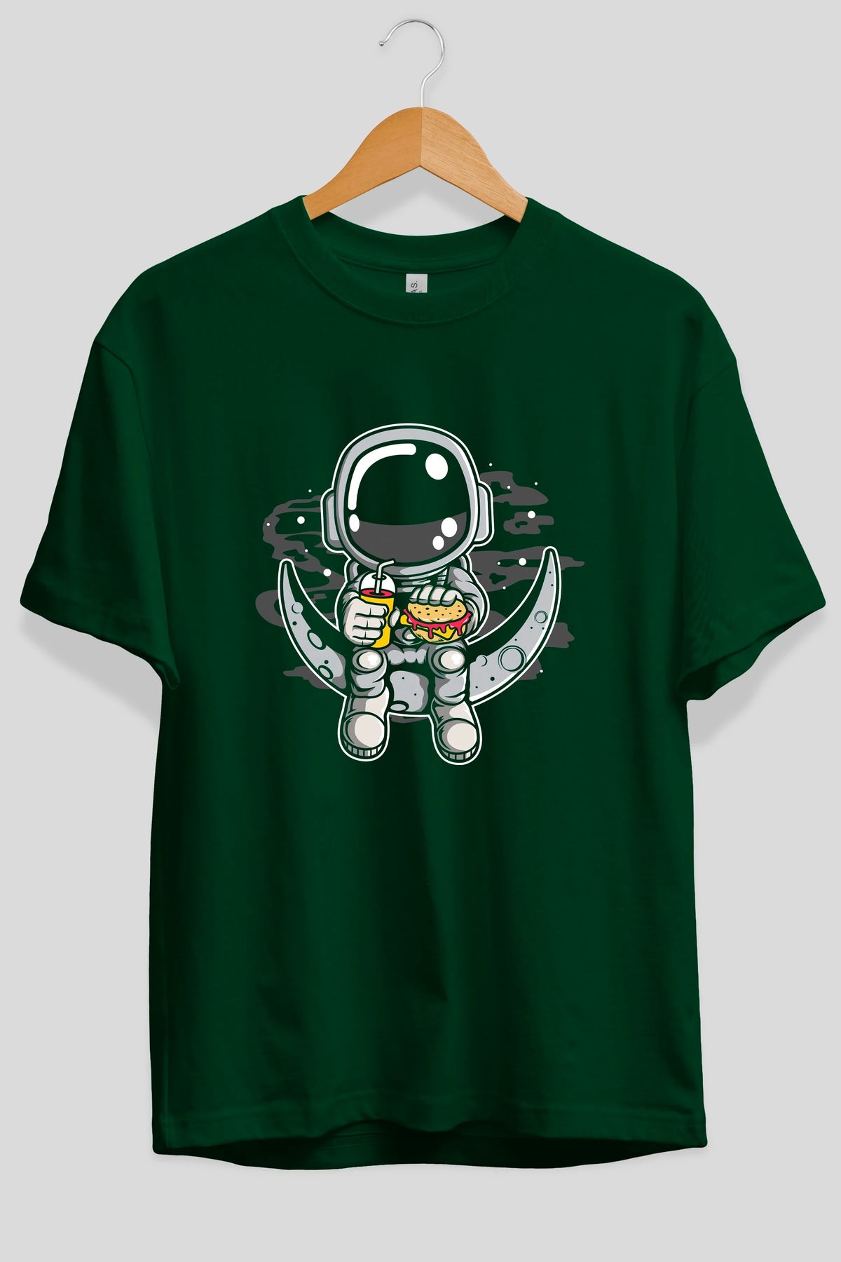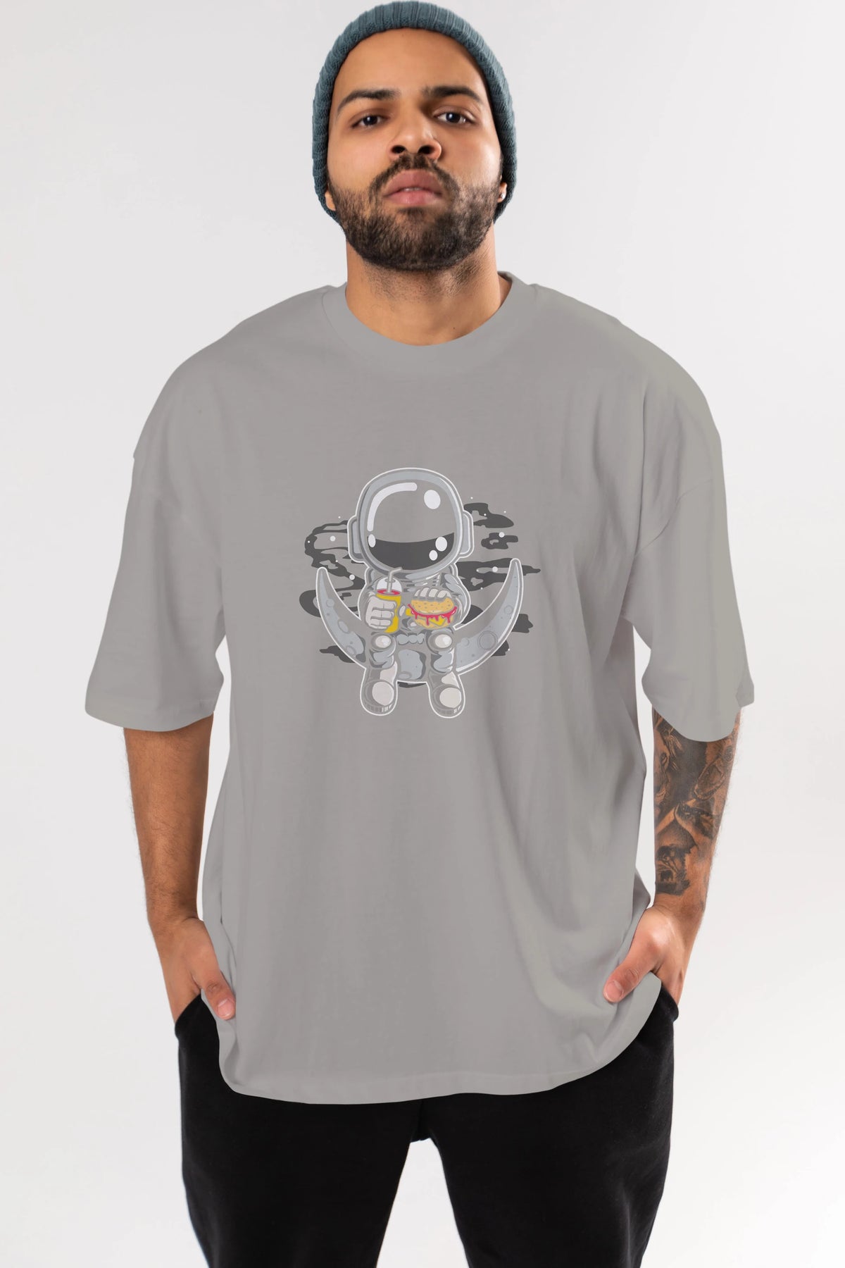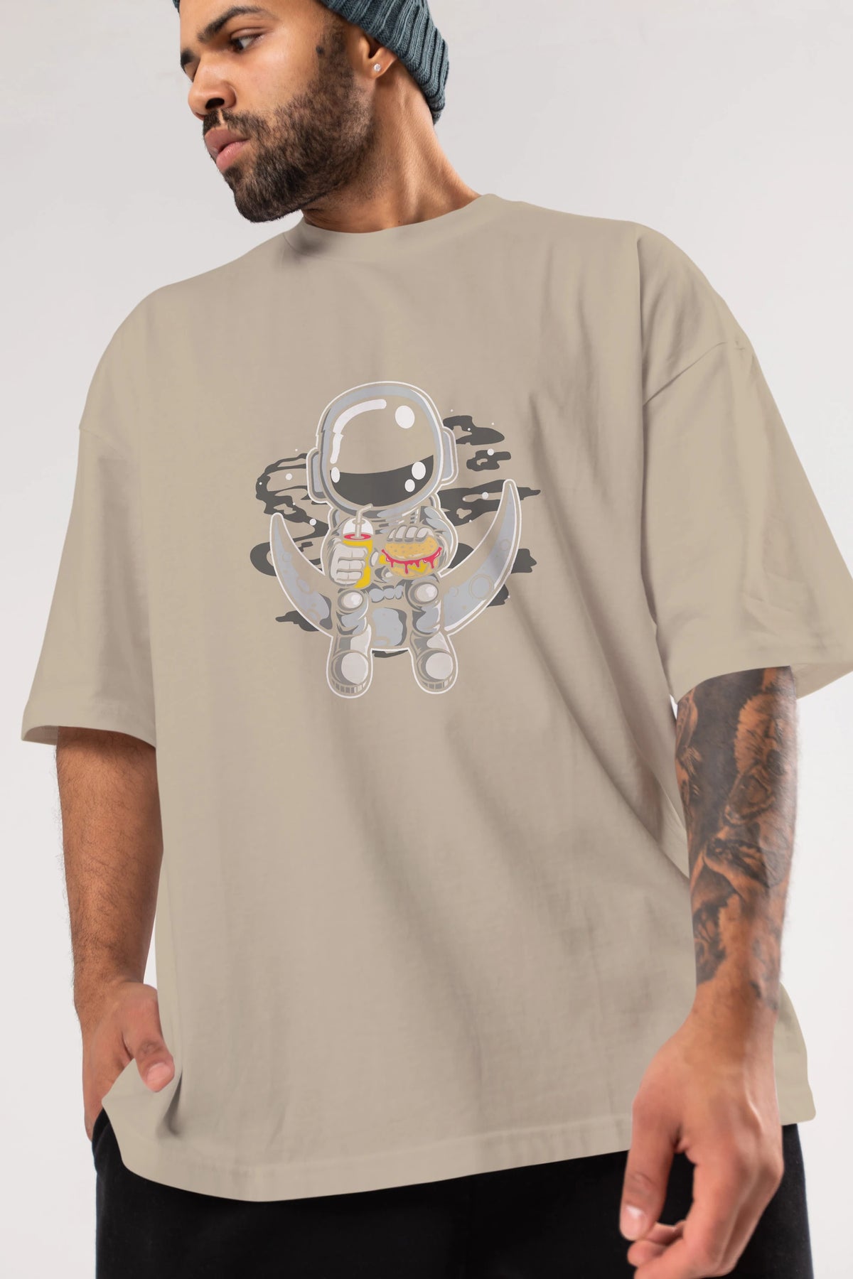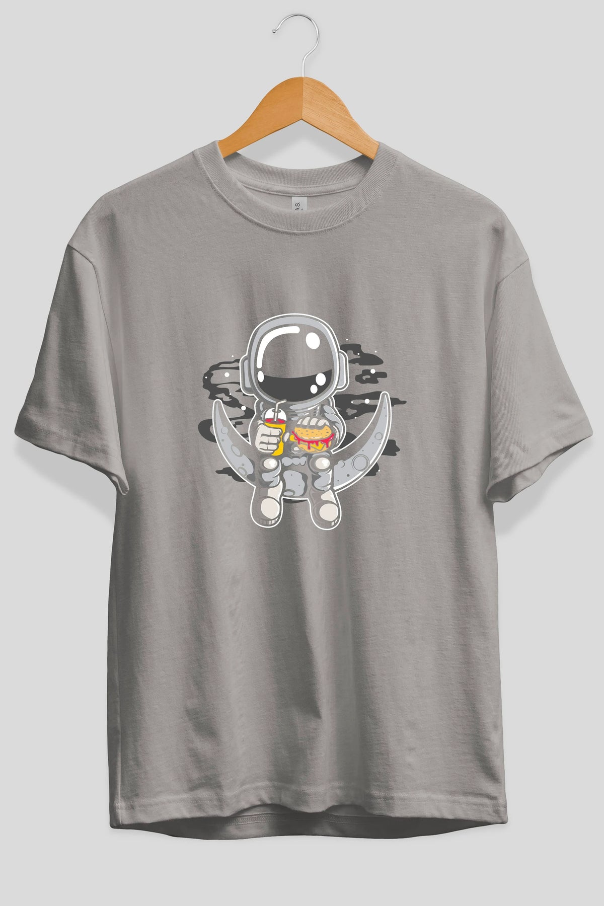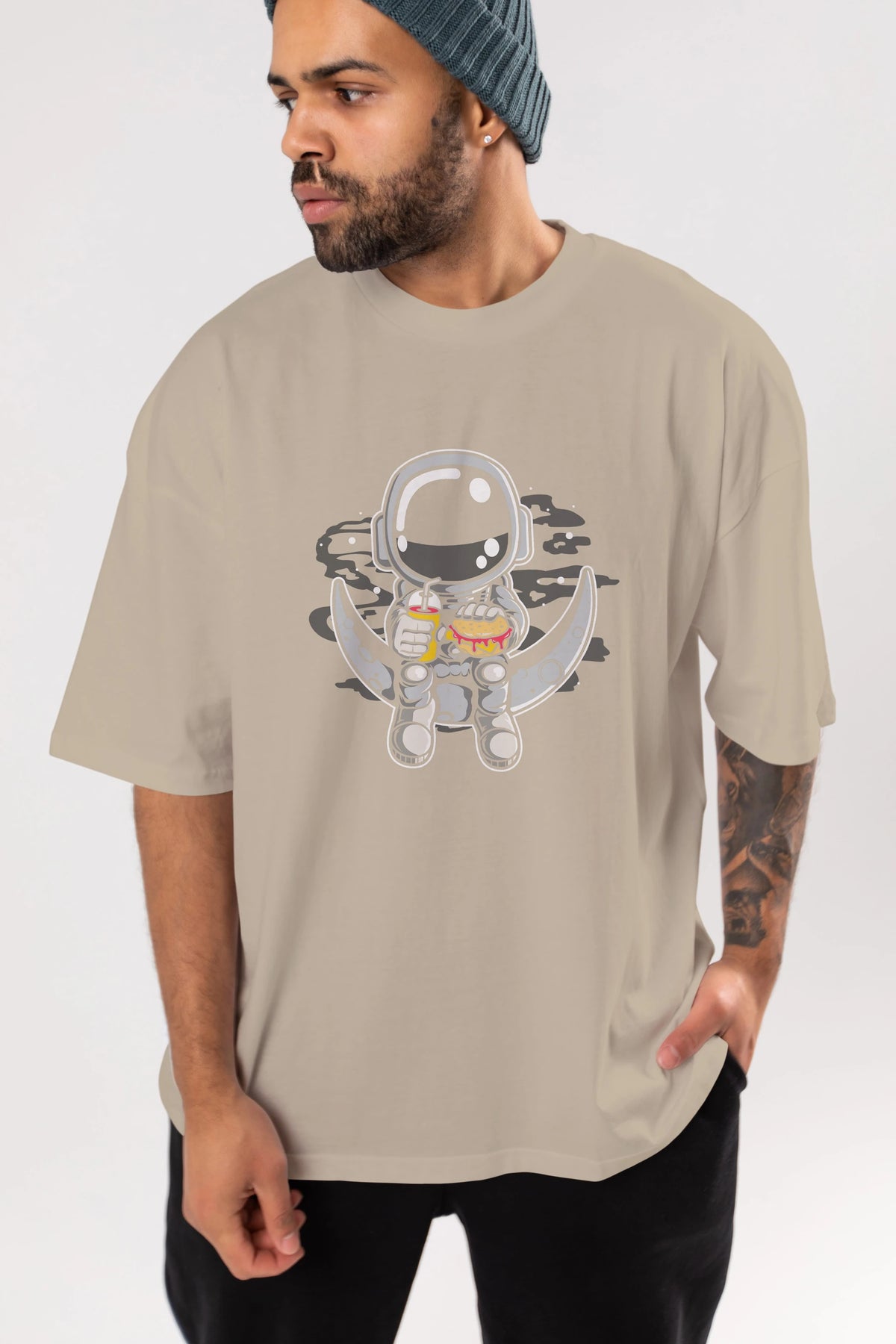 Astronaut Crescent Ön Baskılı Oversize t-shirt Erkek Kadın Unisex