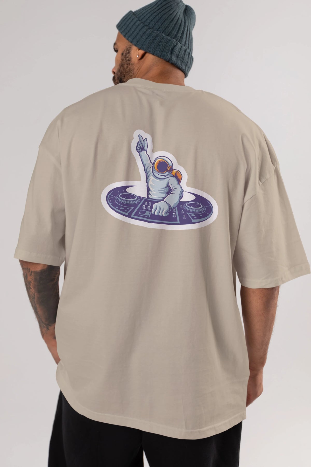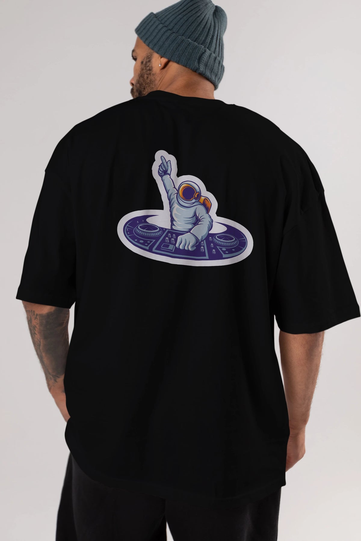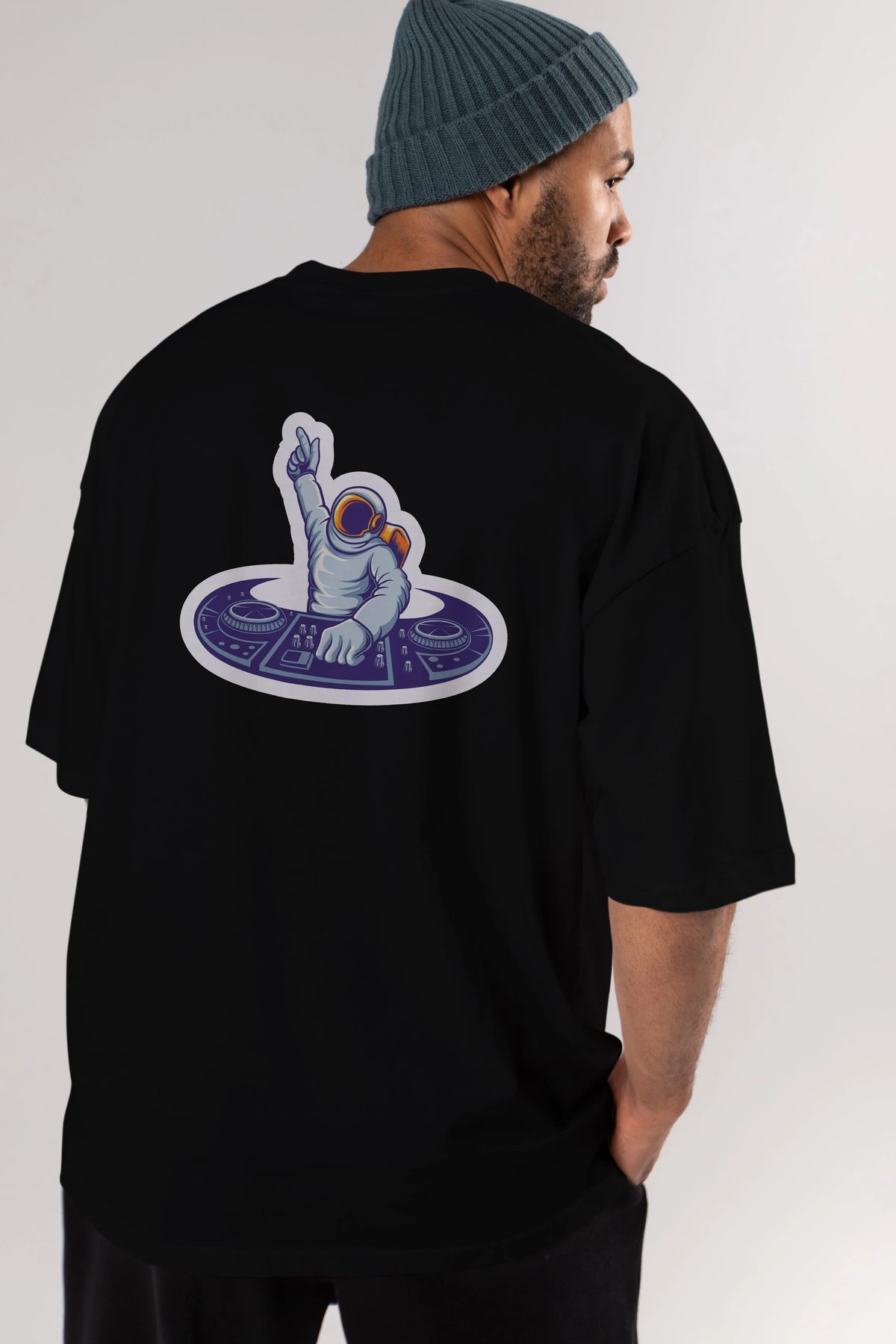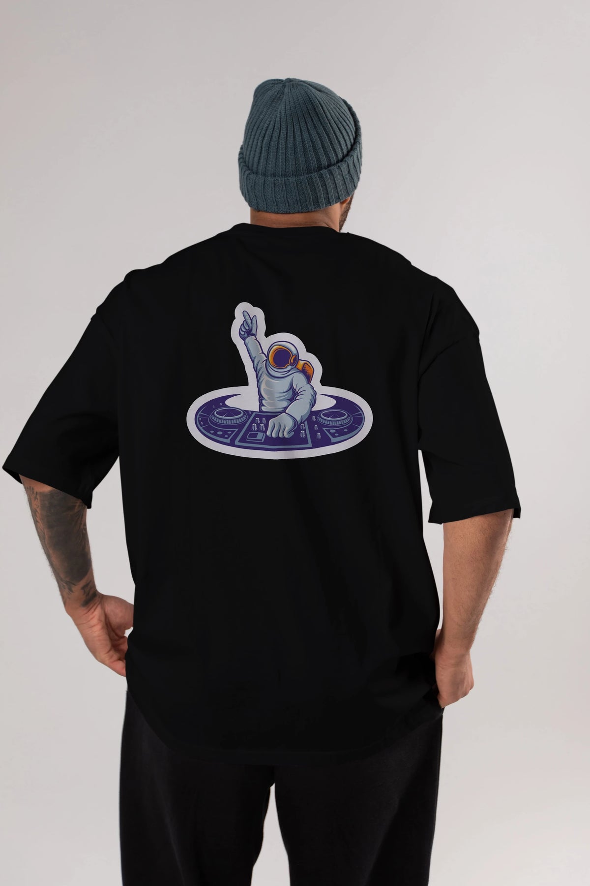 Astronaut Disk Jockey Party Sticker Arka Baskılı Oversize t-shirt Erkek Kadın Unisex