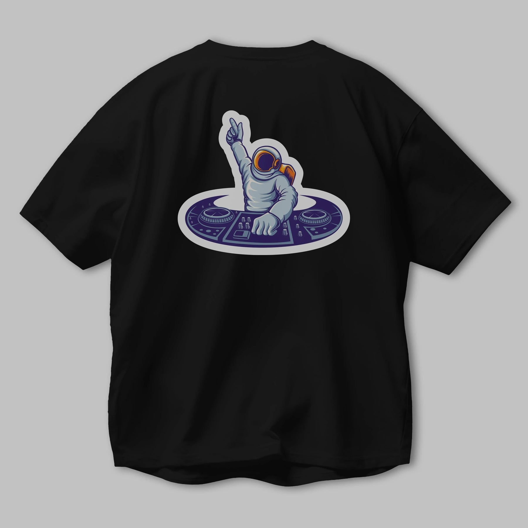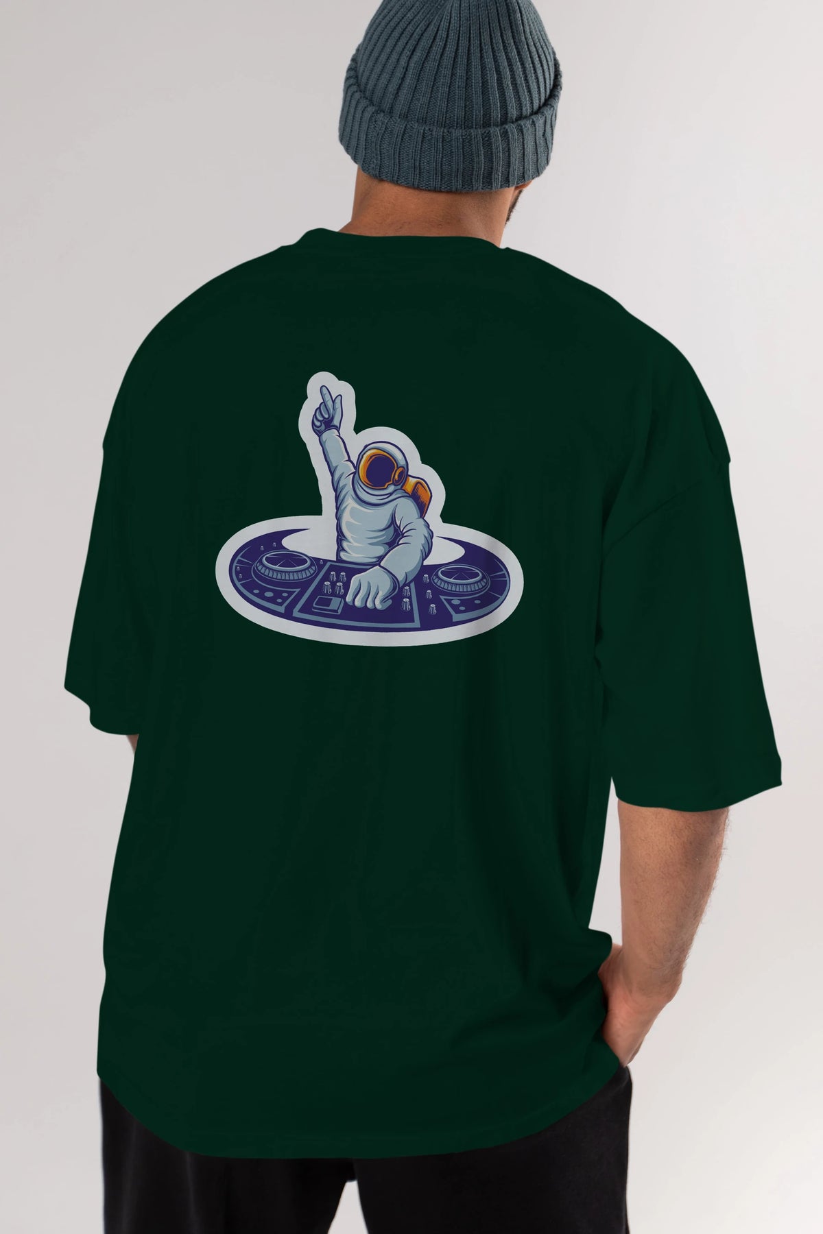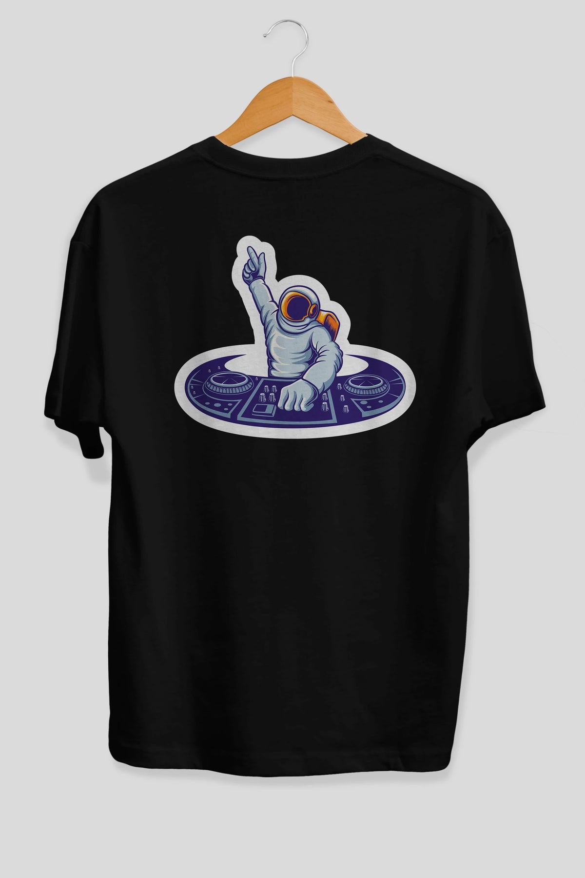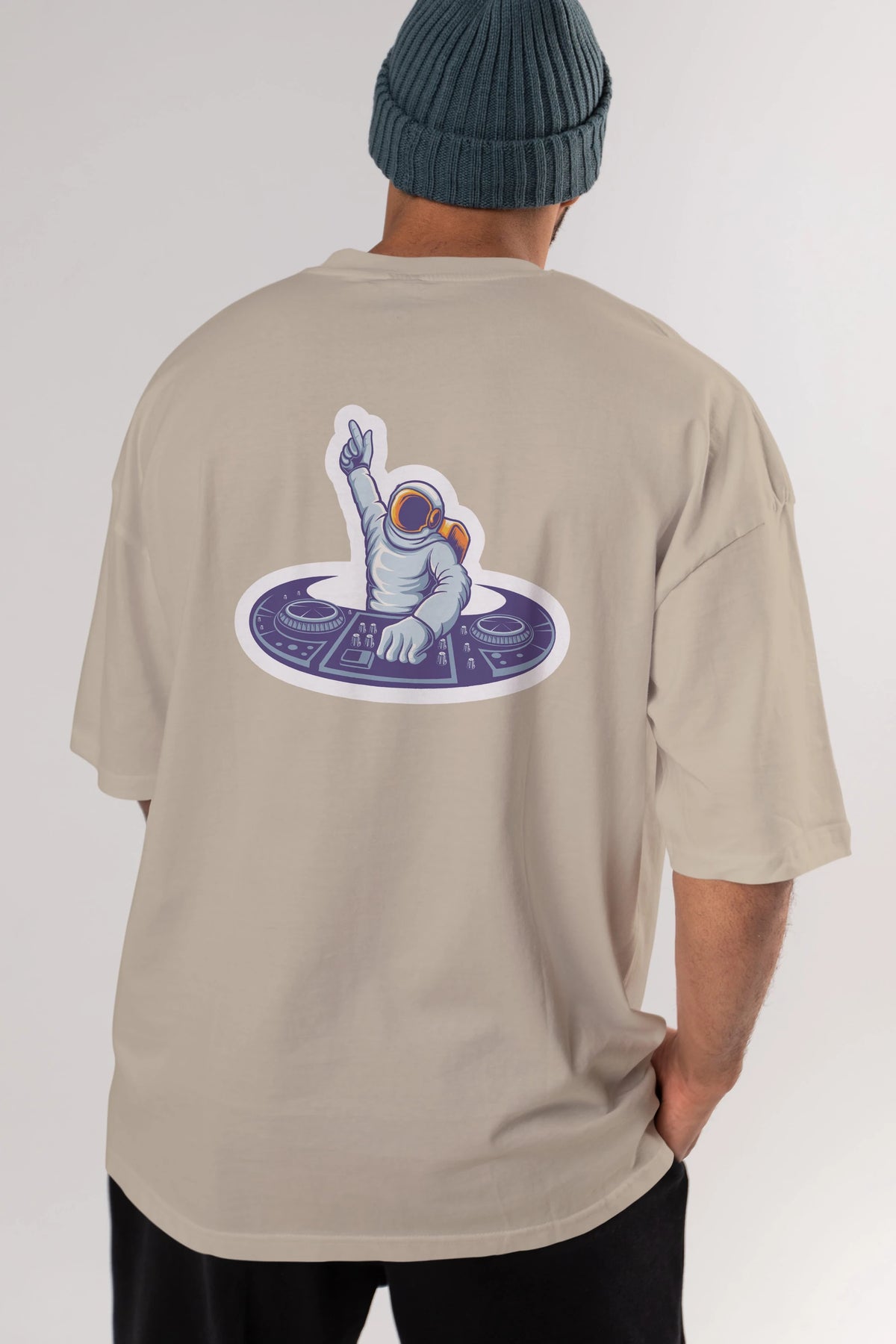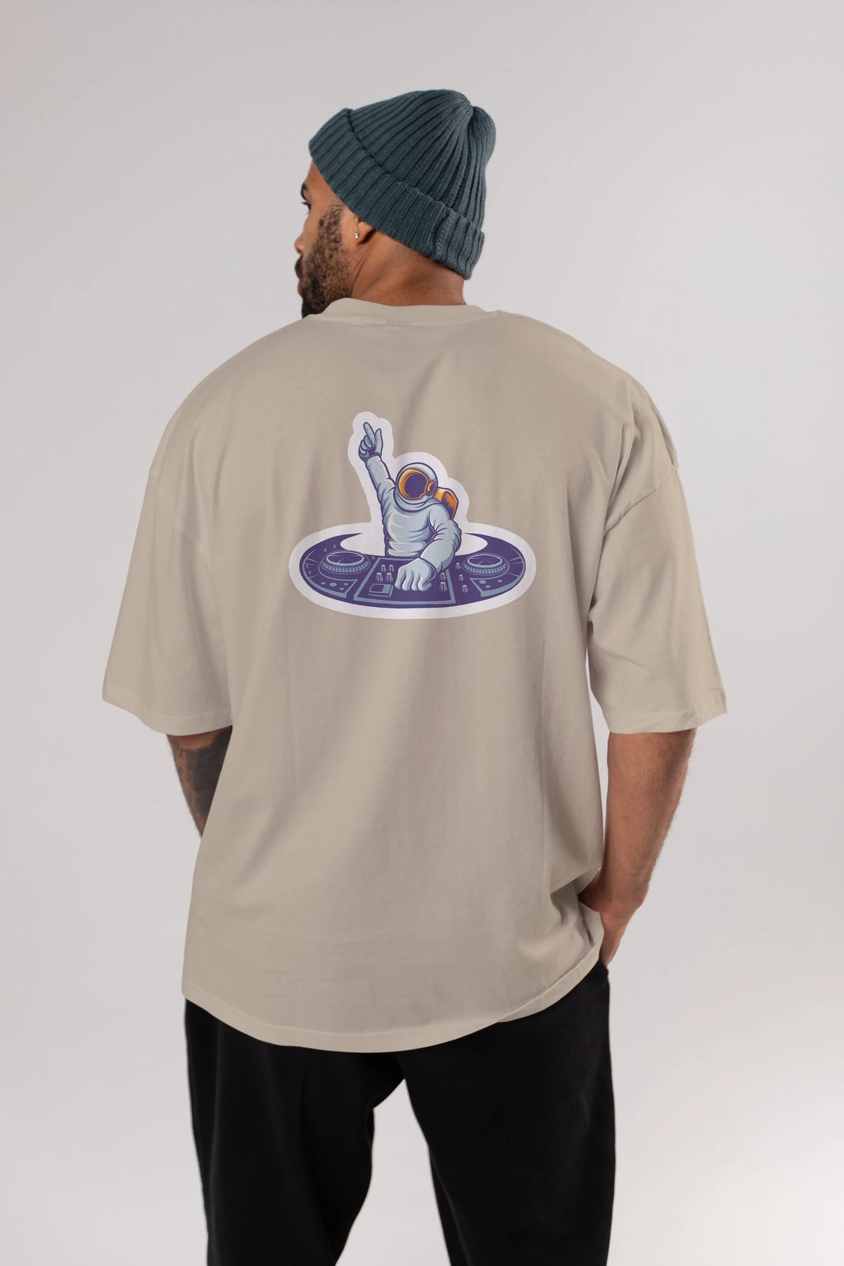 Astronaut Disk Jockey Party Sticker Arka Baskılı Oversize t-shirt Erkek Kadın Unisex
