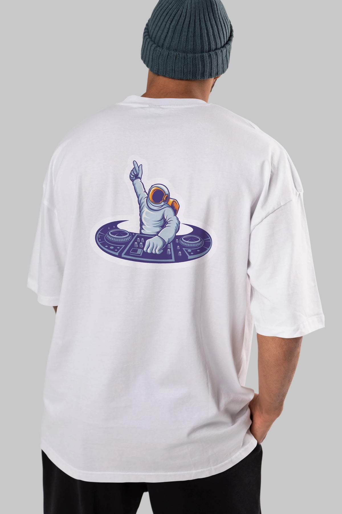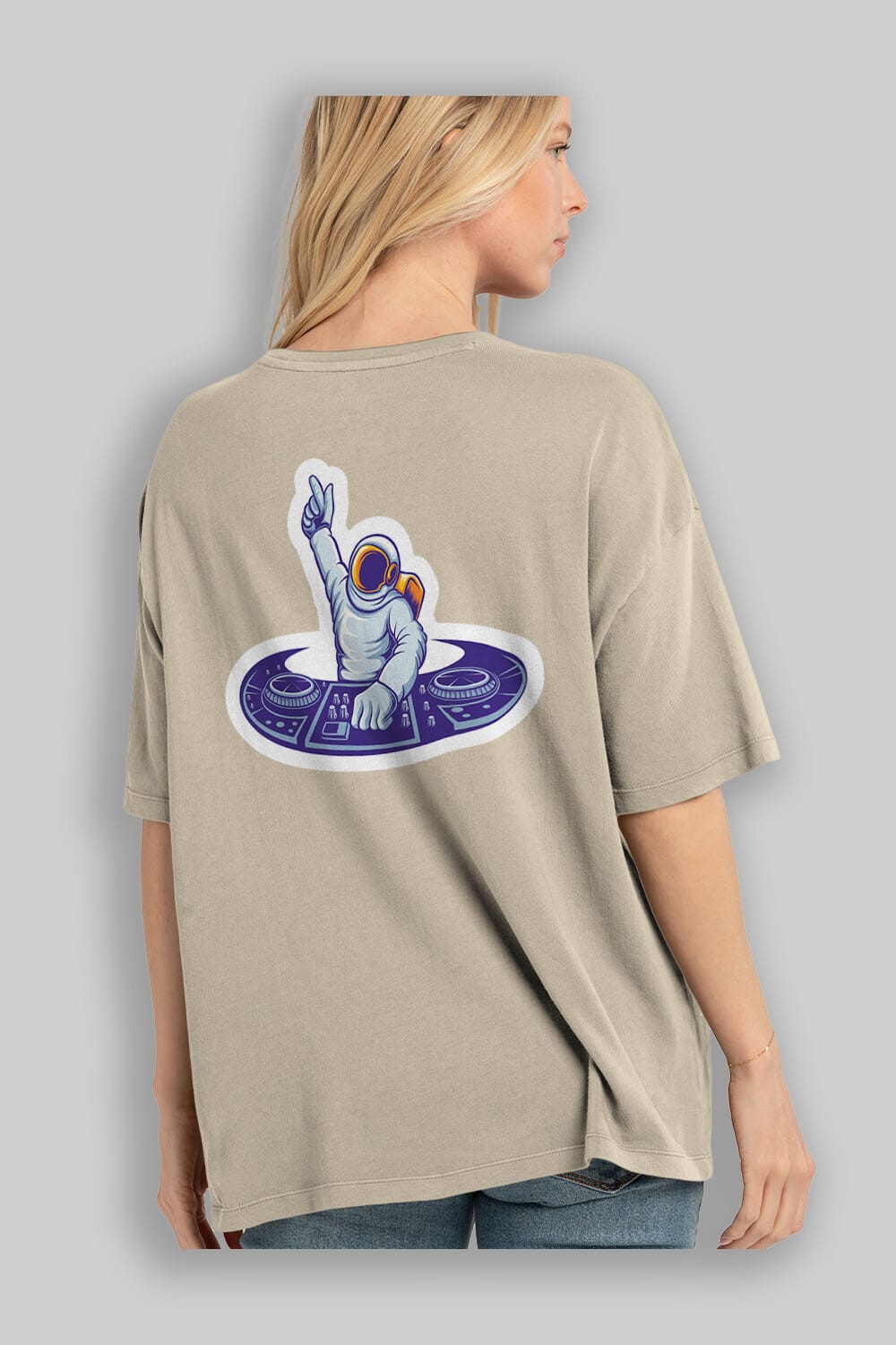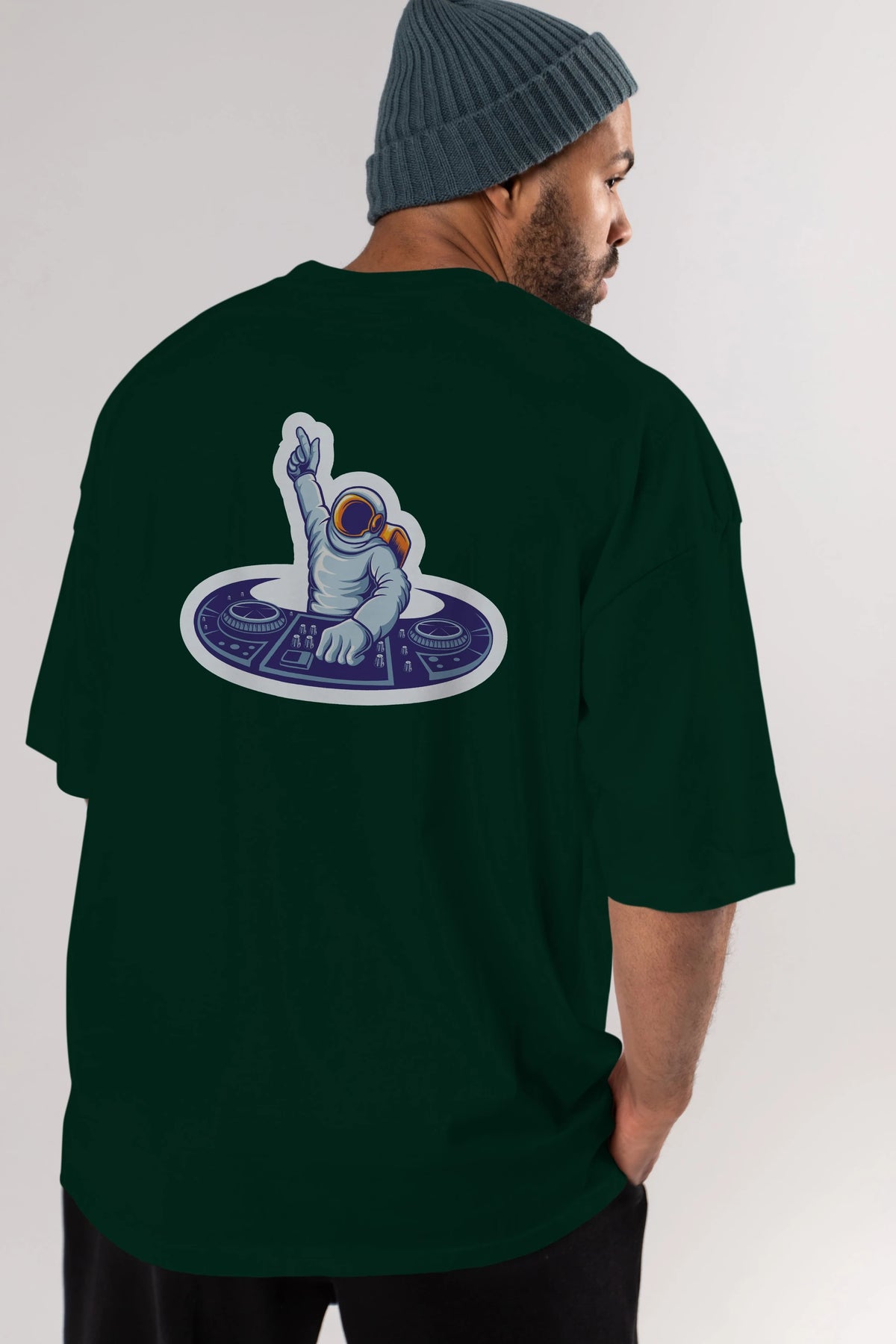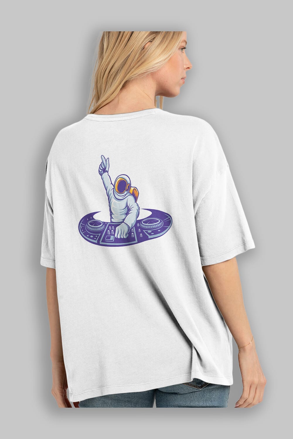 Astronaut Disk Jockey Party Sticker Arka Baskılı Oversize t-shirt Erkek Kadın Unisex