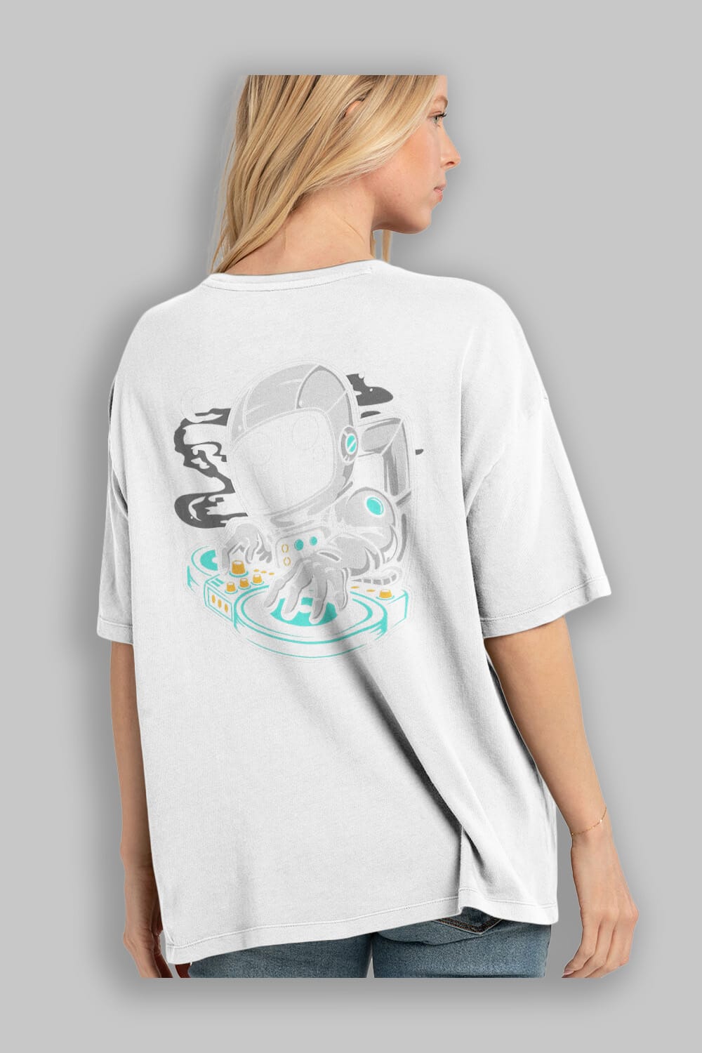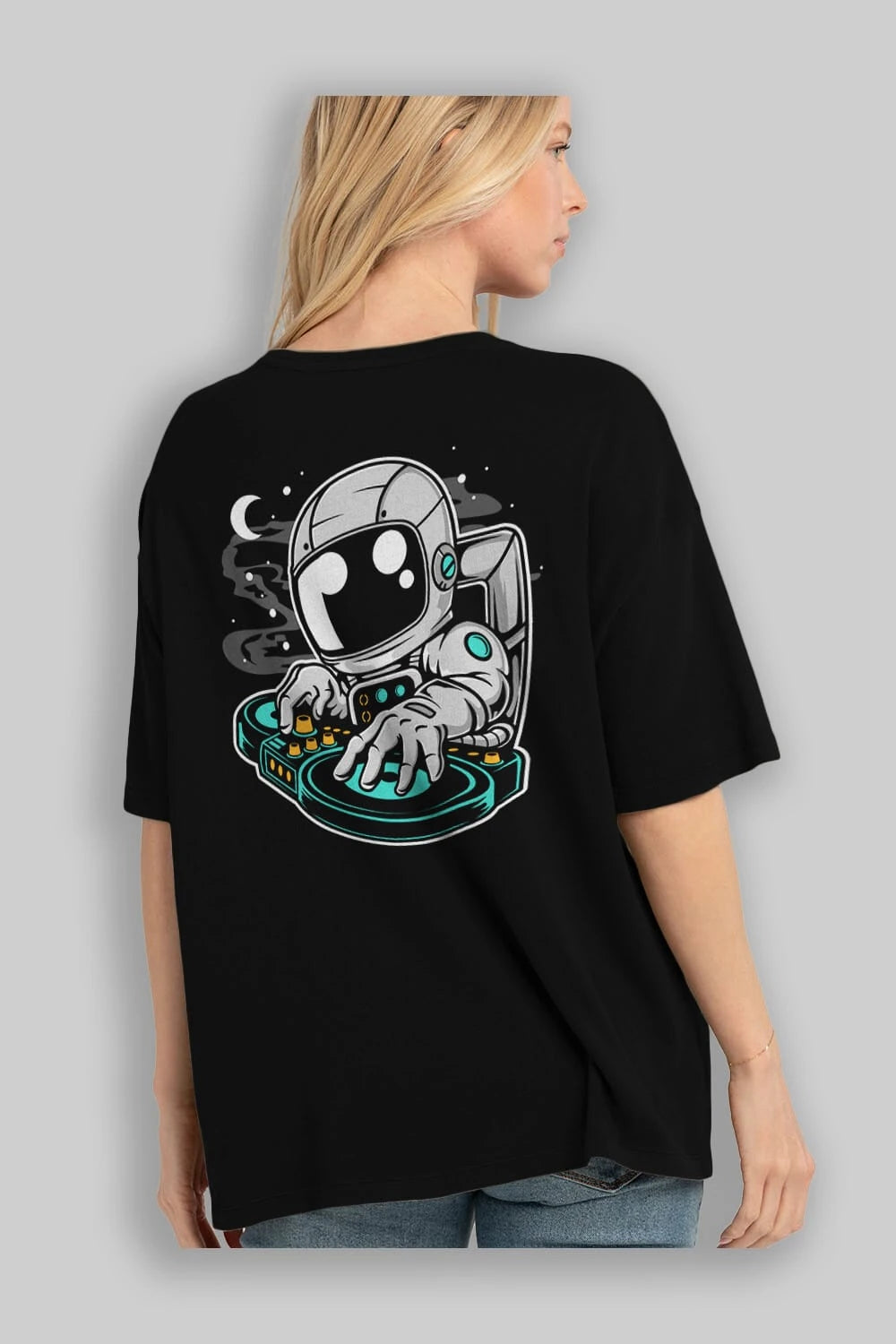 Astronaut DJ Arka Baskılı Oversize t-shirt Erkek Kadın Unisex