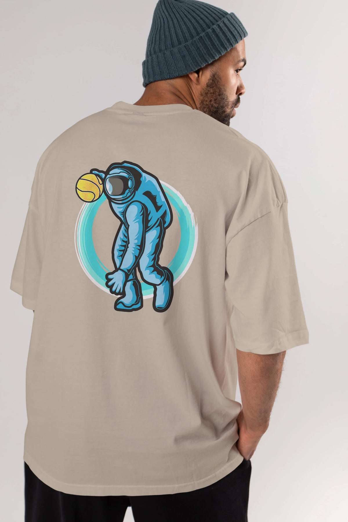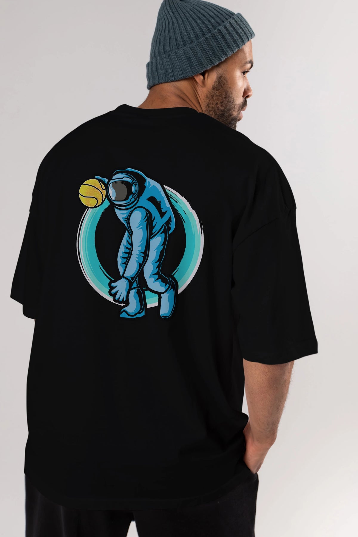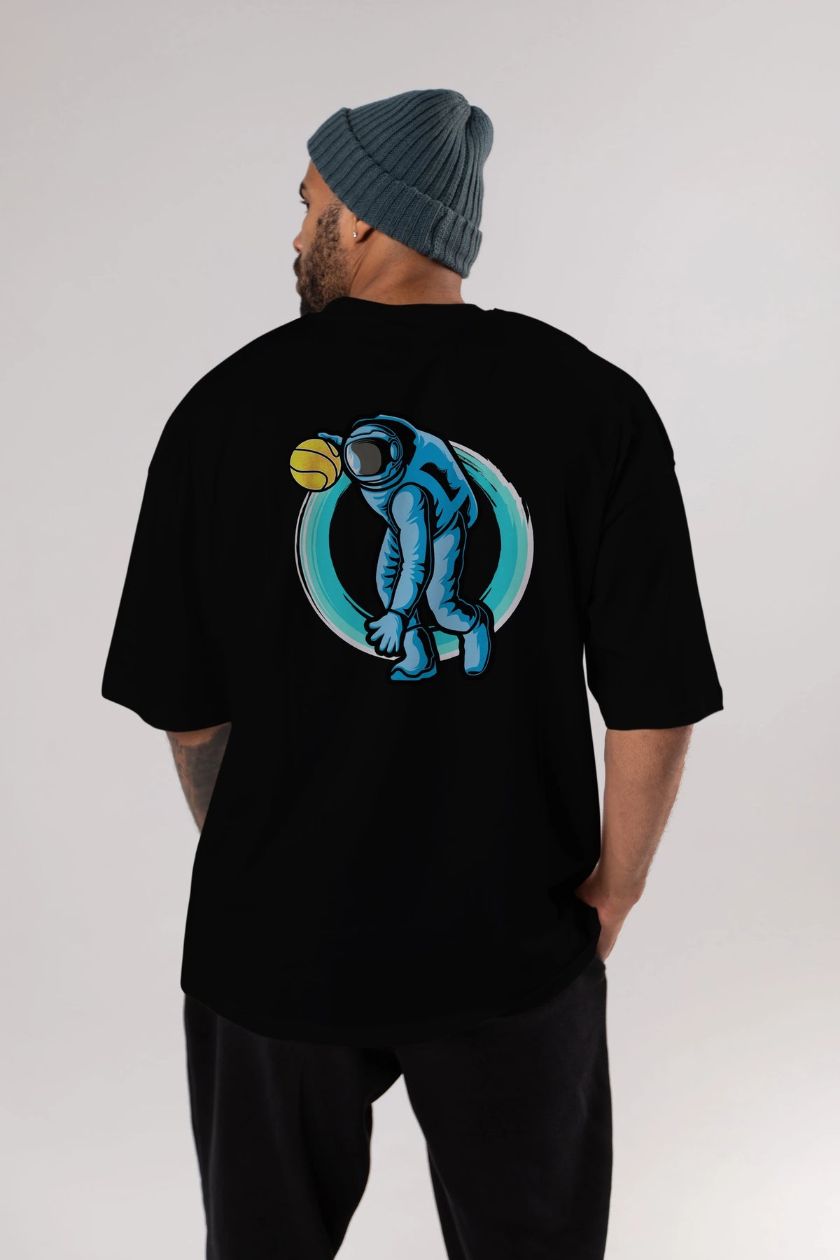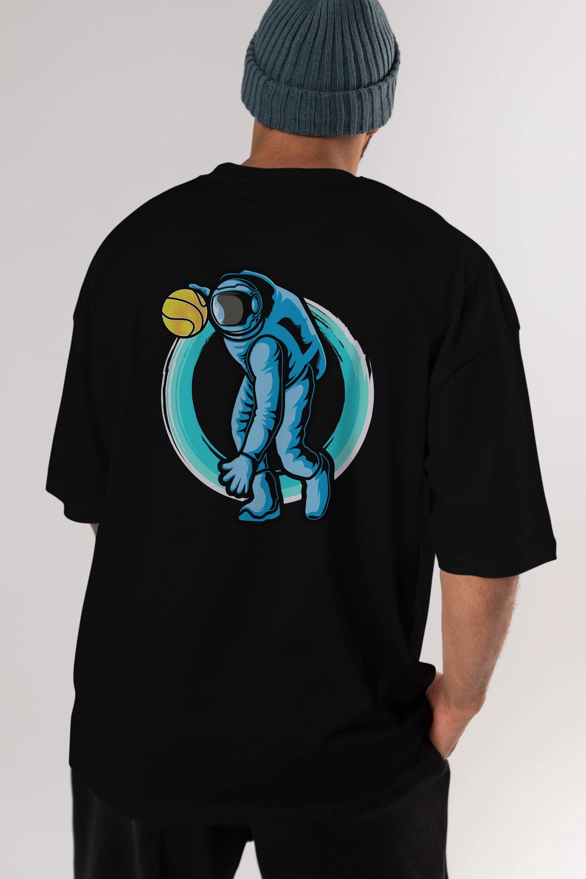 Astronaut Dribble Arka Baskılı Oversize t-shirt Erkek Kadın Unisex
