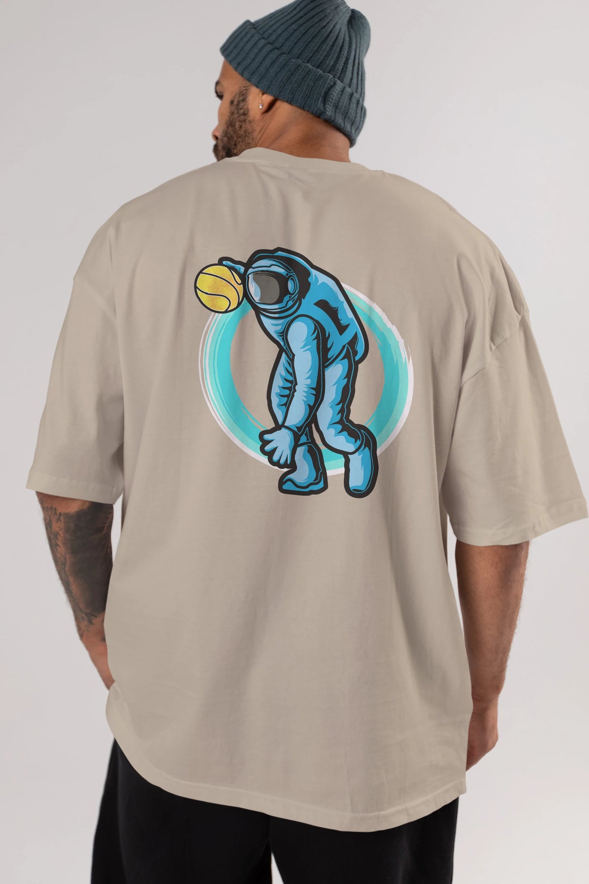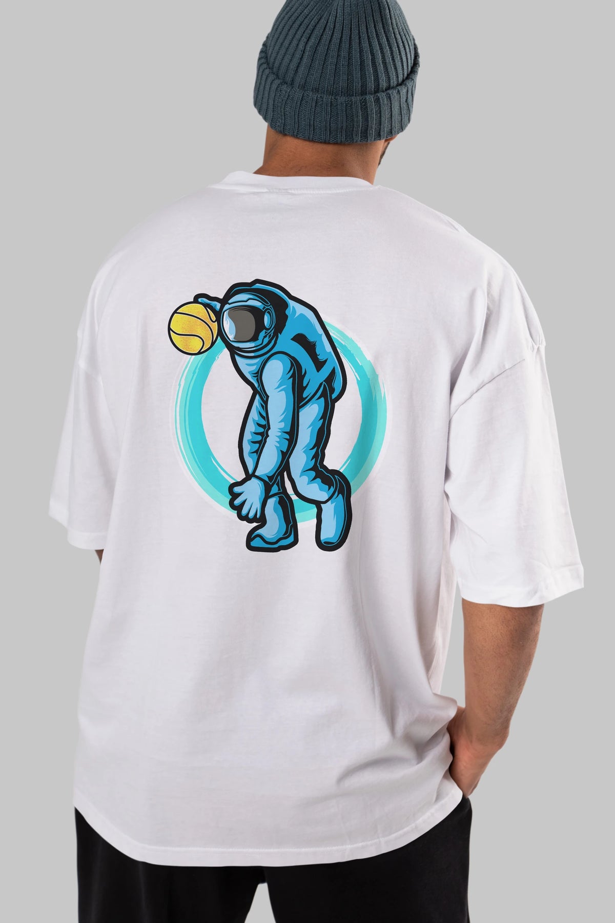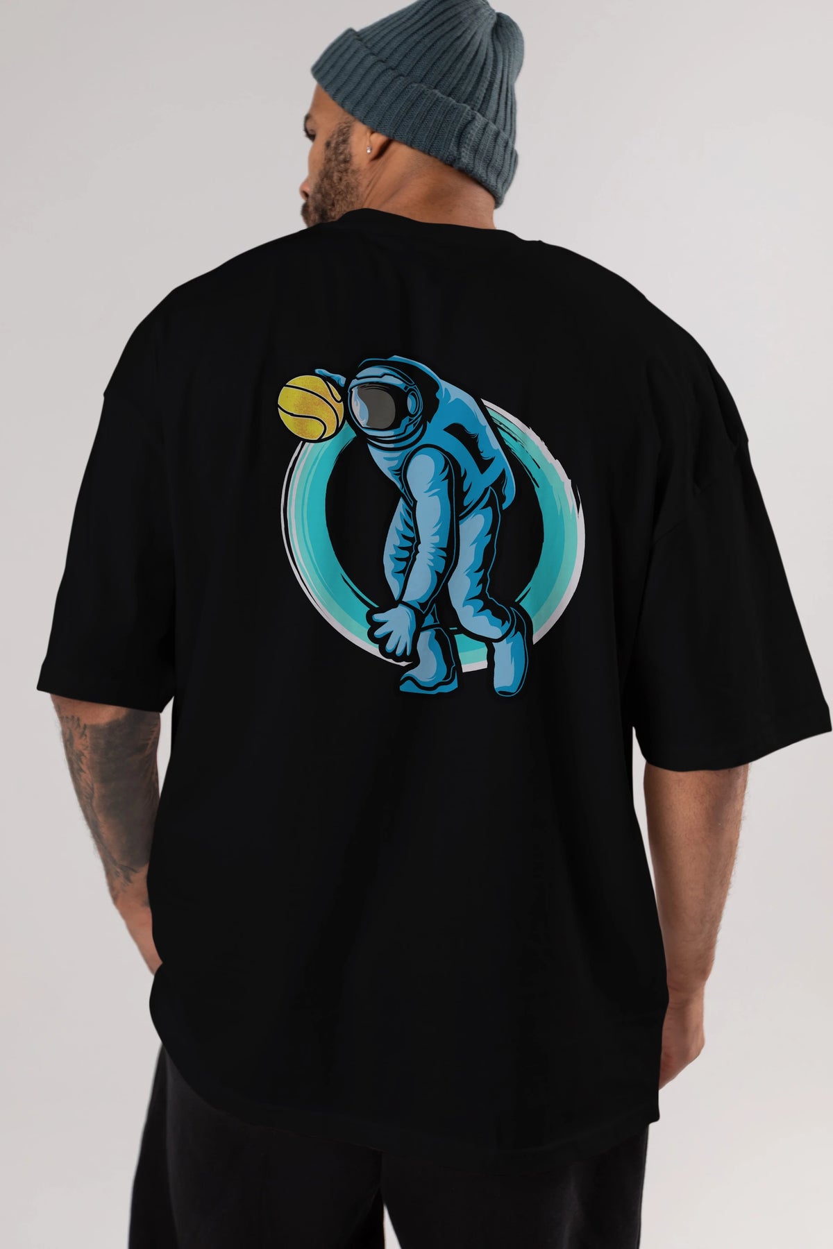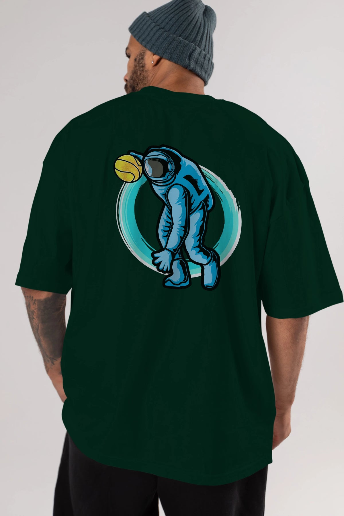 Astronaut Dribble Arka Baskılı Oversize t-shirt Erkek Kadın Unisex