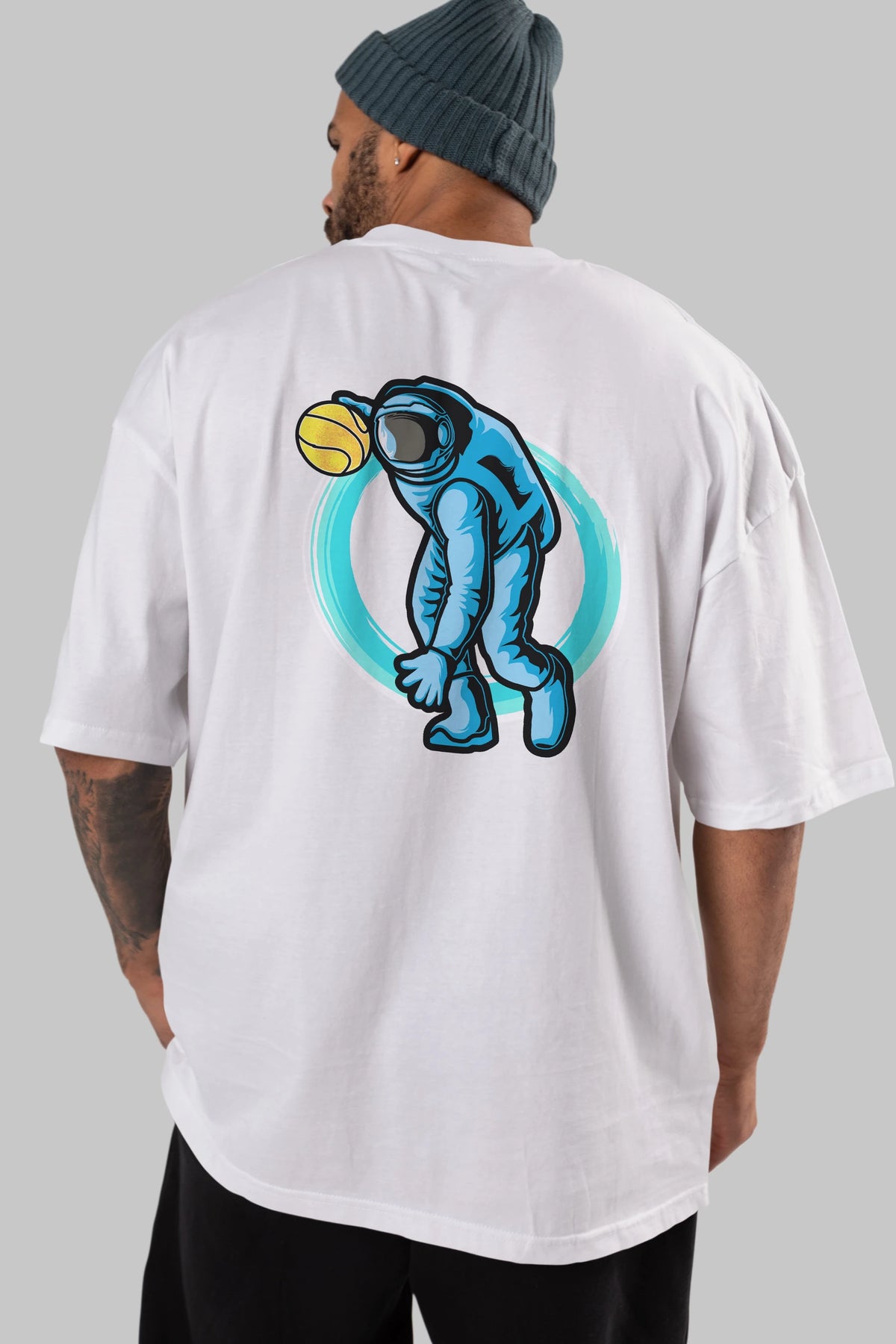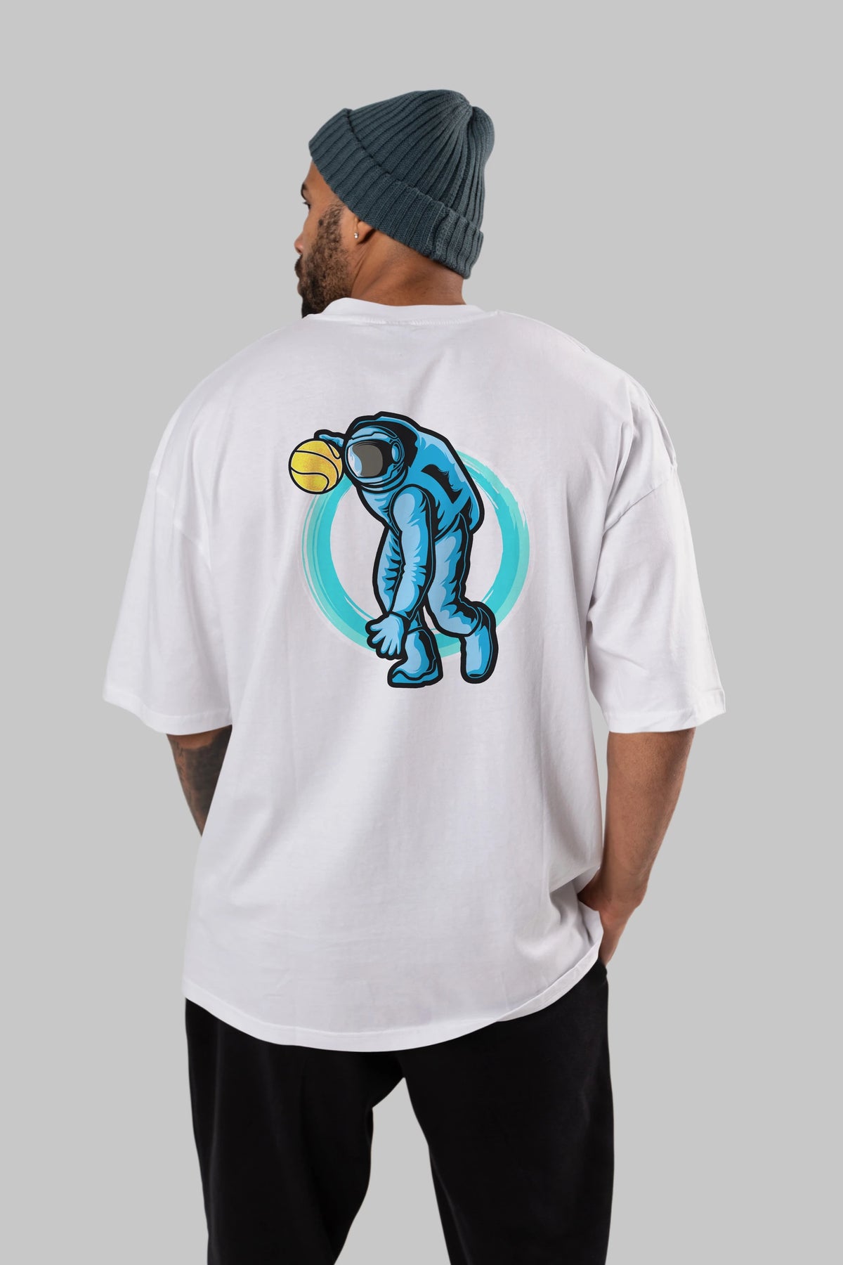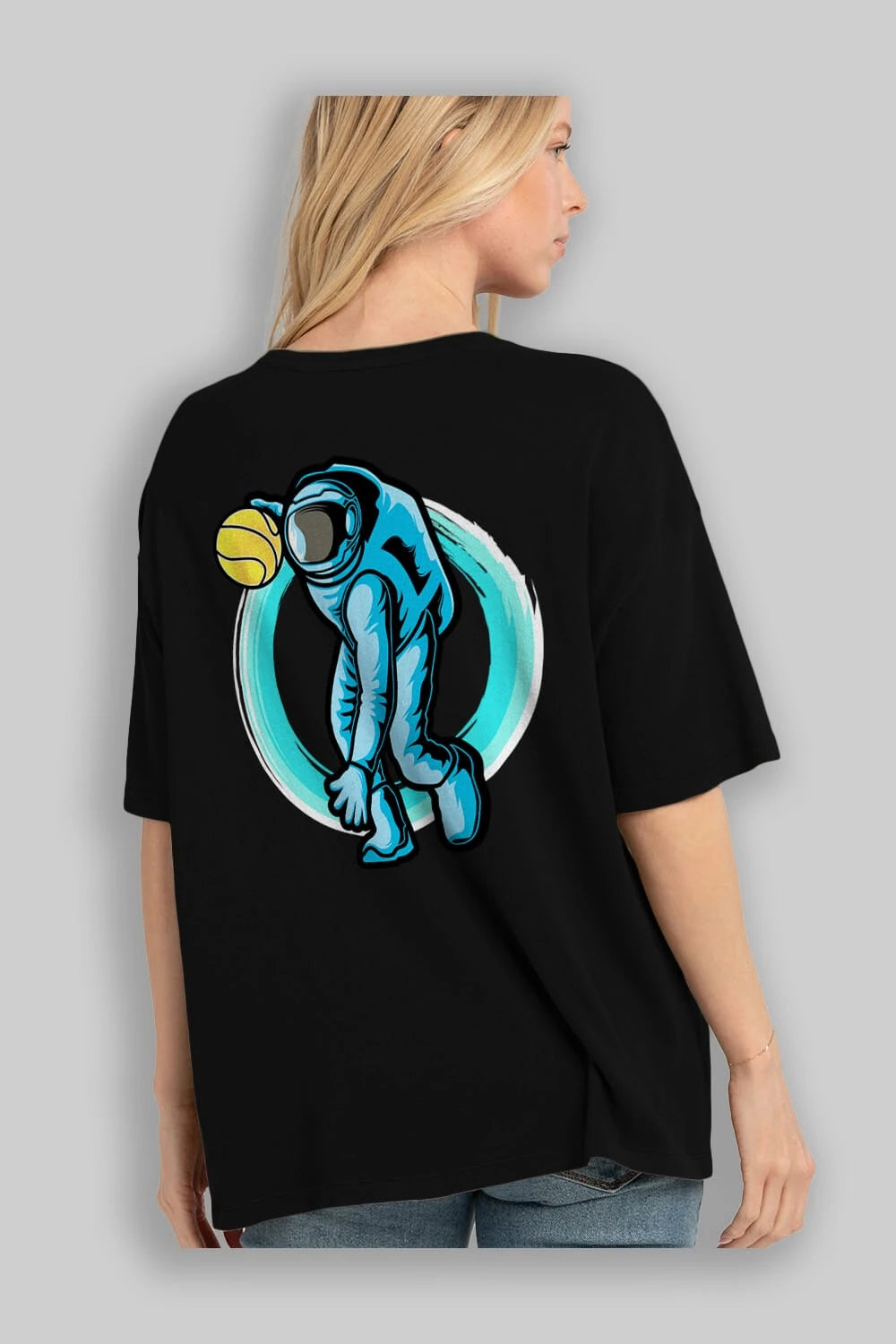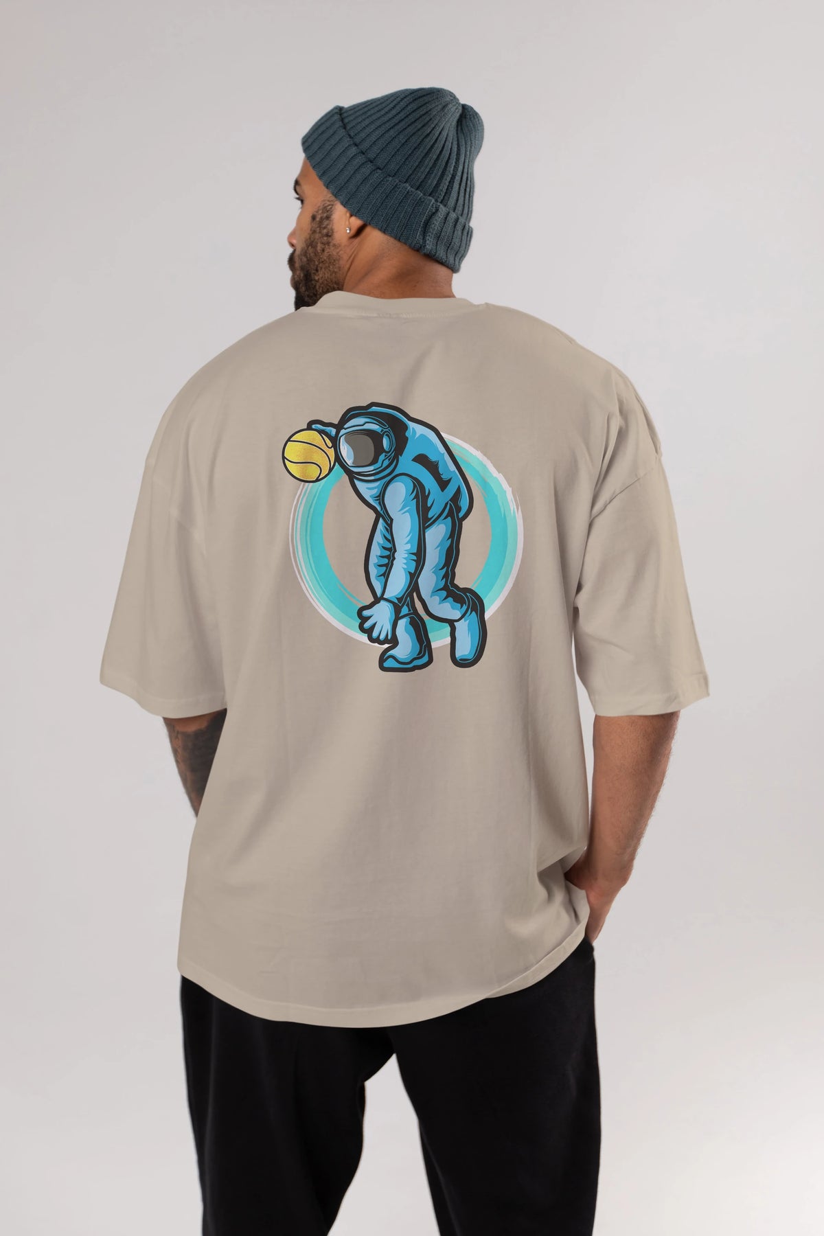 Astronaut Dribble Arka Baskılı Oversize t-shirt Erkek Kadın Unisex