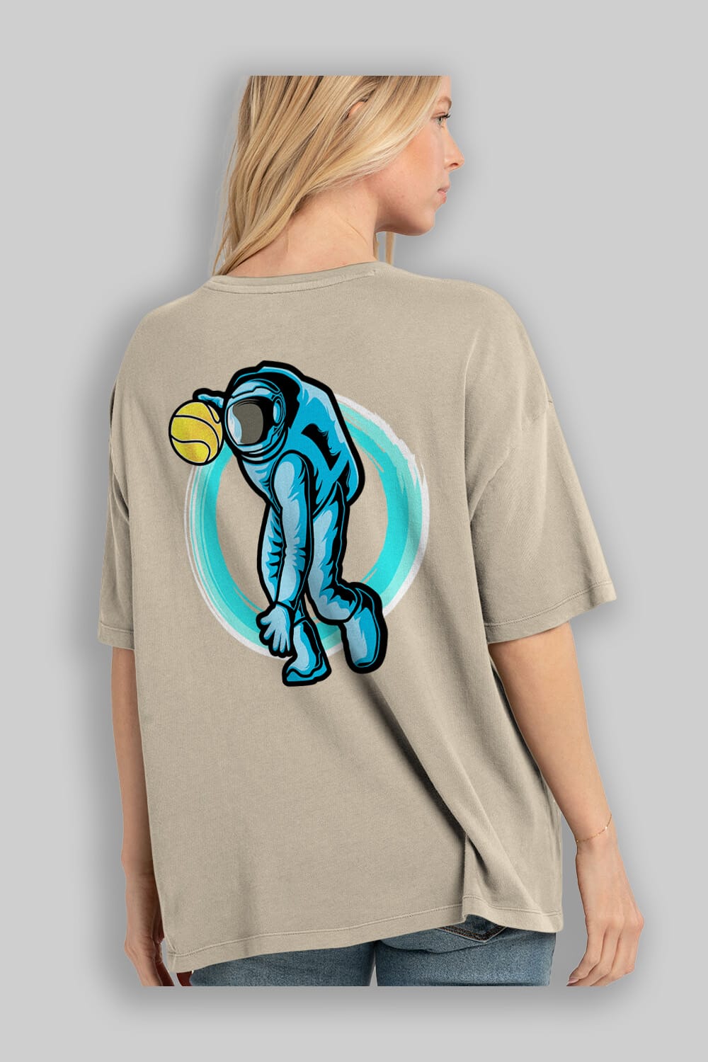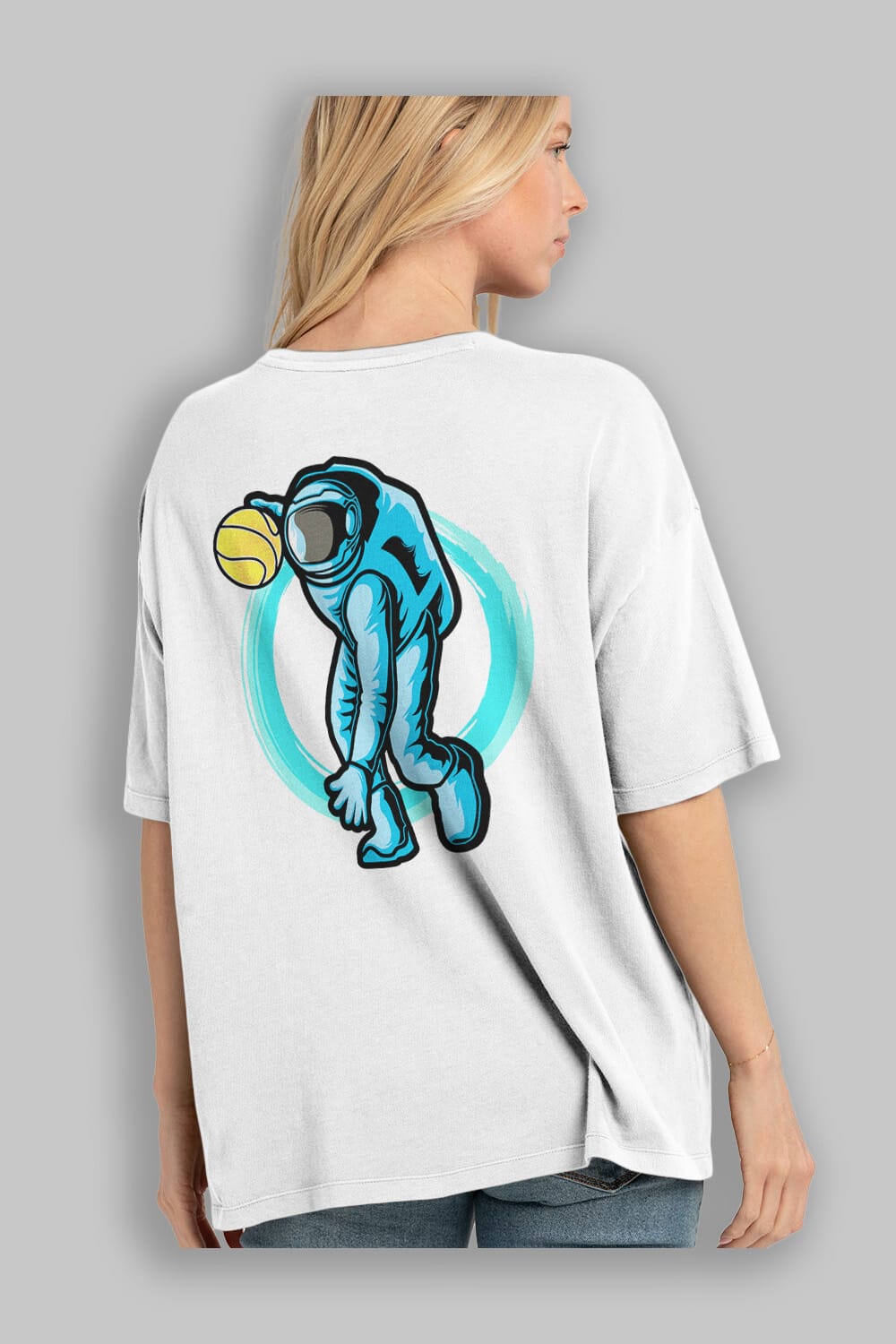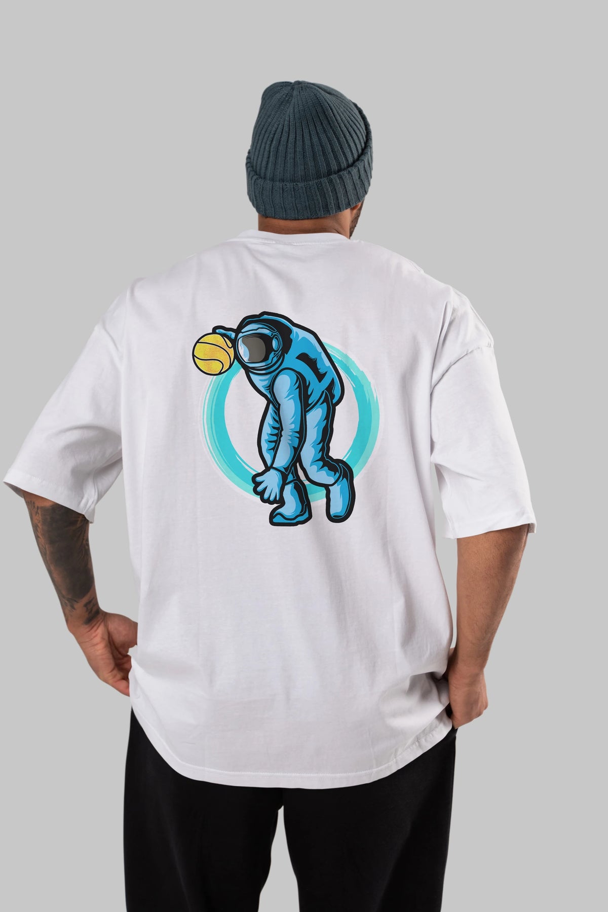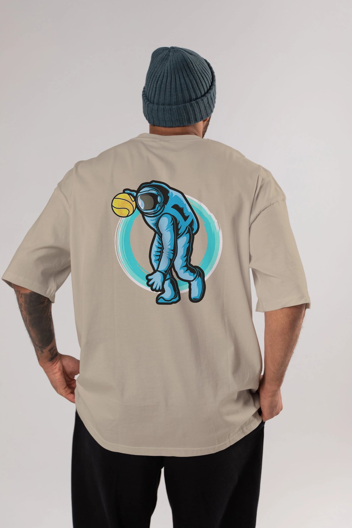 Astronaut Dribble Arka Baskılı Oversize t-shirt Erkek Kadın Unisex