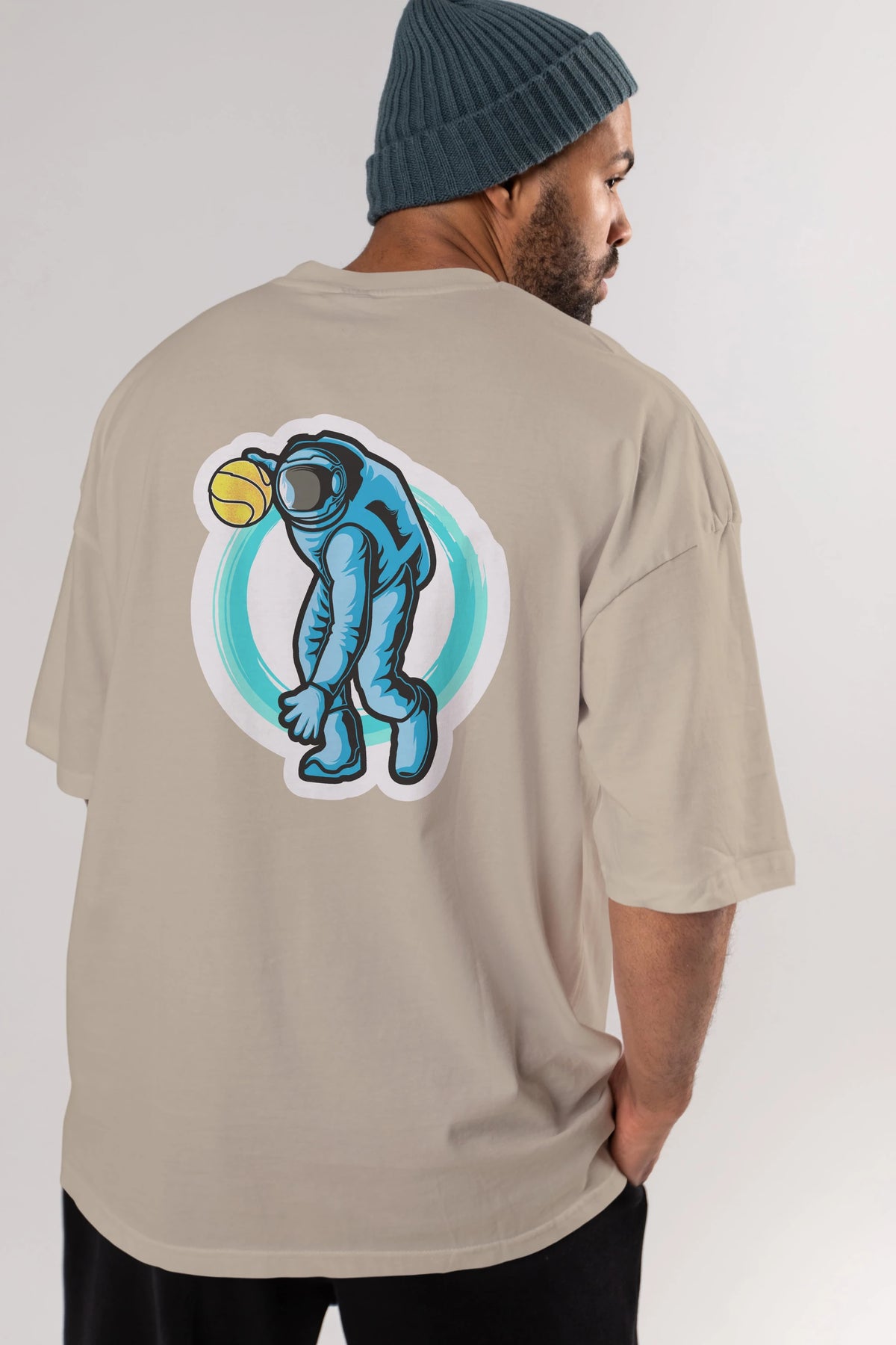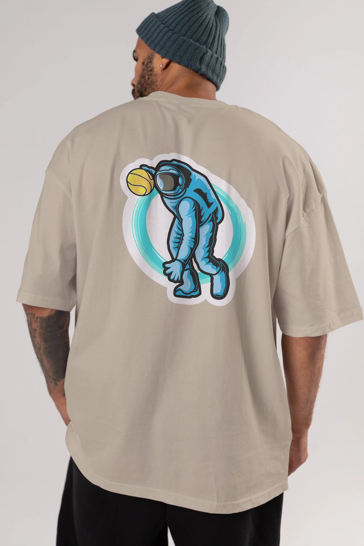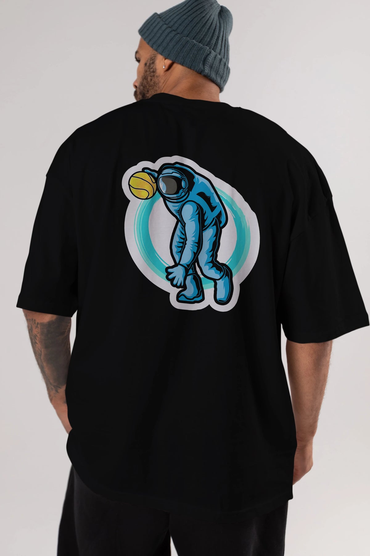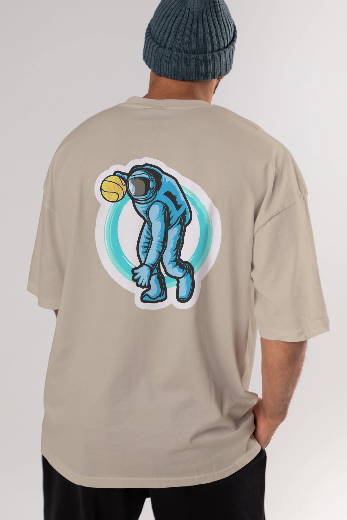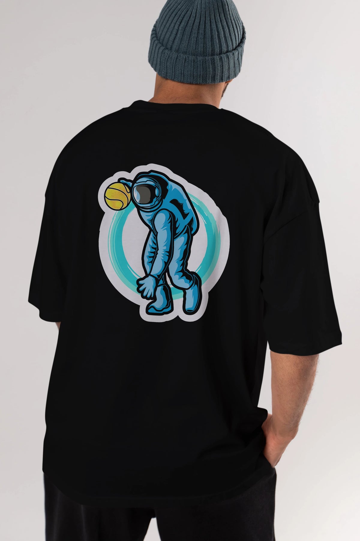 Astronaut Dribble Sticker Arka Baskılı Oversize t-shirt Erkek Kadın Unisex
