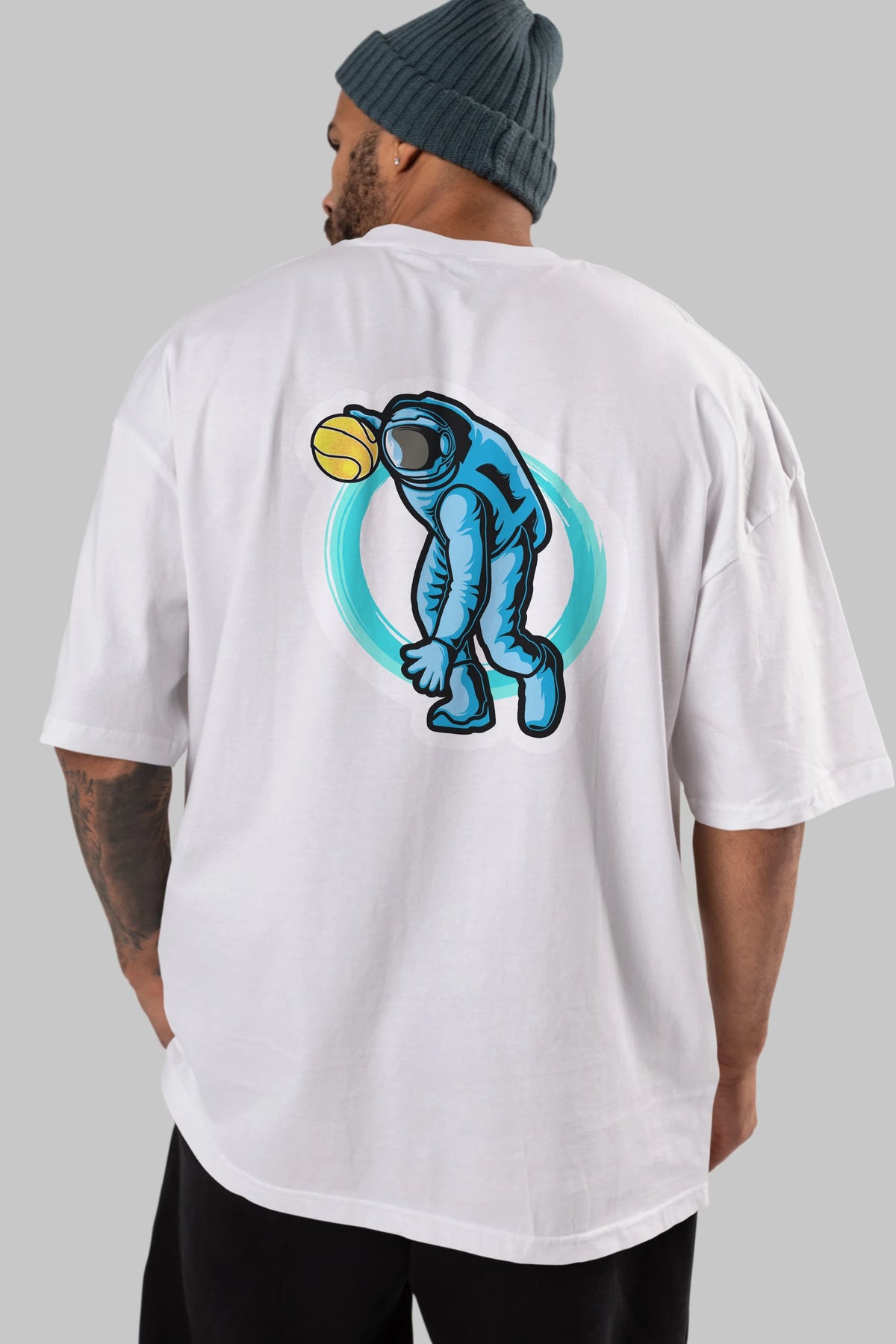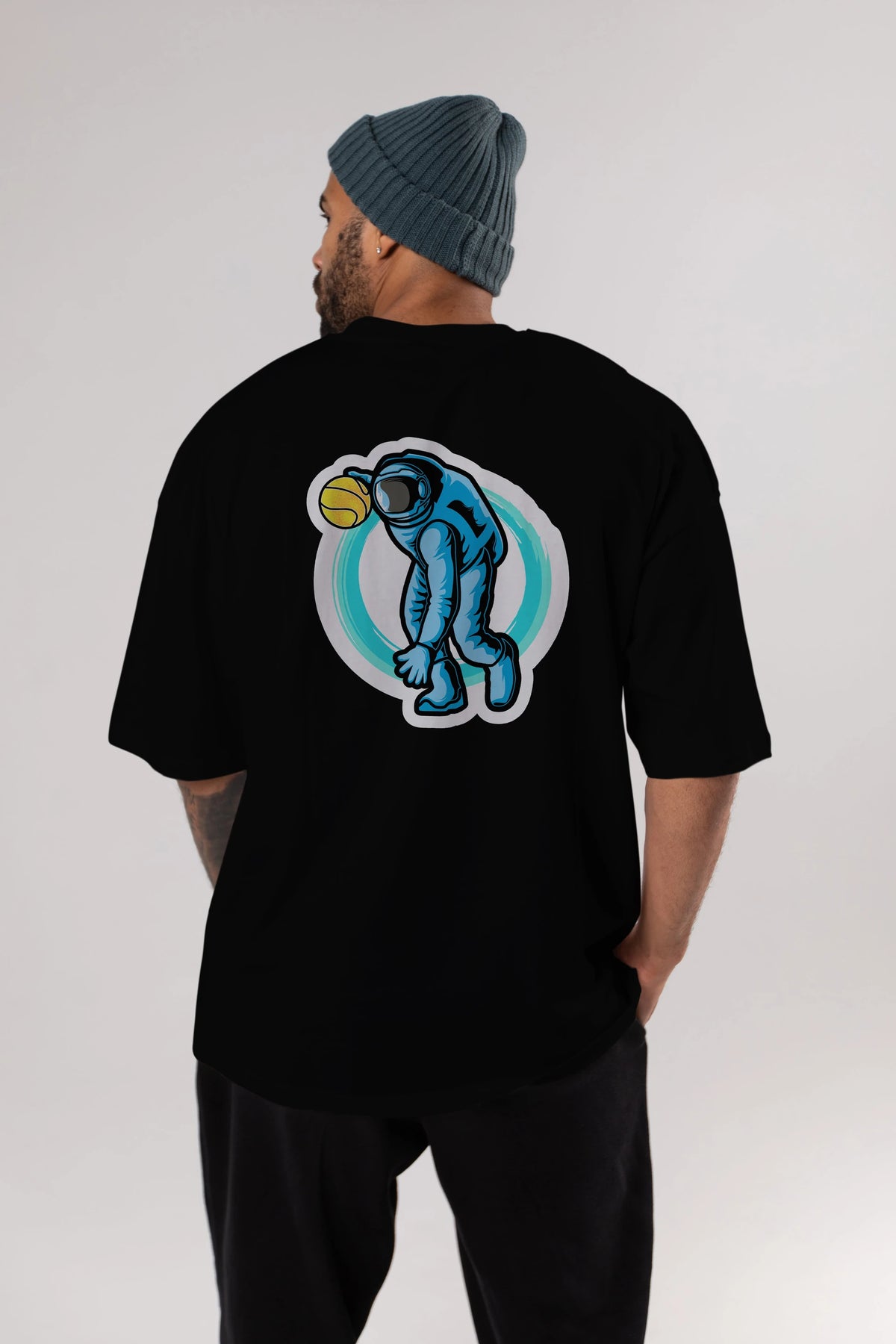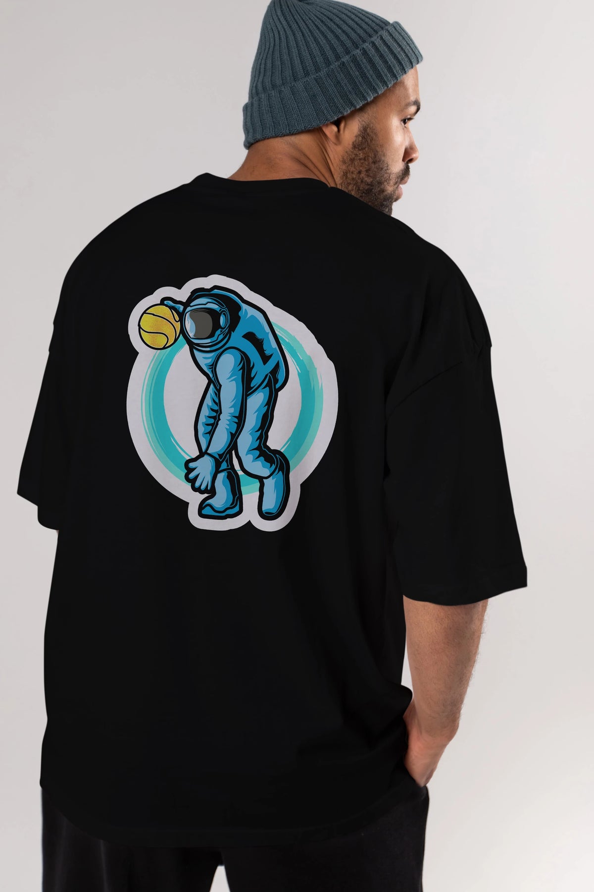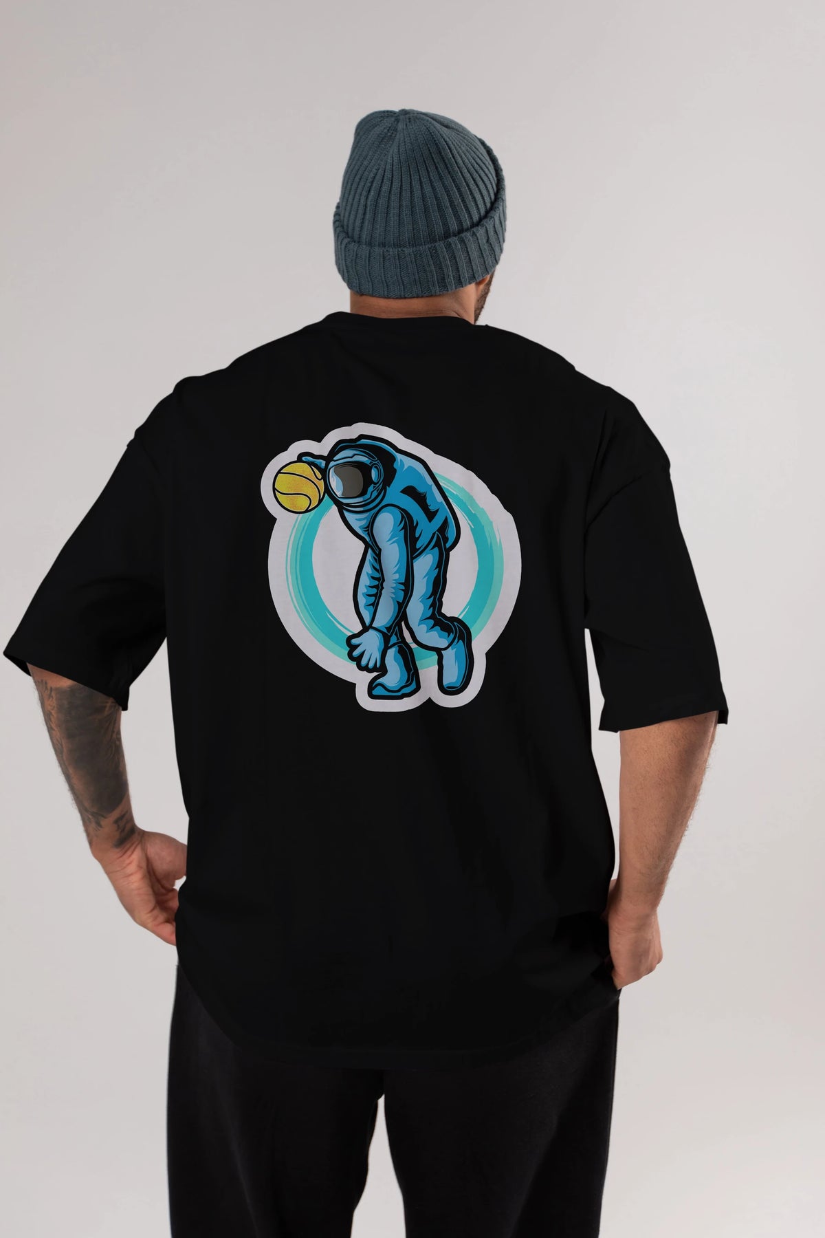 Astronaut Dribble Sticker Arka Baskılı Oversize t-shirt Erkek Kadın Unisex