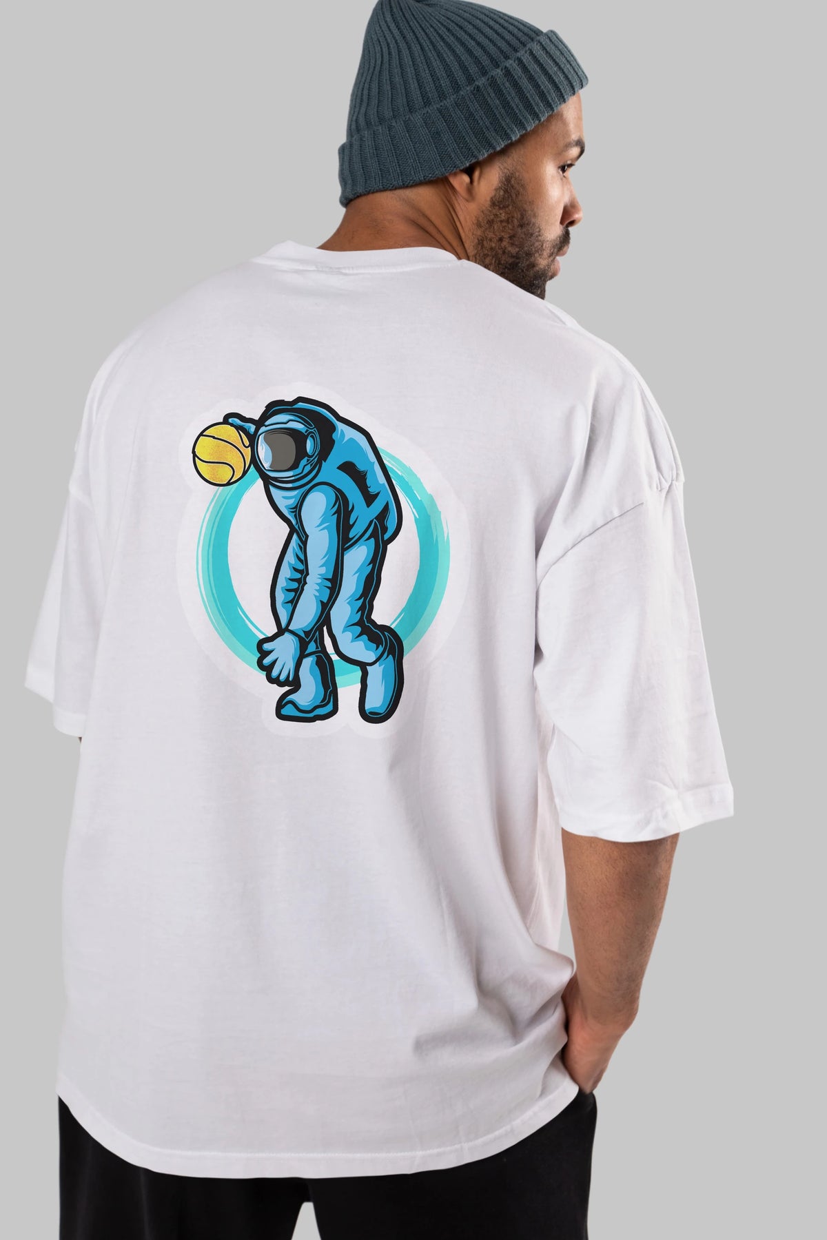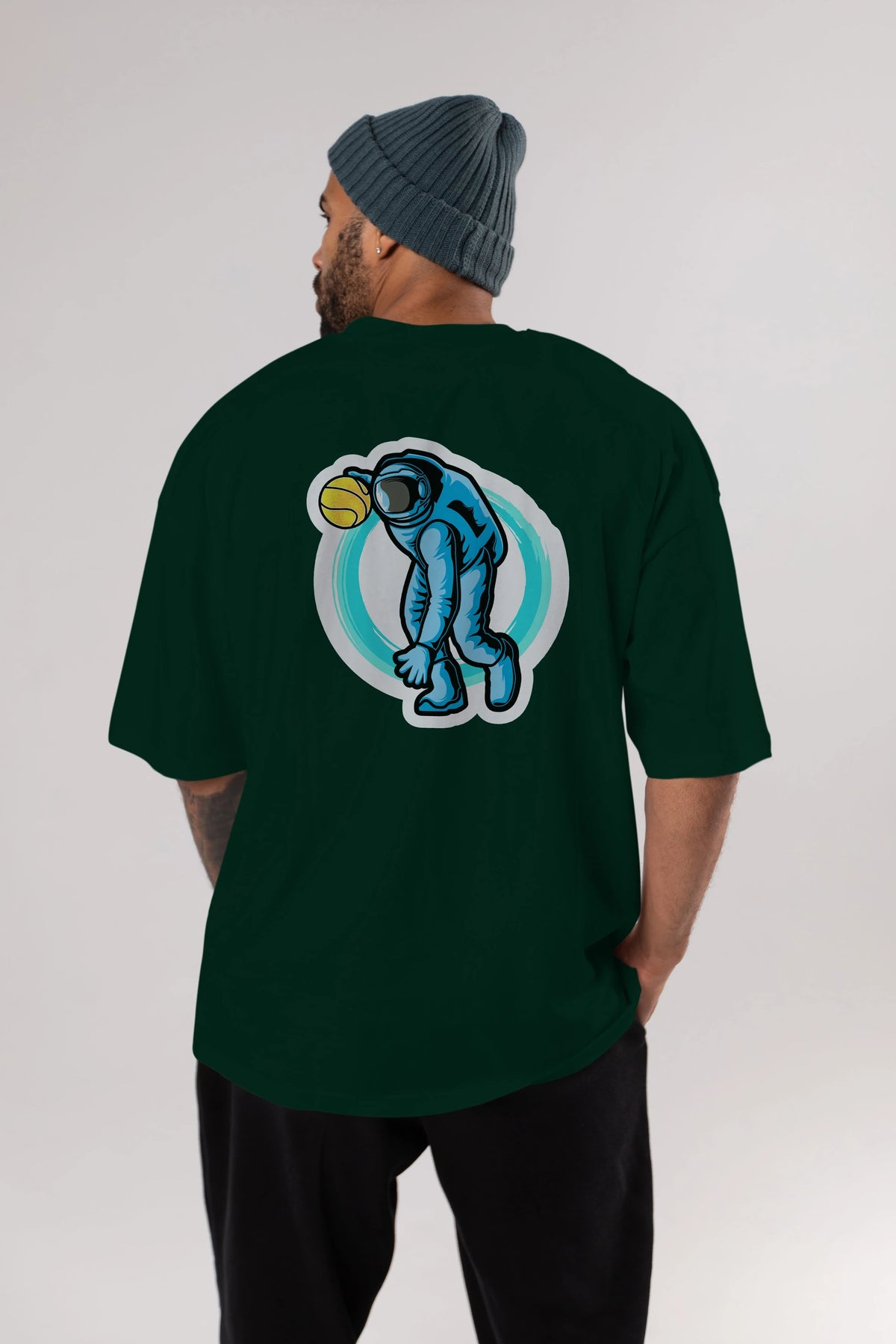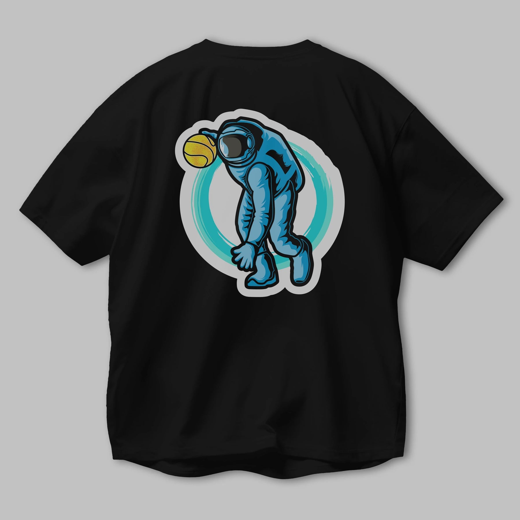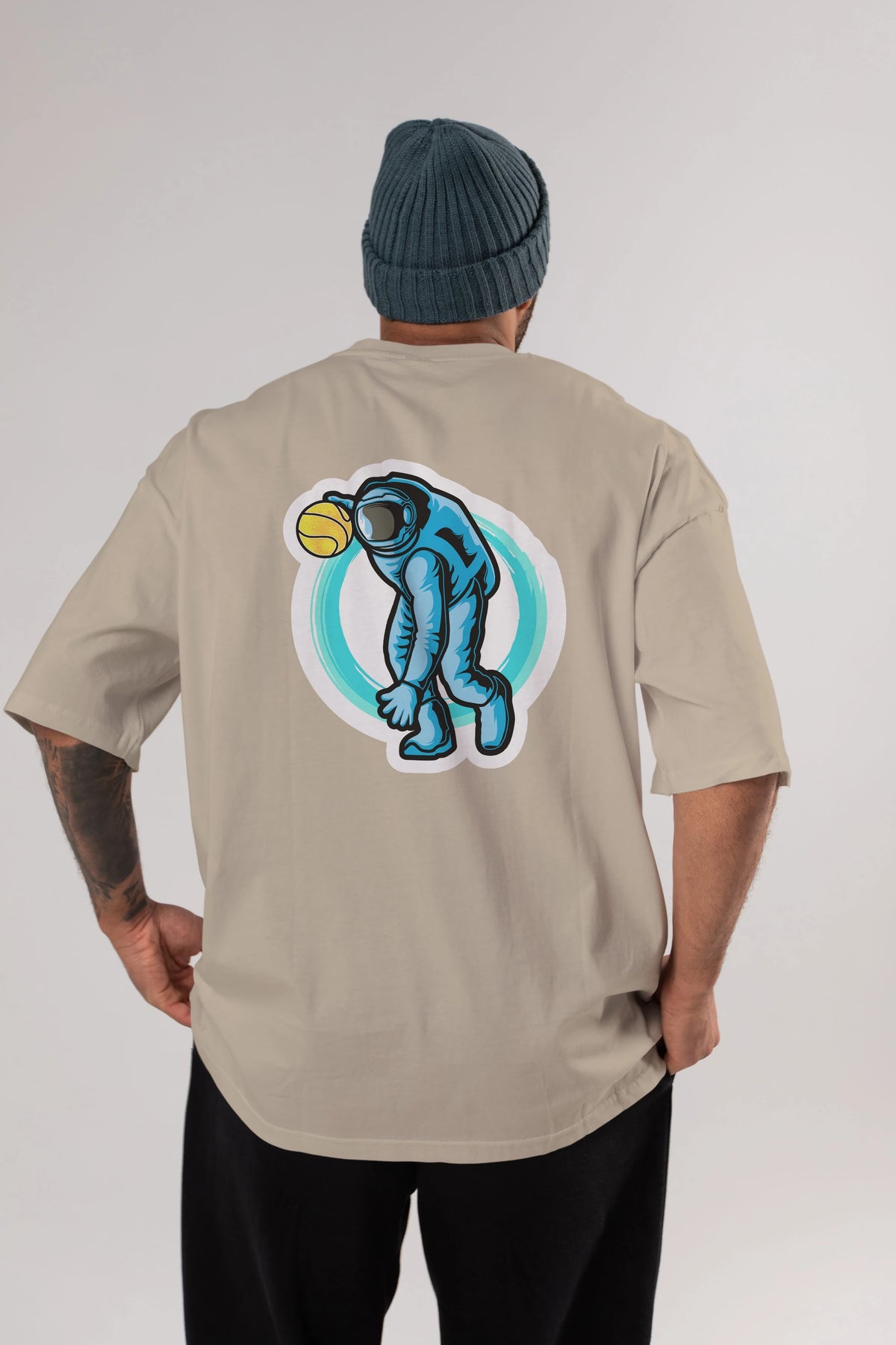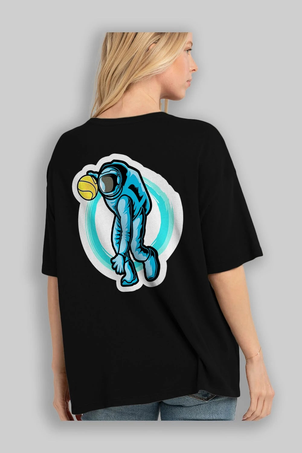 Astronaut Dribble Sticker Arka Baskılı Oversize t-shirt Erkek Kadın Unisex
