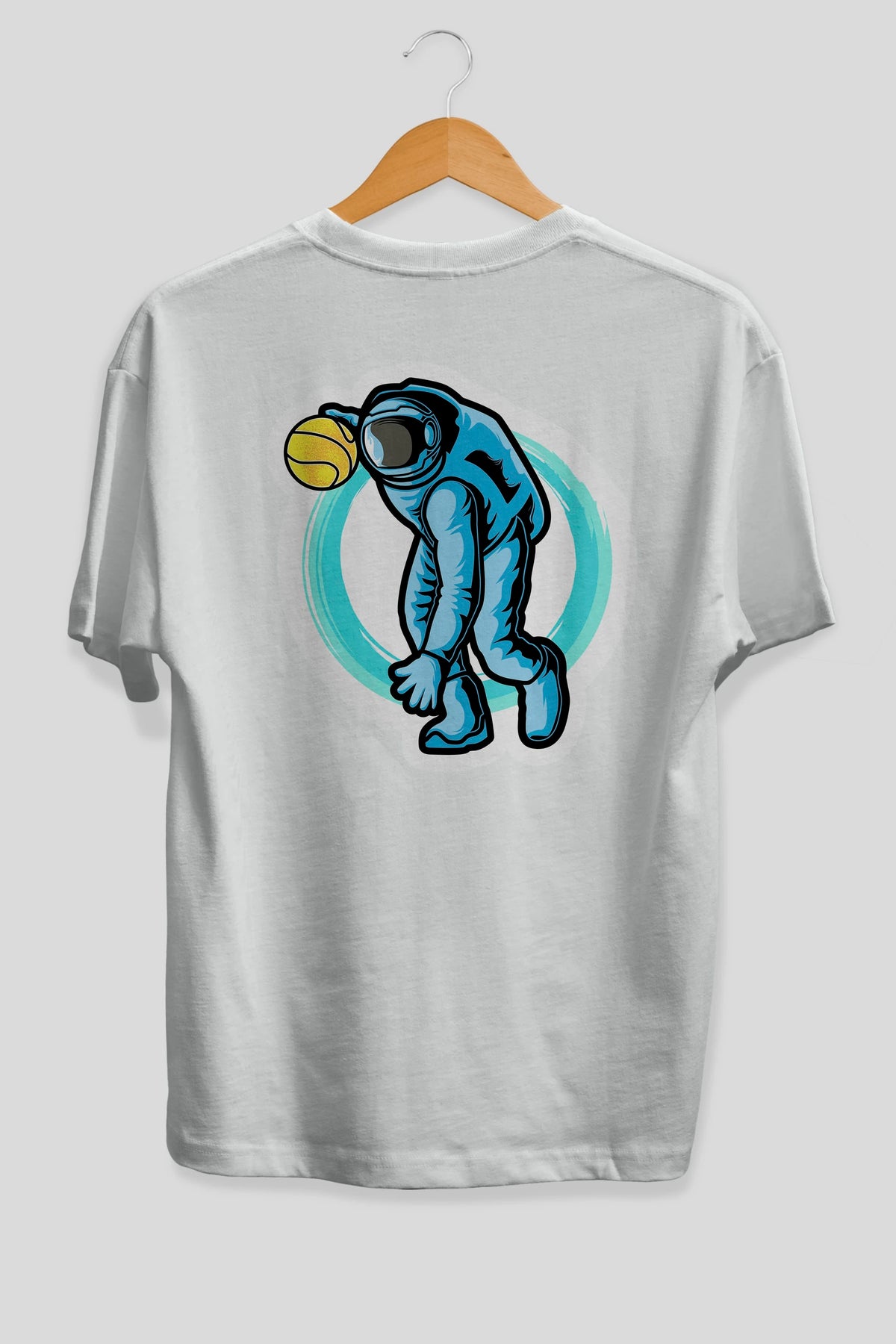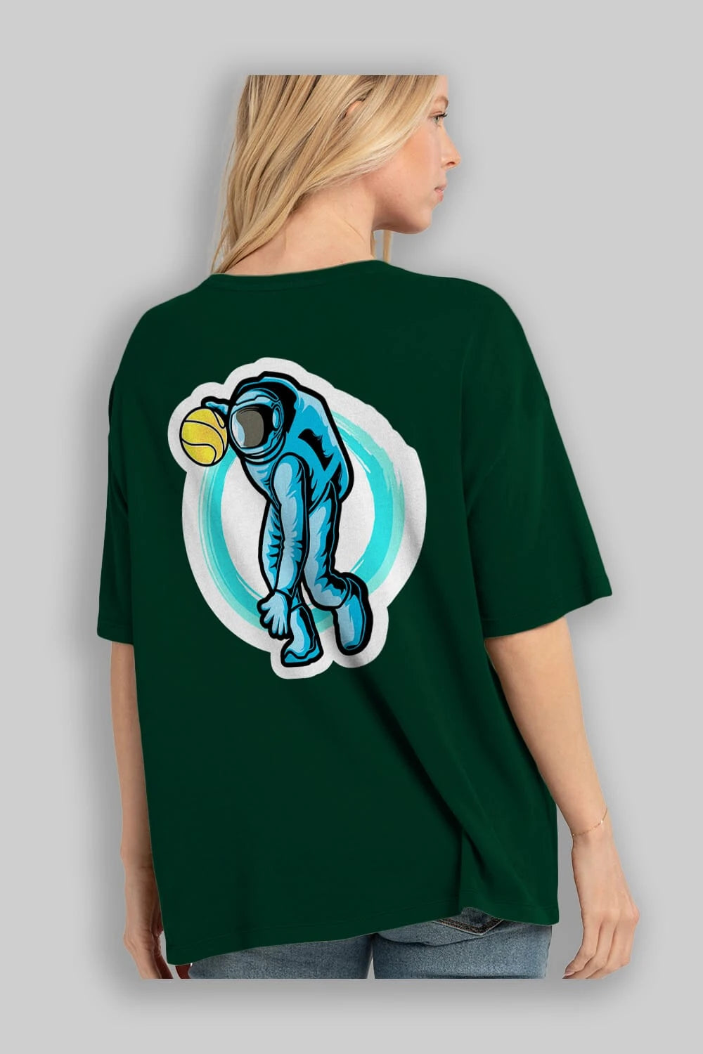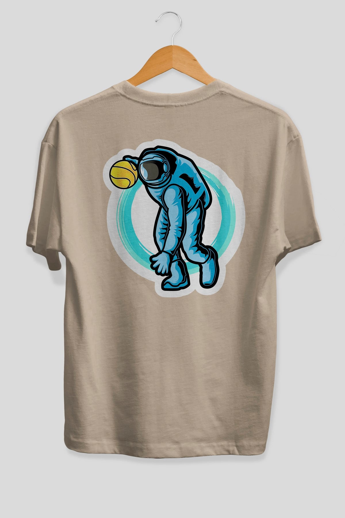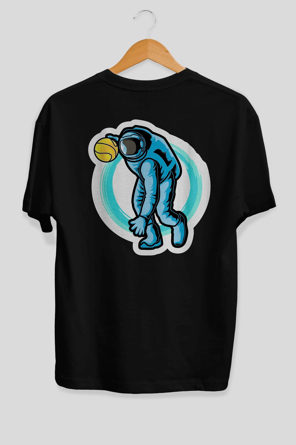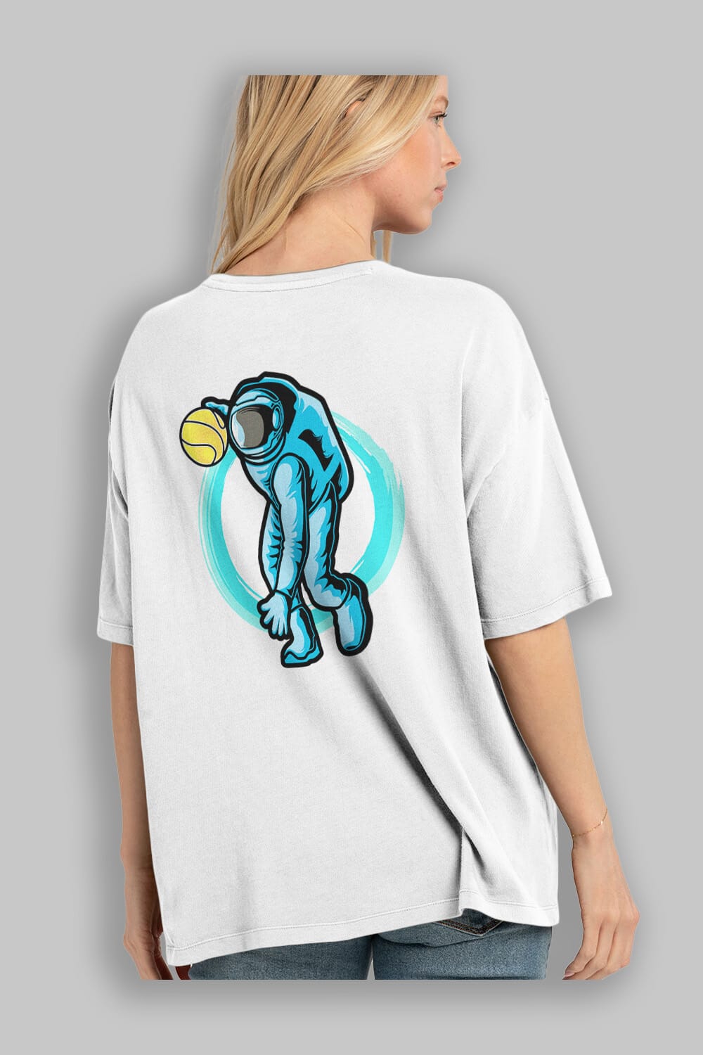 Astronaut Dribble Sticker Arka Baskılı Oversize t-shirt Erkek Kadın Unisex