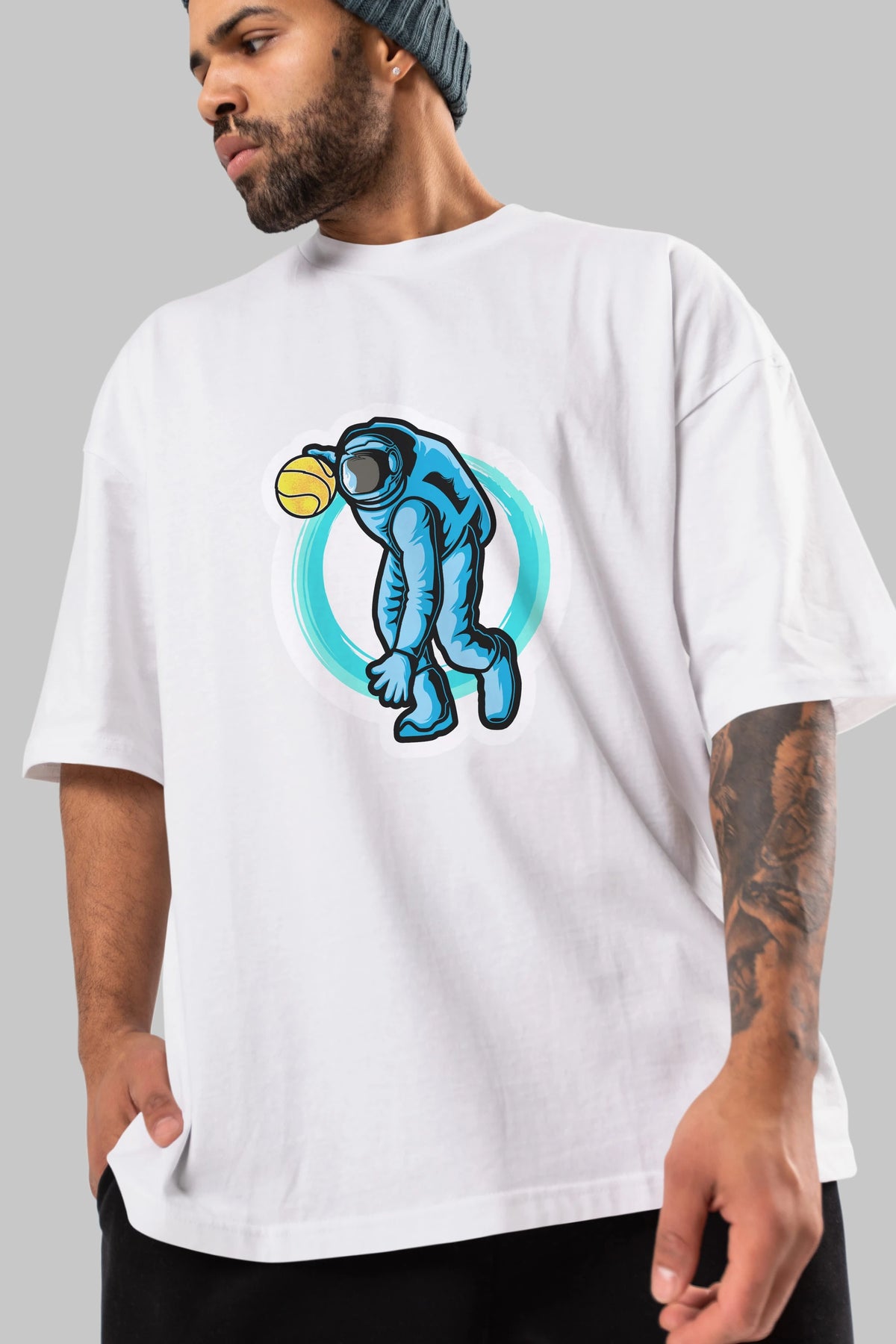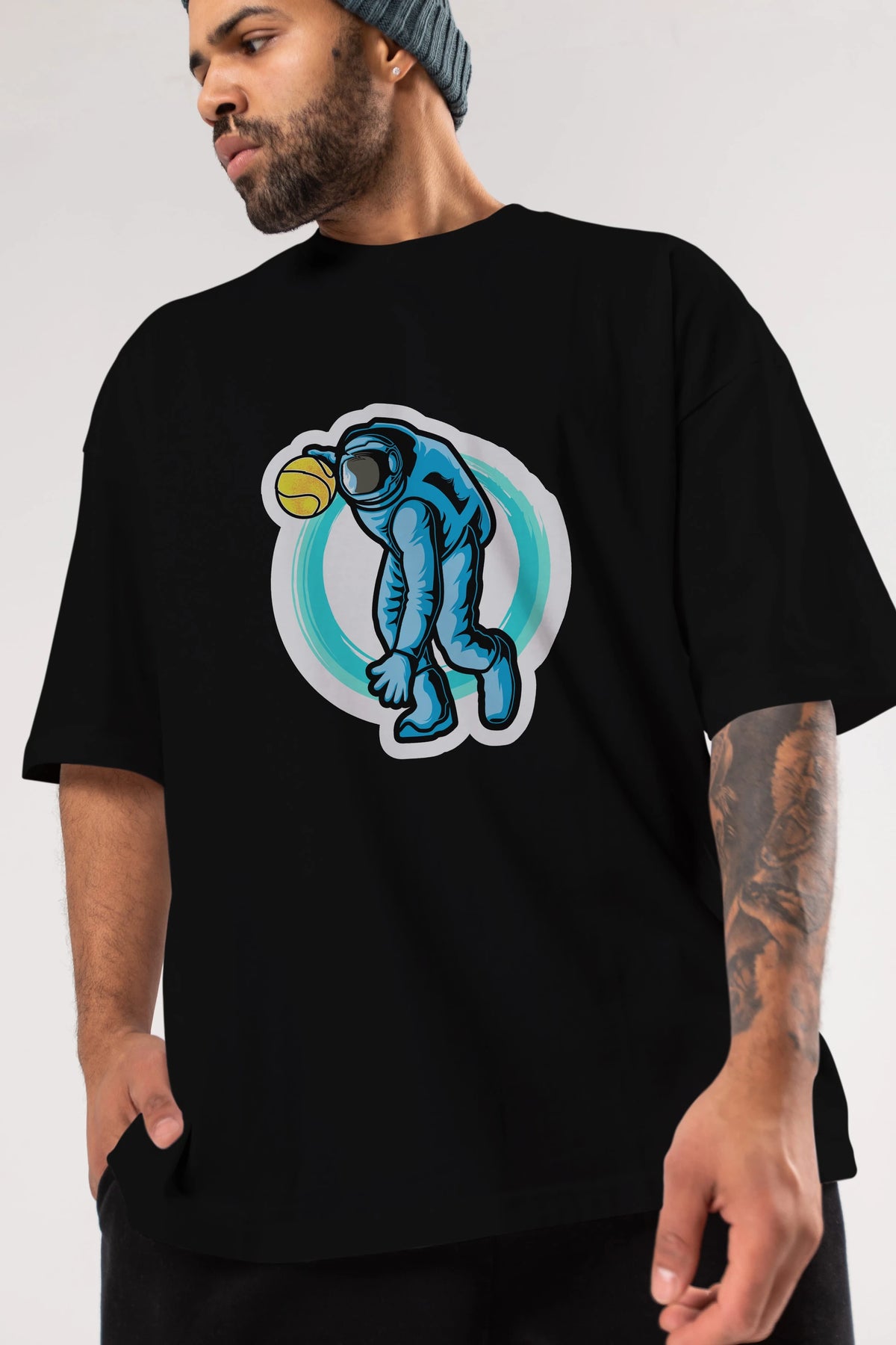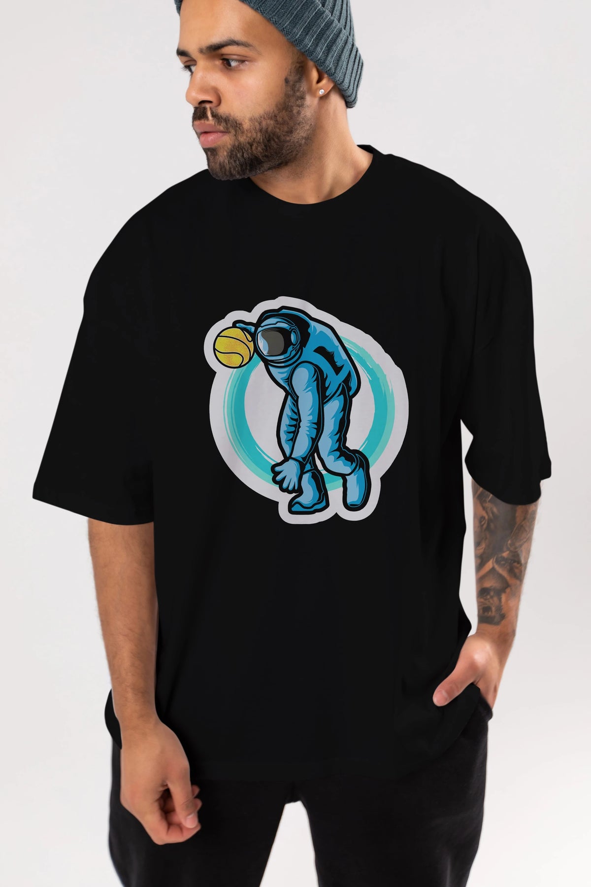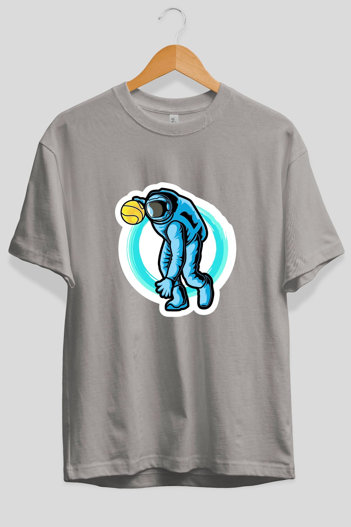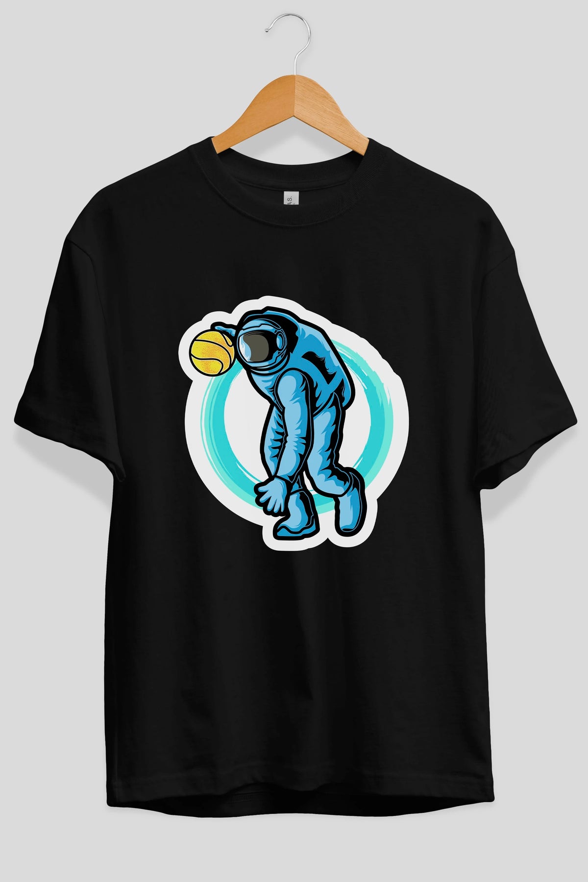 Astronaut Dribble Sticker Ön Baskılı Oversize t-shirt Erkek Kadın Unisex