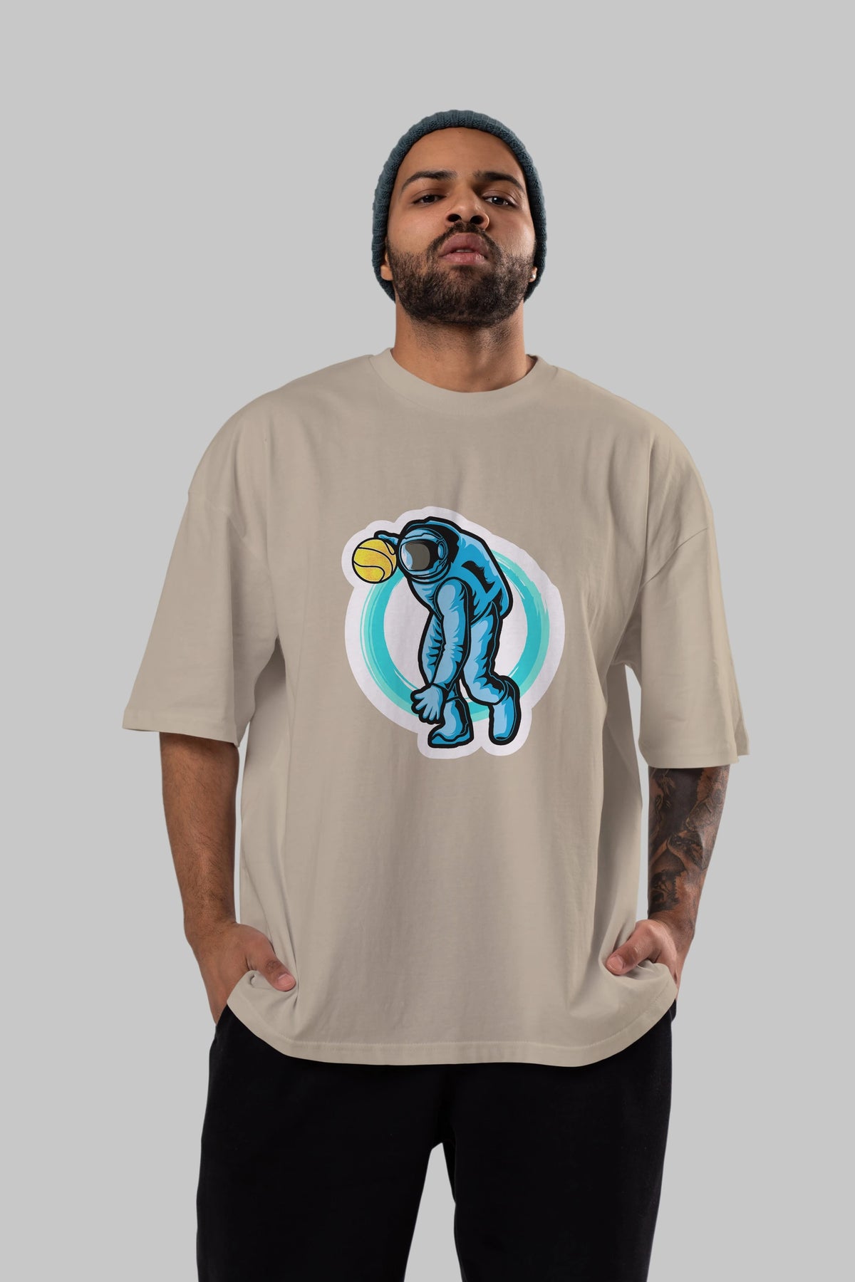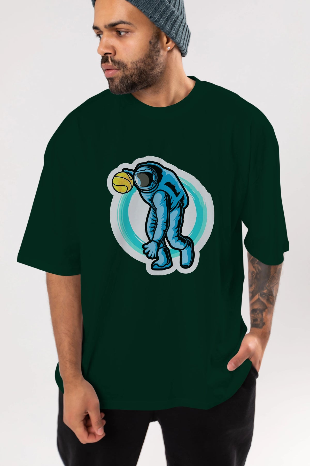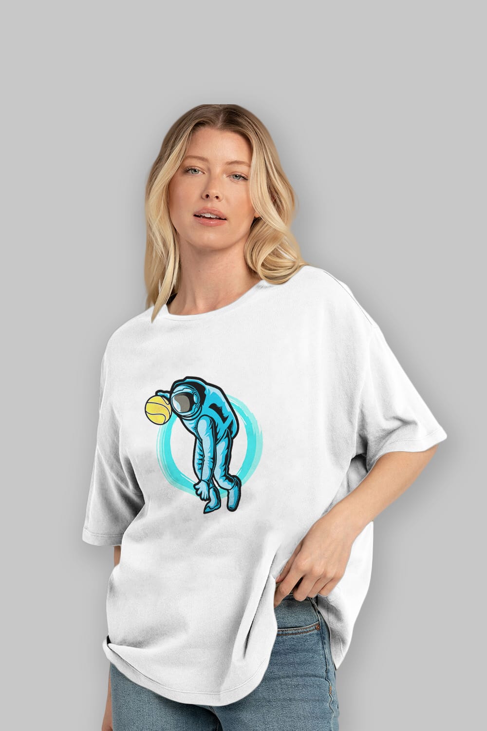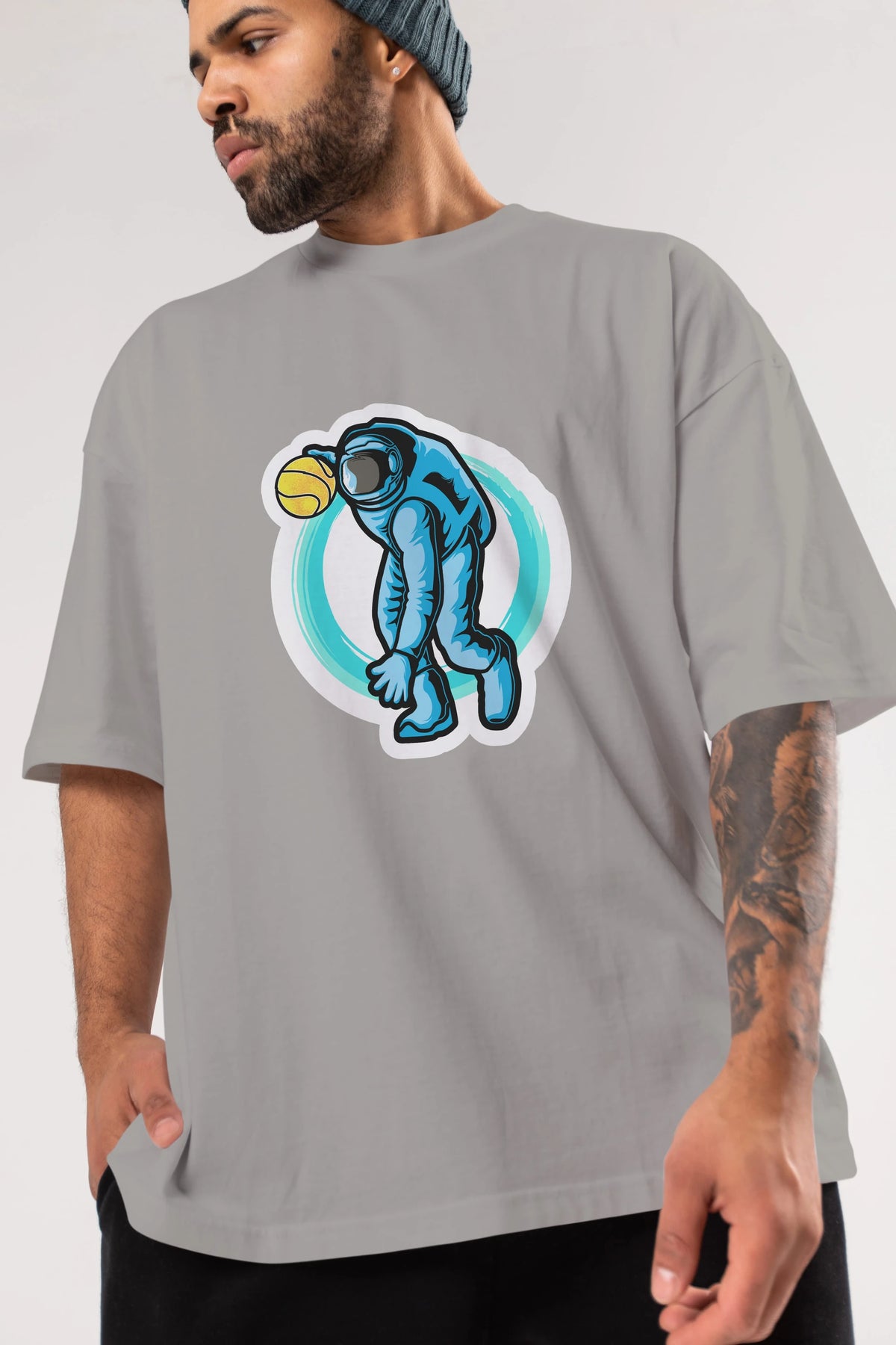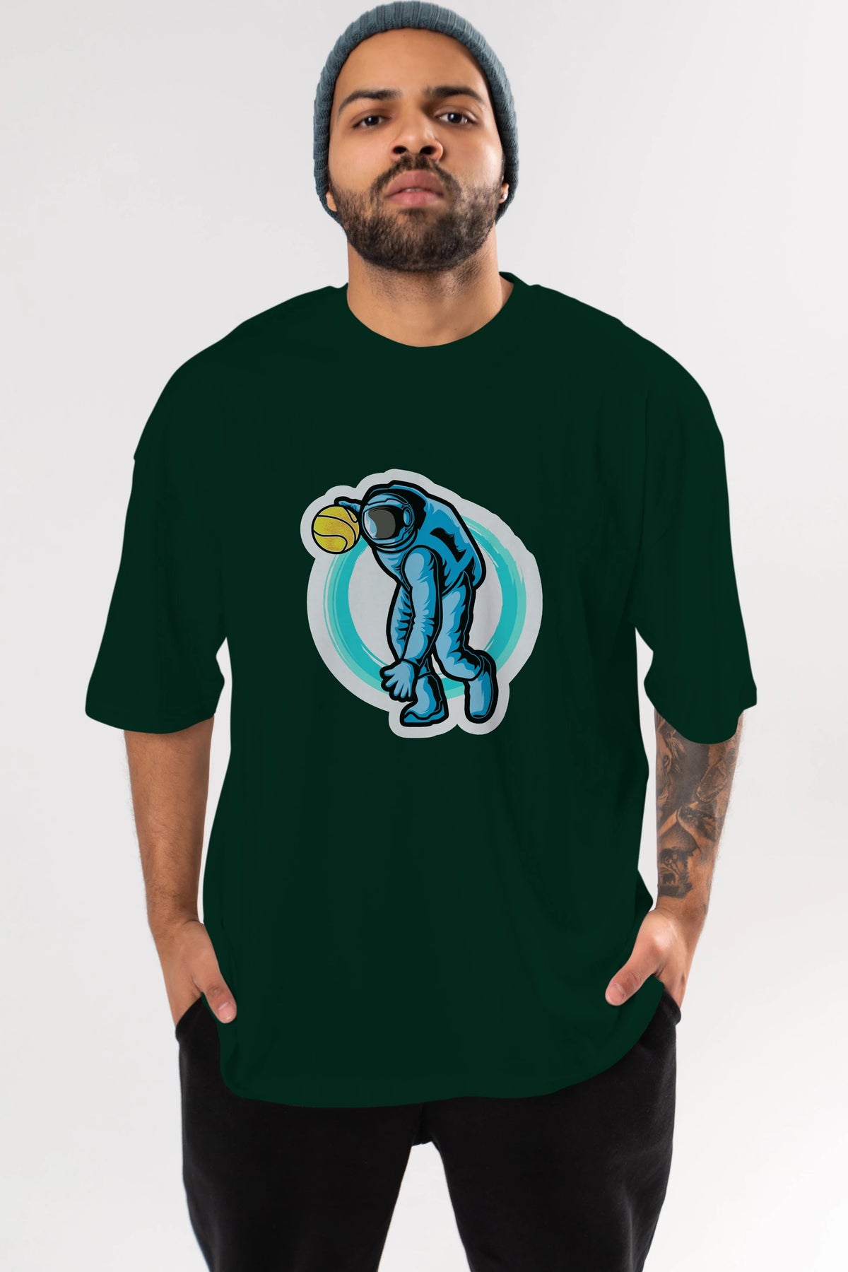 Astronaut Dribble Sticker Ön Baskılı Oversize t-shirt Erkek Kadın Unisex