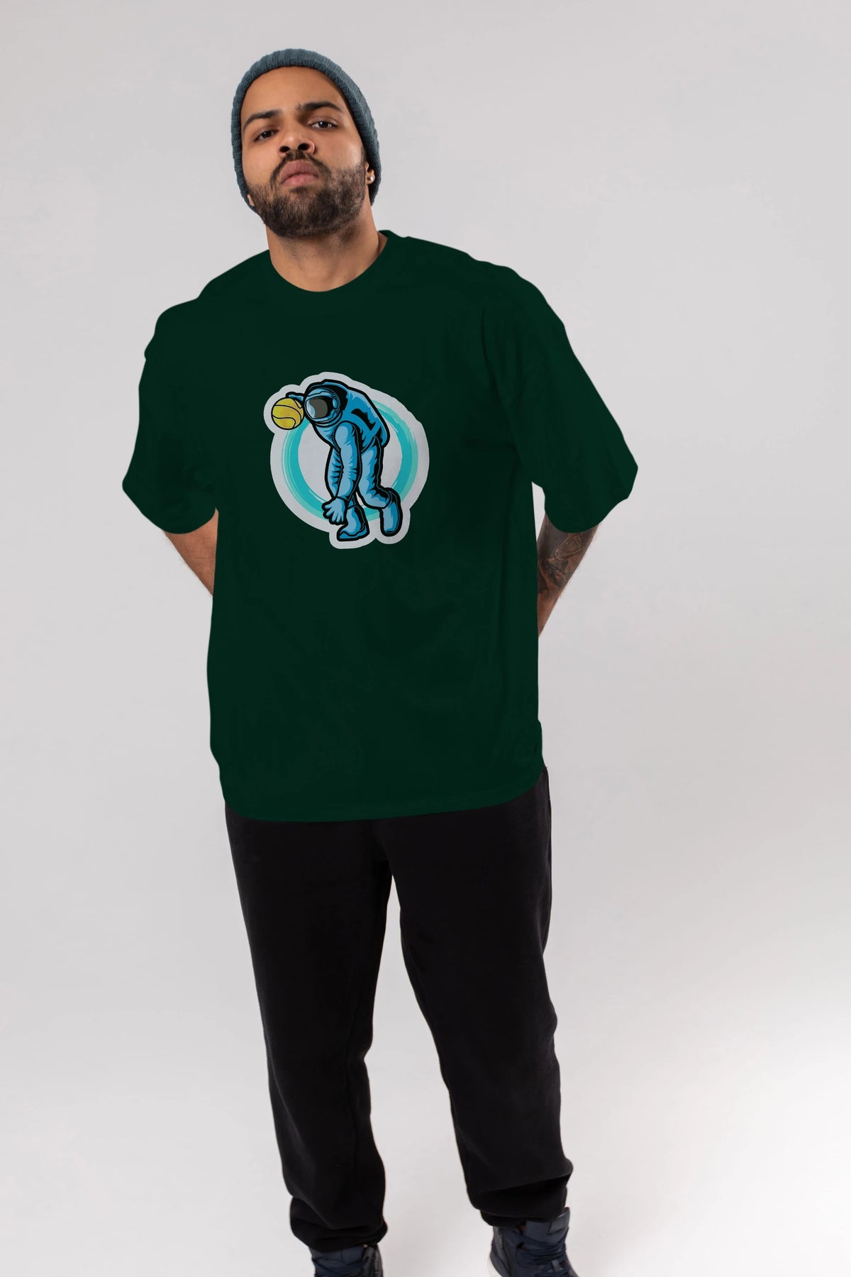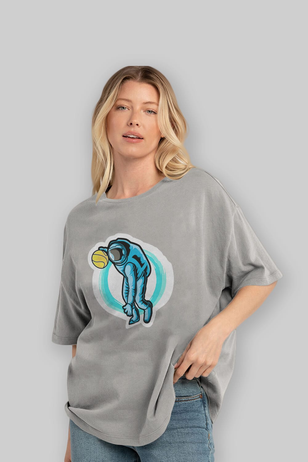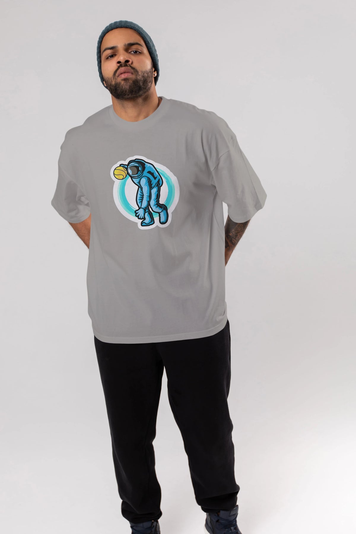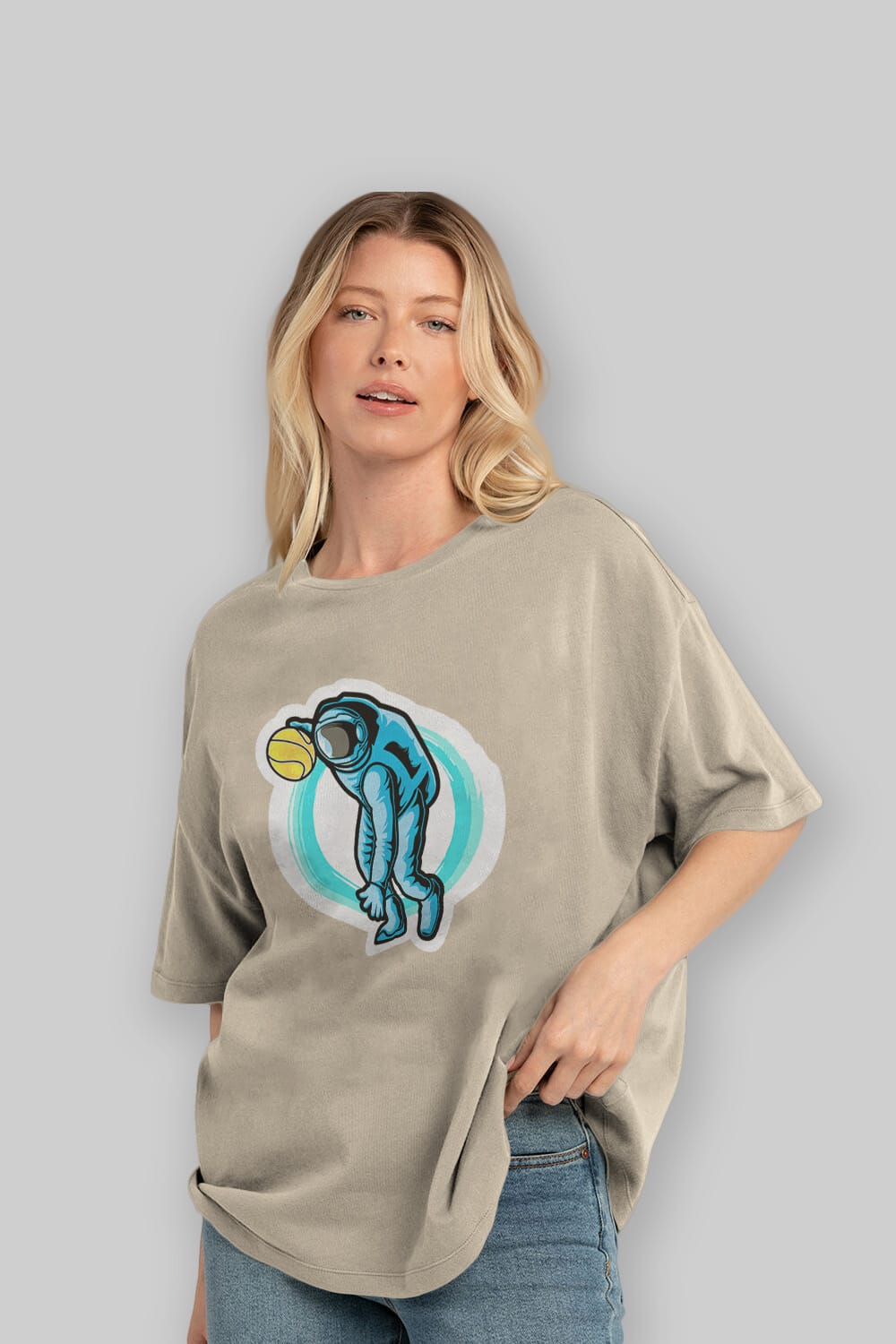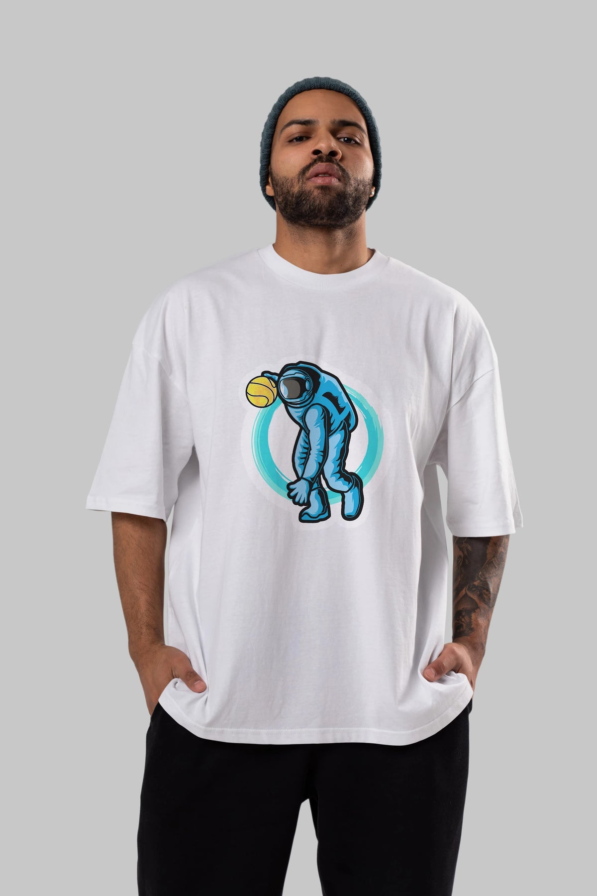 Astronaut Dribble Sticker Ön Baskılı Oversize t-shirt Erkek Kadın Unisex