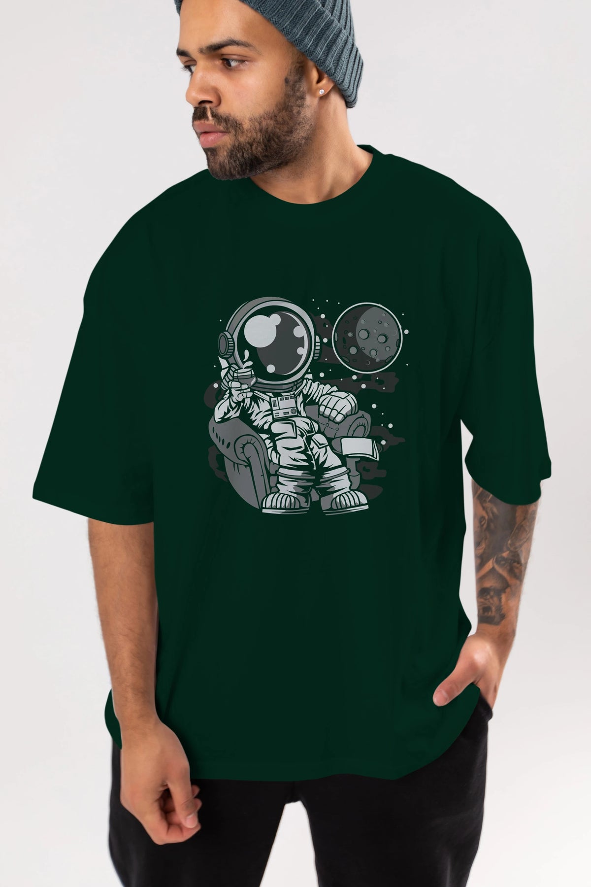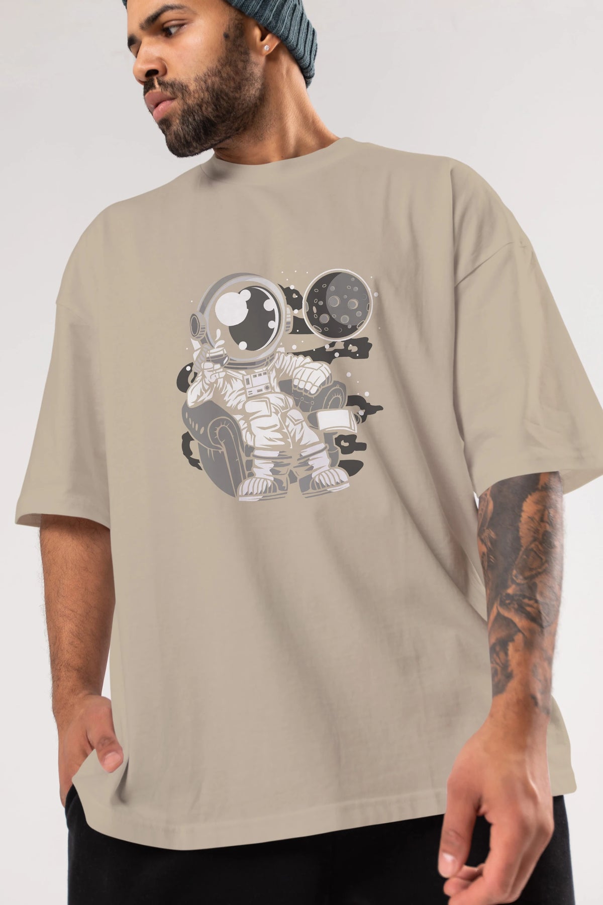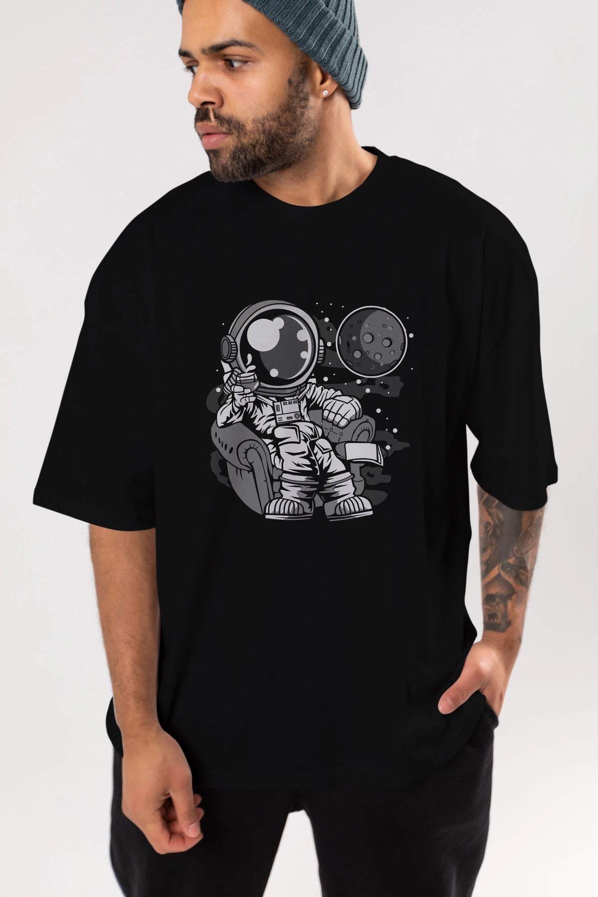 Astronaut Drinking And Relax Ön Baskılı Oversize t-shirt Erkek Kadın Unisex