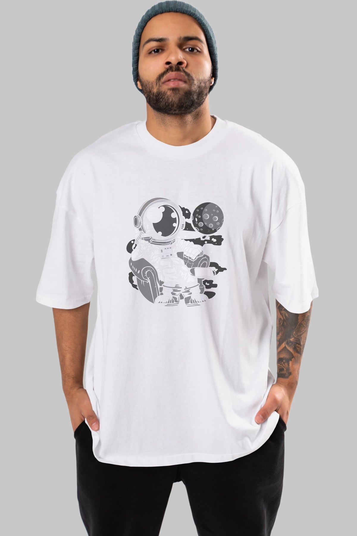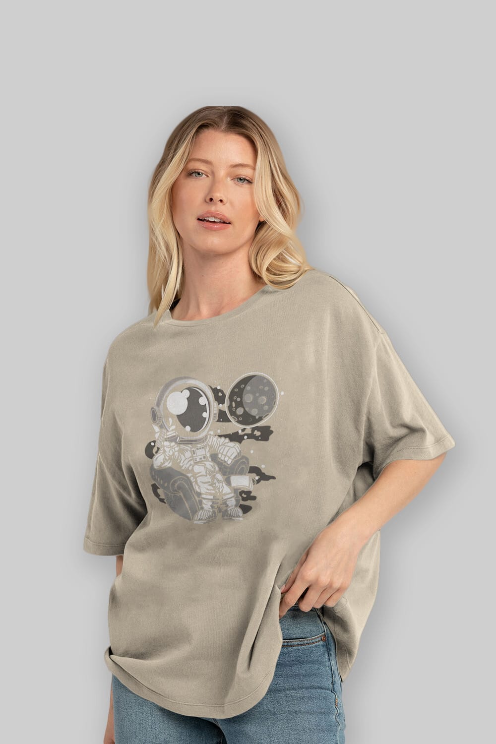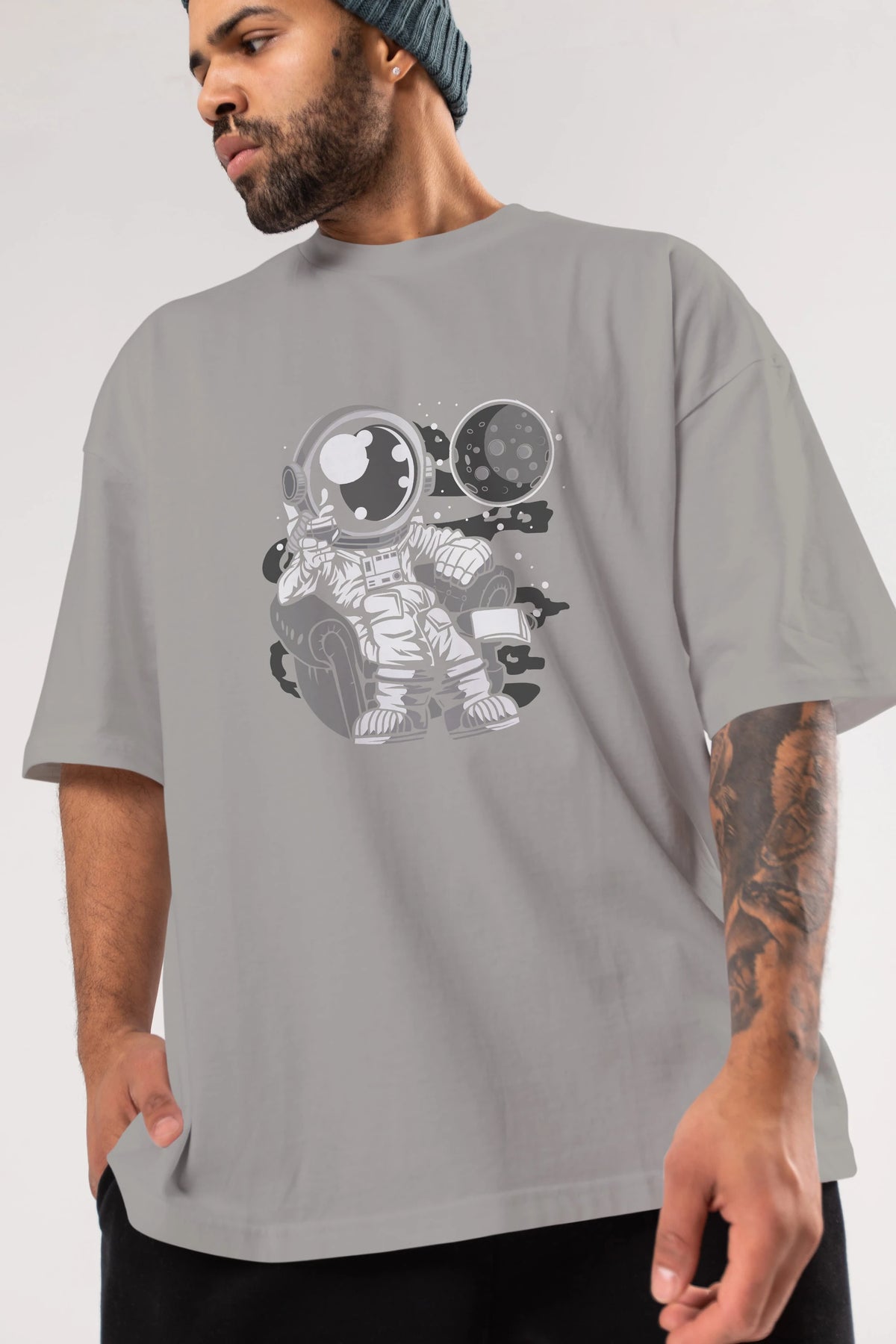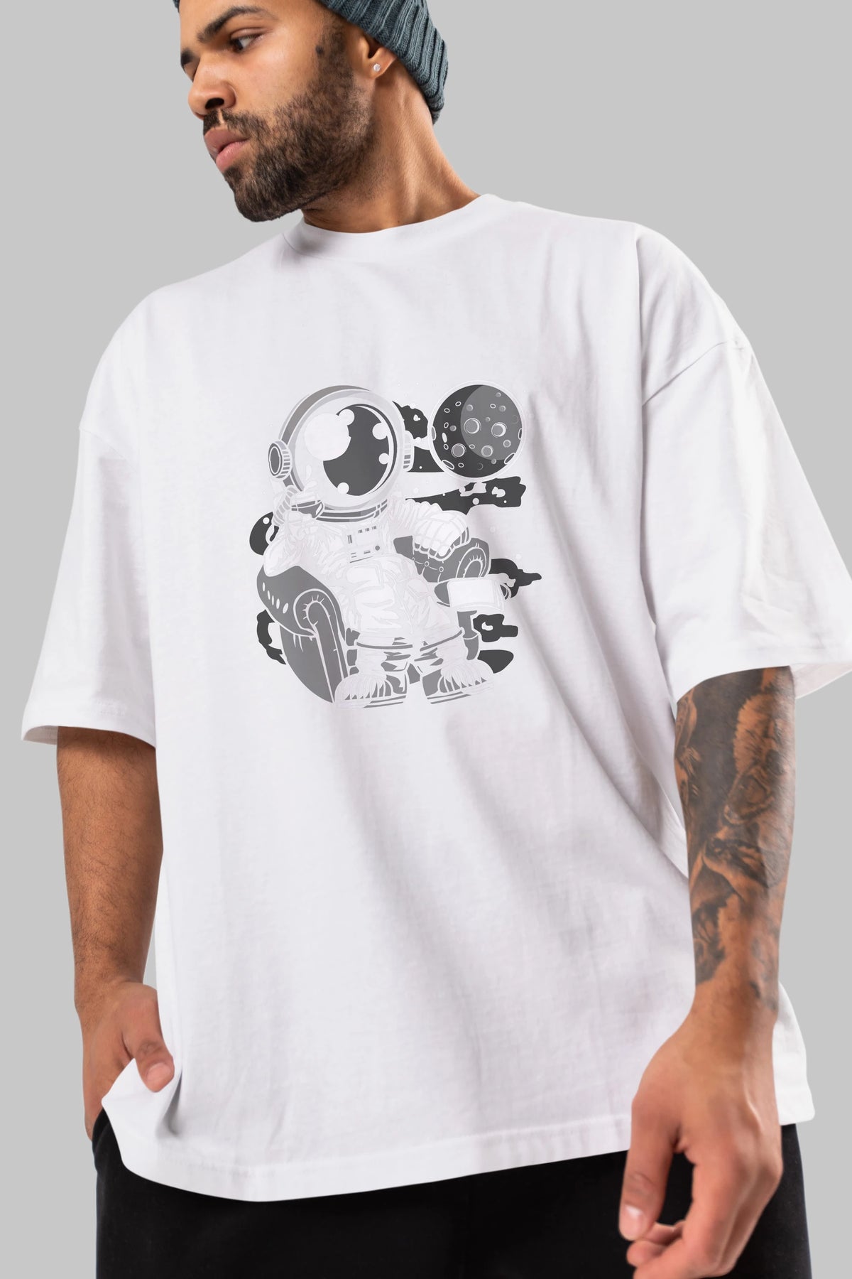 Astronaut Drinking And Relax Ön Baskılı Oversize t-shirt Erkek Kadın Unisex
