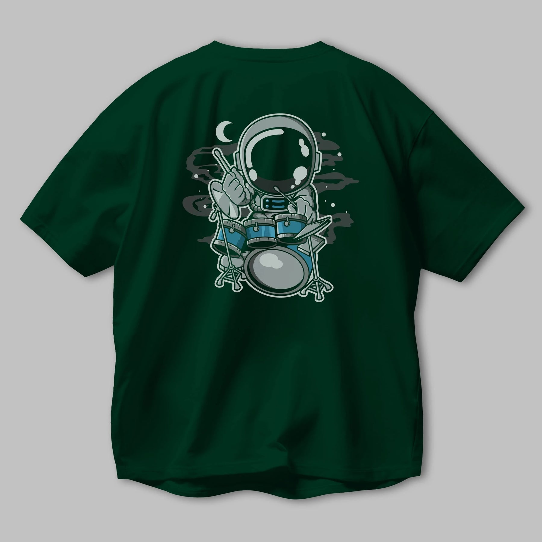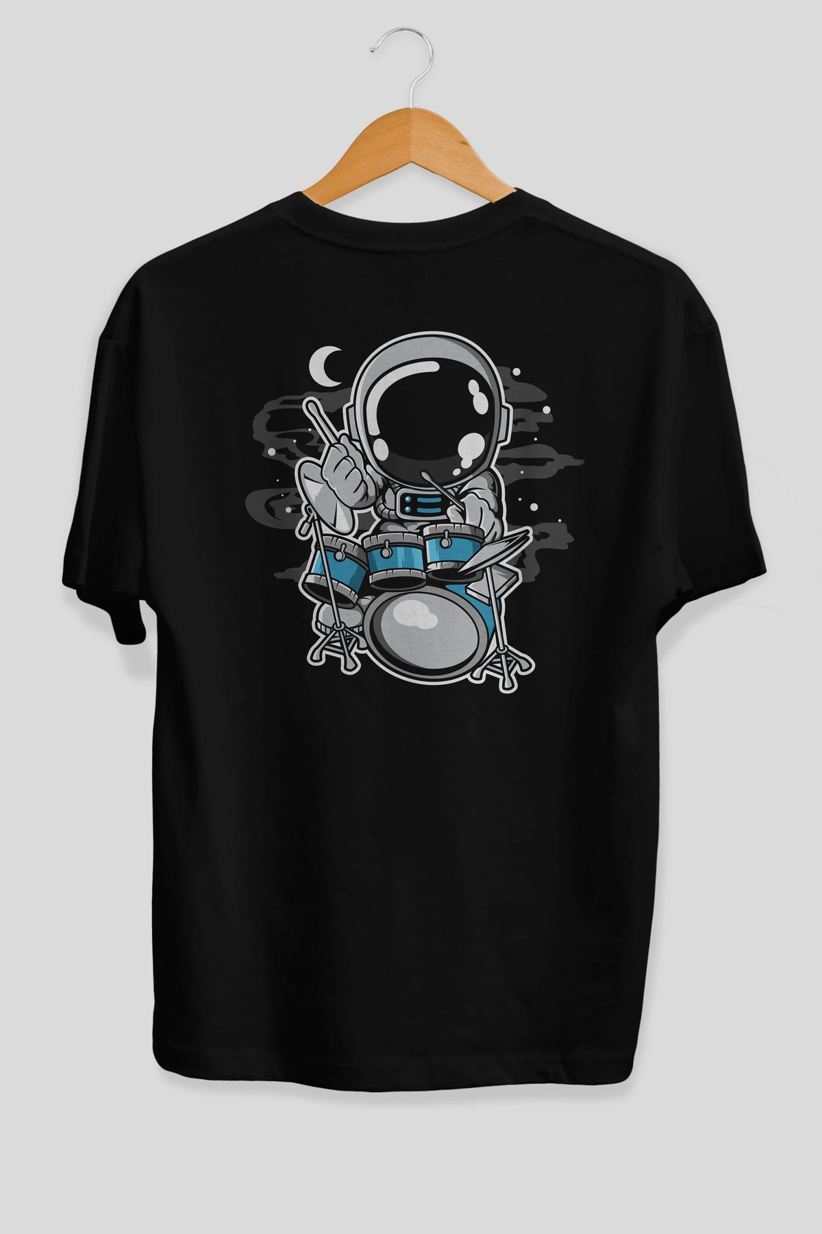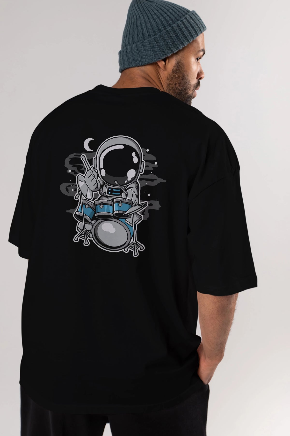 Astronaut Drummer Arka Baskılı Oversize t-shirt Erkek Kadın Unisex