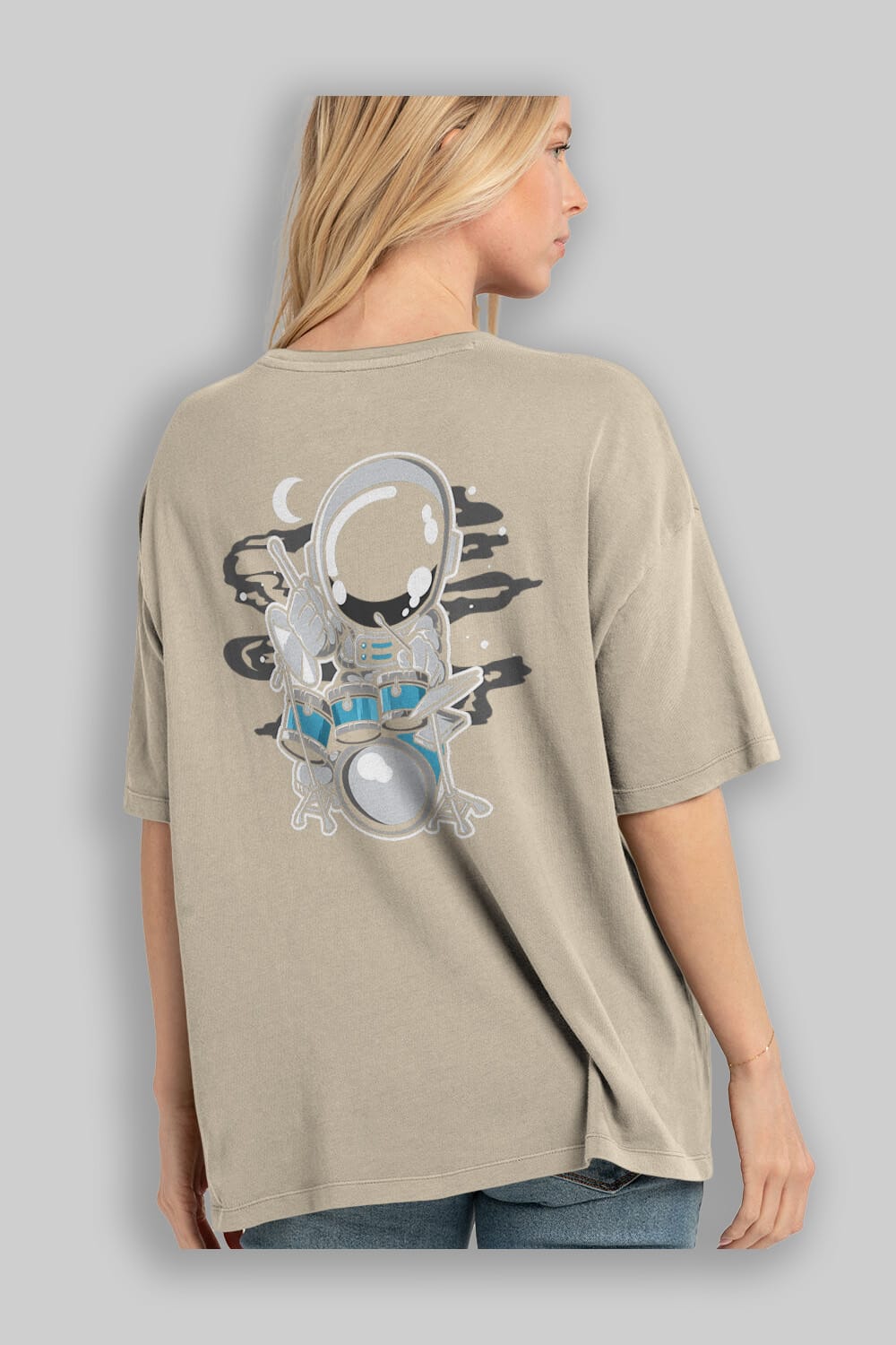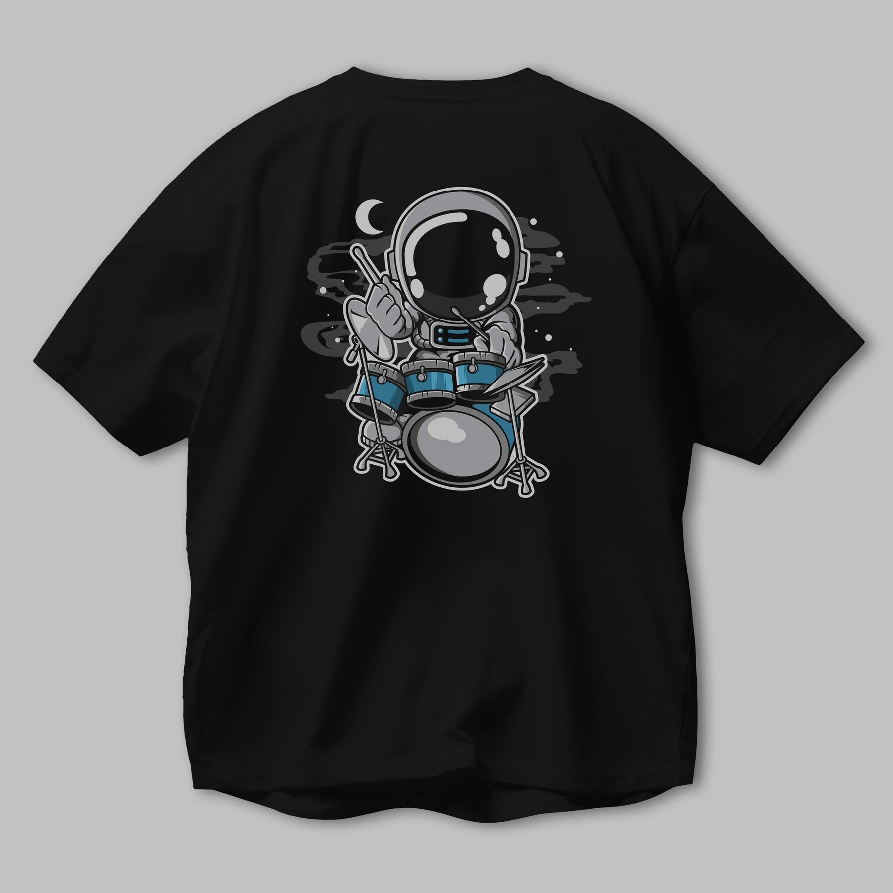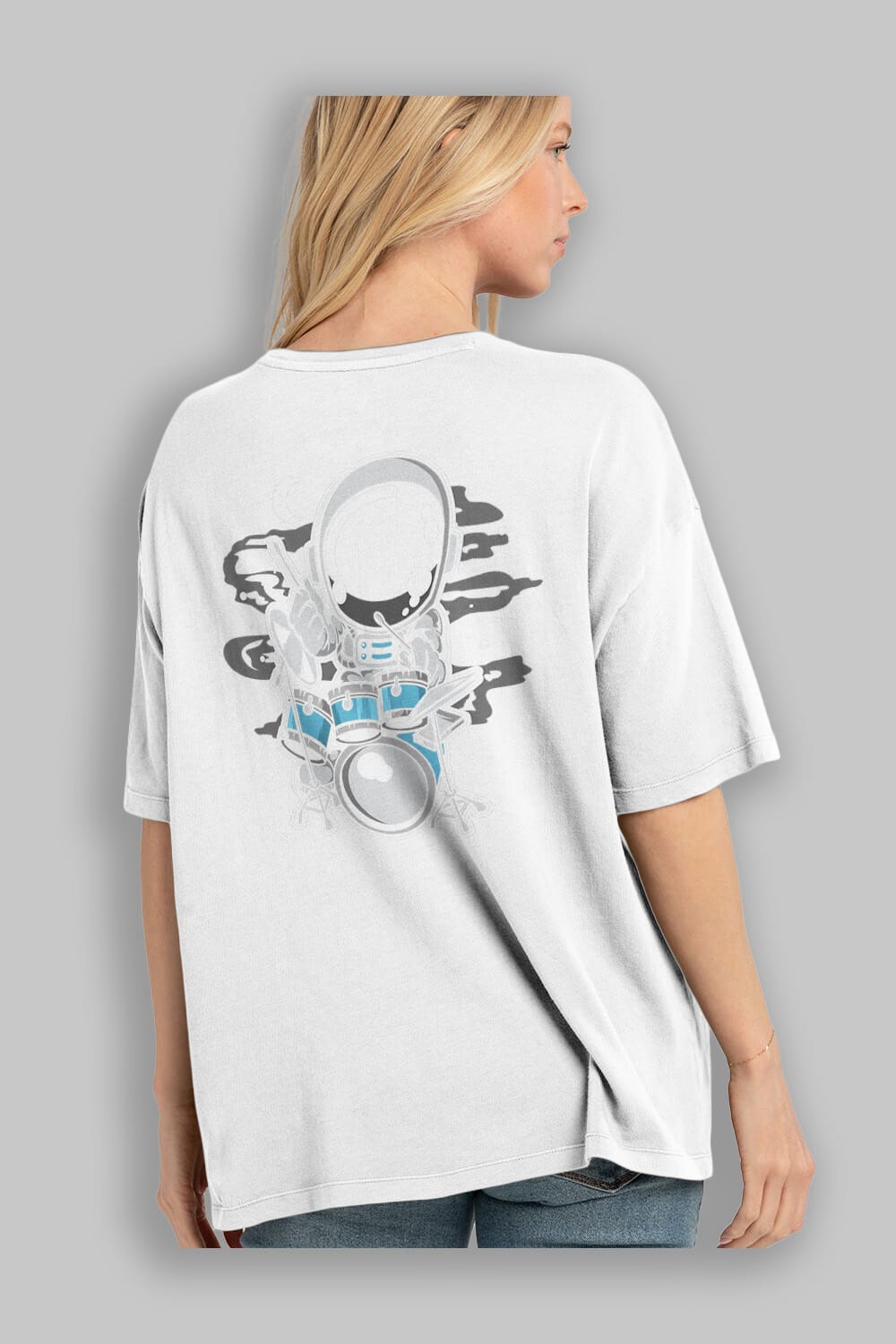 Astronaut Drummer Arka Baskılı Oversize t-shirt Erkek Kadın Unisex