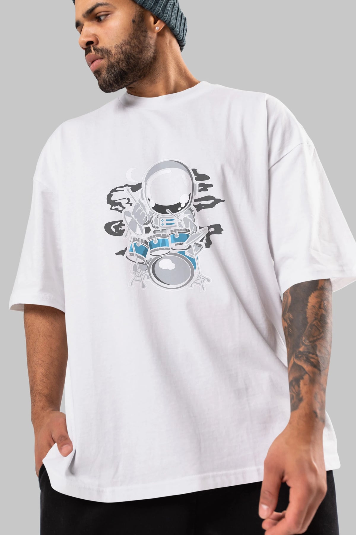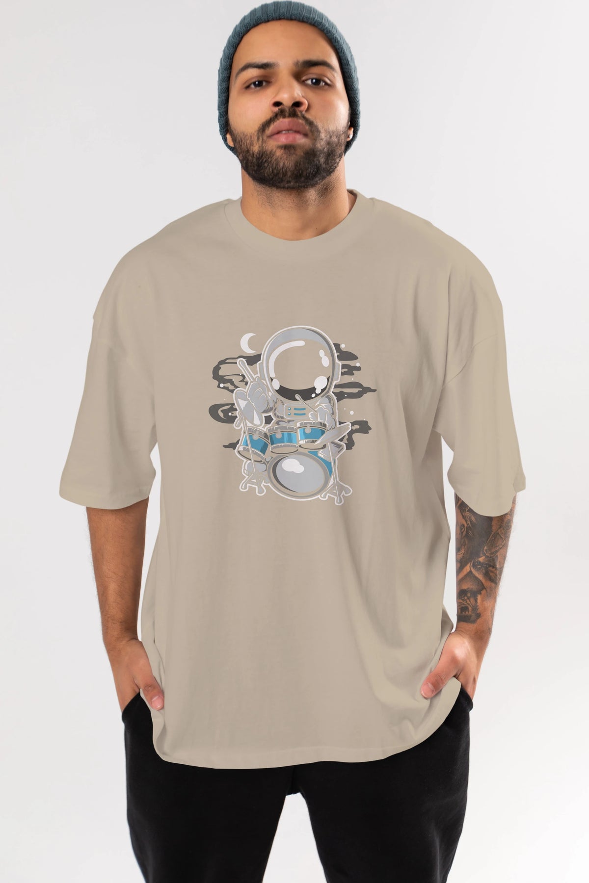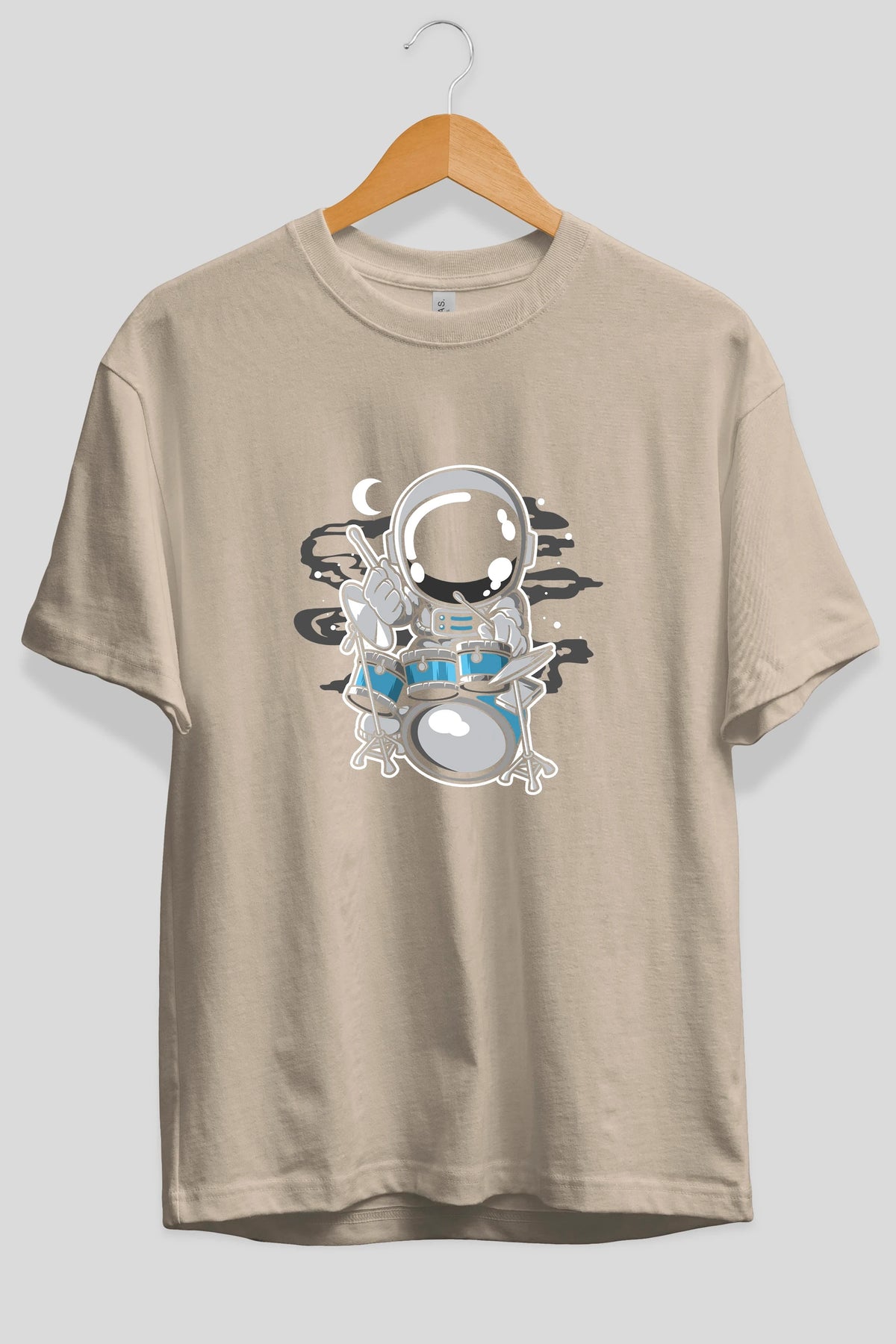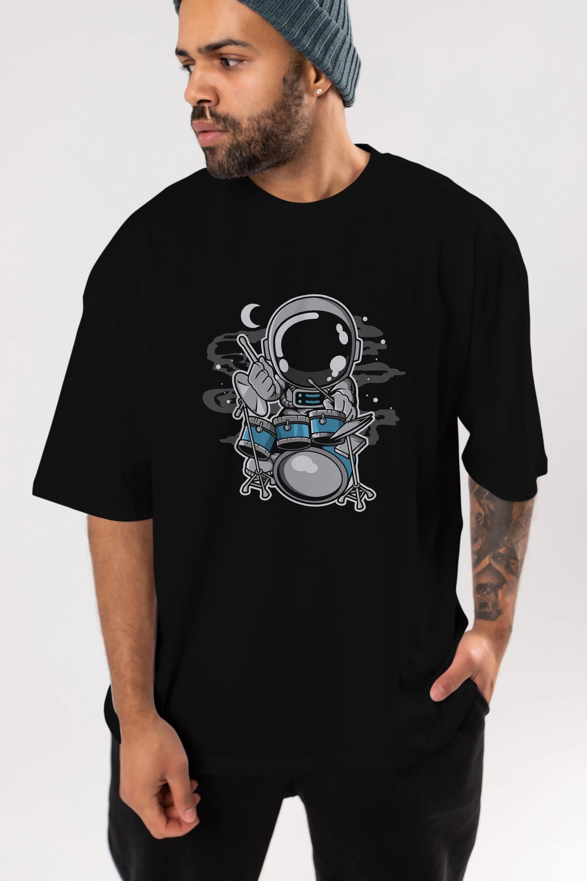 Astronaut Drummer Ön Baskılı Oversize t-shirt Erkek Kadın Unisex
