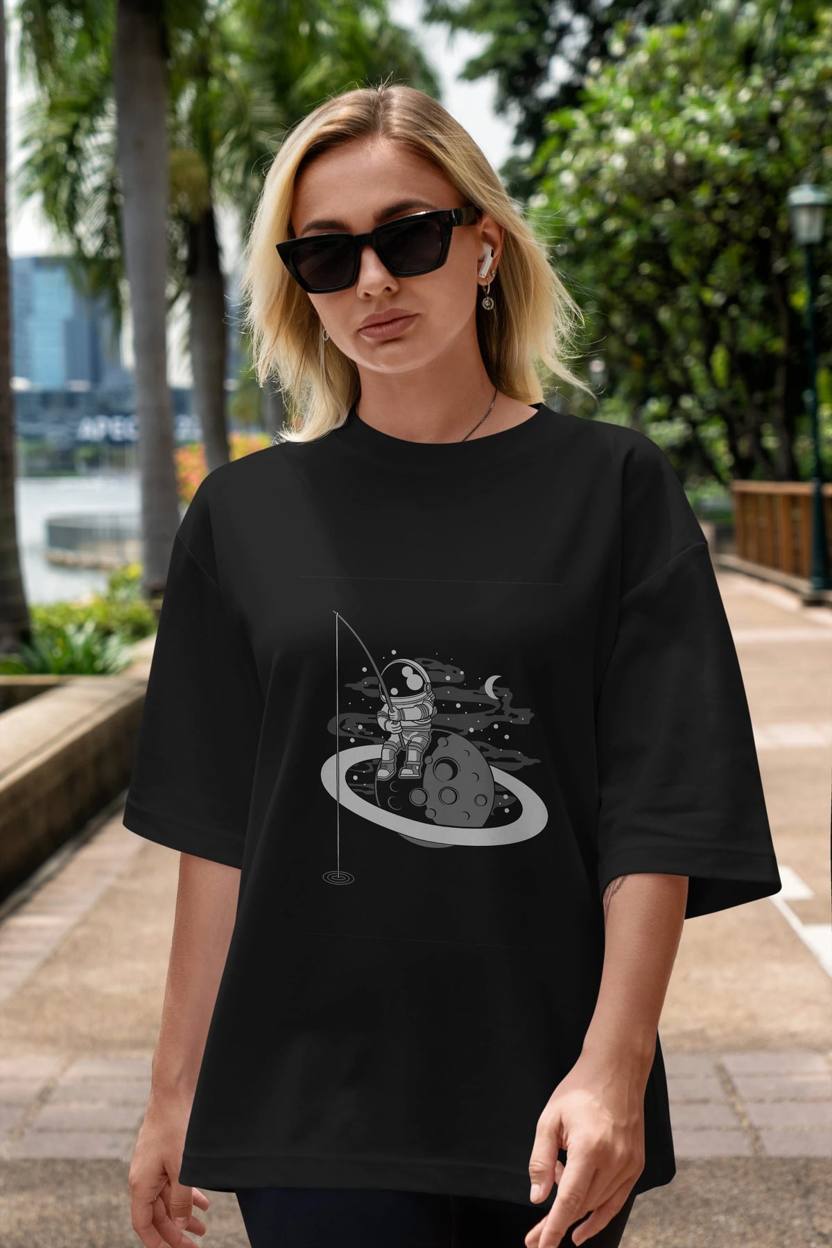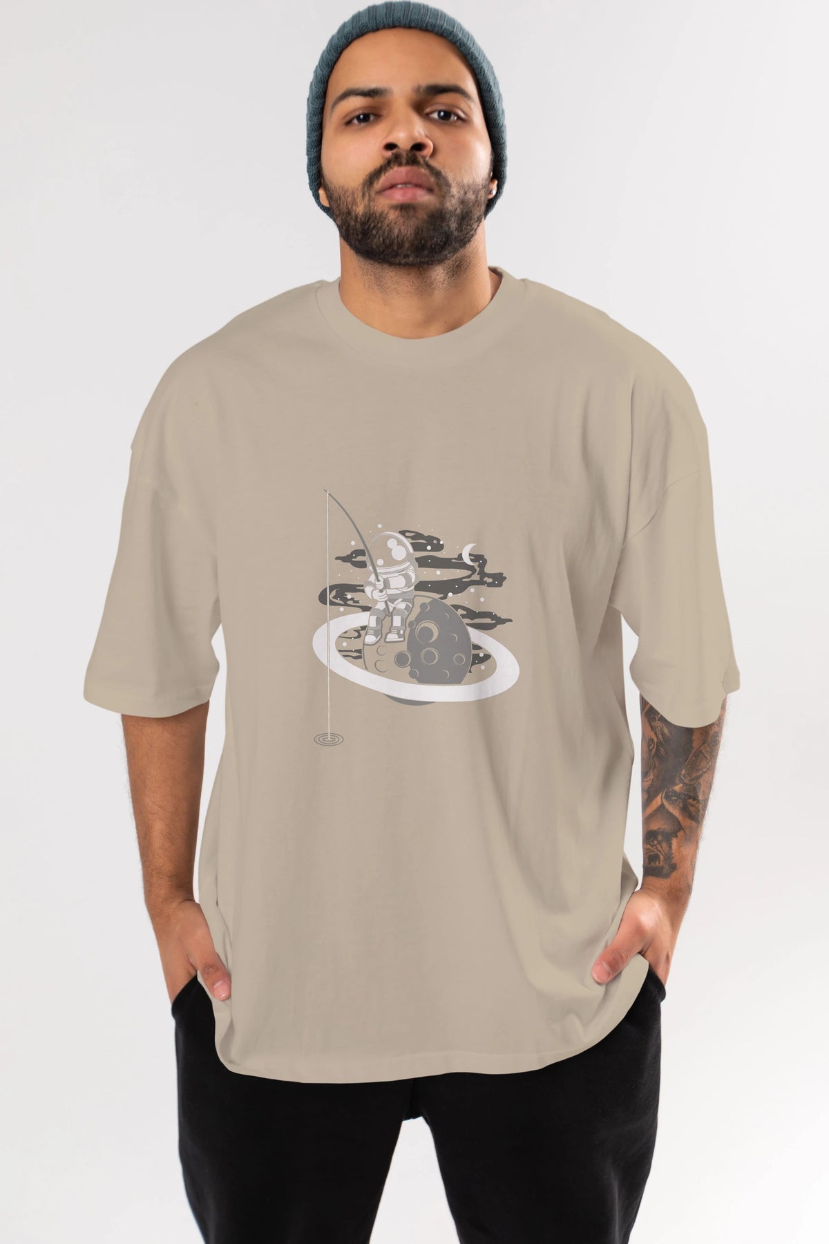 Astronaut Fishing Ön Baskılı Oversize t-shirt Erkek Kadın Unisex