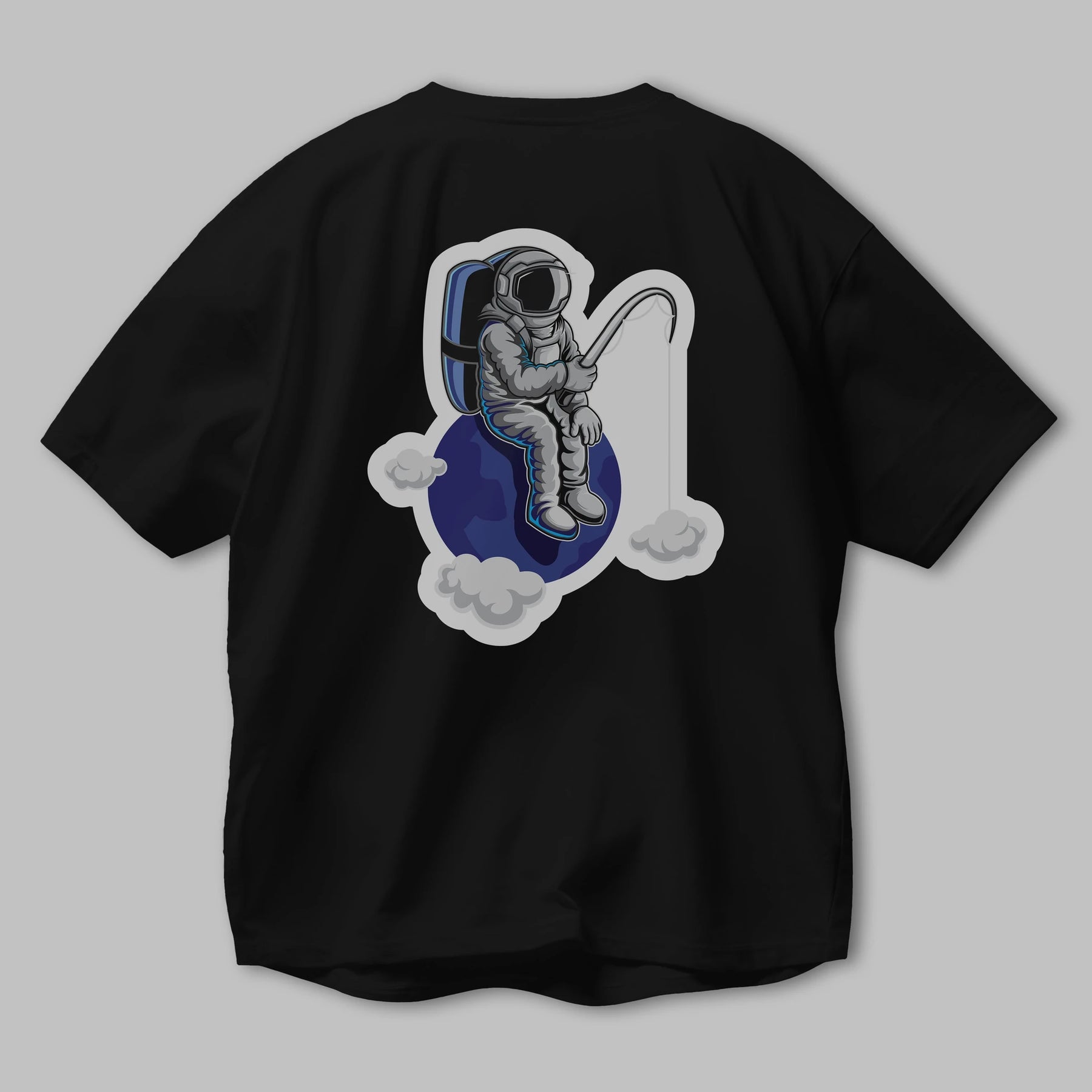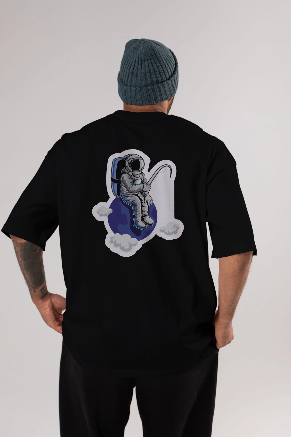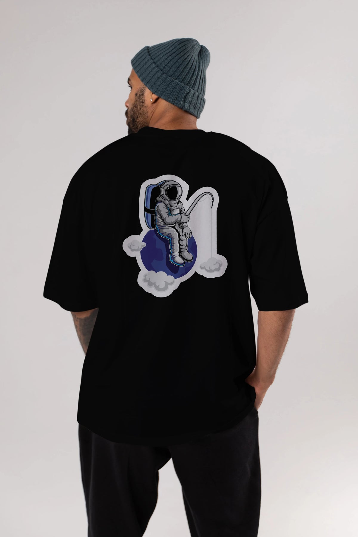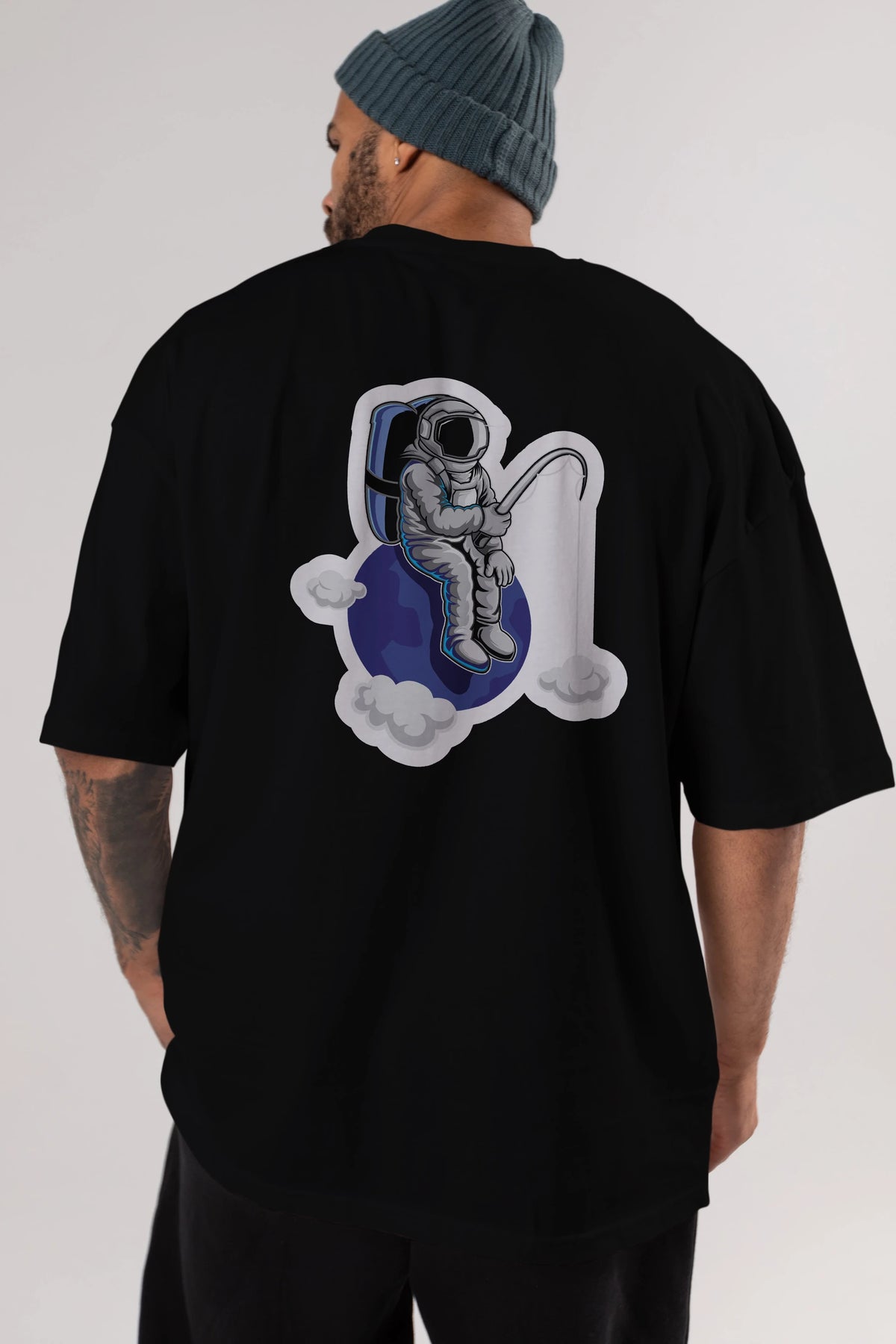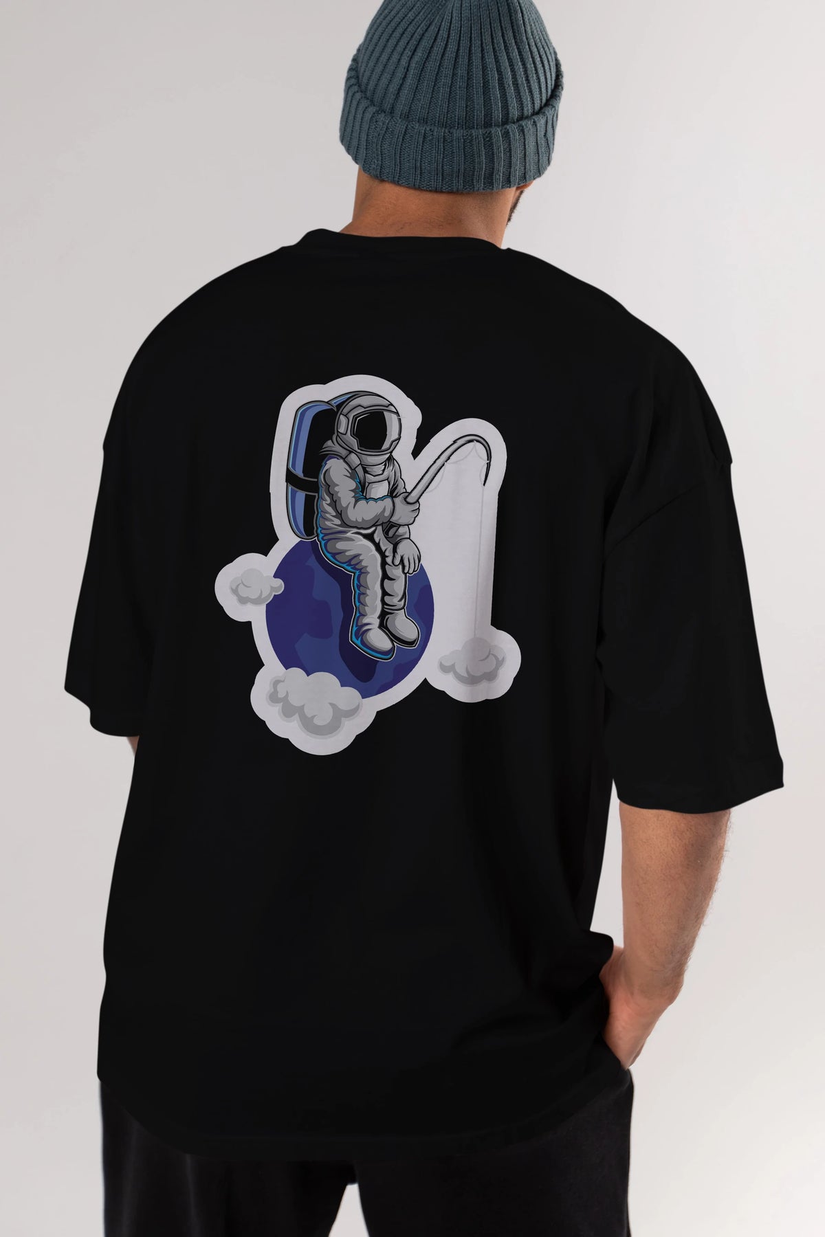 Astronaut Fishing Sticker Arka Baskılı Oversize t-shirt Erkek Kadın Unisex