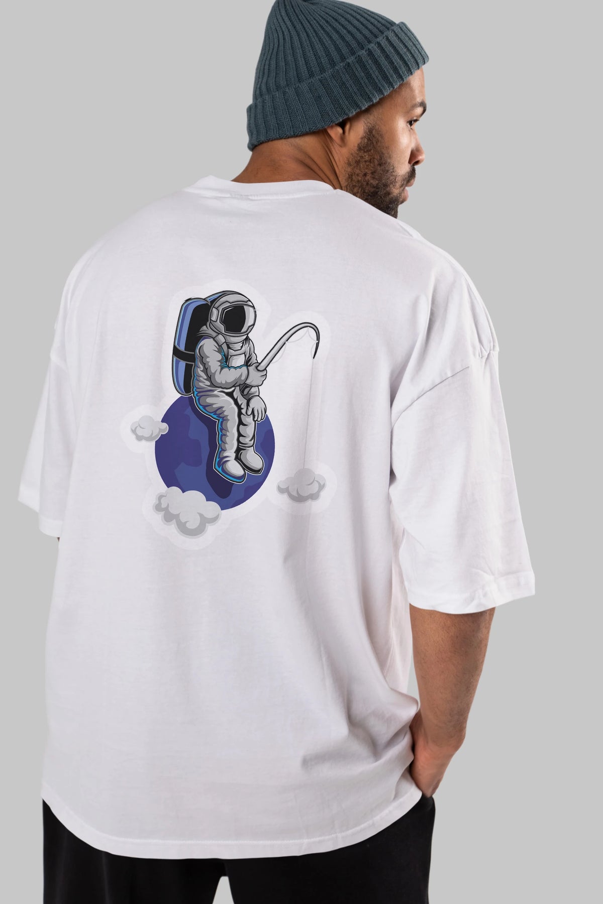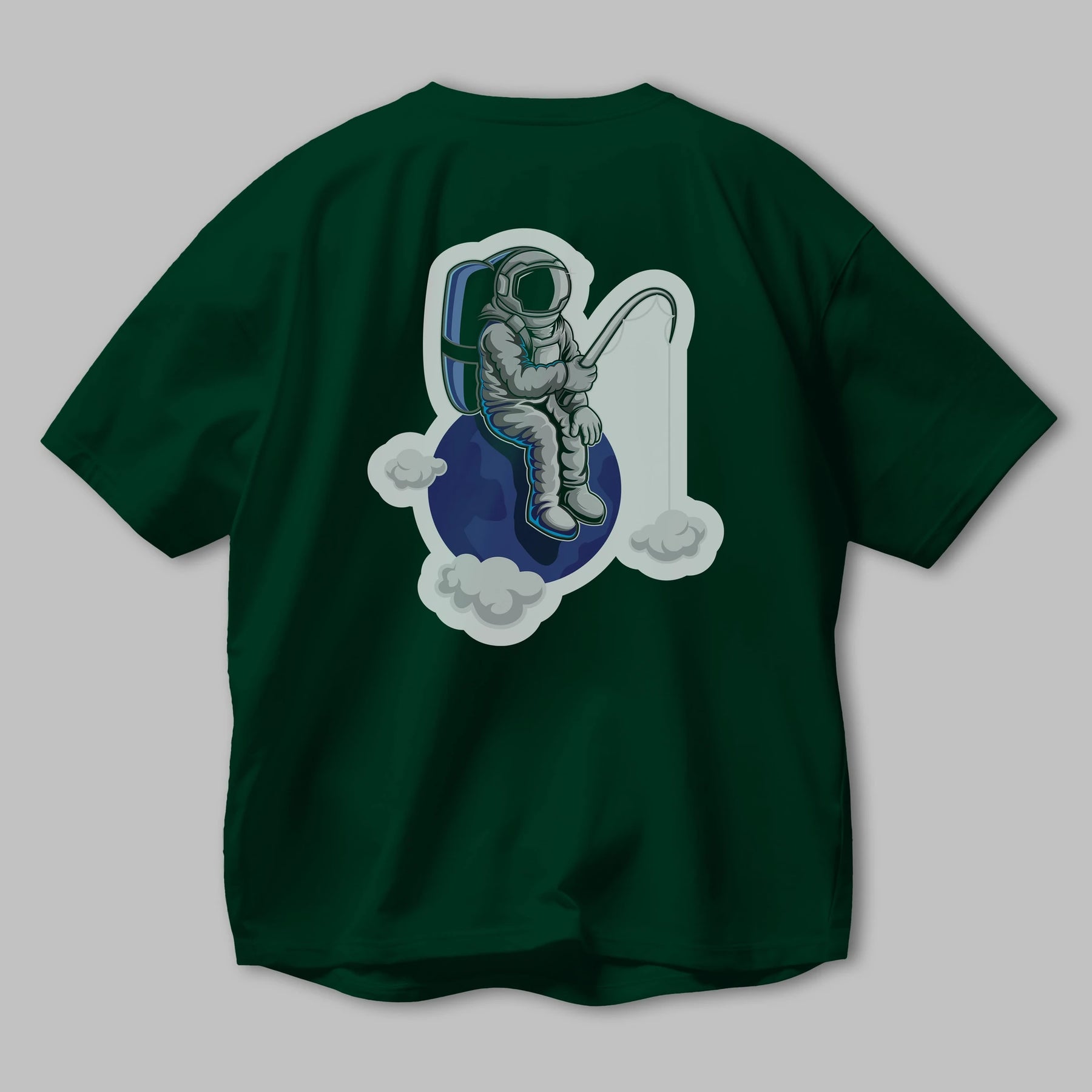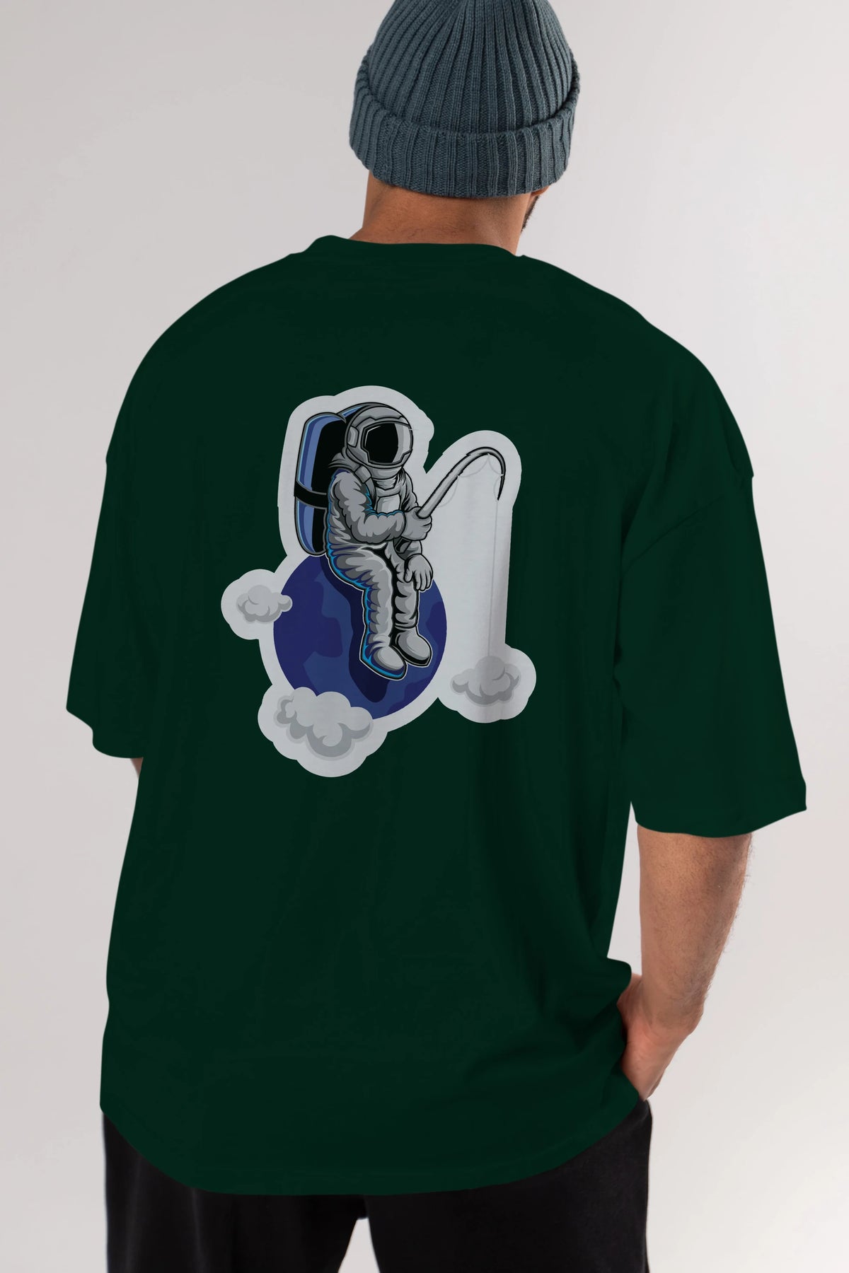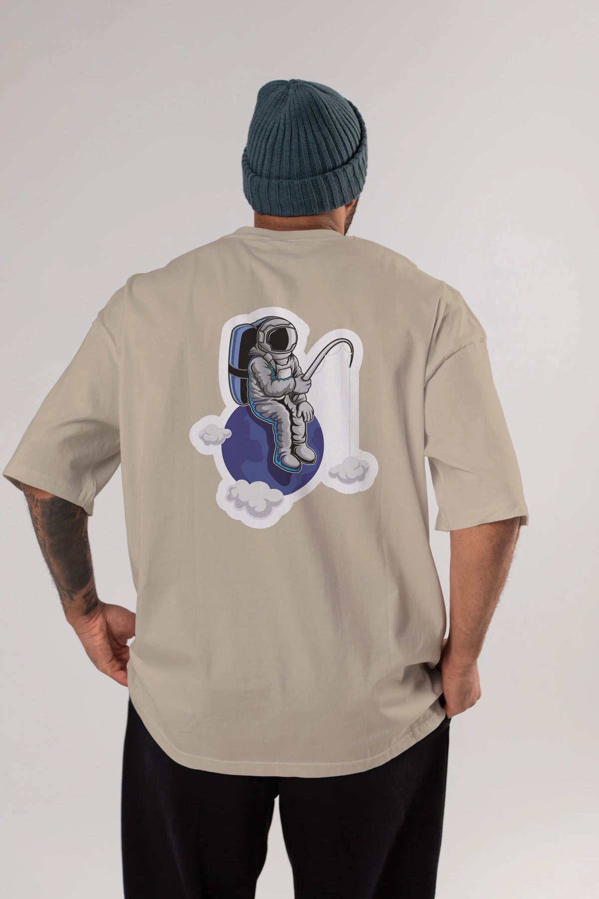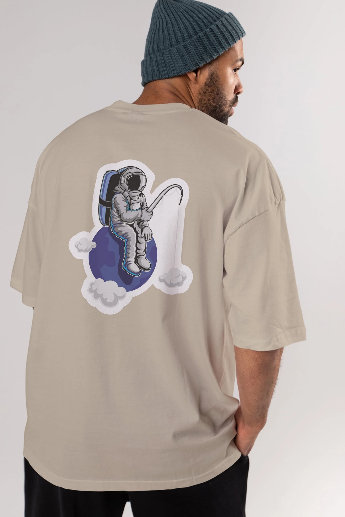 Astronaut Fishing Sticker Arka Baskılı Oversize t-shirt Erkek Kadın Unisex