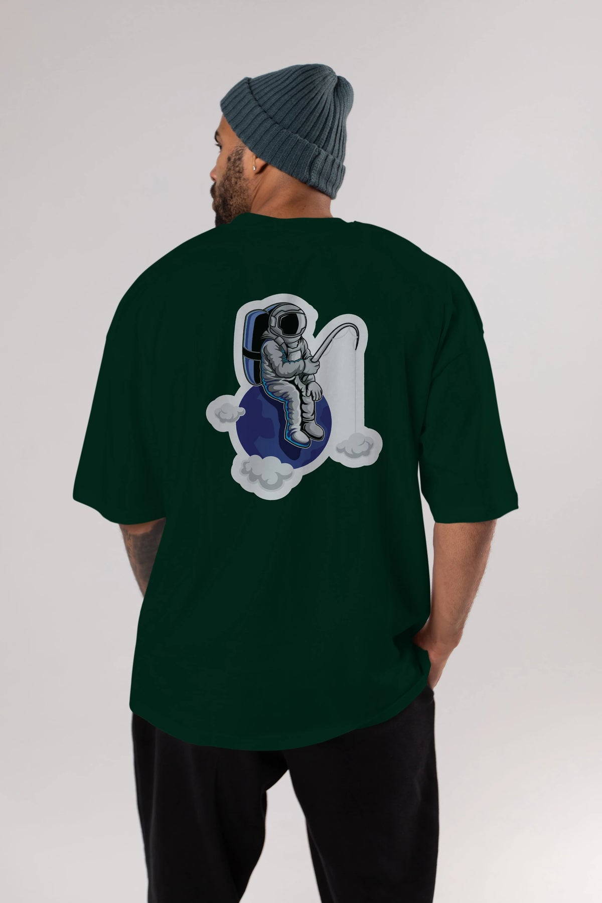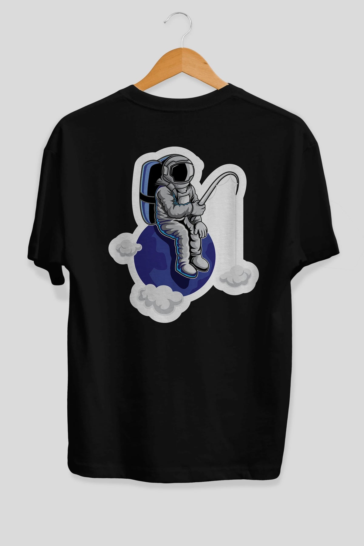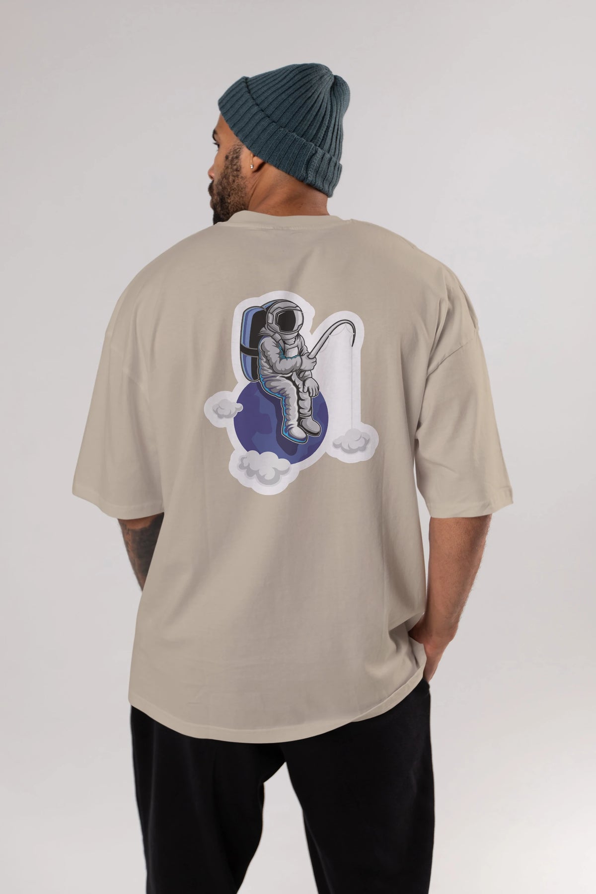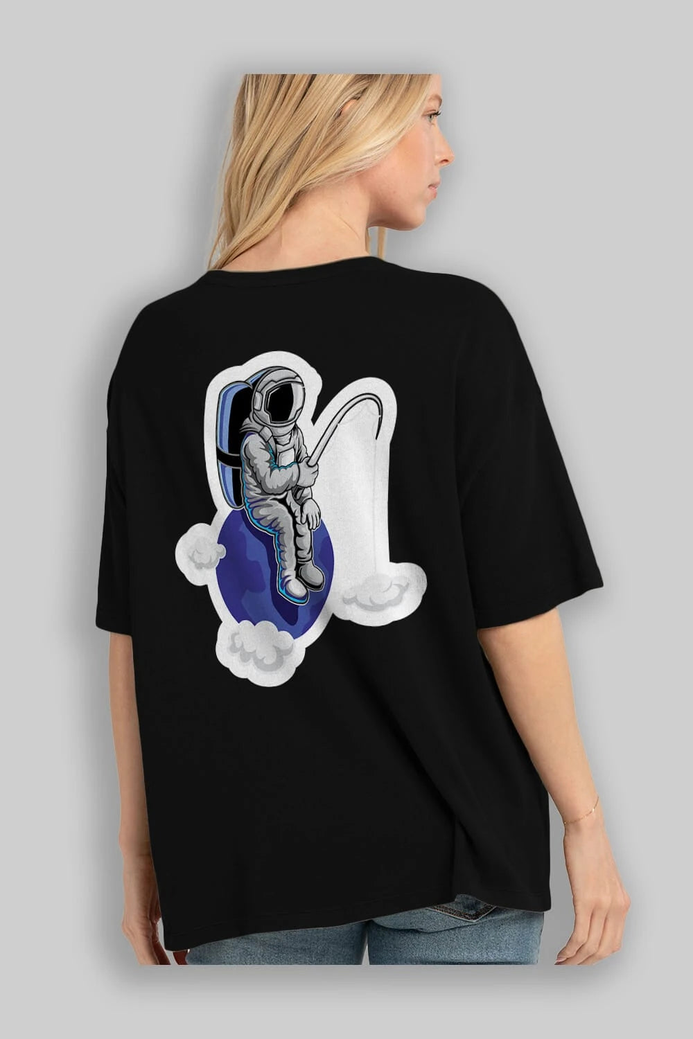 Astronaut Fishing Sticker Arka Baskılı Oversize t-shirt Erkek Kadın Unisex