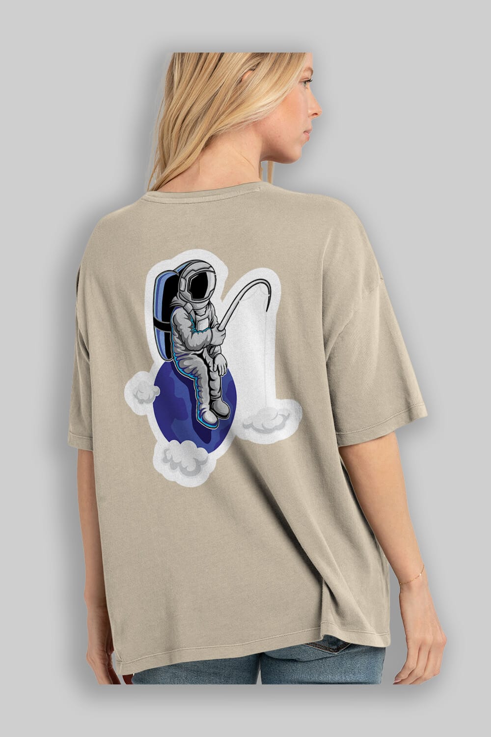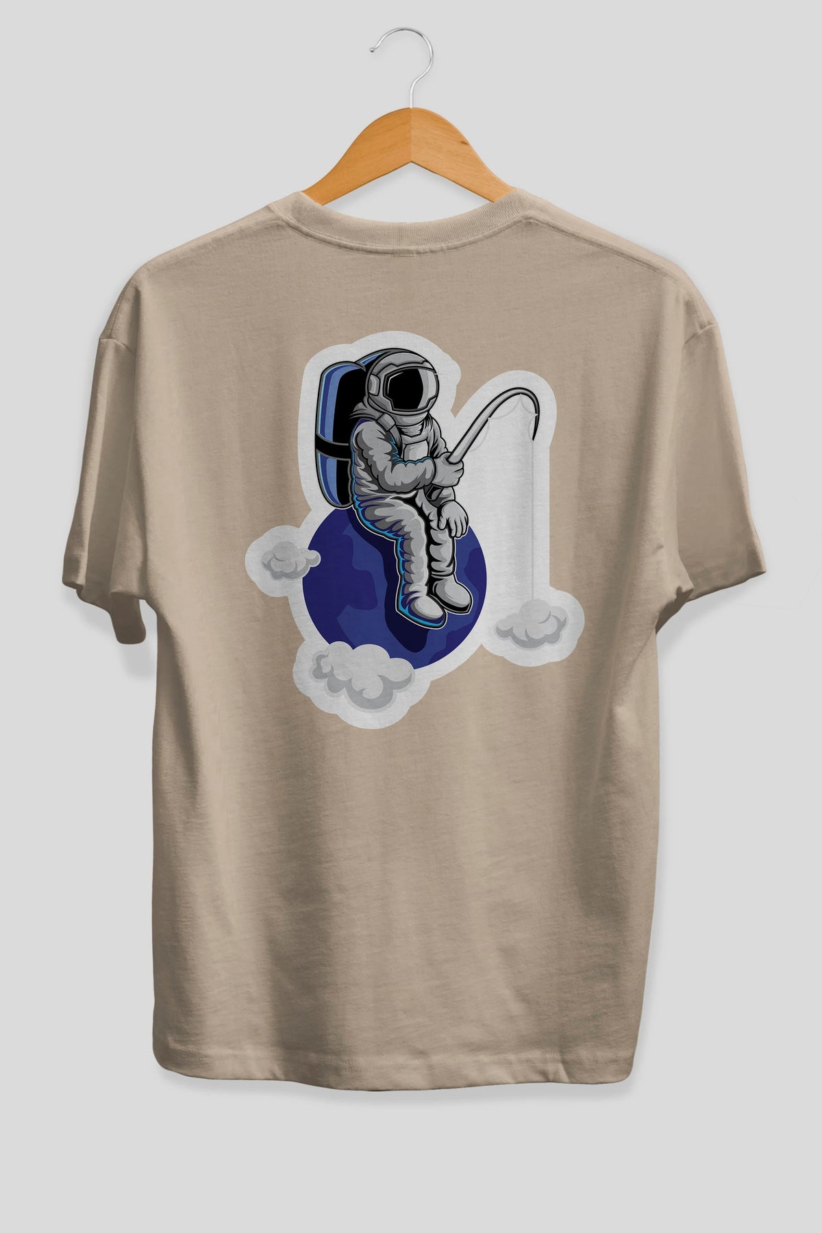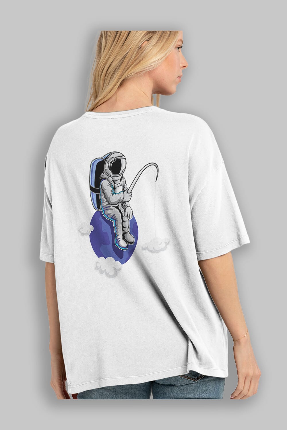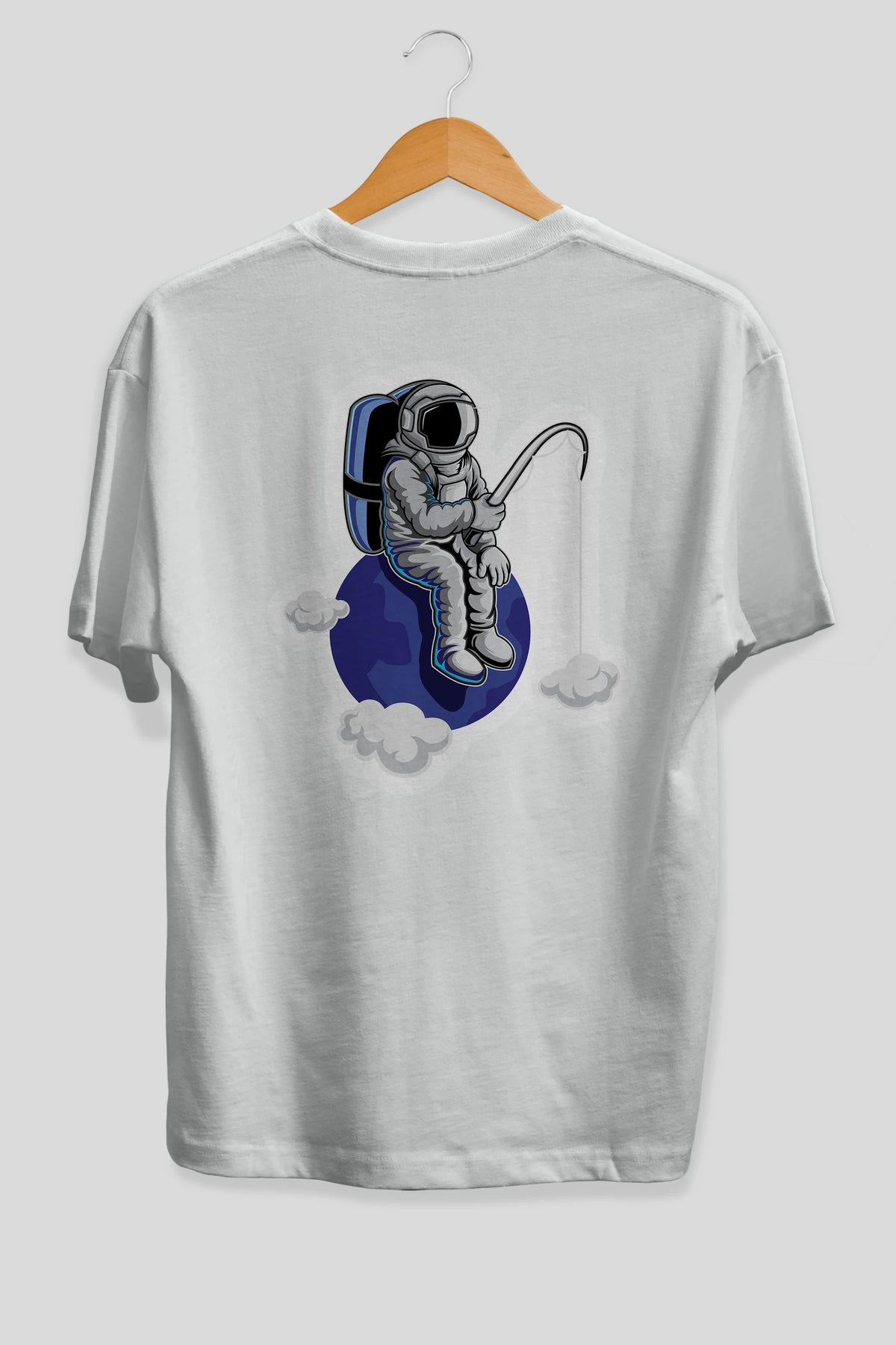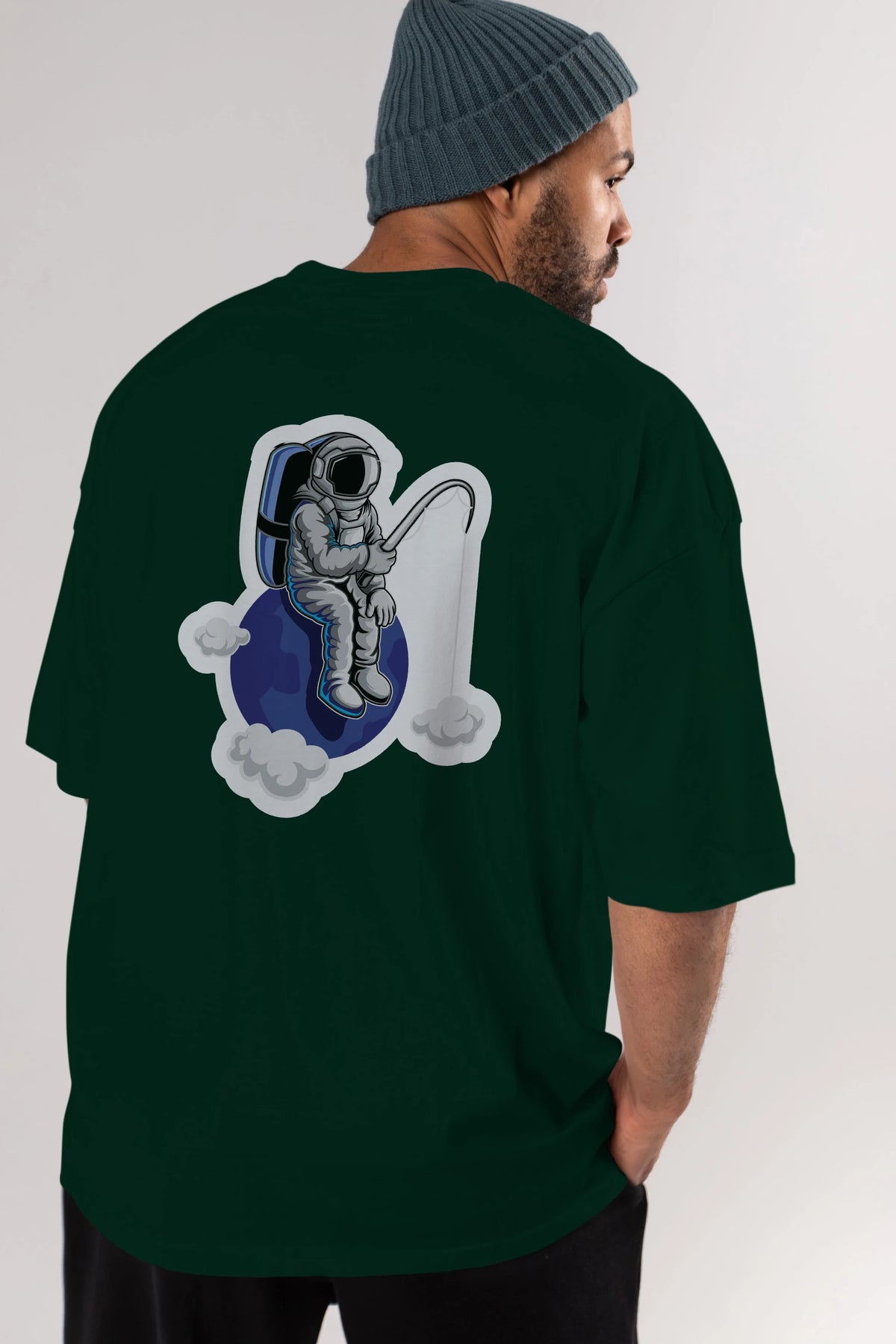 Astronaut Fishing Sticker Arka Baskılı Oversize t-shirt Erkek Kadın Unisex