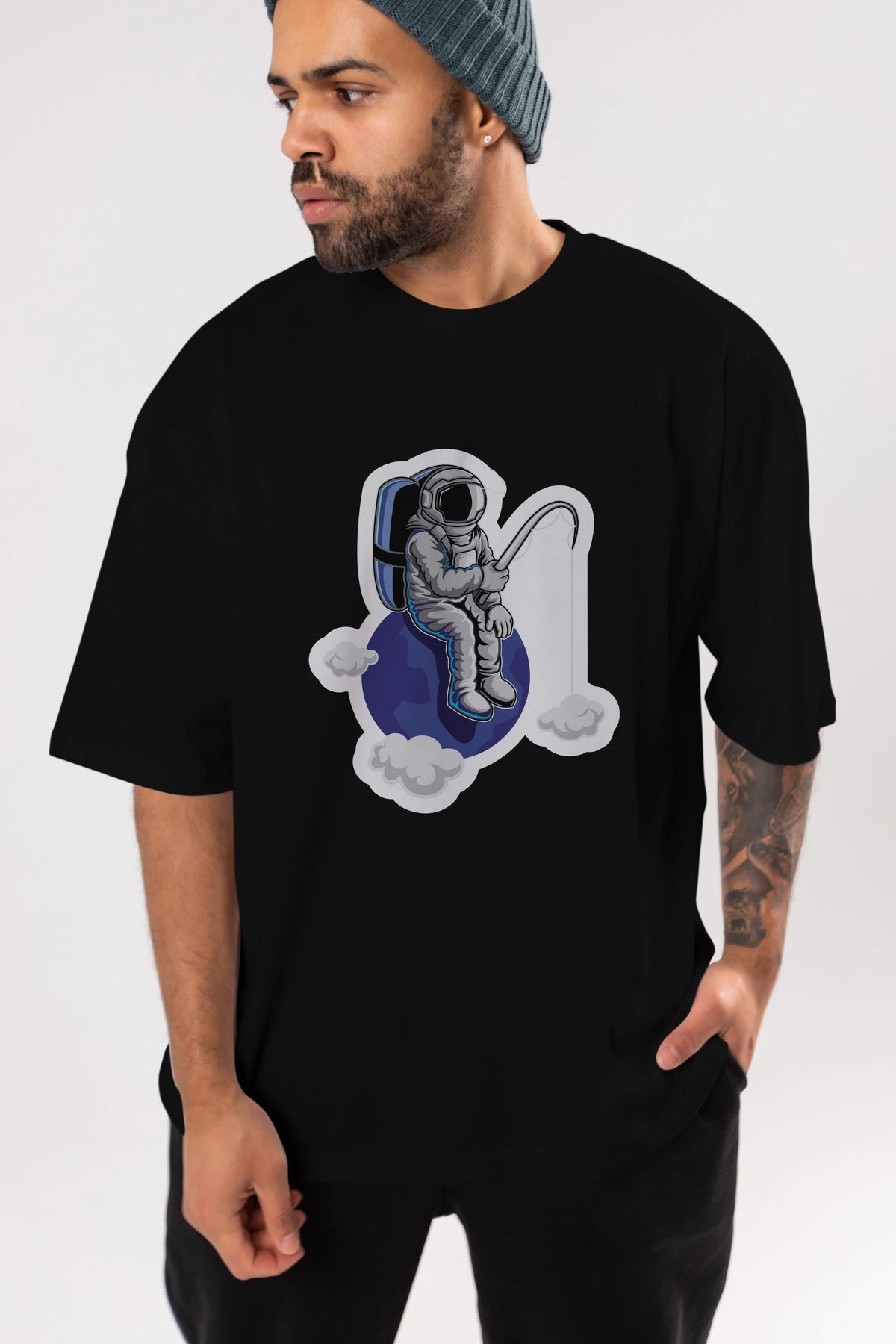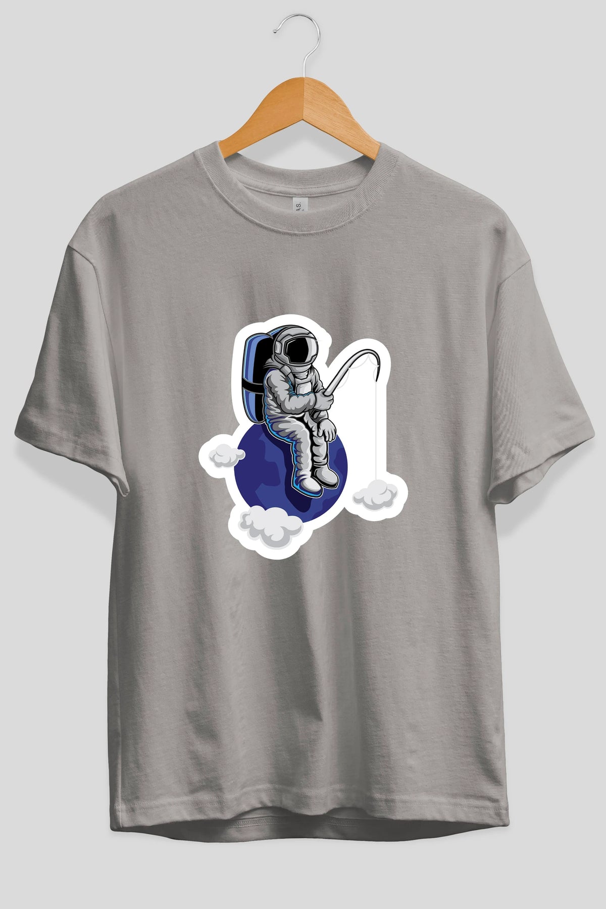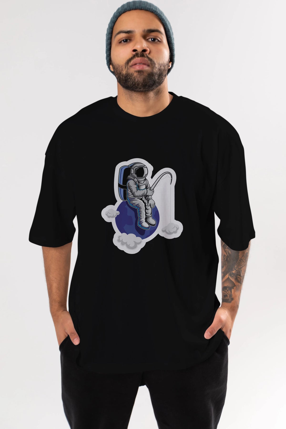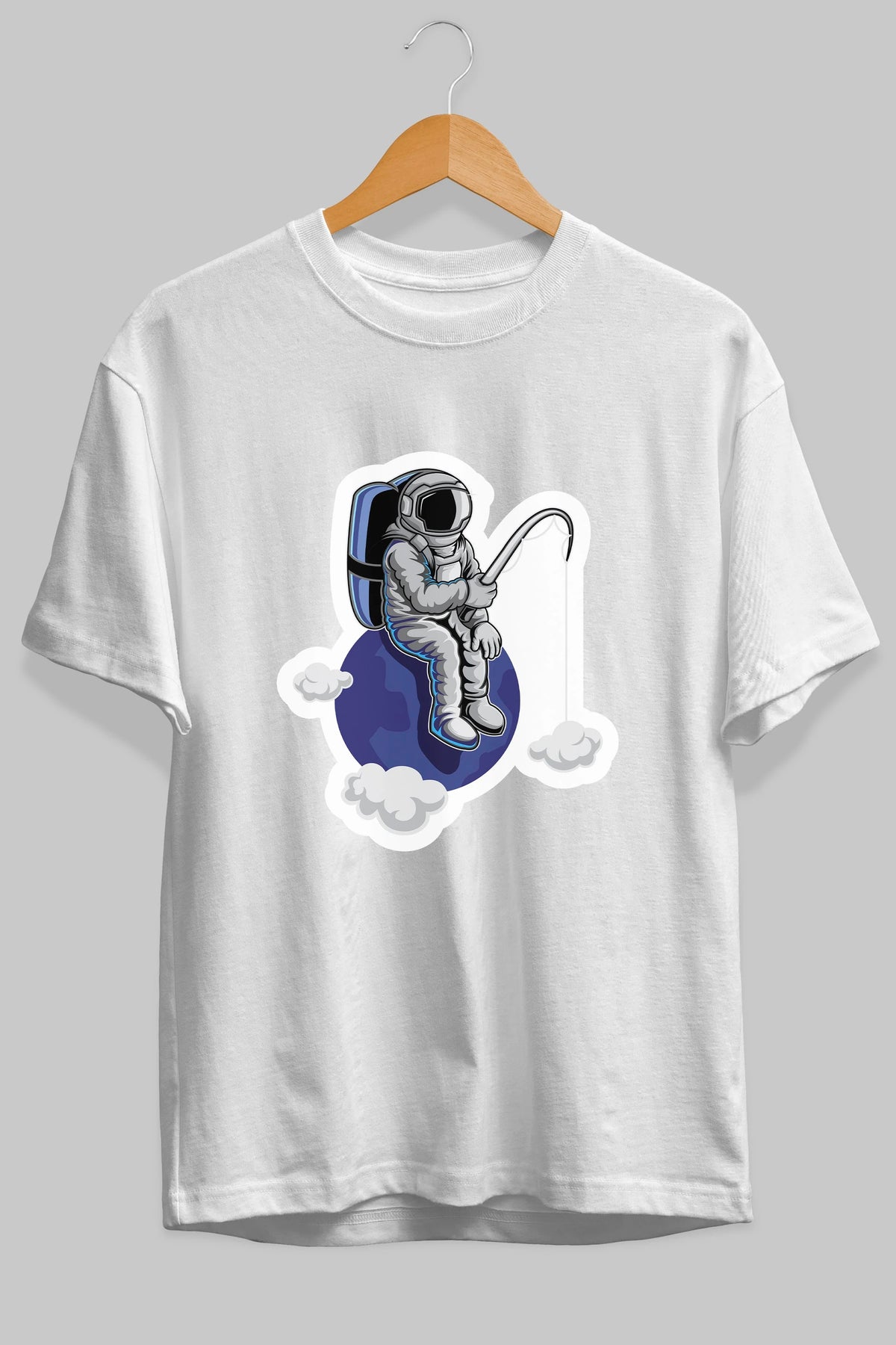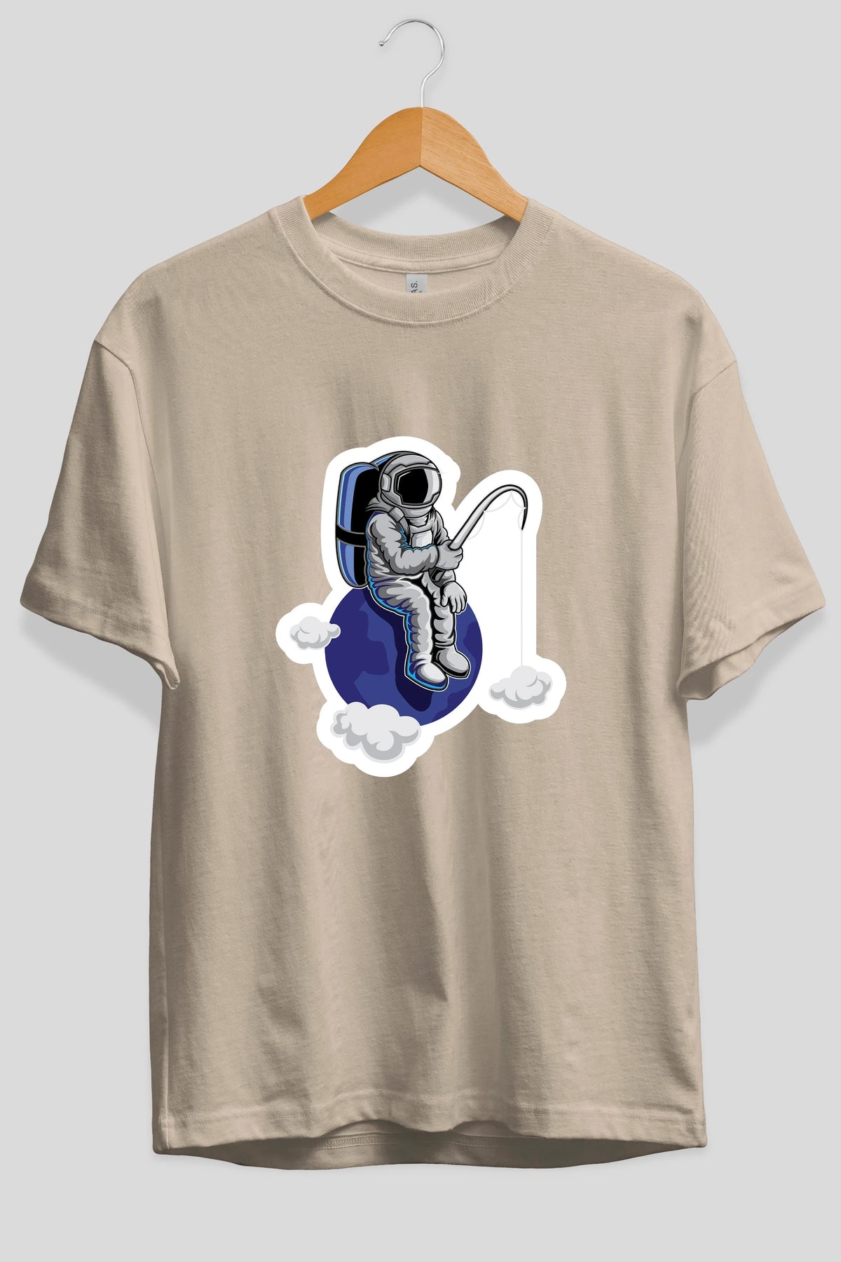 Astronaut Fishing Sticker Ön Baskılı Oversize t-shirt Erkek Kadın Unisex