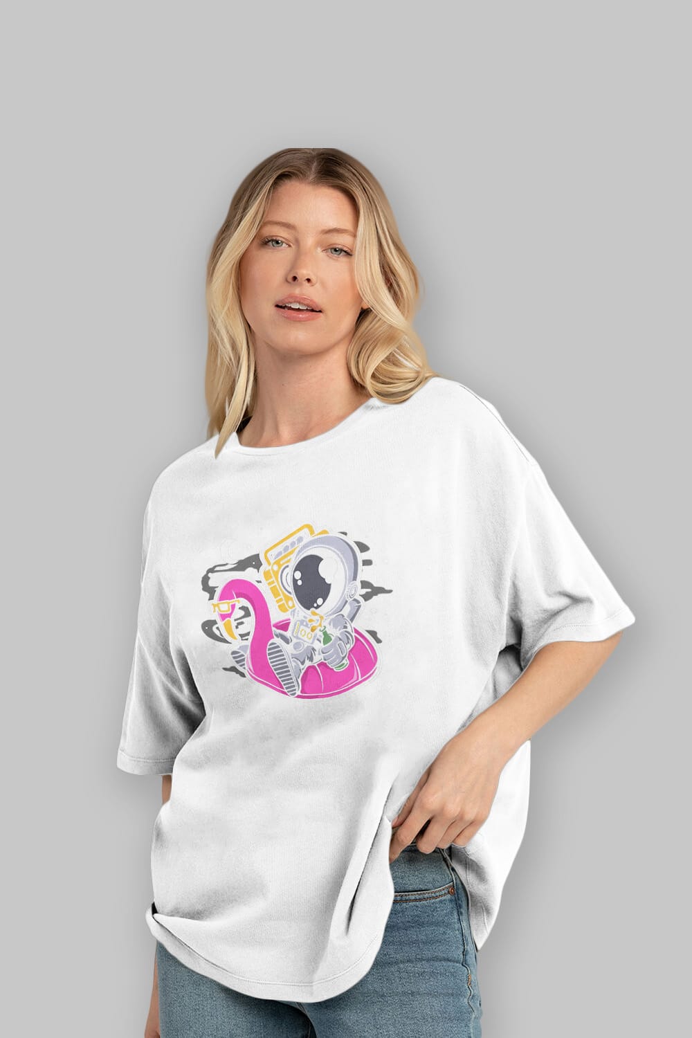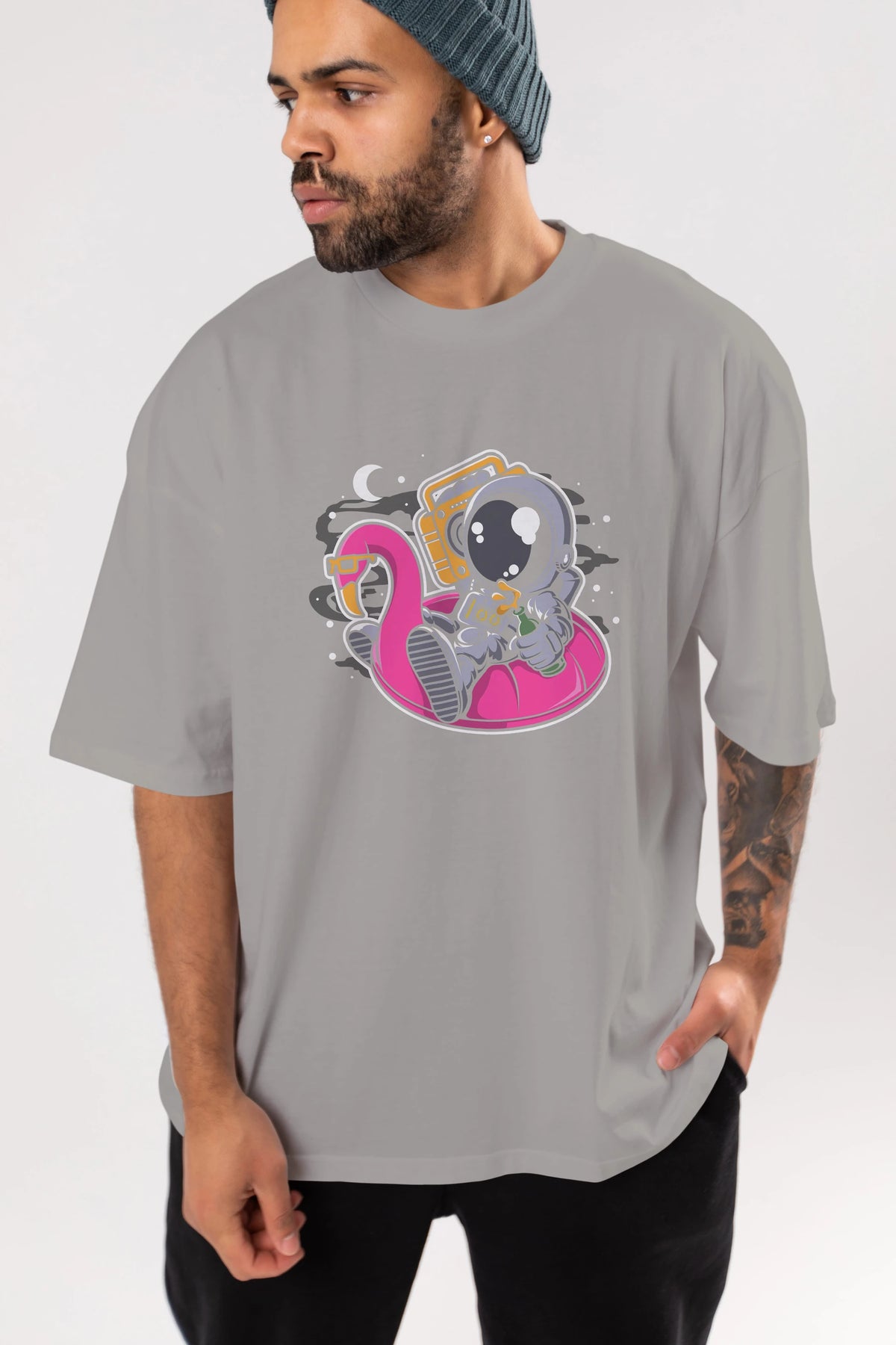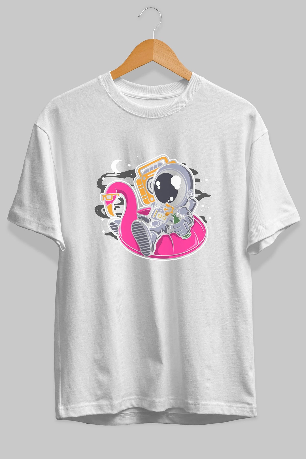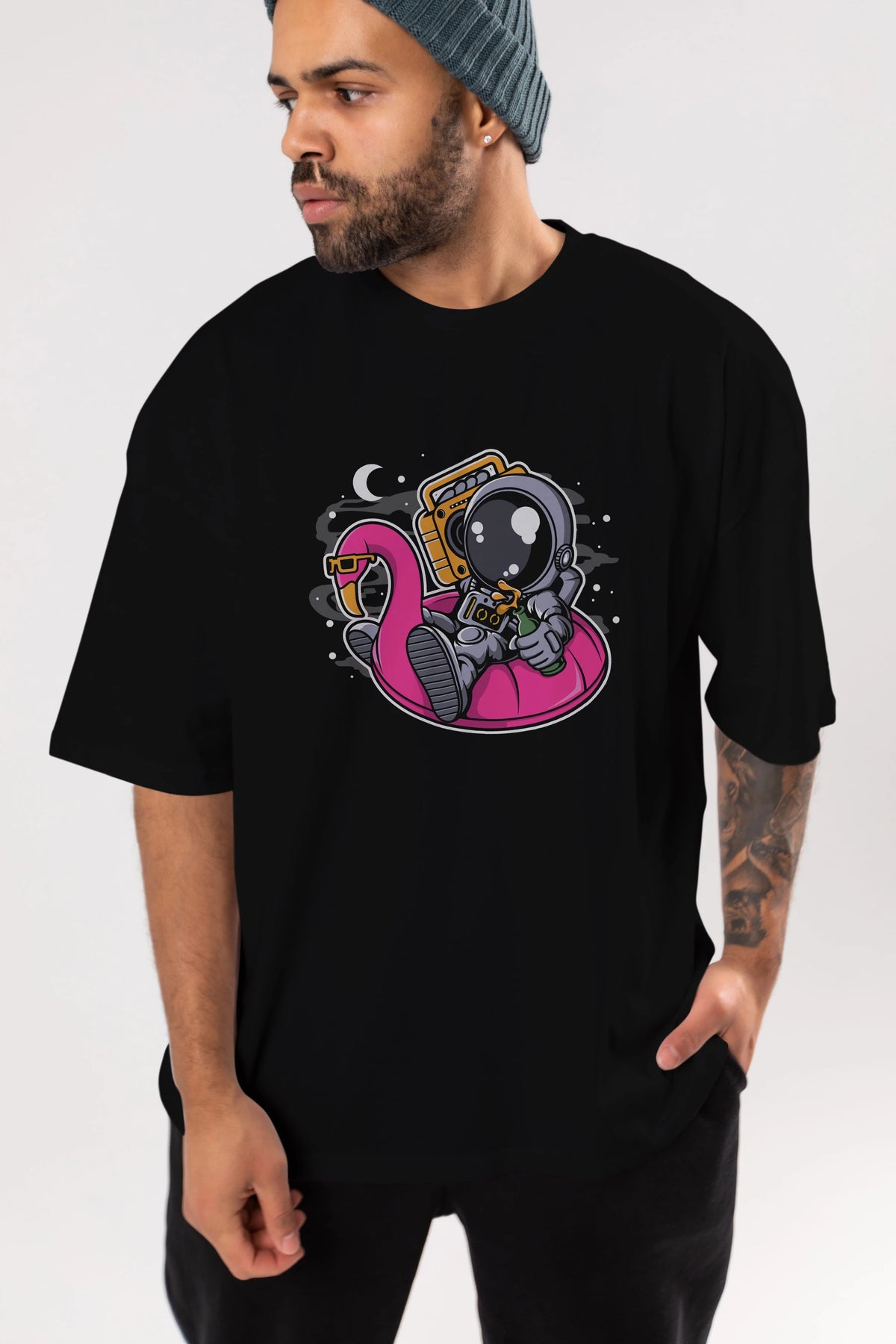 Astronaut Floaties Ballon Ön Baskılı Oversize t-shirt Erkek Kadın Unisex