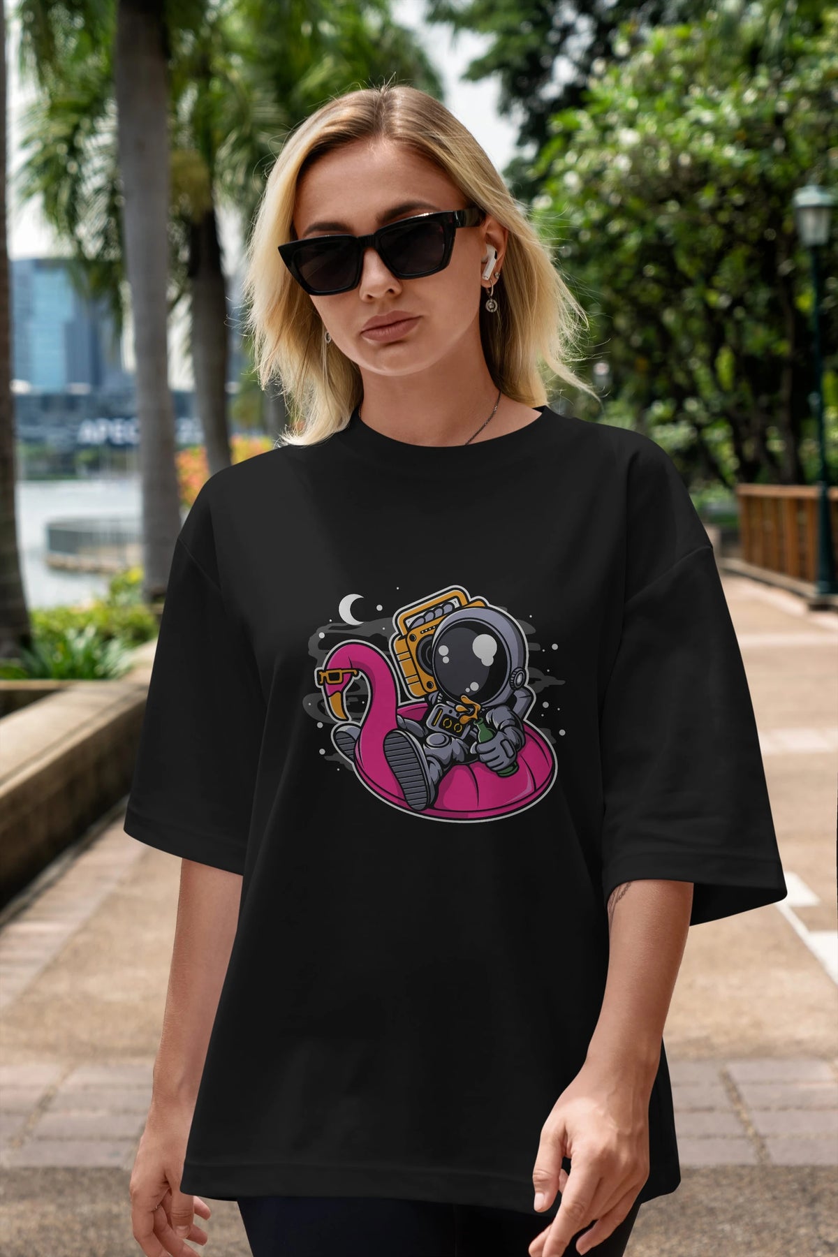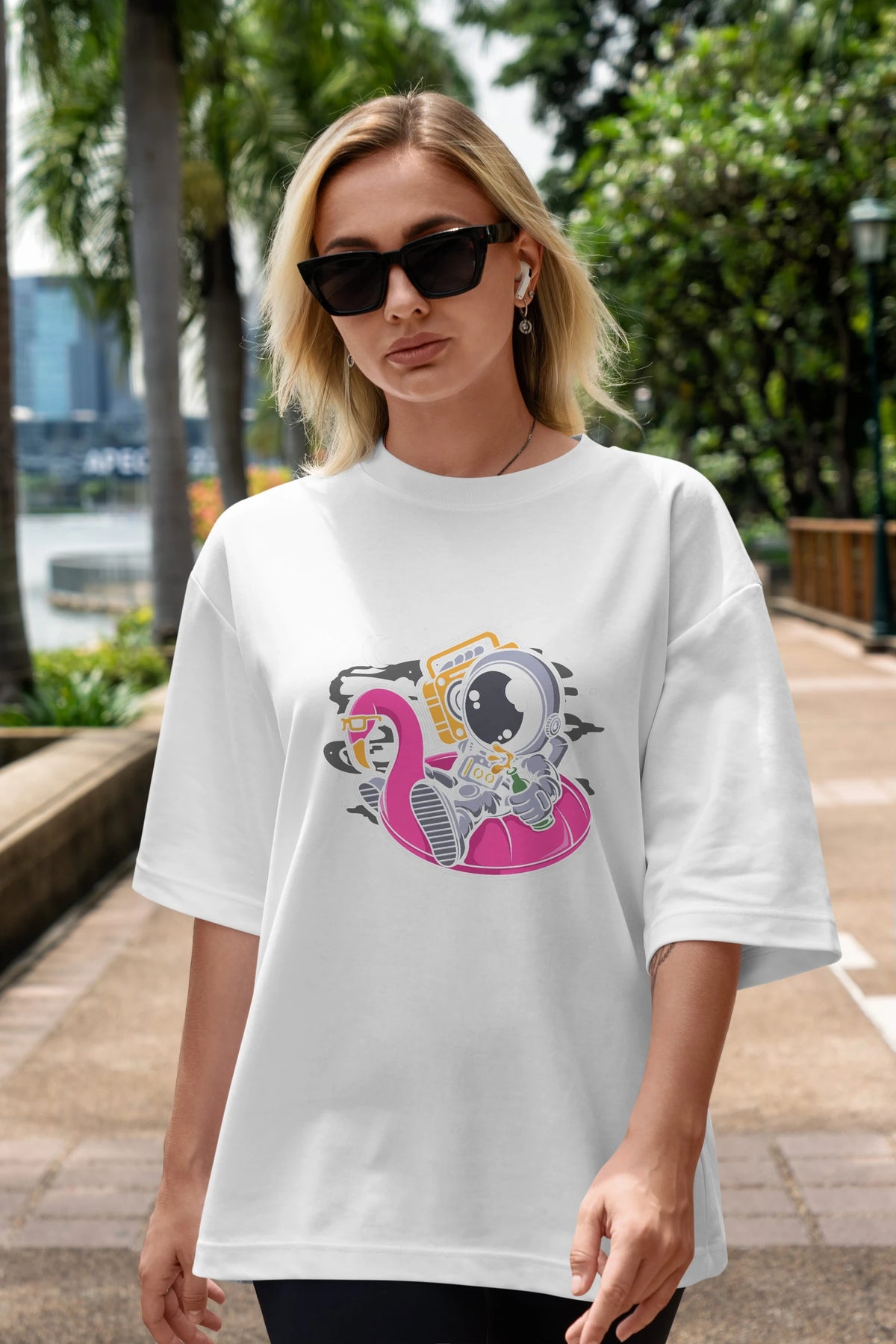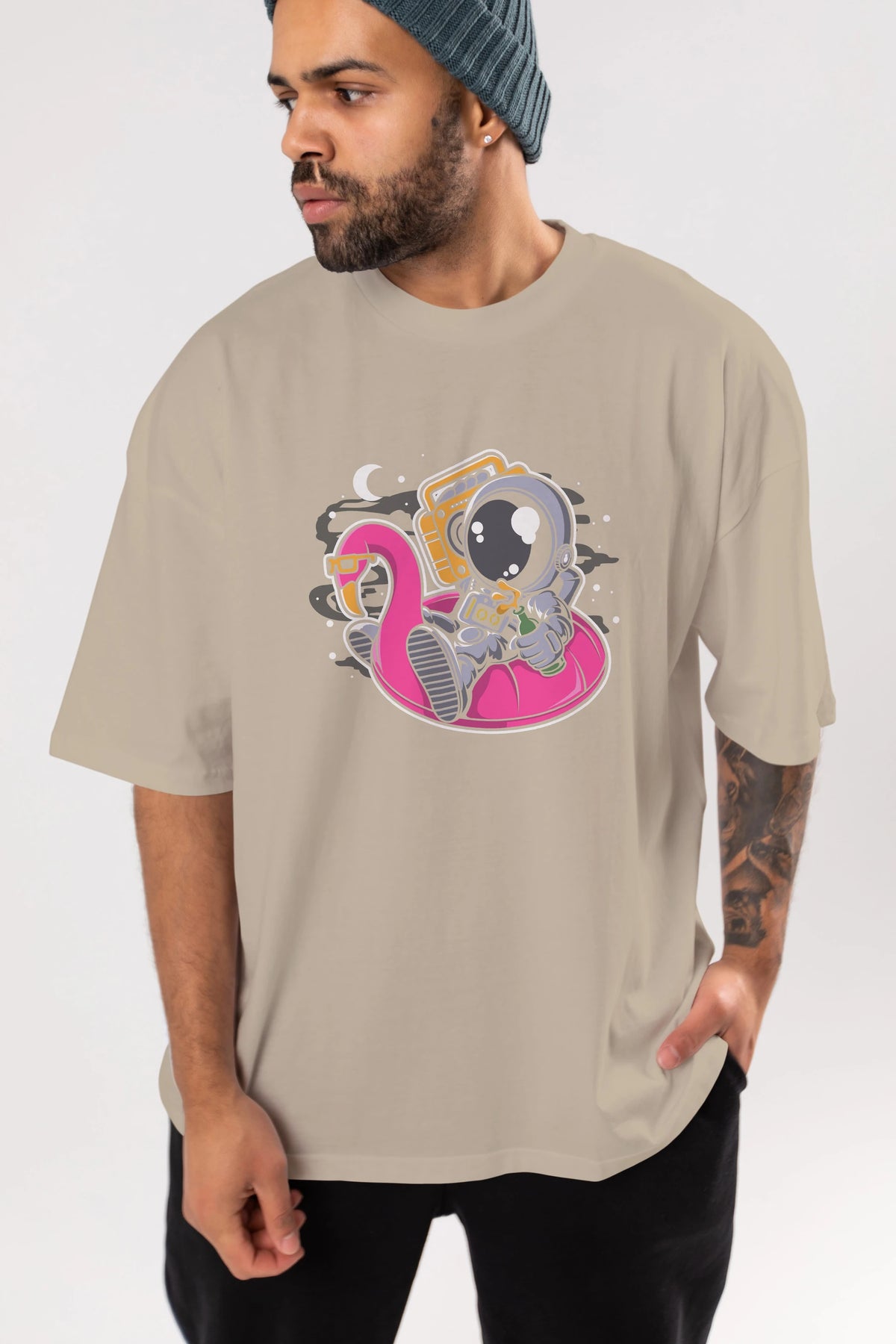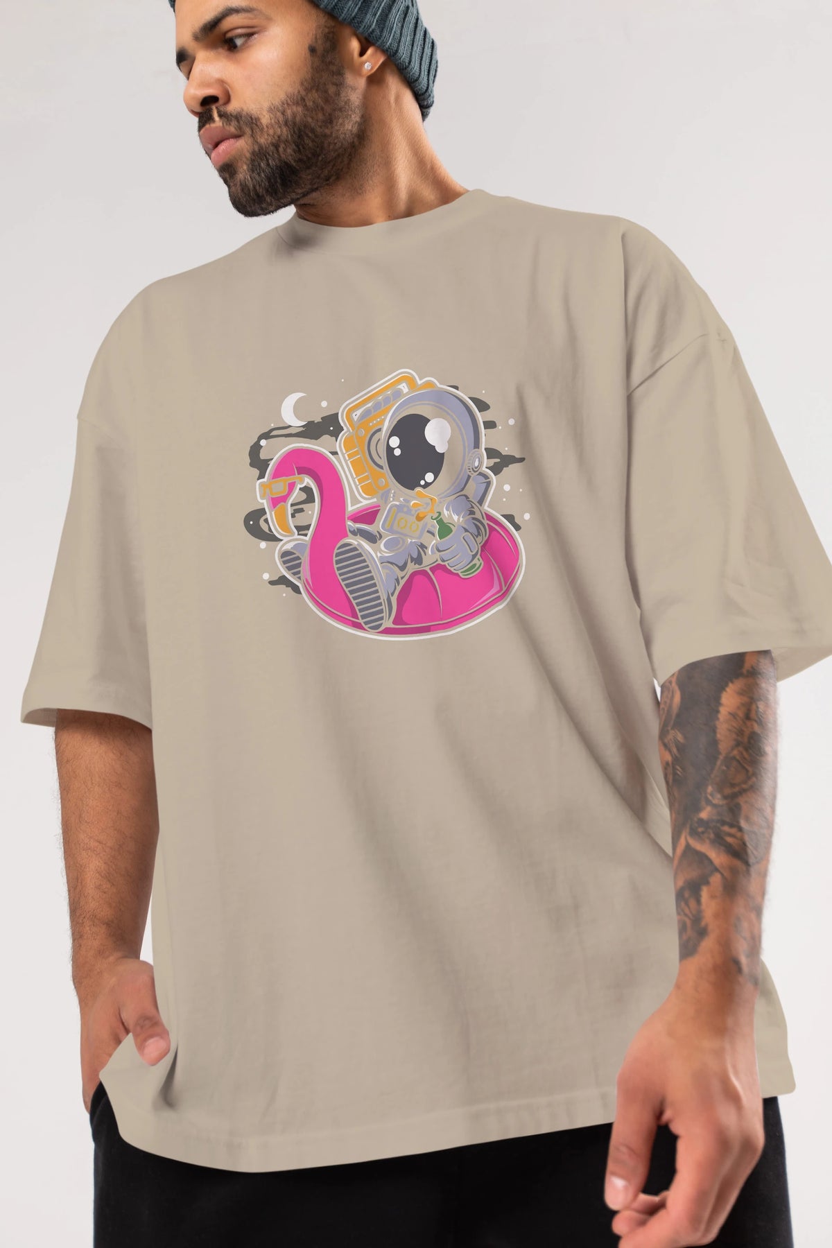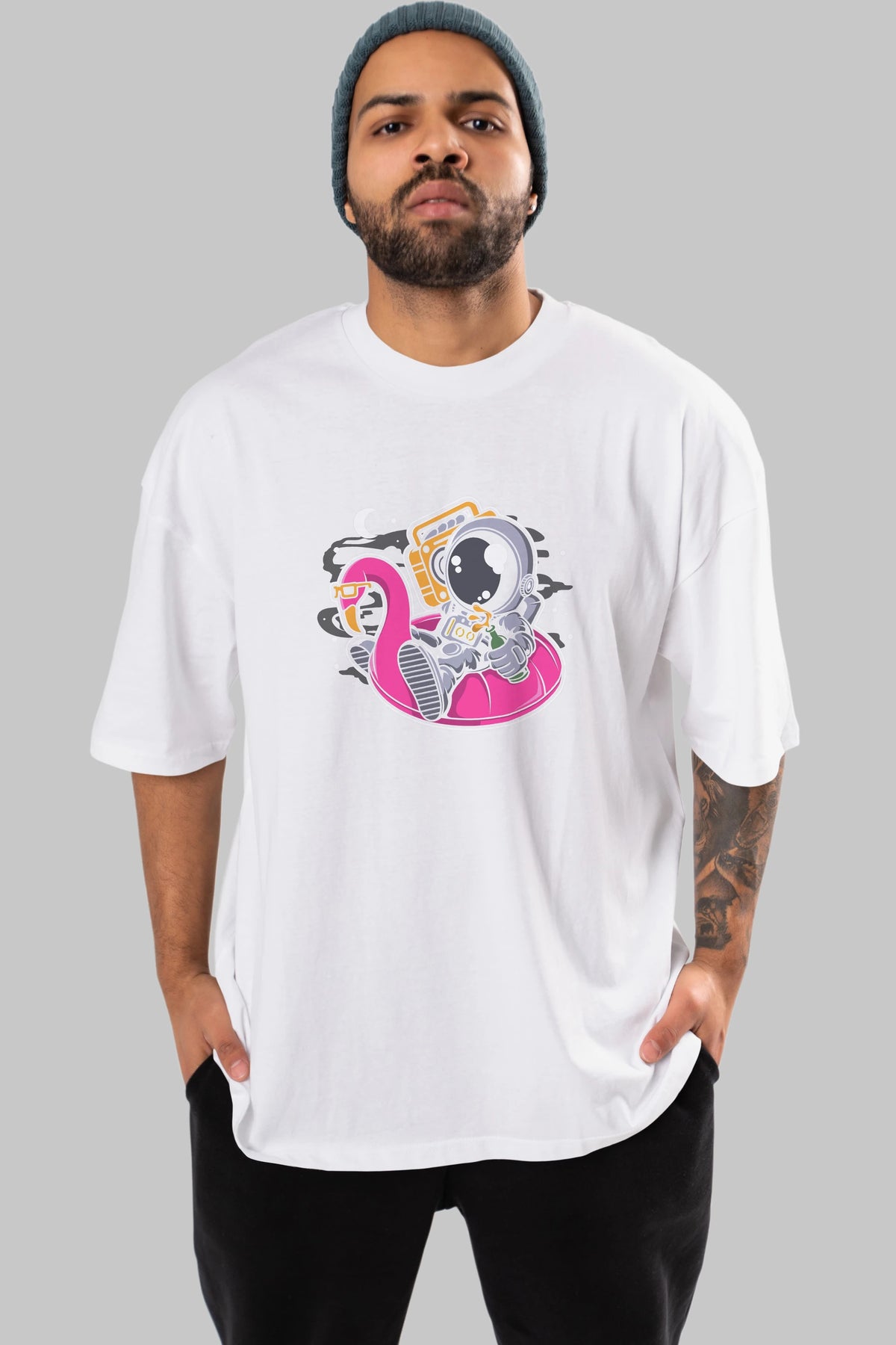 Astronaut Floaties Ballon Ön Baskılı Oversize t-shirt Erkek Kadın Unisex