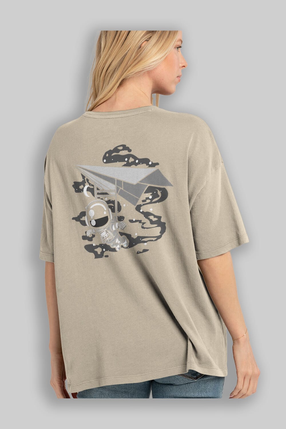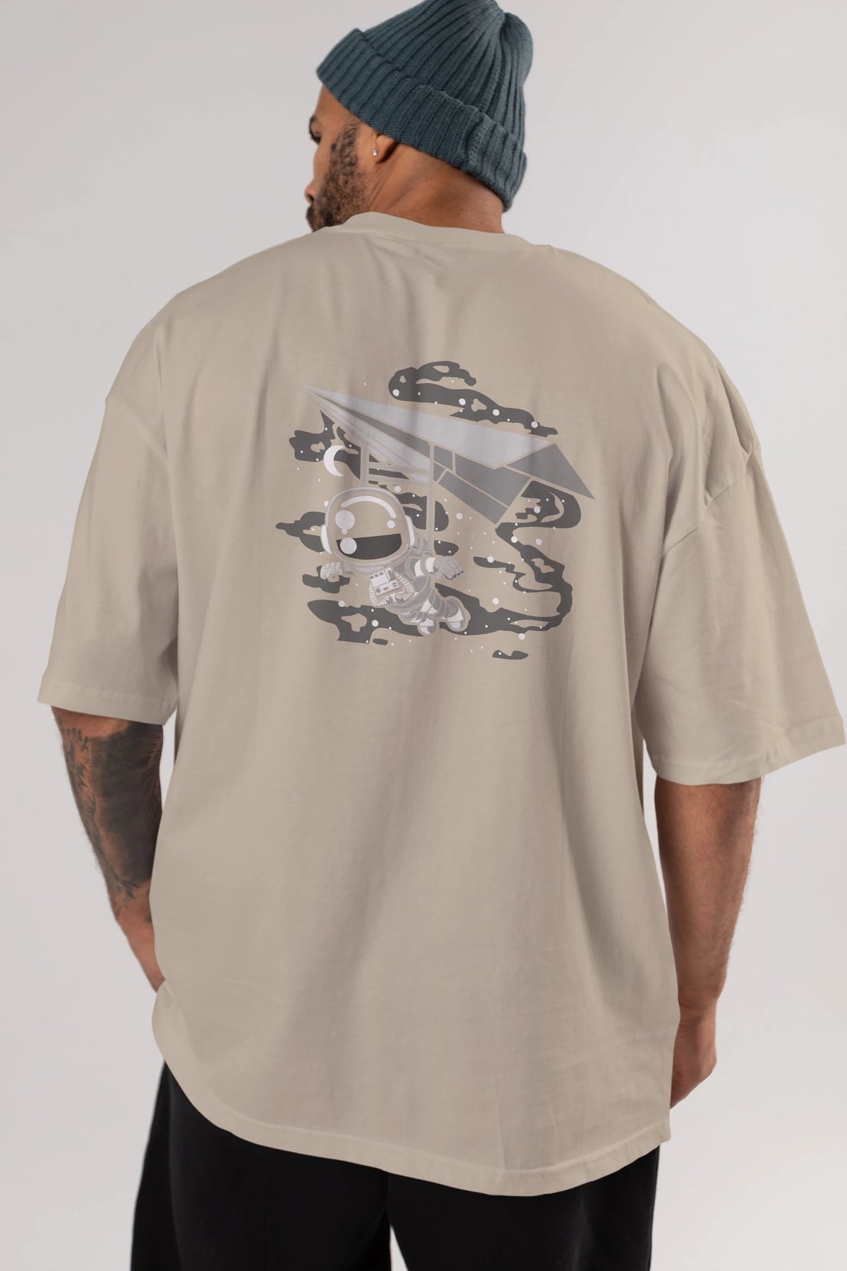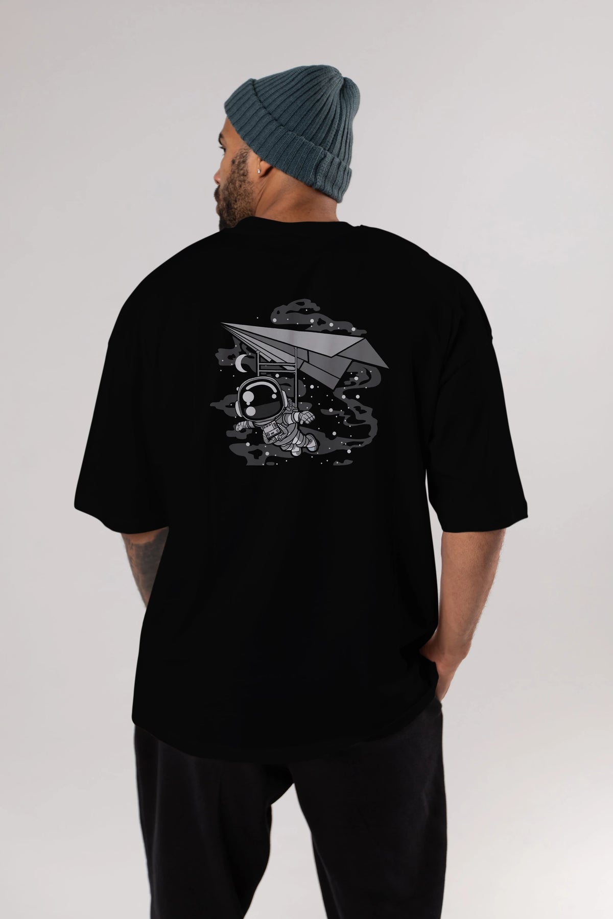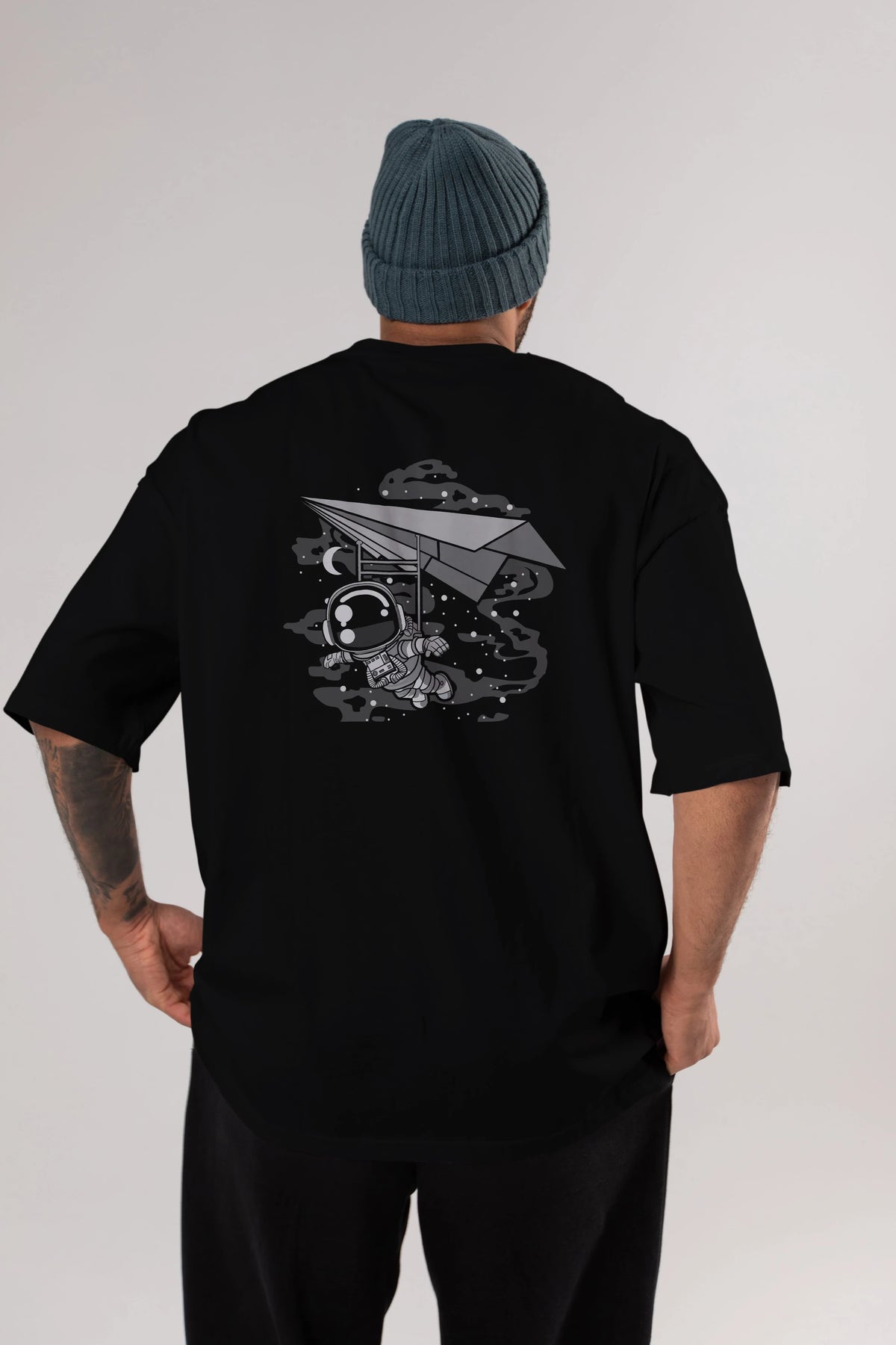 Astronaut Flying Arka Baskılı Oversize t-shirt Erkek Kadın Unisex